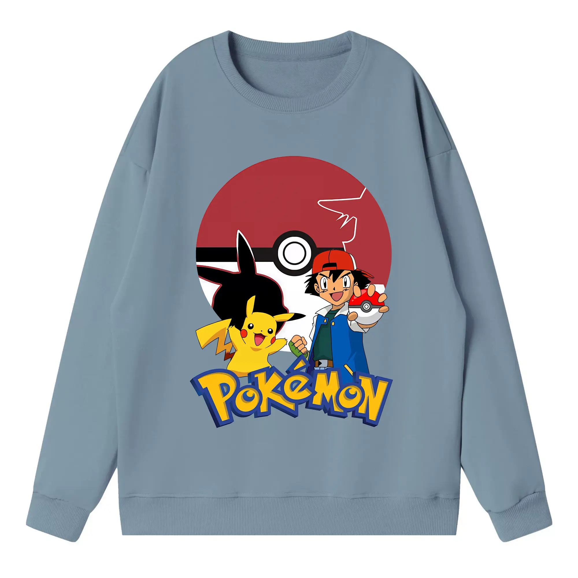 イーブイ家族ポケモンファン 必見 - 薄手 クルーネック スウェット 裏毛260g · ポリエステル 春秋向け カジュアル 男女兼用 · トレーナー デイリー スポーツ 散歩に最適