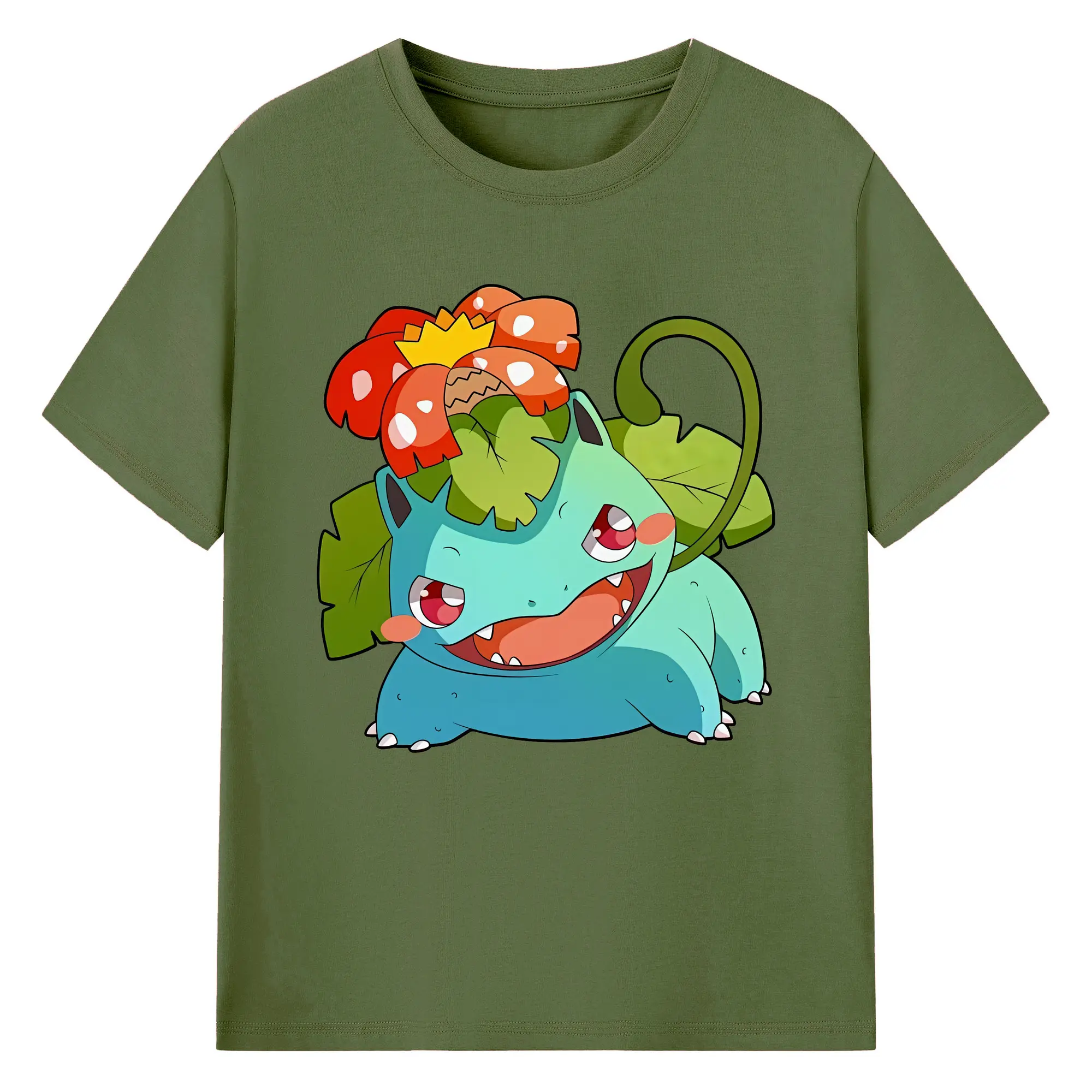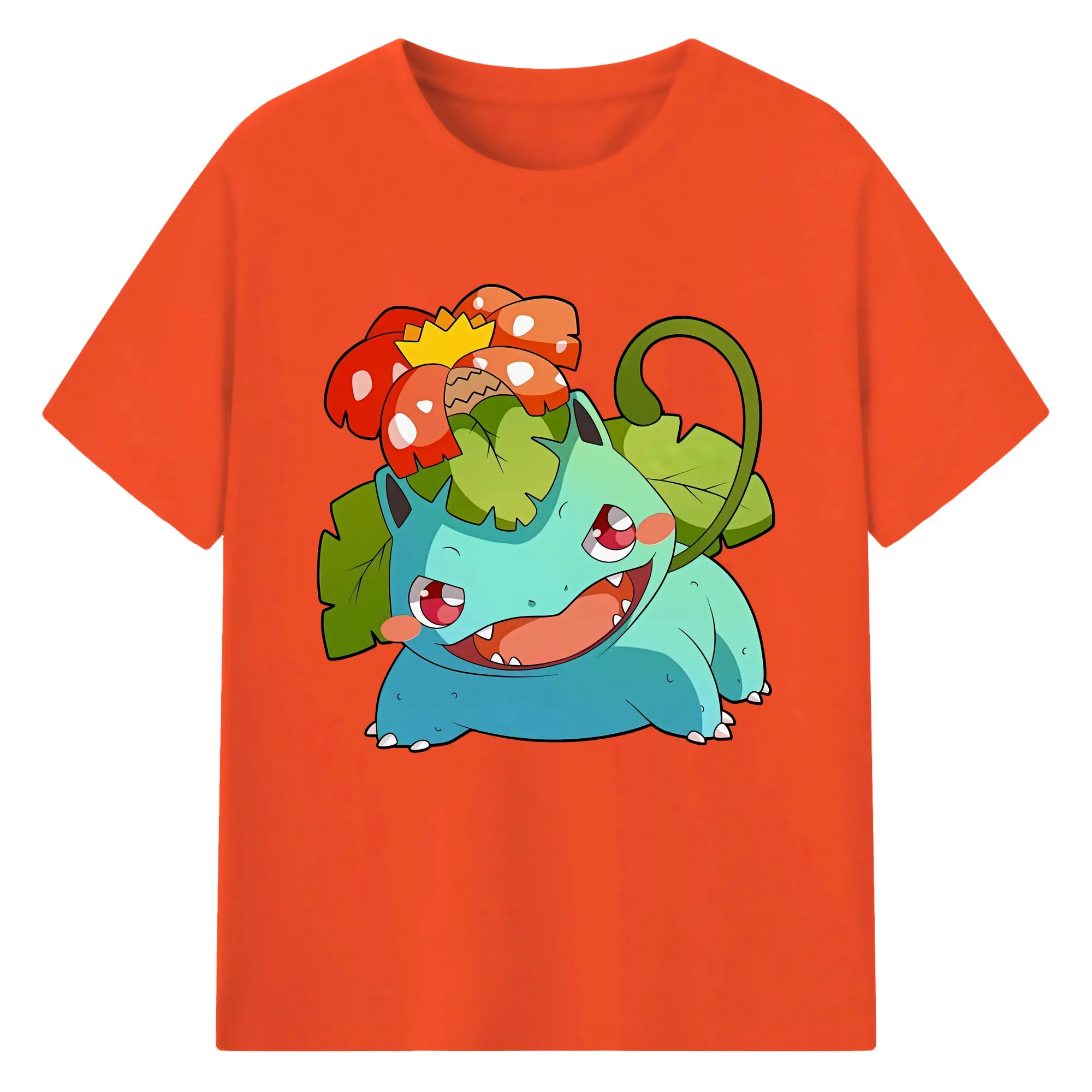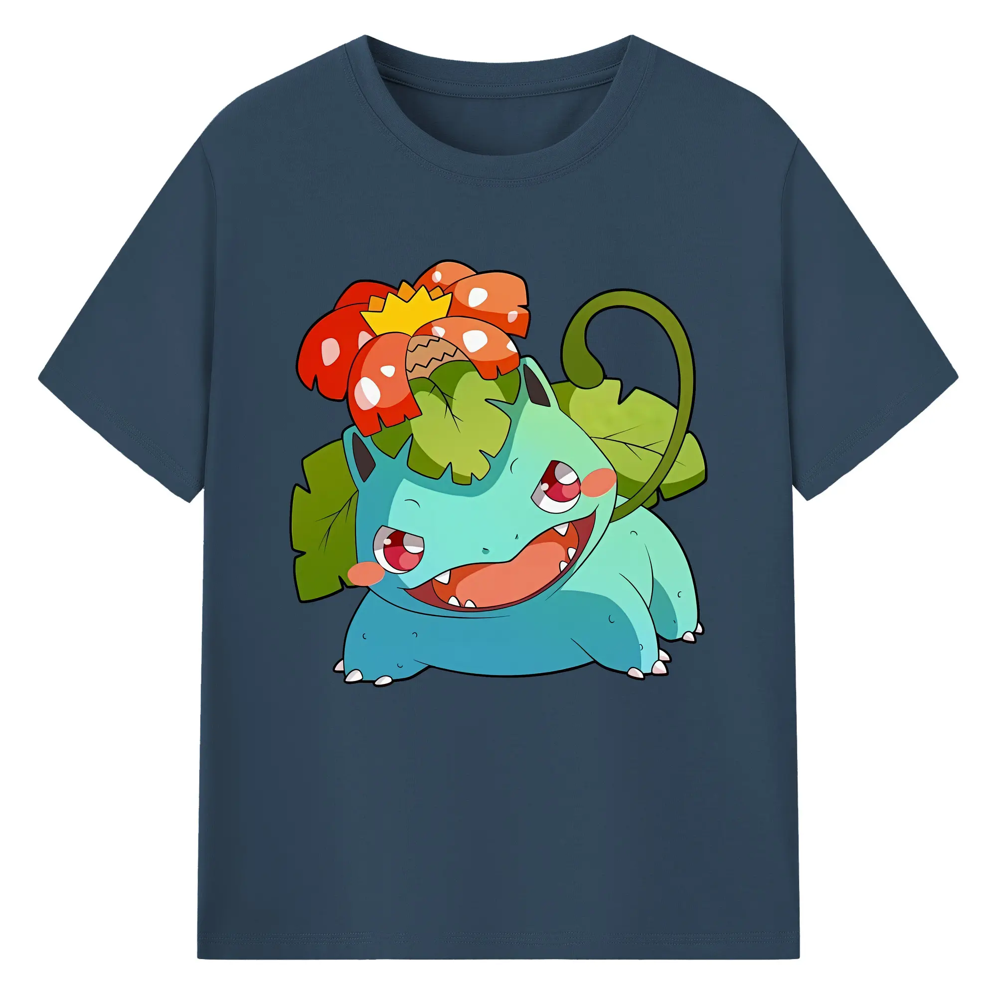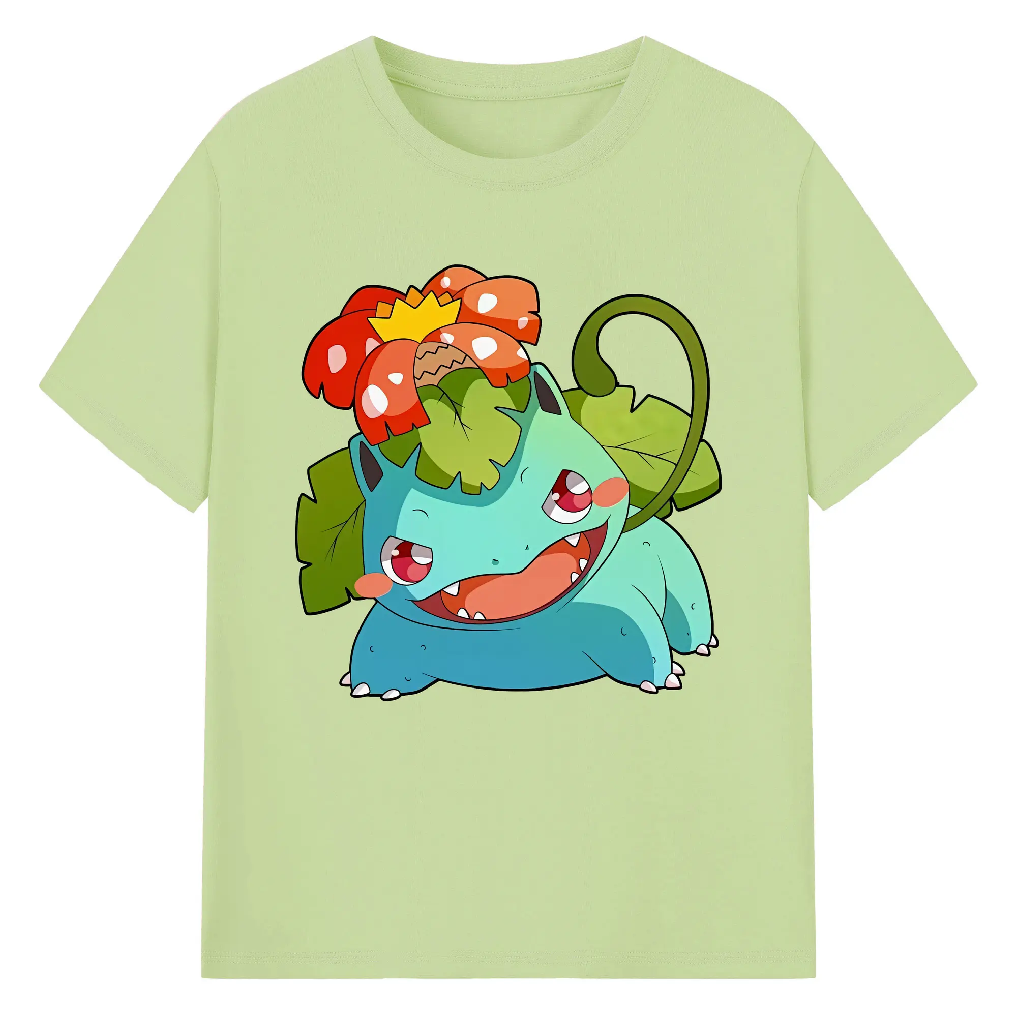ポケモン フシギダネ 集合 カートゥーン オリジナルデザイン - 綿100% 半袖Tシャツ ・ フロントプリント ・ 快適 通気性 ・ 日常使い 散歩 スポーツ用