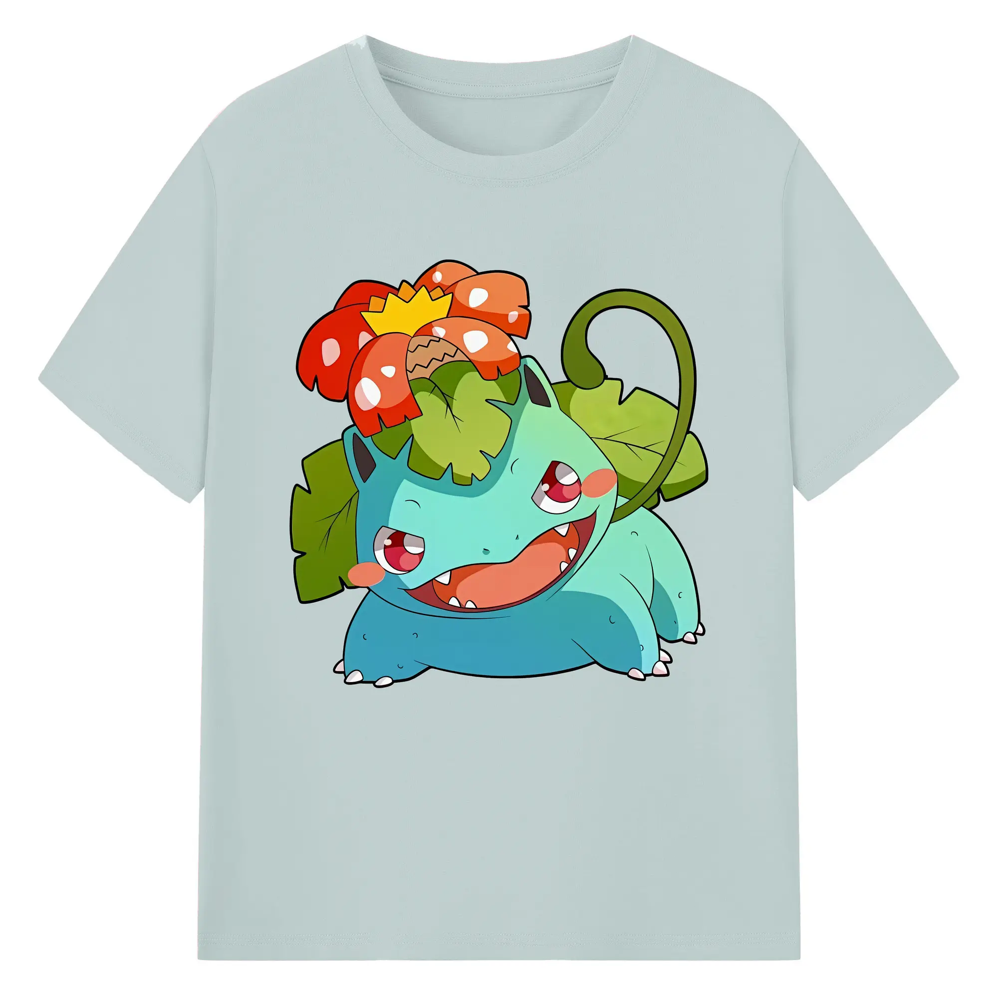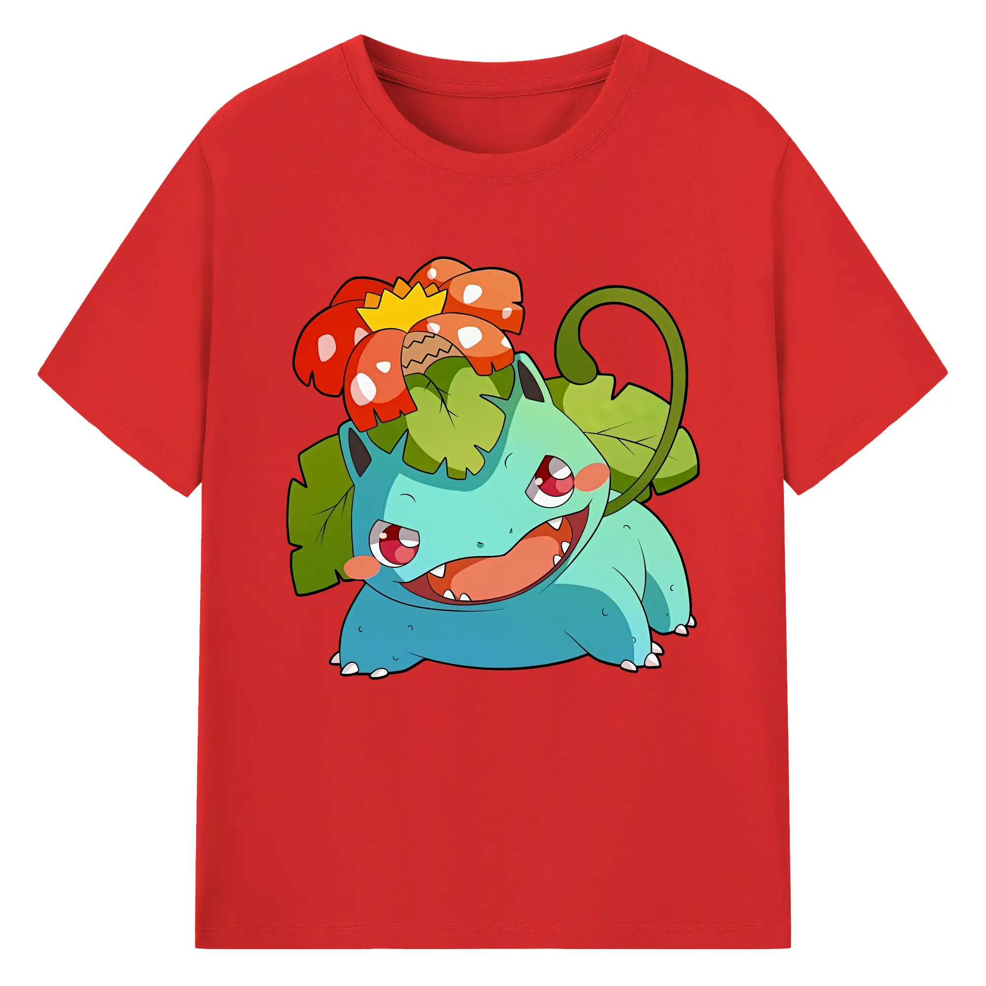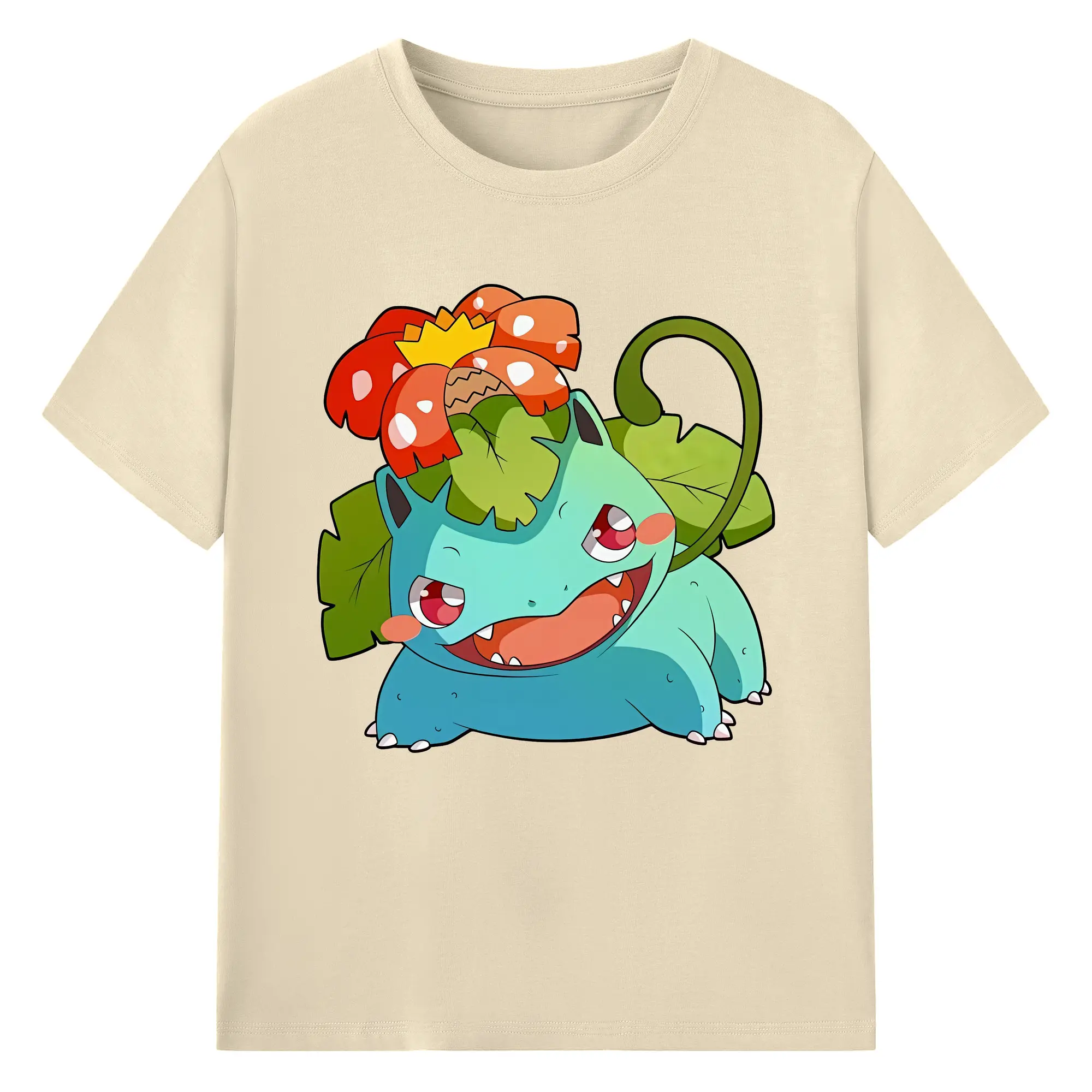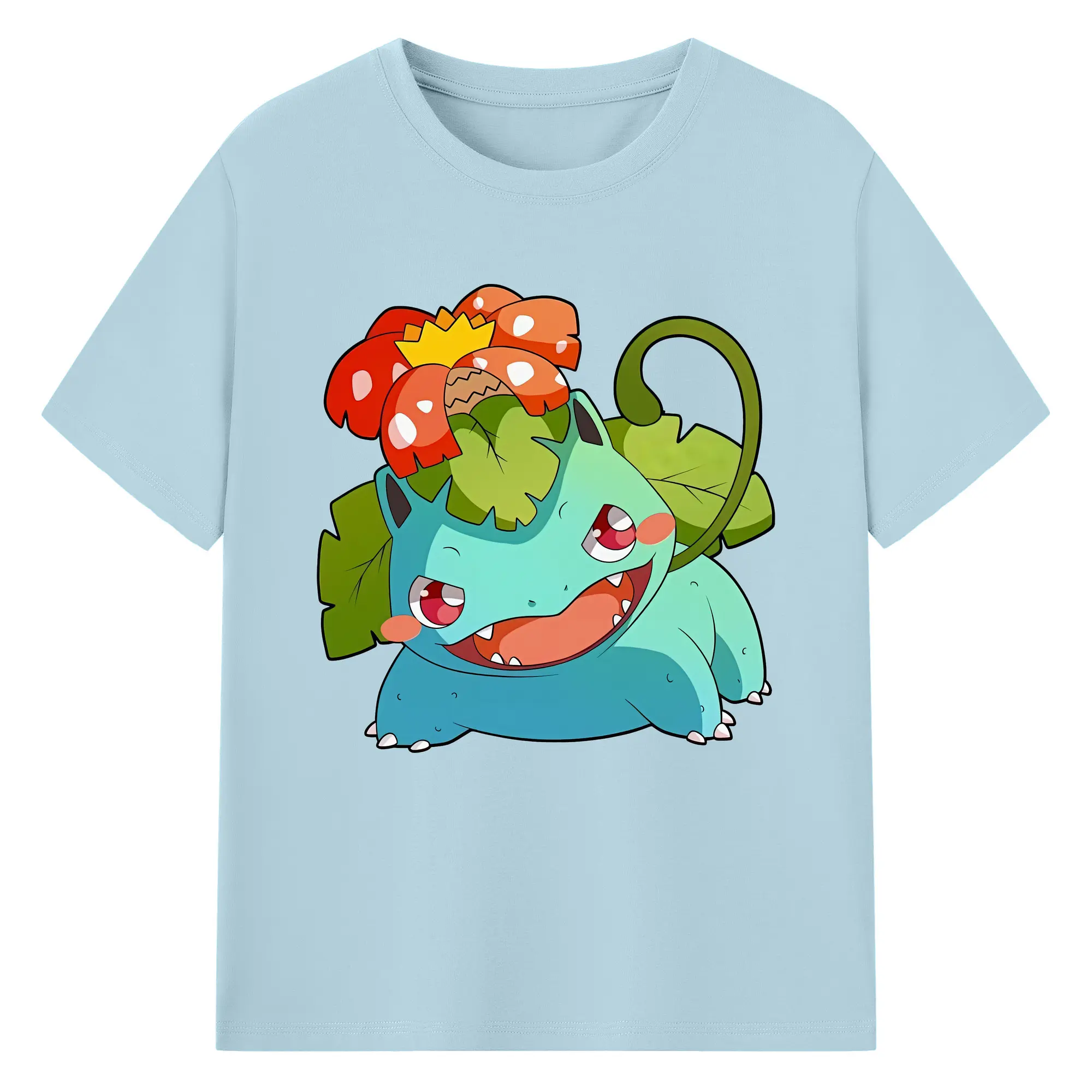 ポケモン フシギダネ 集合 カートゥーン オリジナルデザイン - 綿100% 半袖Tシャツ ・ フロントプリント ・ 快適 通気性 ・ 日常使い 散歩 スポーツ用