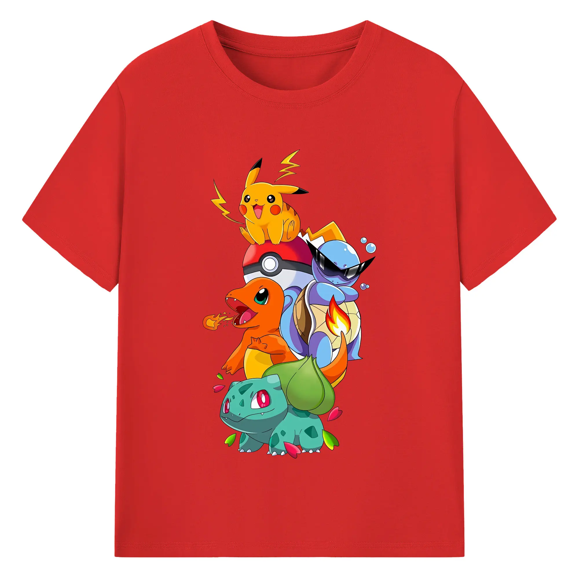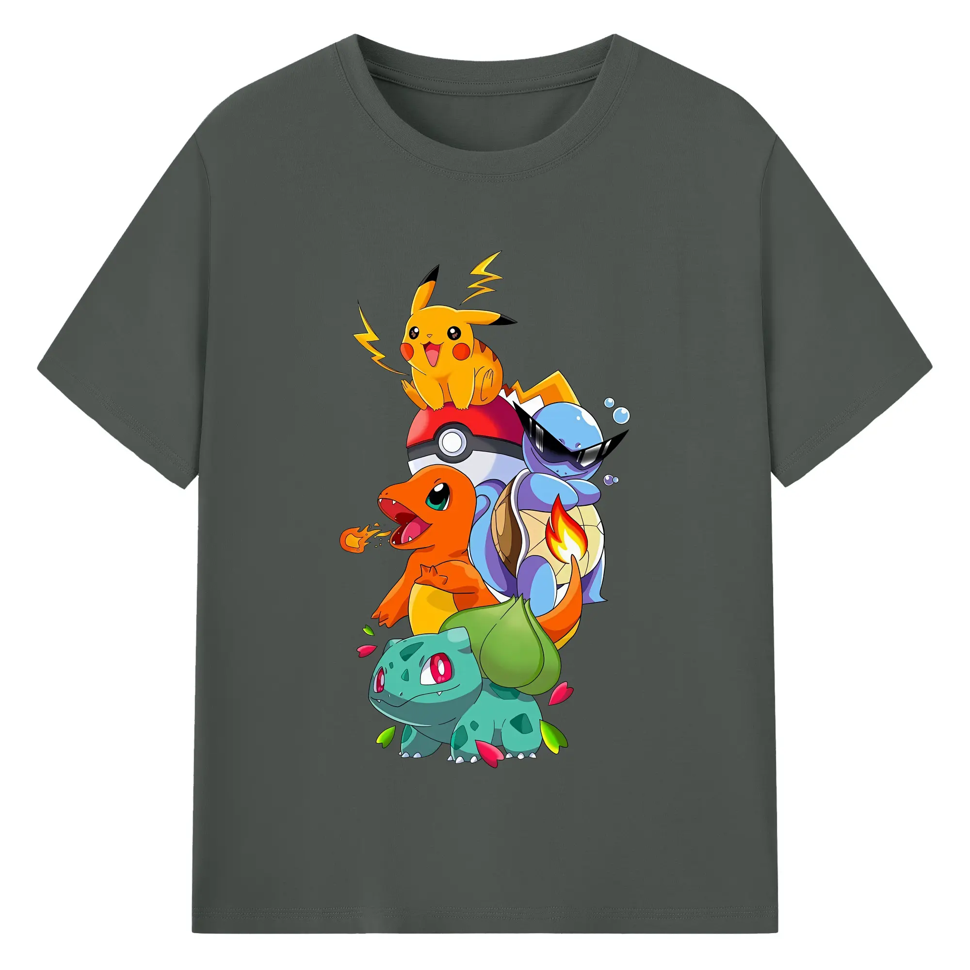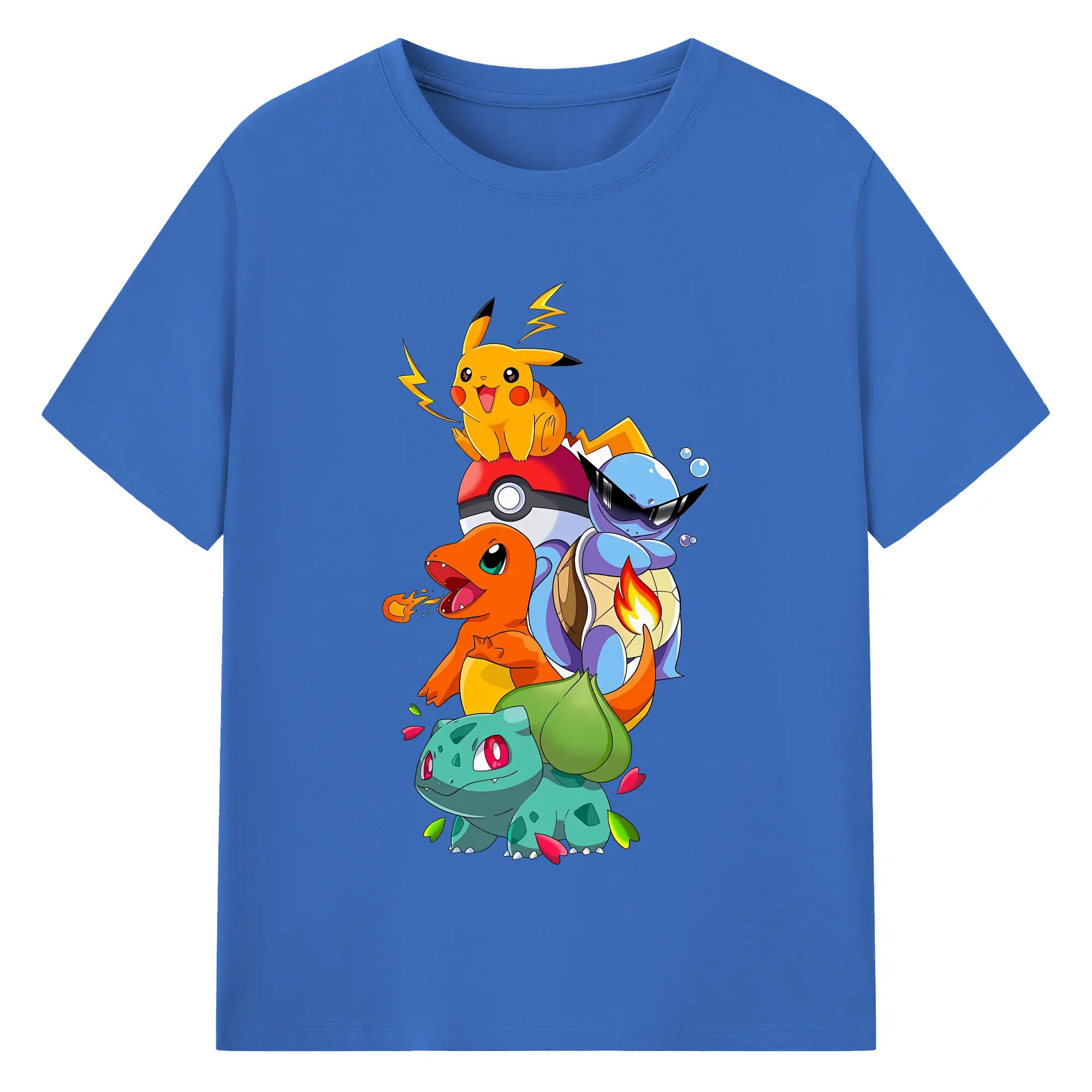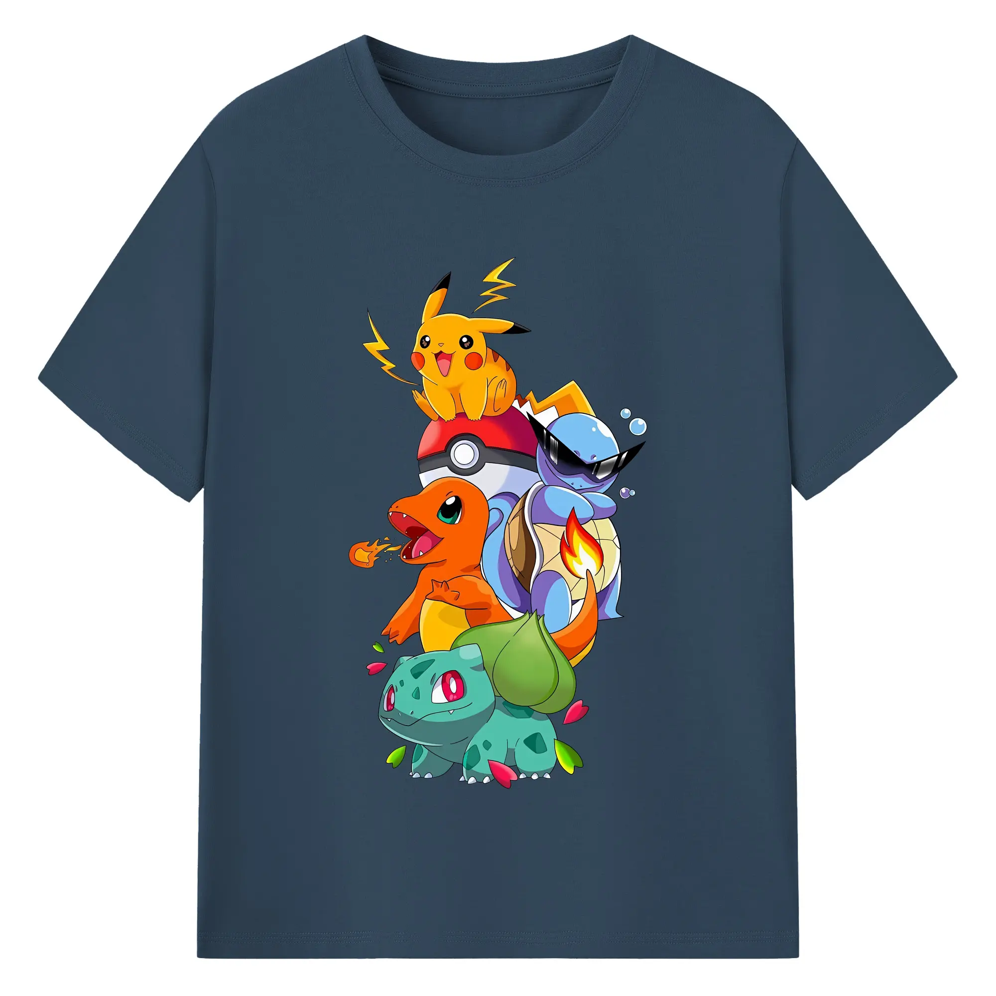 ポケモン ゼニガメ・ヒトカゲ・フシギダネ バッジデザイン 元気 オリジナルデザイン - 綿100% 半袖Tシャツ ・ フロントプリント ・ 快適 通気性 ・ 日常使い 散歩 スポーツ用