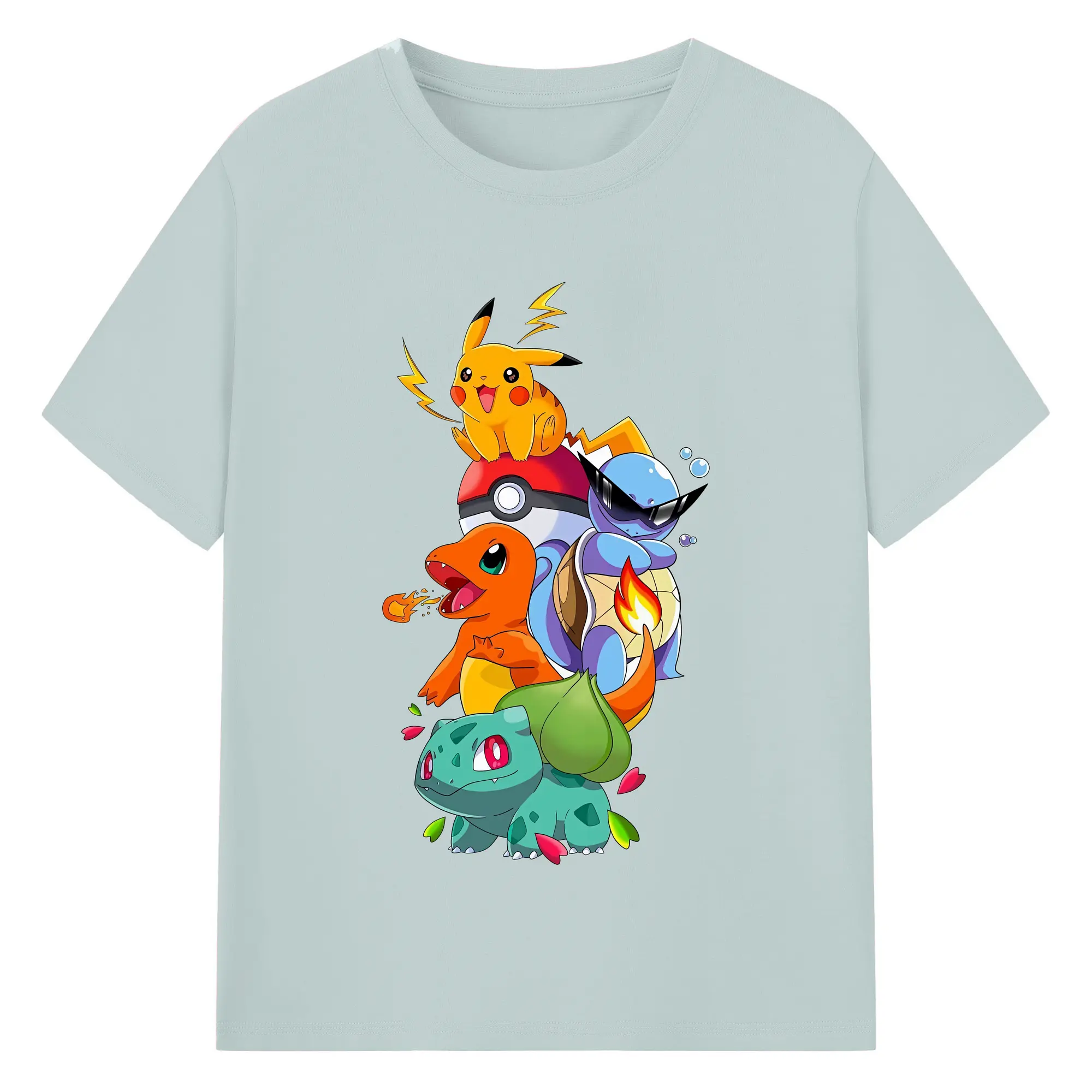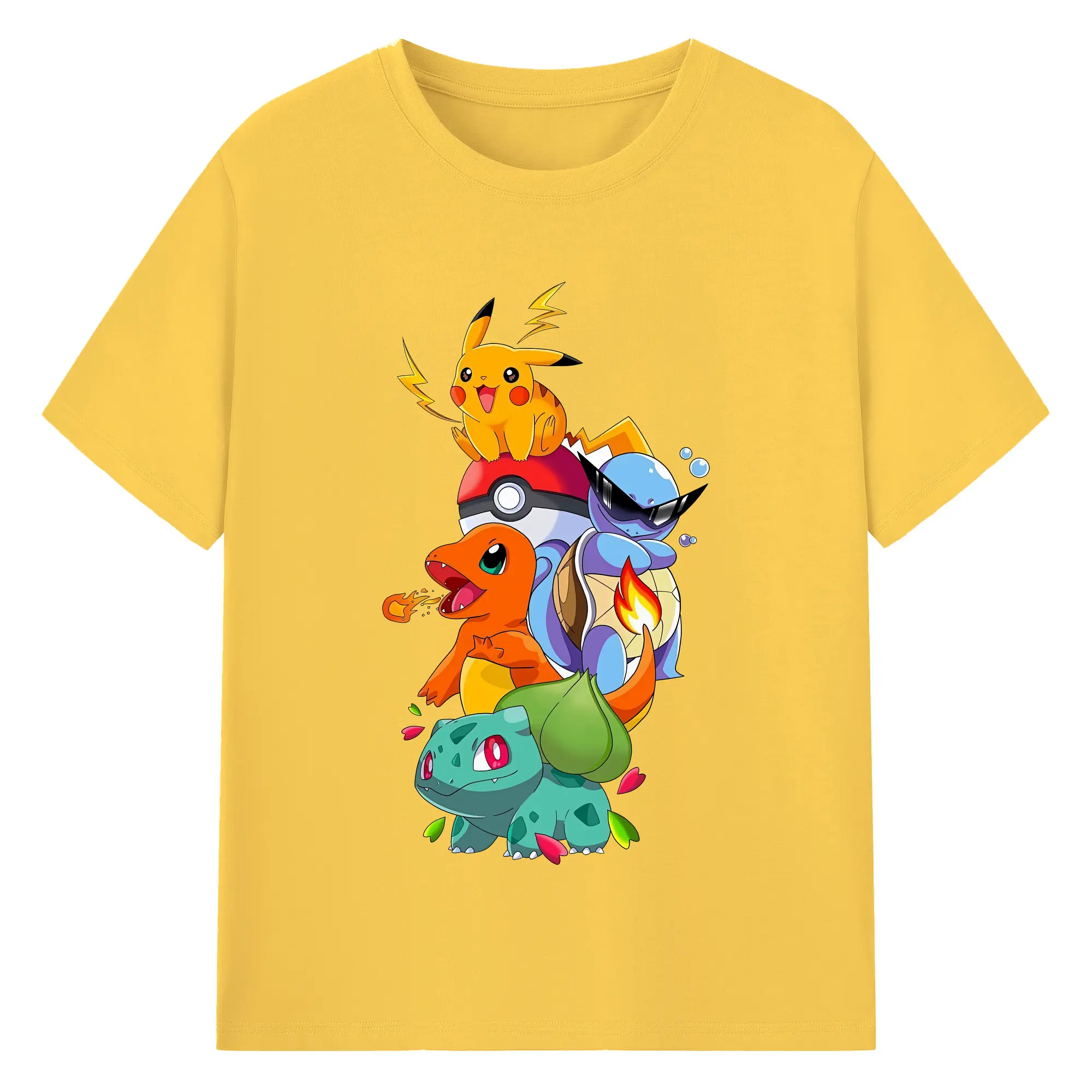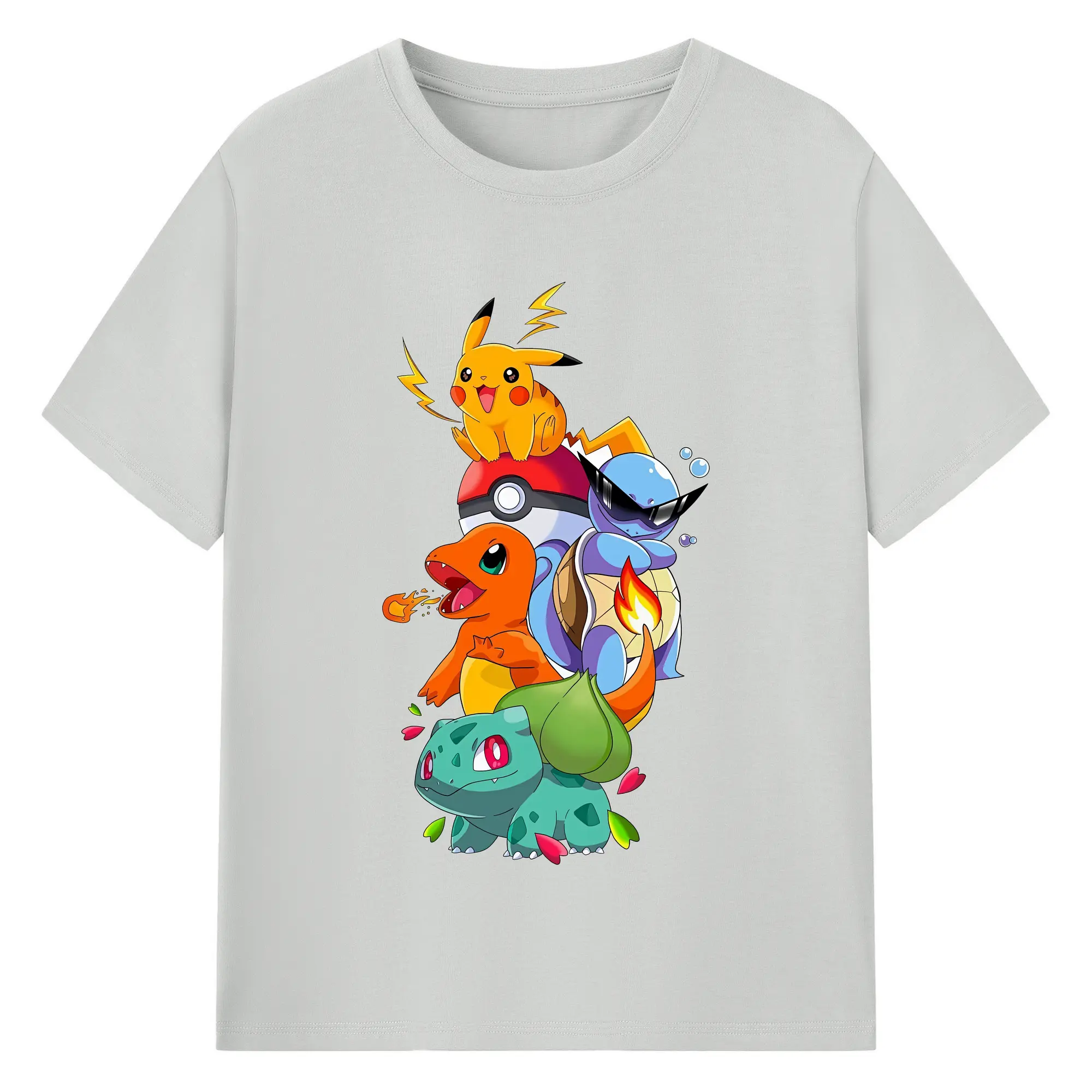 ポケモン ゼニガメ・ヒトカゲ・フシギダネ バッジデザイン 元気 オリジナルデザイン - 綿100% 半袖Tシャツ ・ フロントプリント ・ 快適 通気性 ・ 日常使い 散歩 スポーツ用