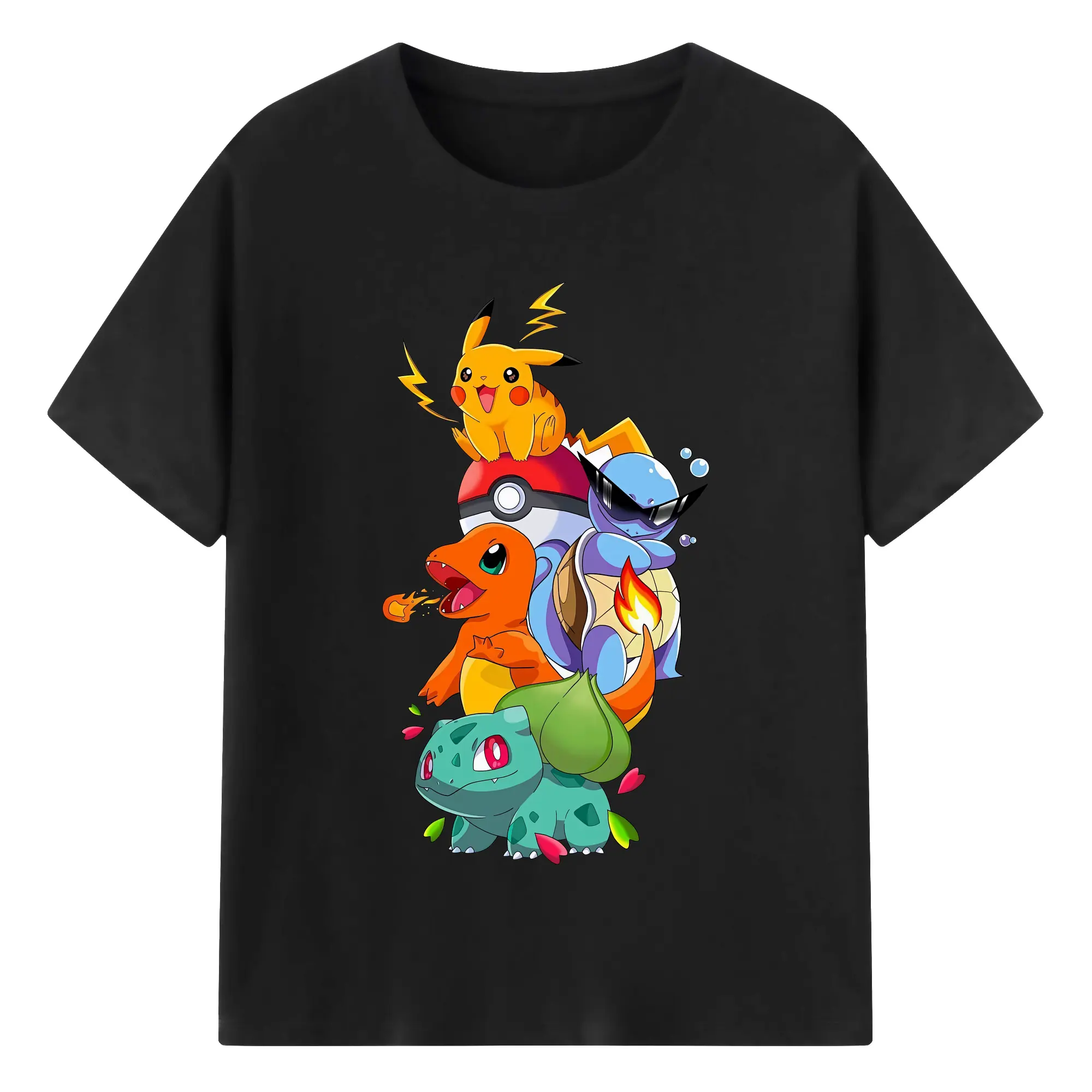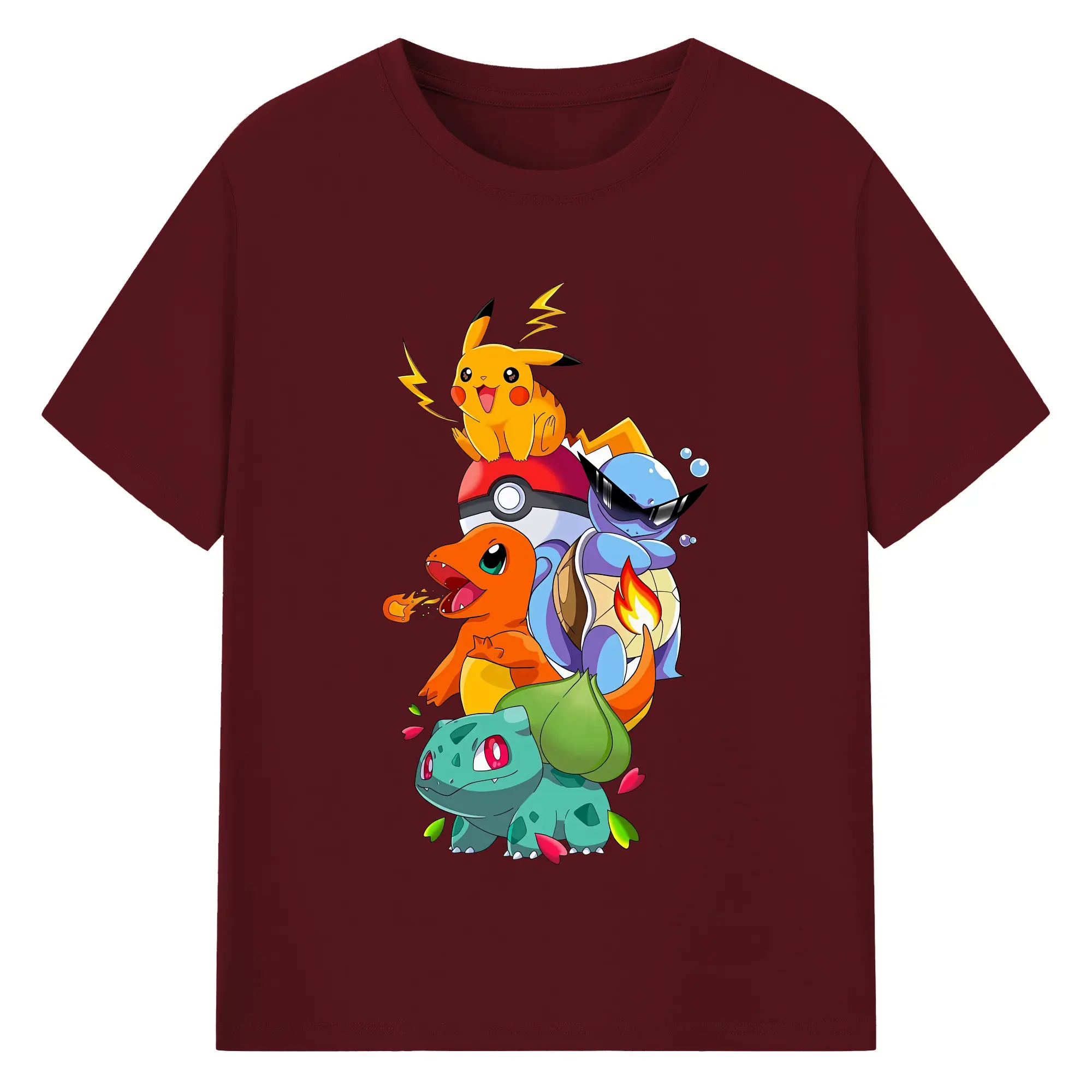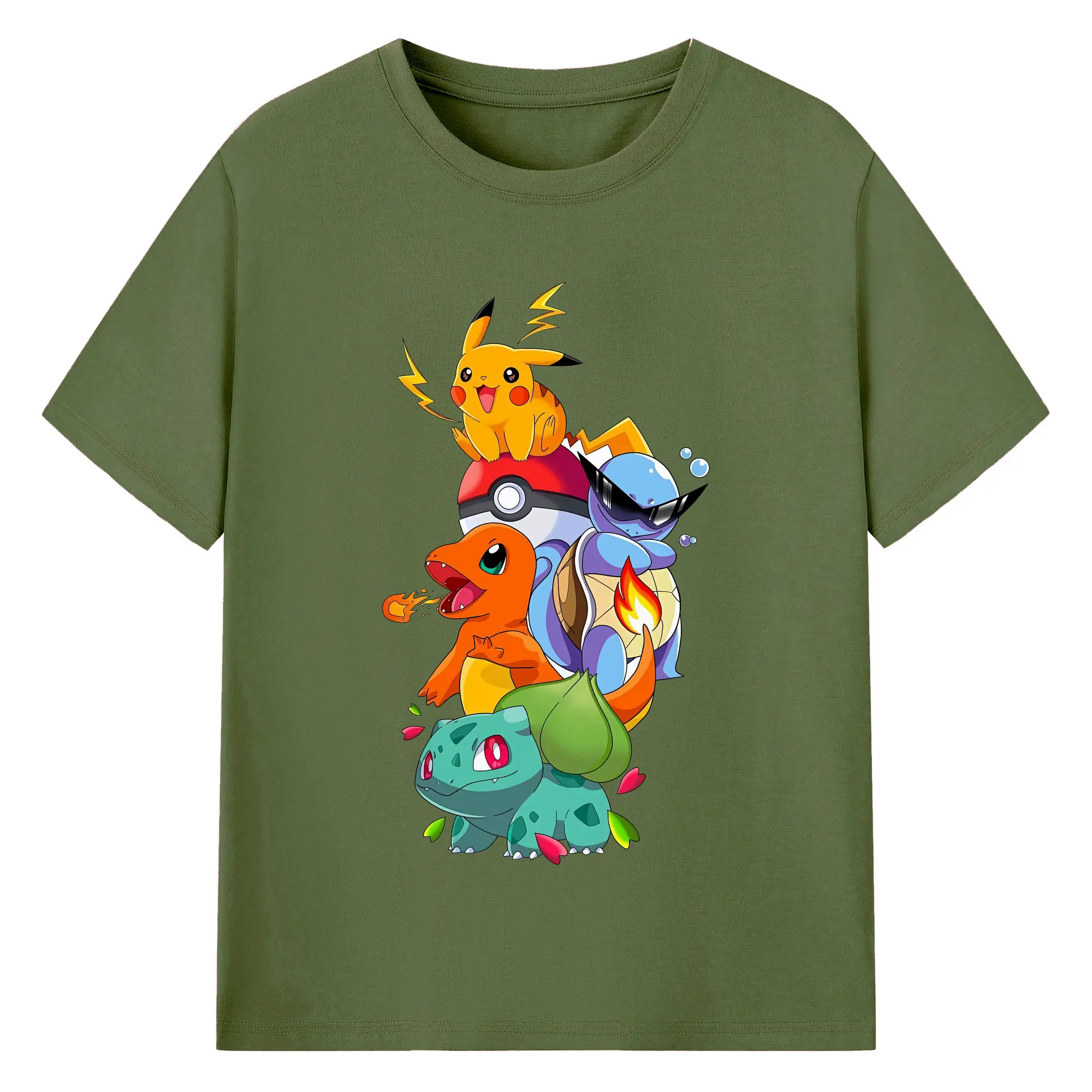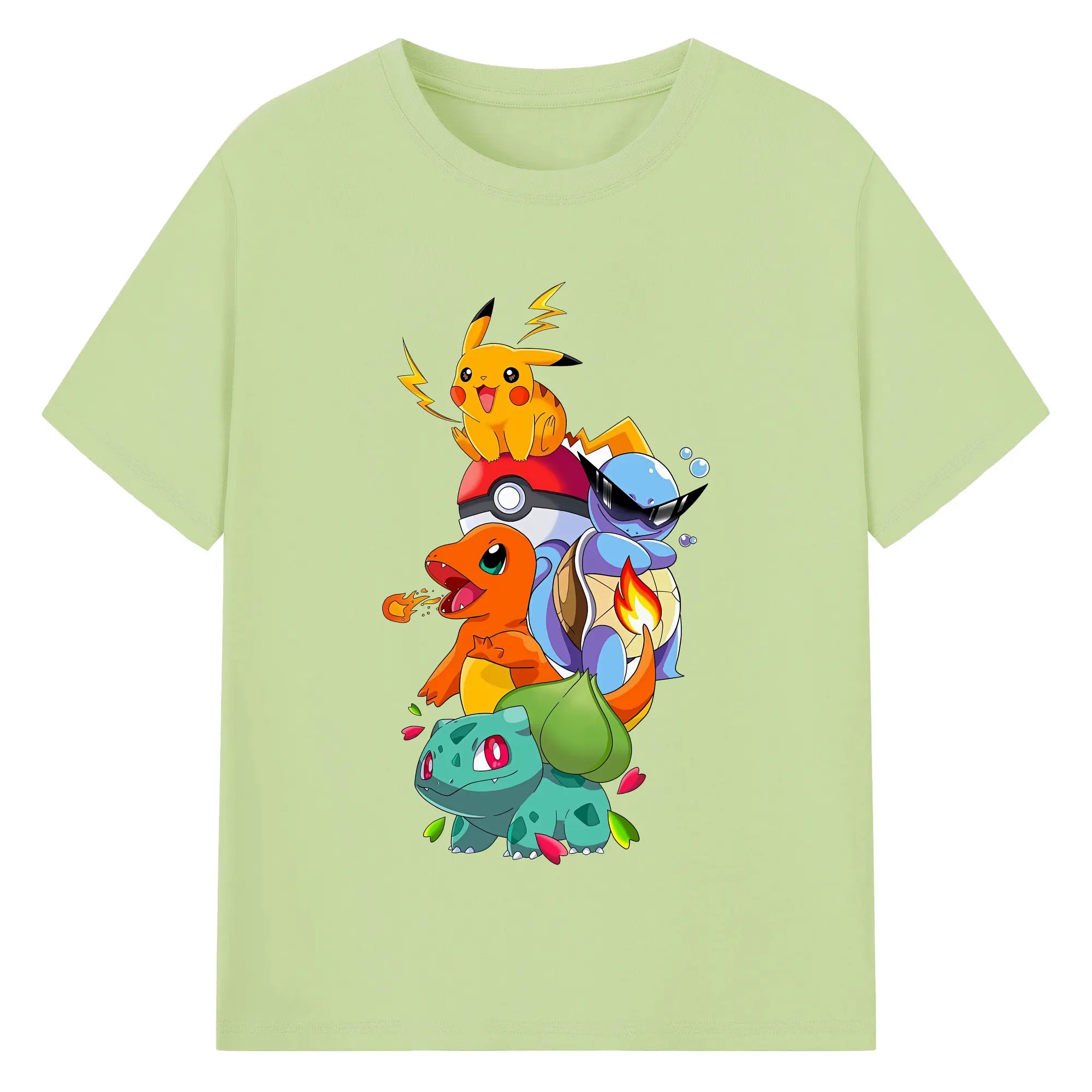 ポケモン ゼニガメ・ヒトカゲ・フシギダネ バッジデザイン 元気 オリジナルデザイン - 綿100% 半袖Tシャツ ・ フロントプリント ・ 快適 通気性 ・ 日常使い 散歩 スポーツ用
