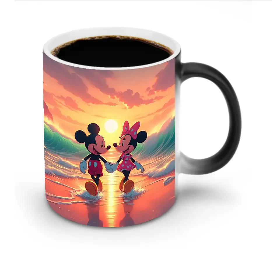 ミッキー&ミニーサンセットビーチ ロマンチックアート - 変色マグカップ ・ セラミック ・ 熱転写プリント ・ 耐久性 高品質 ・ ギフト・自宅用 コーヒー お茶
