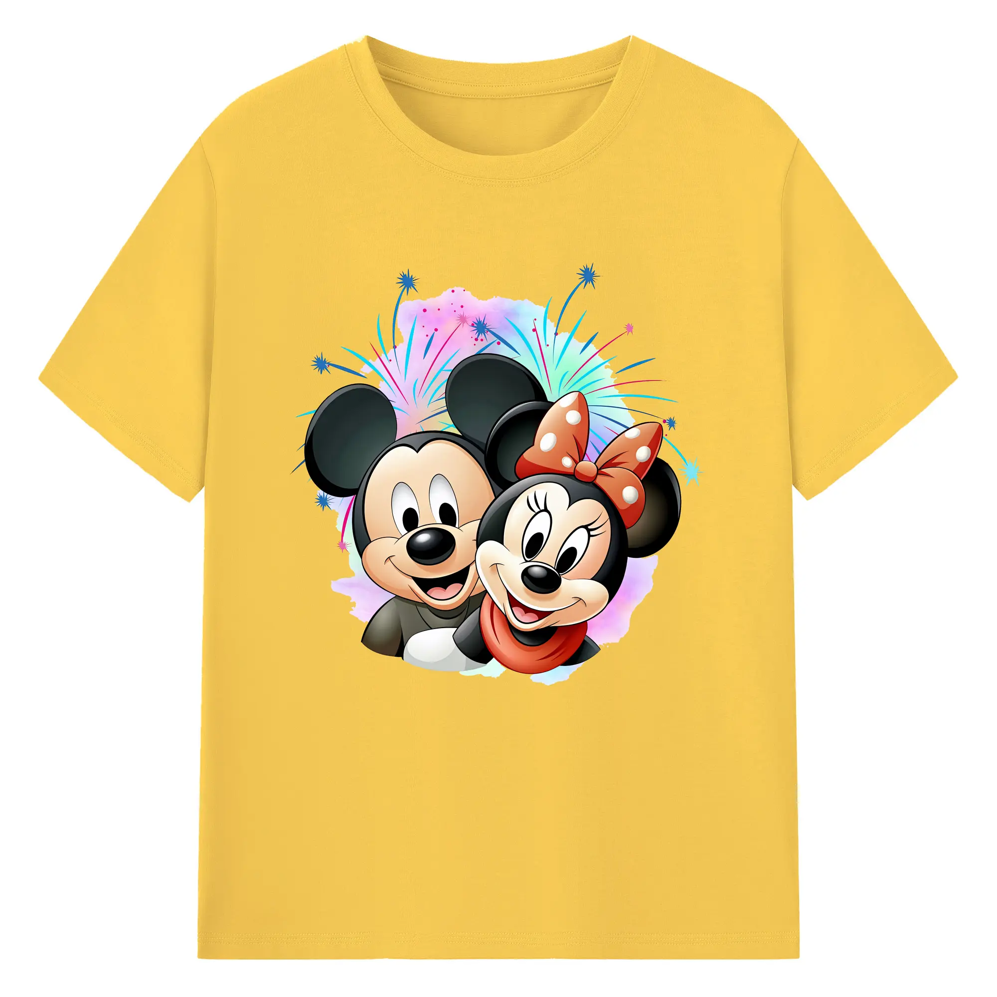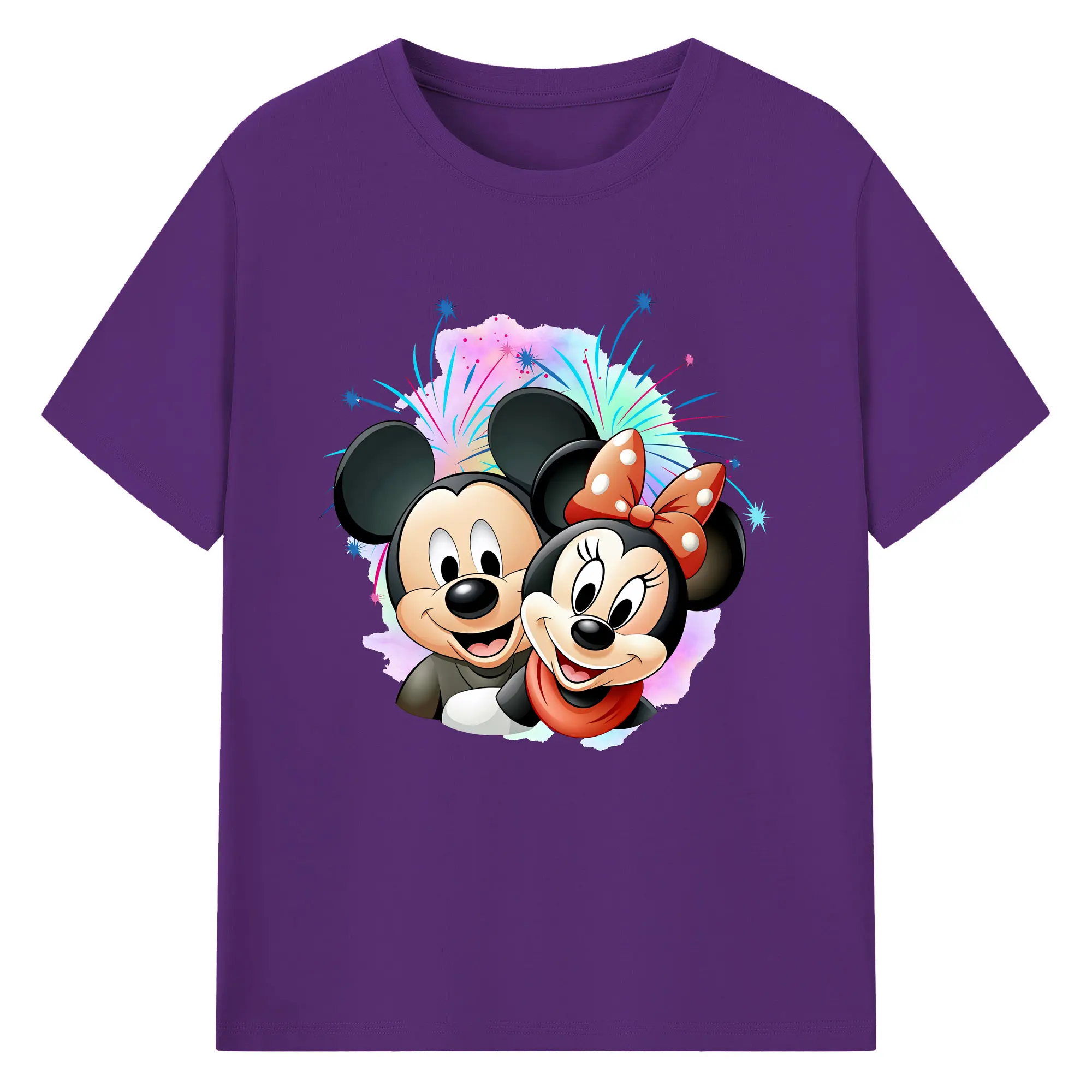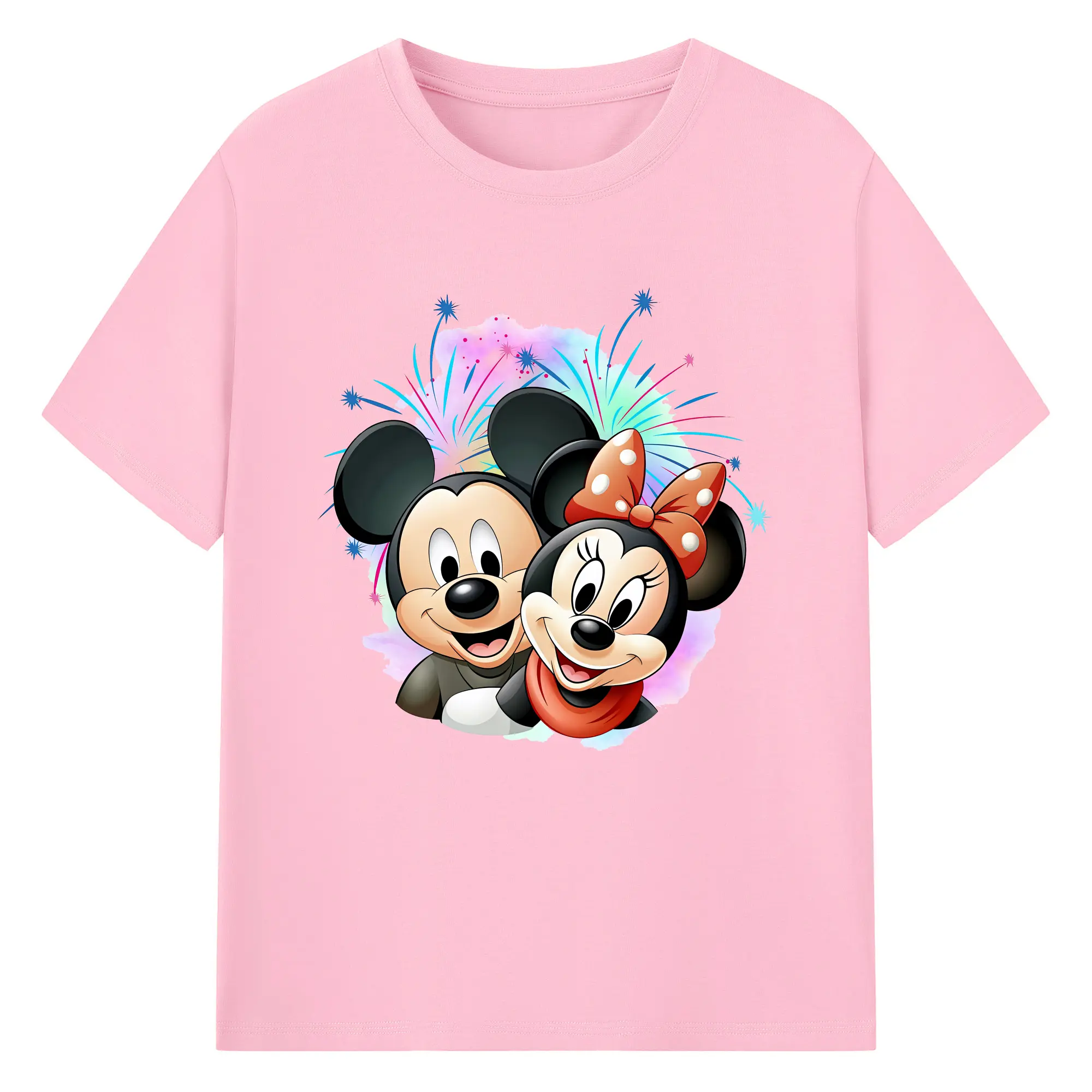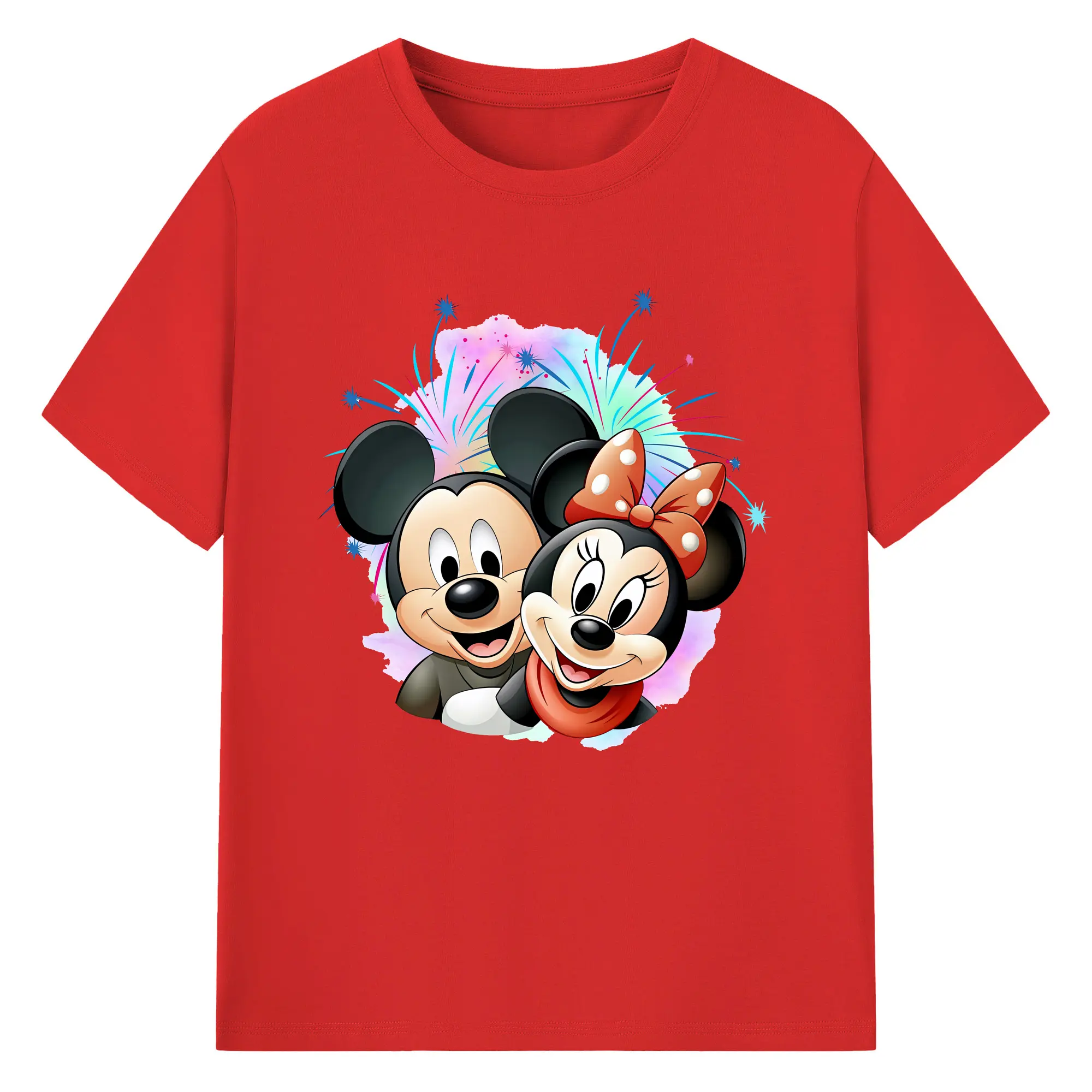 ミッキー&ミニーラブデザイン ハートモチーフ - 綿100% 半袖Tシャツ ・ フロントプリント ・ 快適 通気性 ・ 日常使い 散歩 スポーツ用