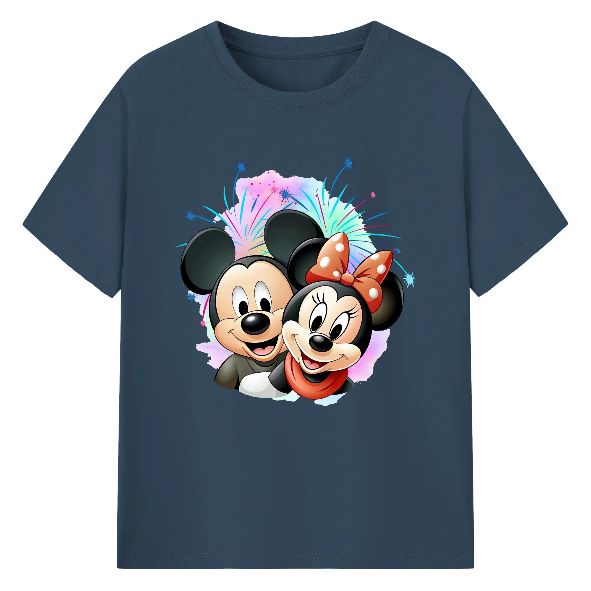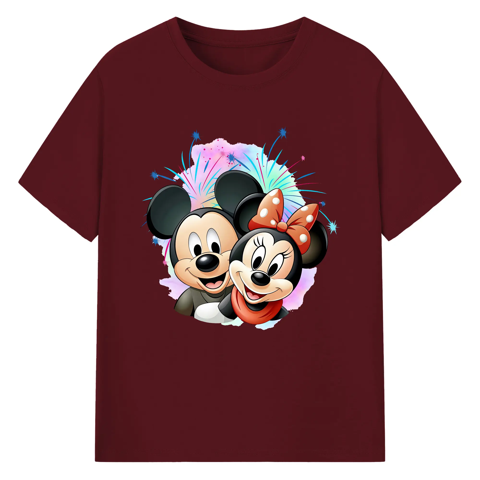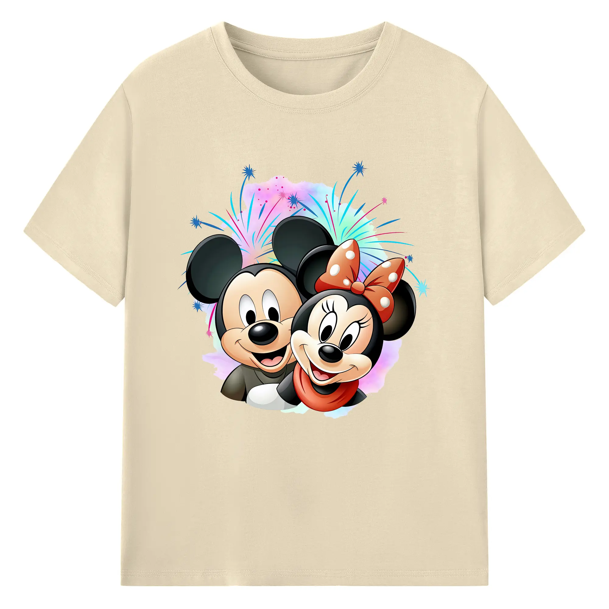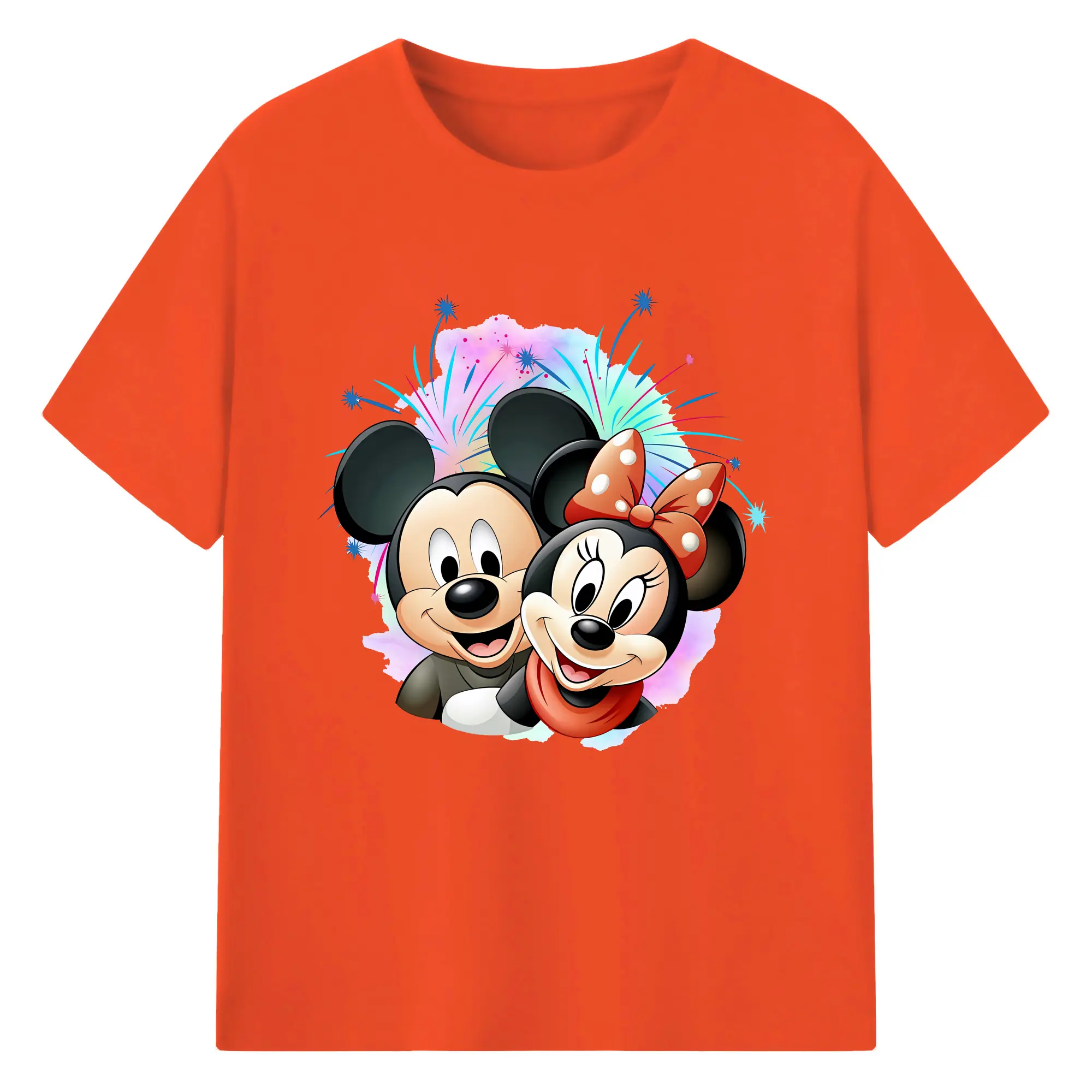 ミッキー&ミニーラブデザイン ハートモチーフ - 綿100% 半袖Tシャツ ・ フロントプリント ・ 快適 通気性 ・ 日常使い 散歩 スポーツ用
