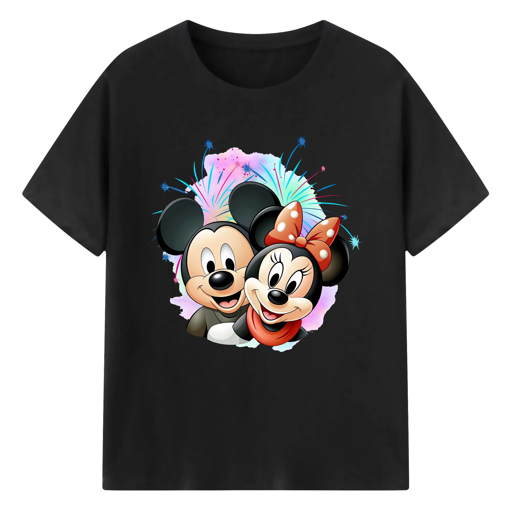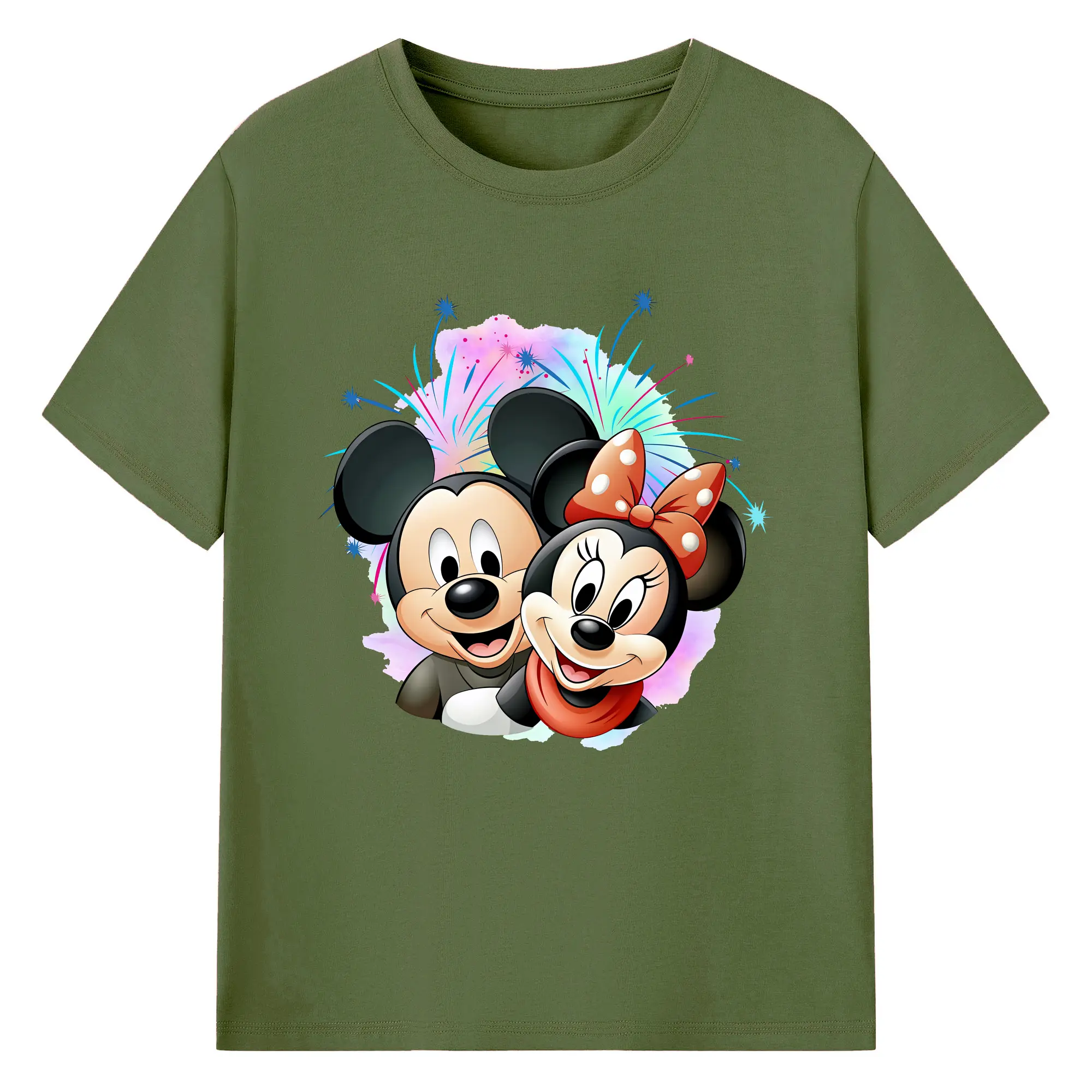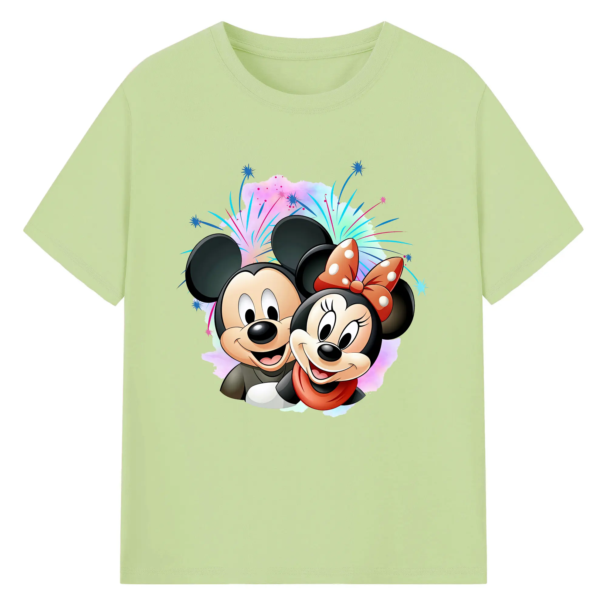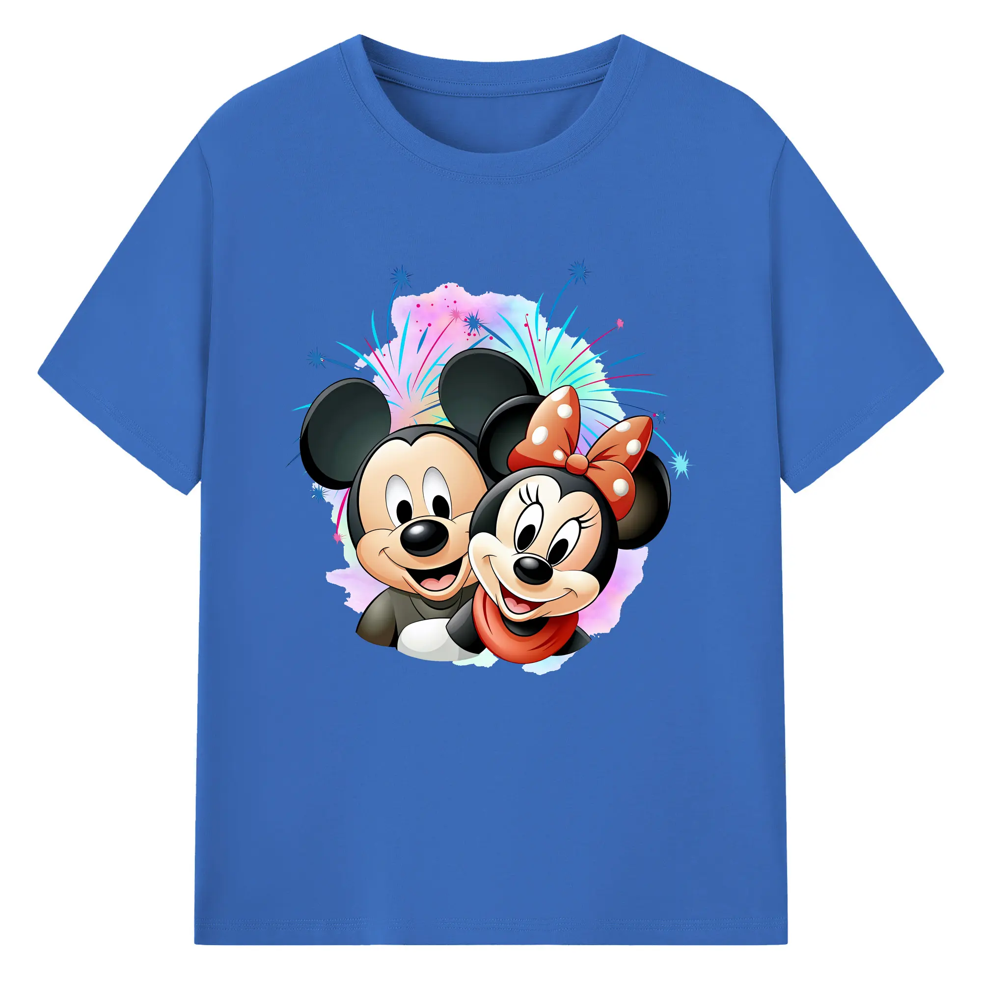 ミッキー&ミニーラブデザイン ハートモチーフ - 綿100% 半袖Tシャツ ・ フロントプリント ・ 快適 通気性 ・ 日常使い 散歩 スポーツ用