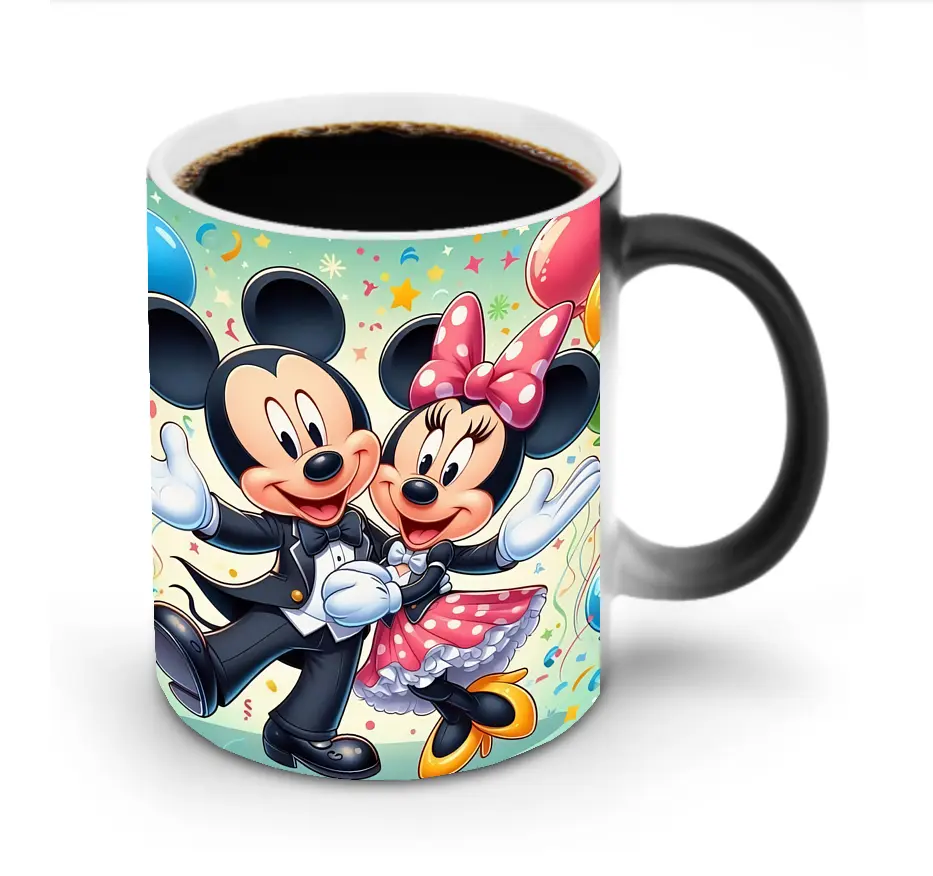 ミッキー&ミニー カラフルバルーン ハッピー オリジナルデザイン - 変色マグカップ ・ セラミック ・ 熱転写プリント ・ 耐久性 高品質 ・ ギフト・自宅用 コーヒー お茶