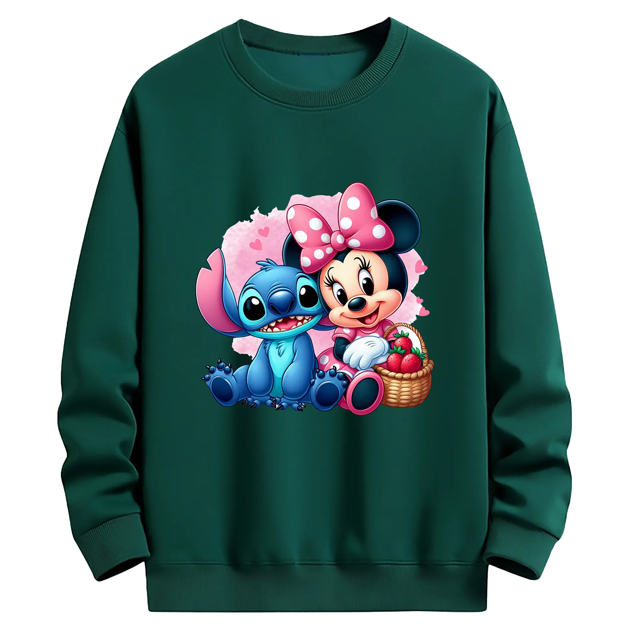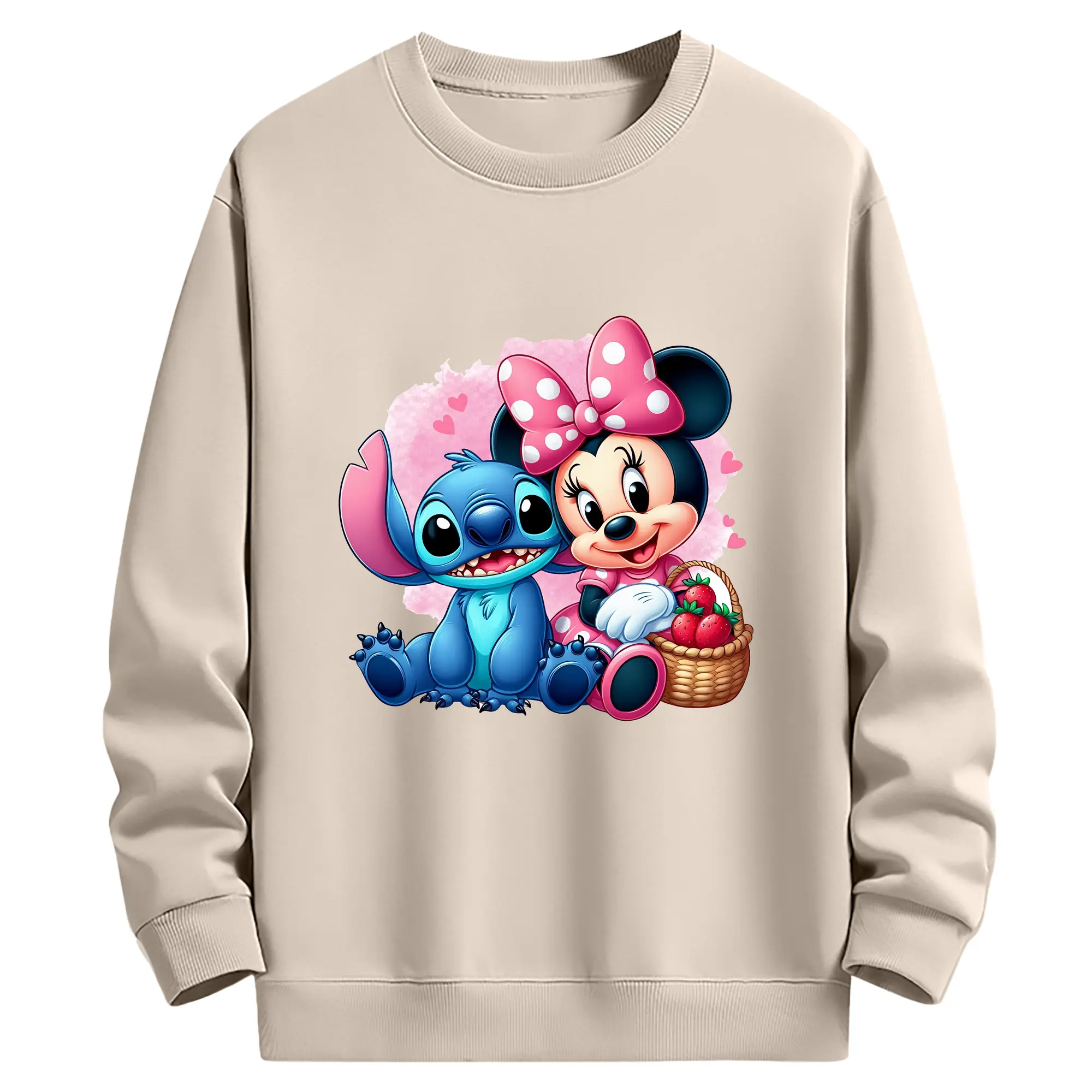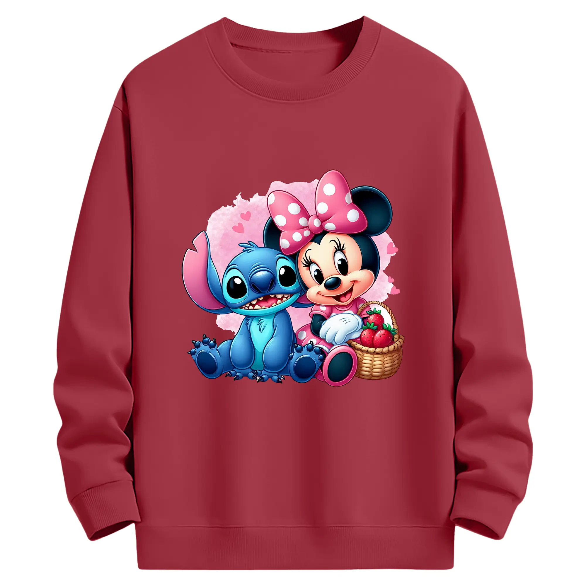 ミッキー&ミニーフラワーデザイン カラフルイラスト - 高品質 クルーネック スウェット ・ コットン59% ポリエステル41% ・ ユニセックス 長袖 トレーナー ・ カジュアル デイリー スポーツ 散歩用