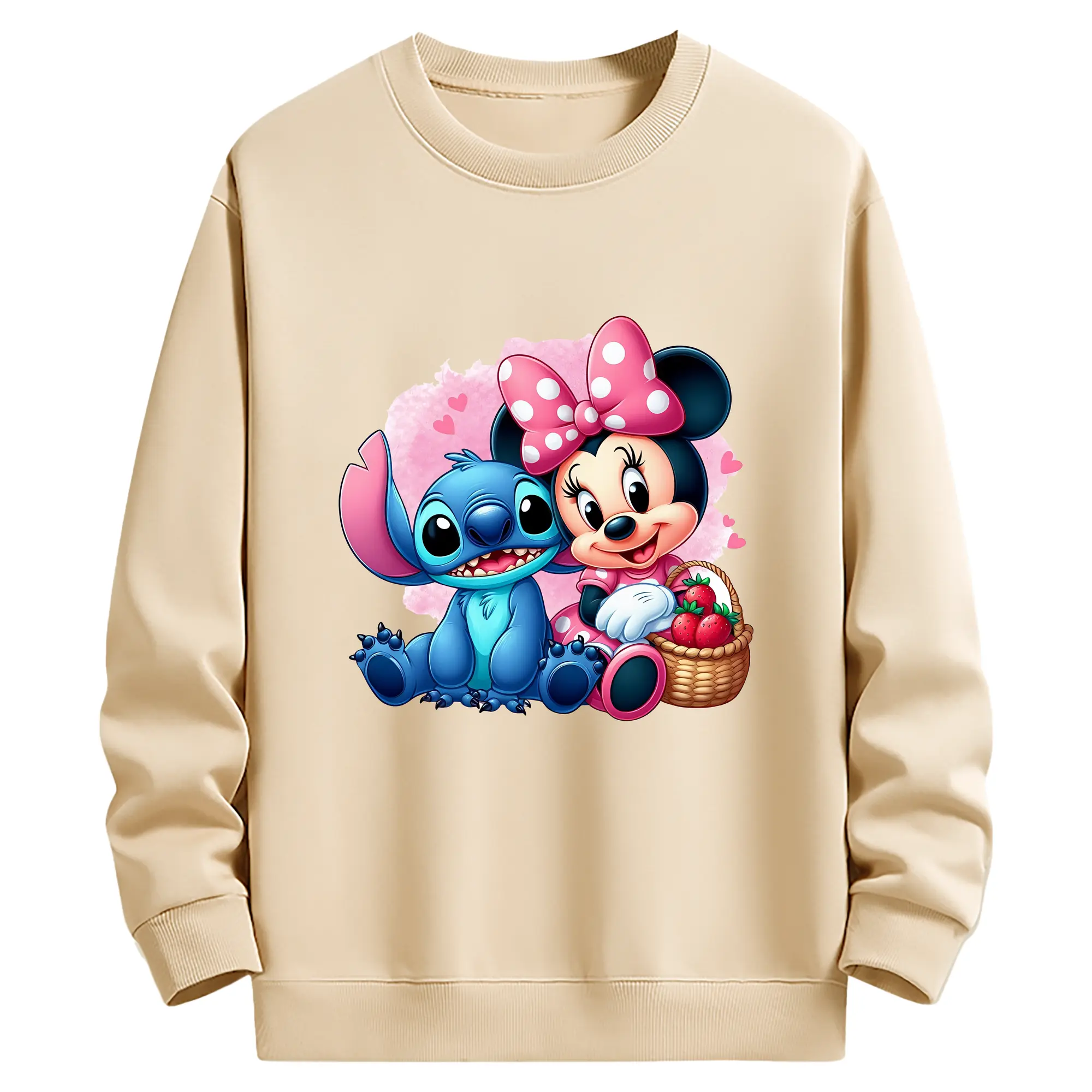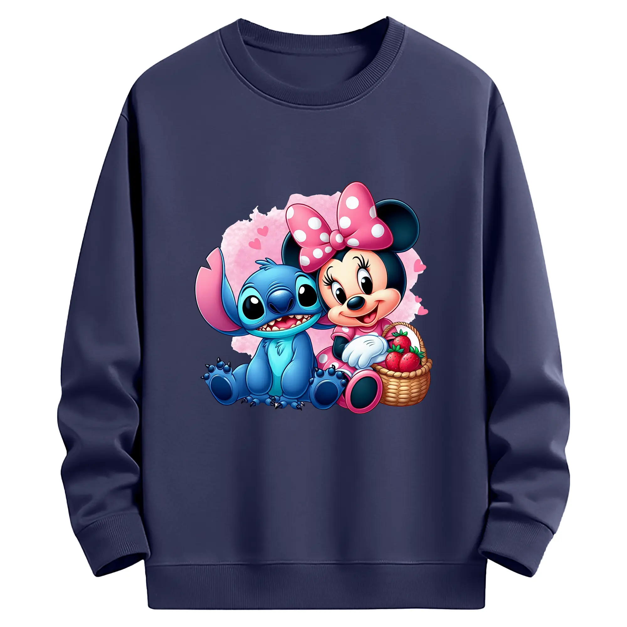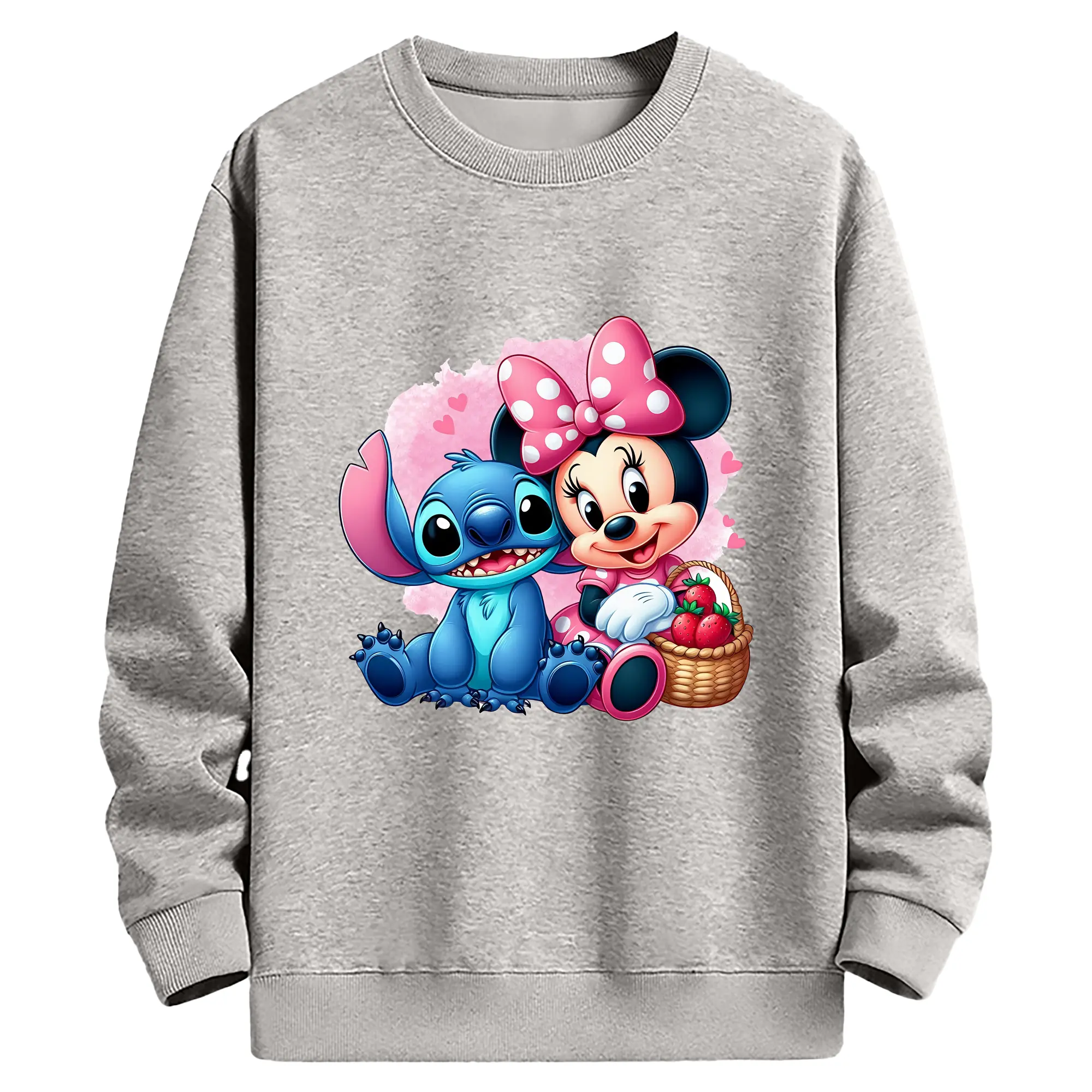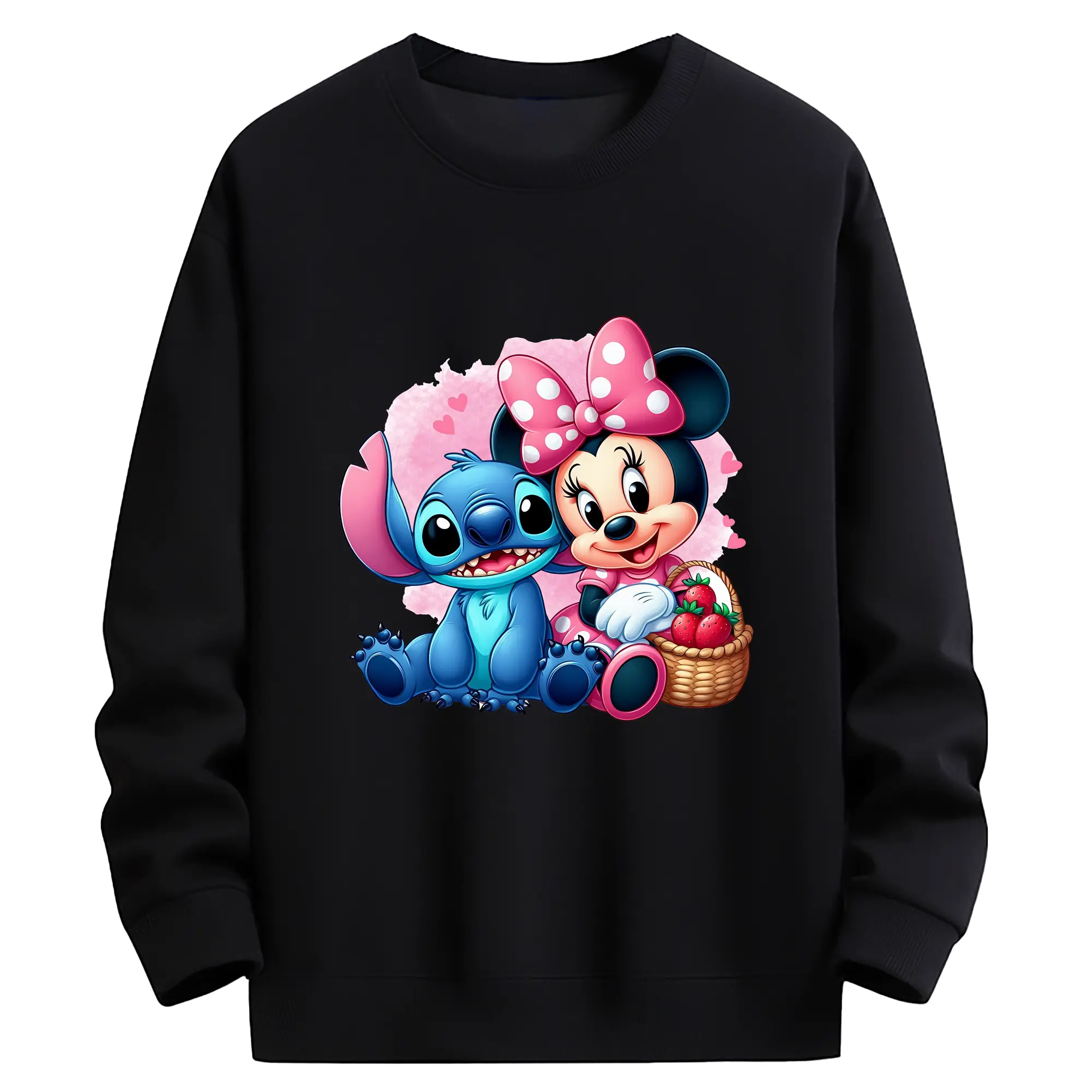 ミッキー&ミニーフラワーデザイン カラフルイラスト - 高品質 クルーネック スウェット ・ コットン59% ポリエステル41% ・ ユニセックス 長袖 トレーナー ・ カジュアル デイリー スポーツ 散歩用