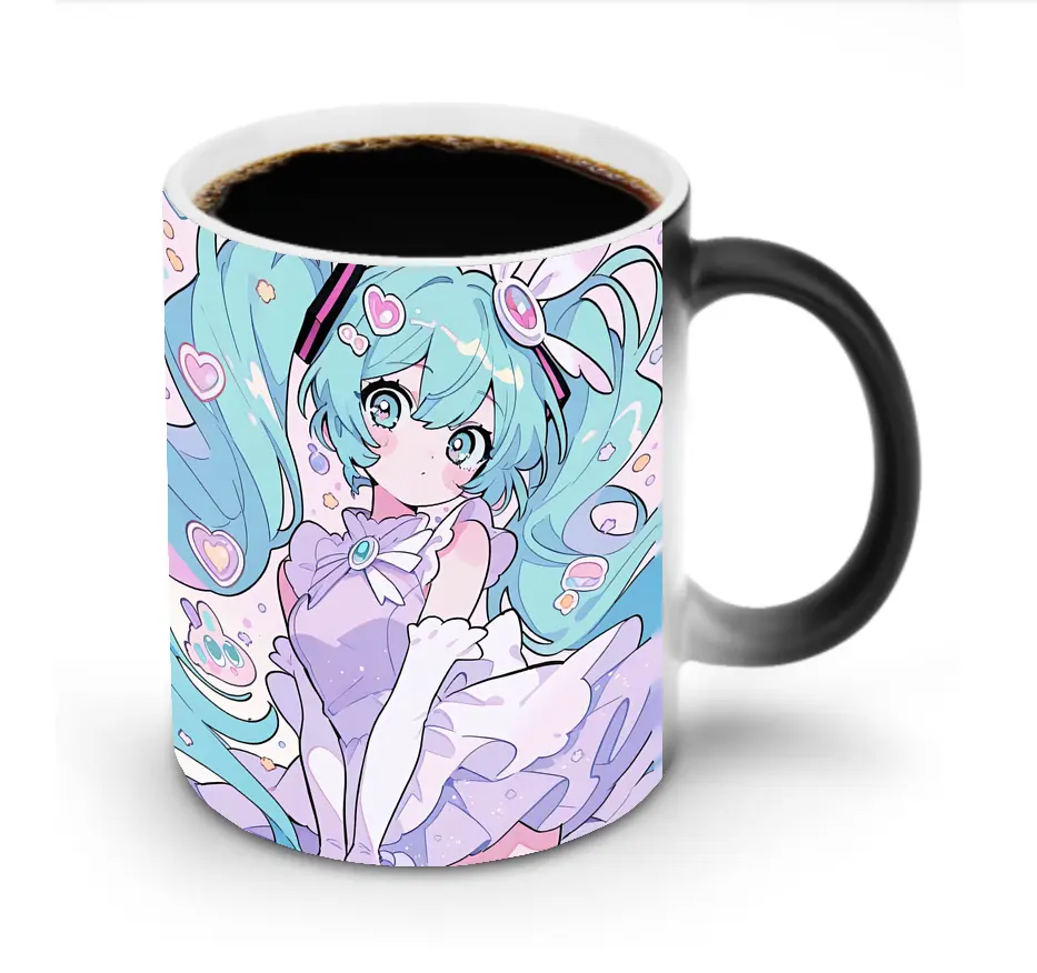 初音ミクハートモチーフ ガーリースタイル 可愛いオリジナルデザイン - 変色マグカップ ・ セラミック ・ 熱転写プリント ・ 耐久性 高品質 ・ ギフト・自宅用 コーヒー お茶