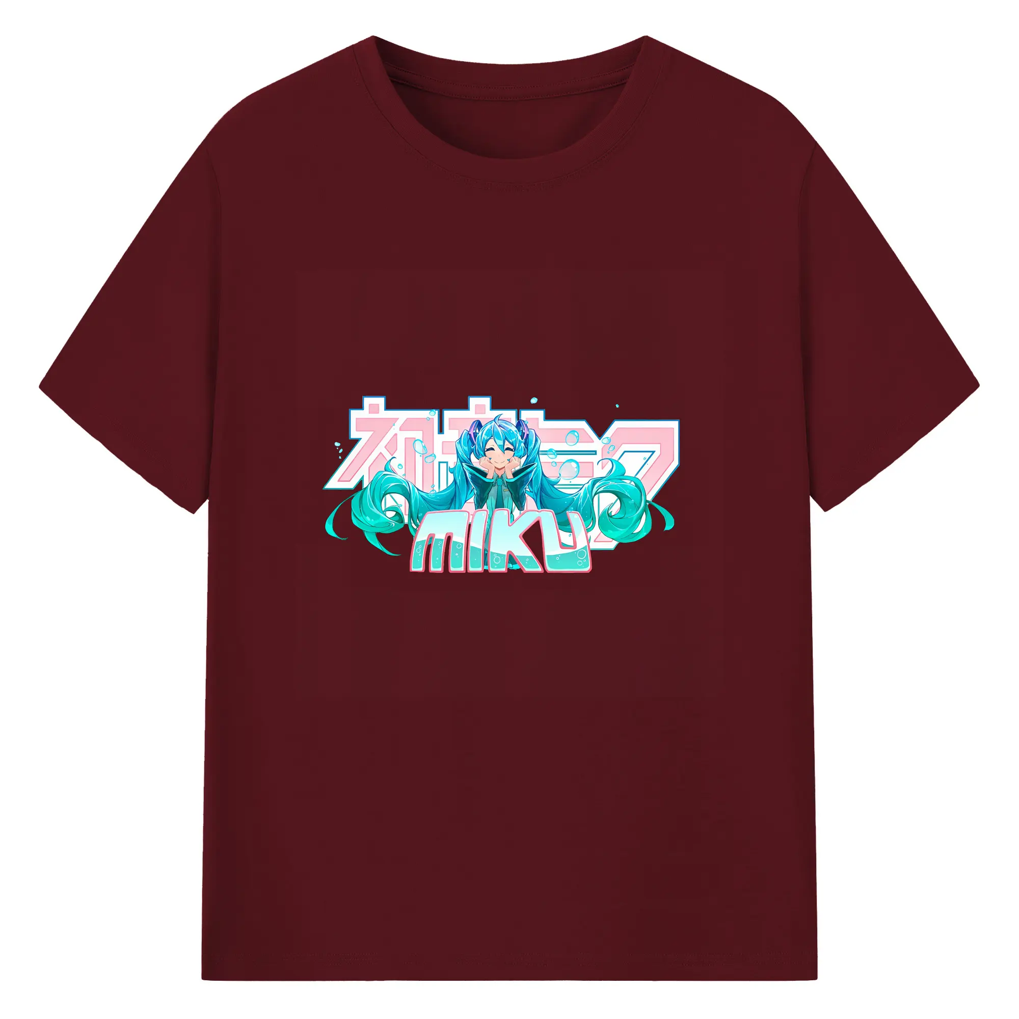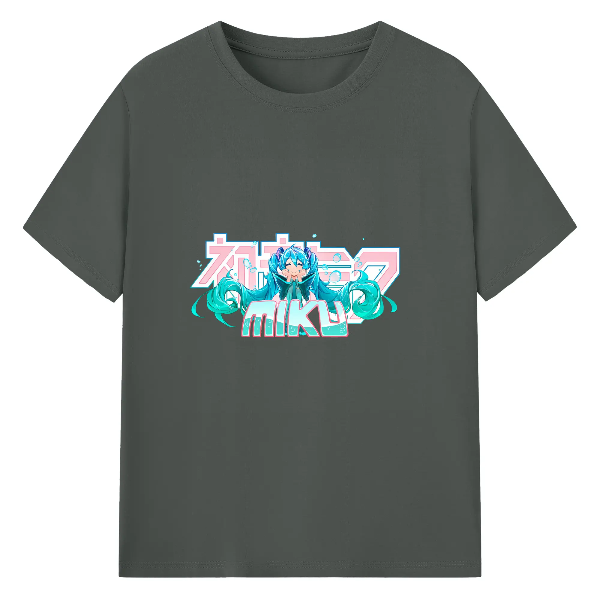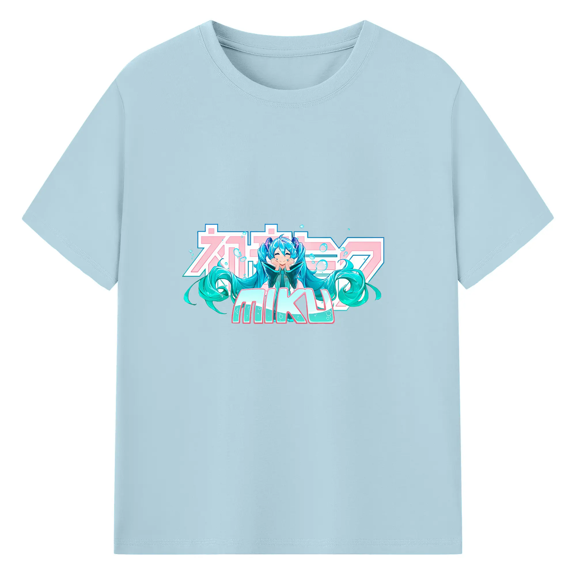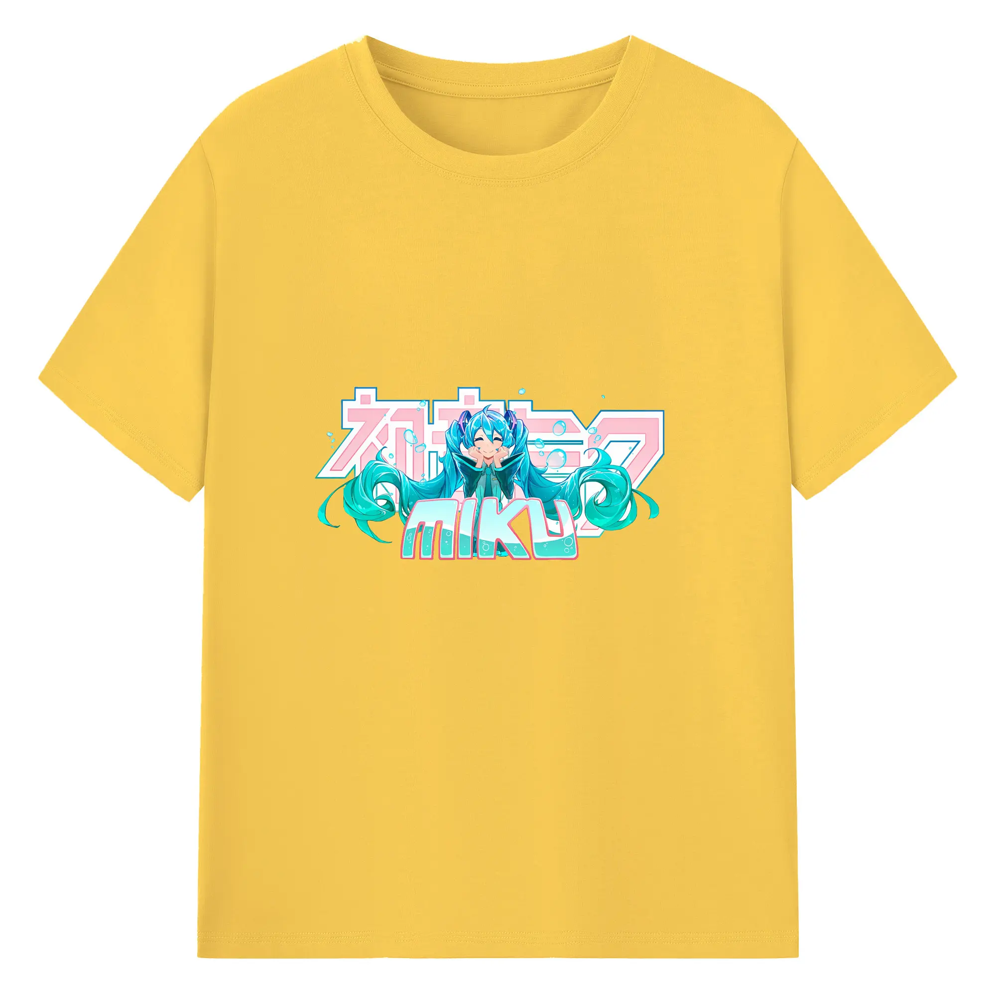 重音テト カートゥーン風 シンプル オリジナルデザイン - 綿100% 半袖Tシャツ ・ フロントプリント ・ 快適 通気性 ・ 日常使い 散歩 スポーツ用