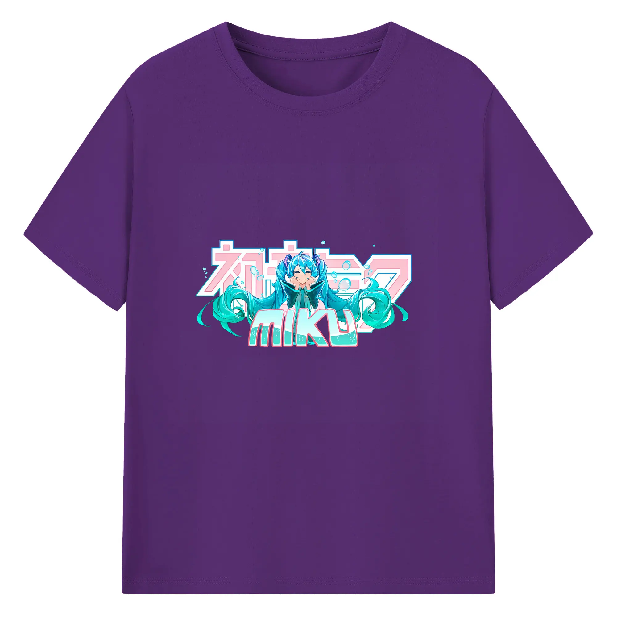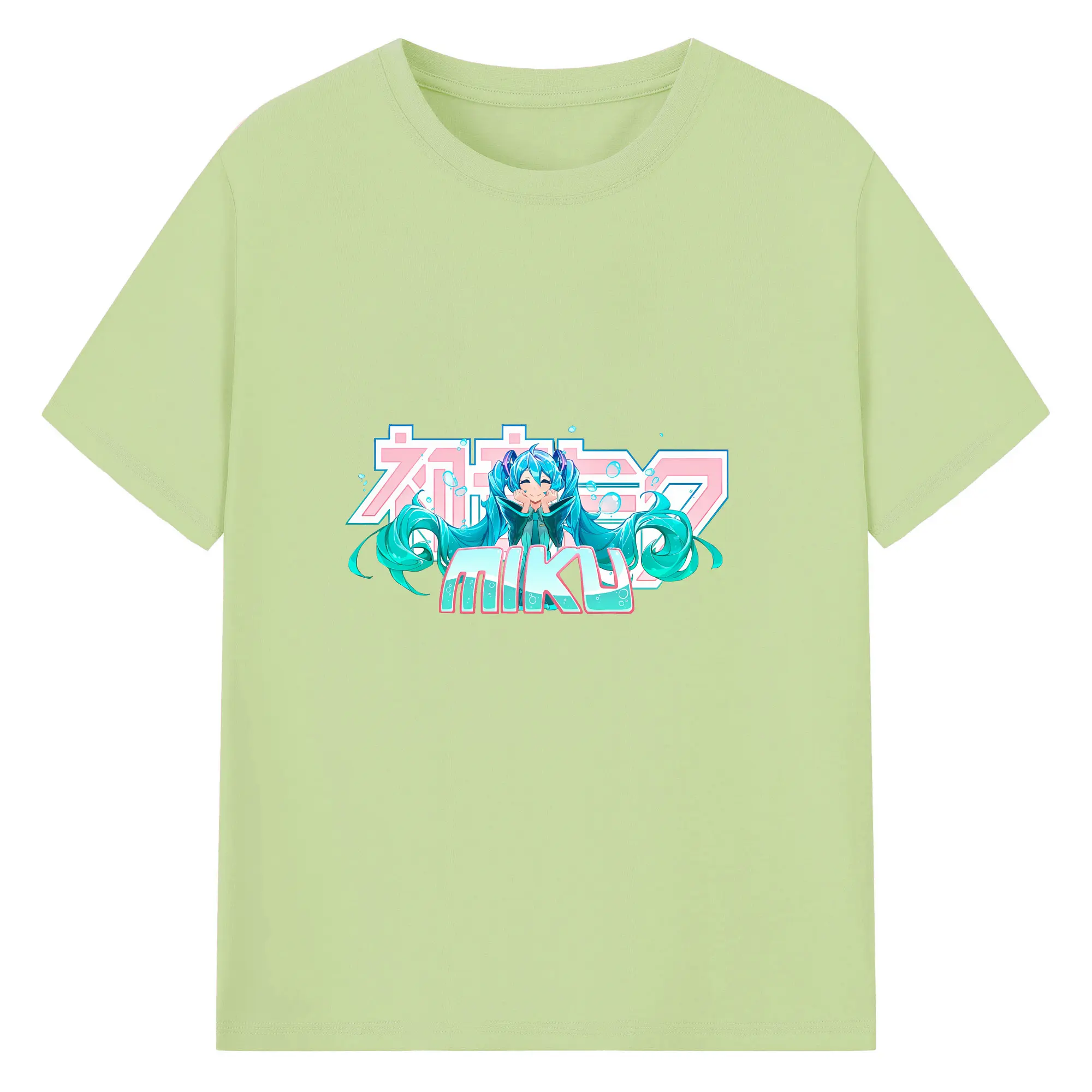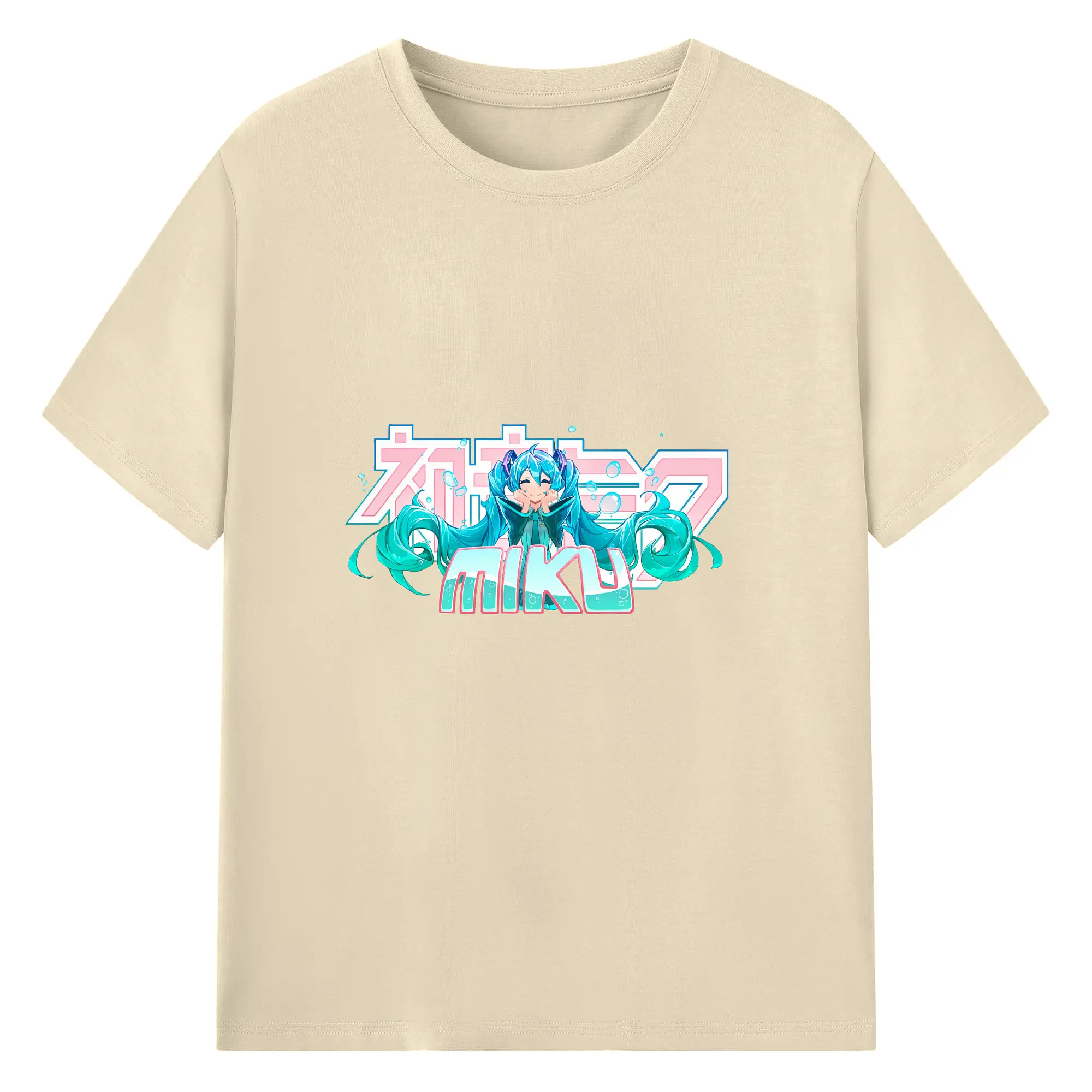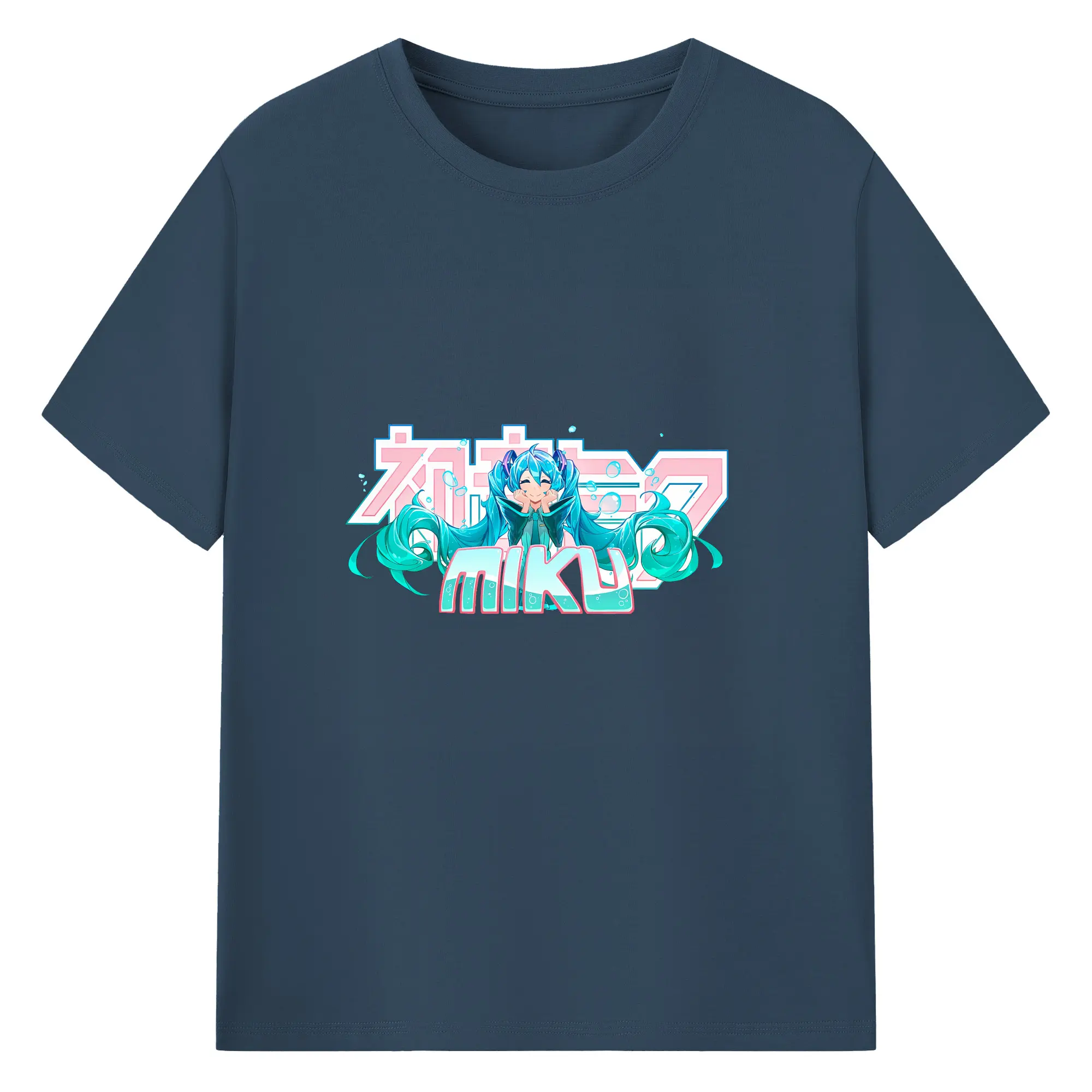 重音テト カートゥーン風 シンプル オリジナルデザイン - 綿100% 半袖Tシャツ ・ フロントプリント ・ 快適 通気性 ・ 日常使い 散歩 スポーツ用