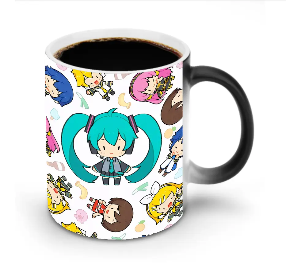 初音ミク可愛いキャラクター集合 フルーツモチーフ 癒し系オリジナルデザイン - 変色マグカップ ・ セラミック ・ 熱転写プリント ・ 耐久性 高品質 ・ ギフト・自宅用 コーヒー お茶