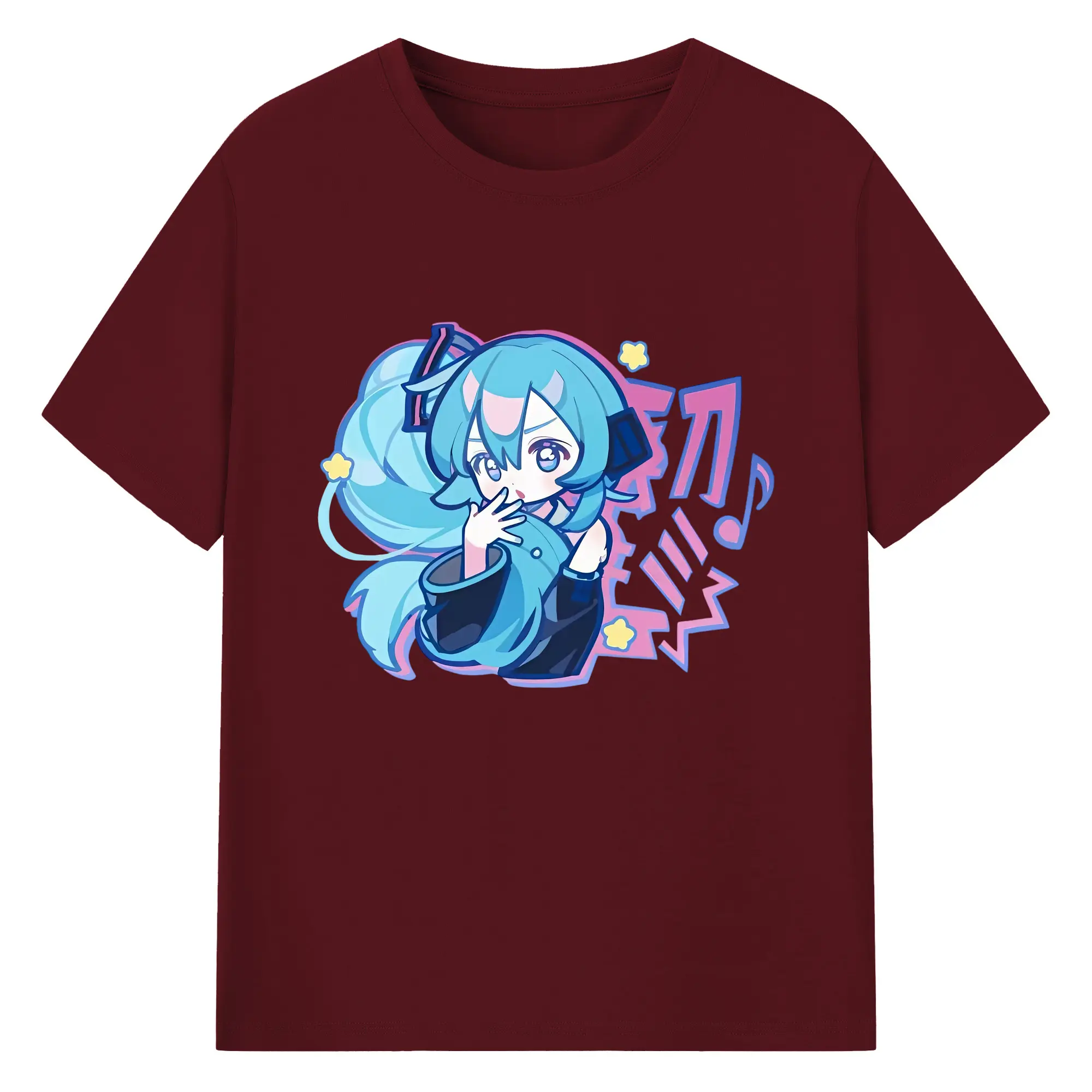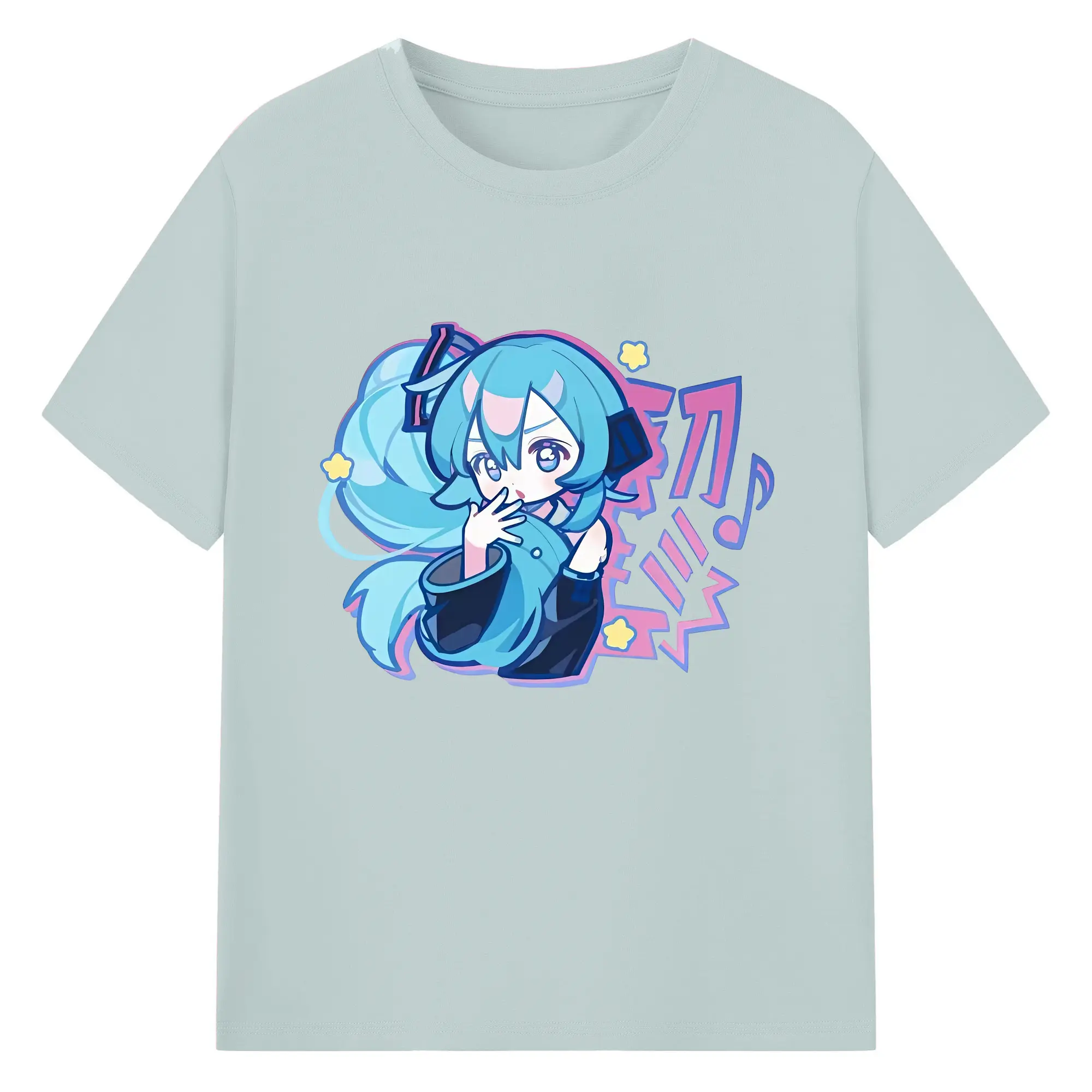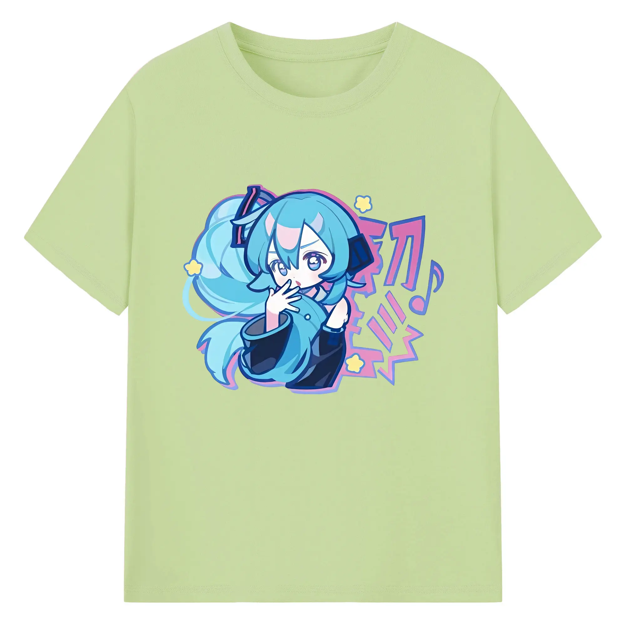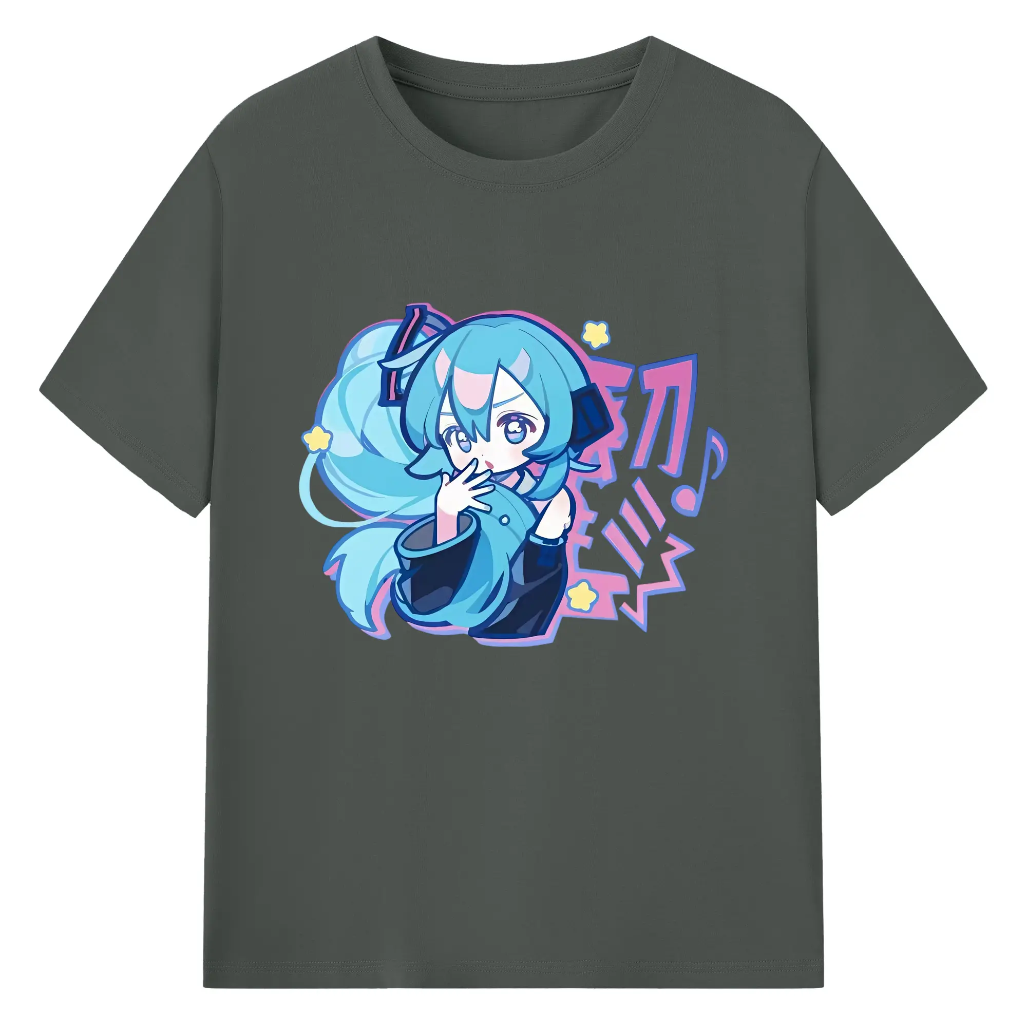 重音テト カートゥーン風 シンプル オリジナルデザイン - 綿100% 半袖Tシャツ ・ フロントプリント ・ 快適 通気性 ・ 日常使い 散歩 スポーツ用