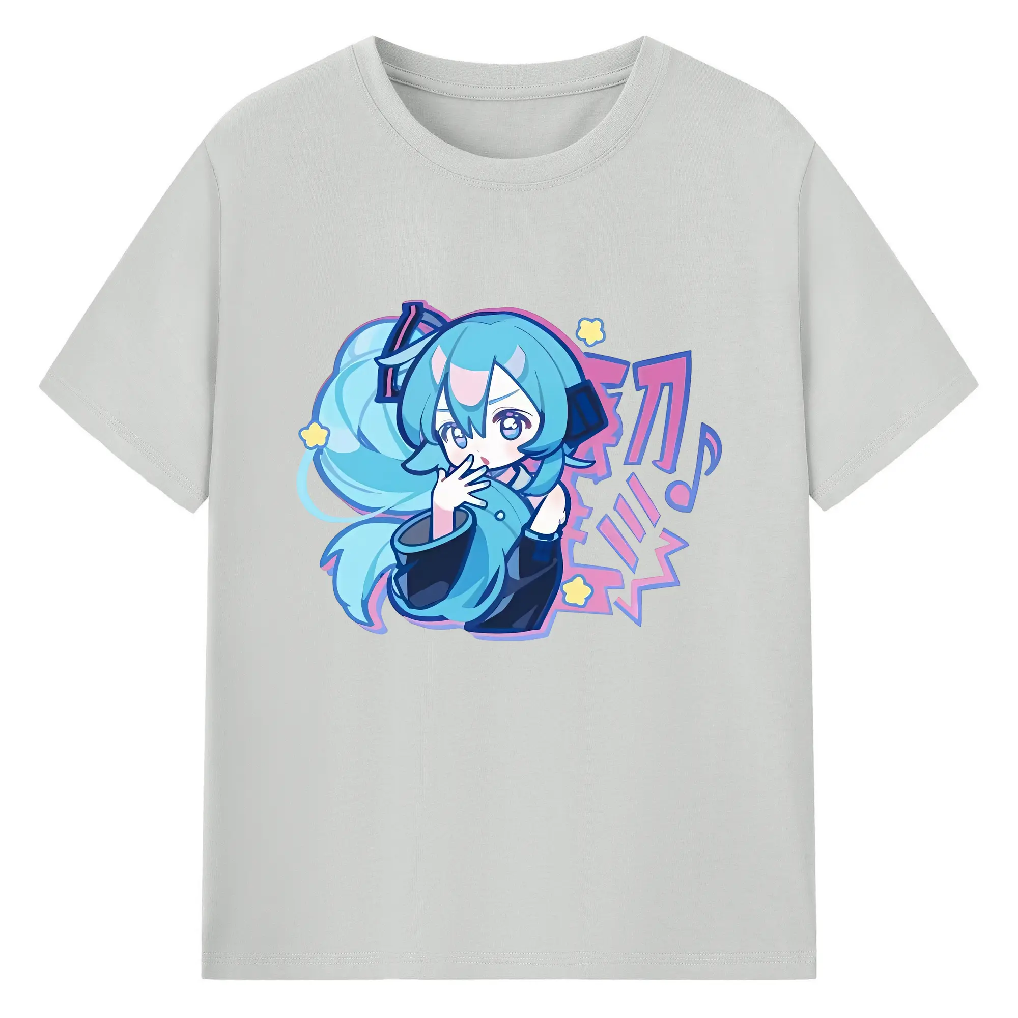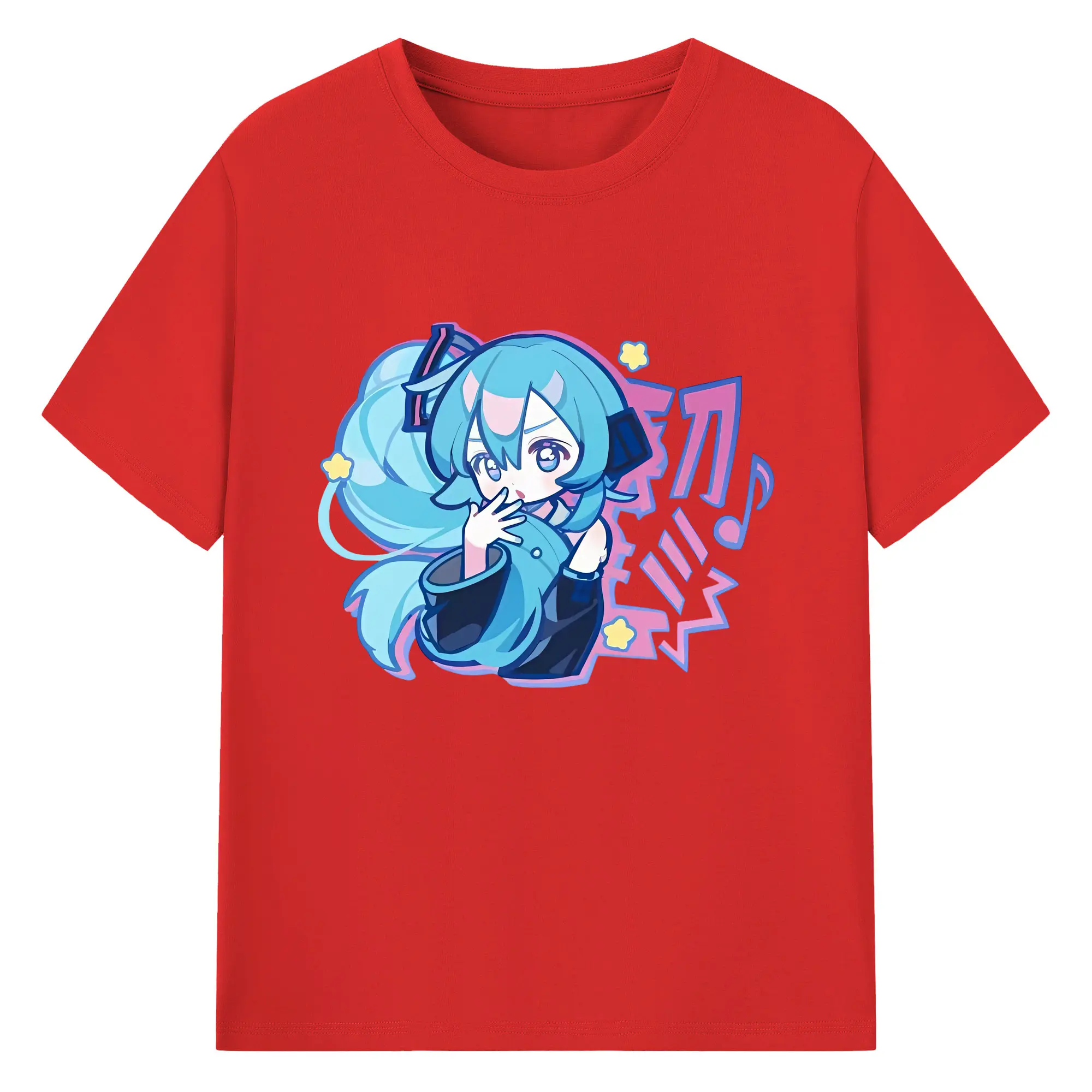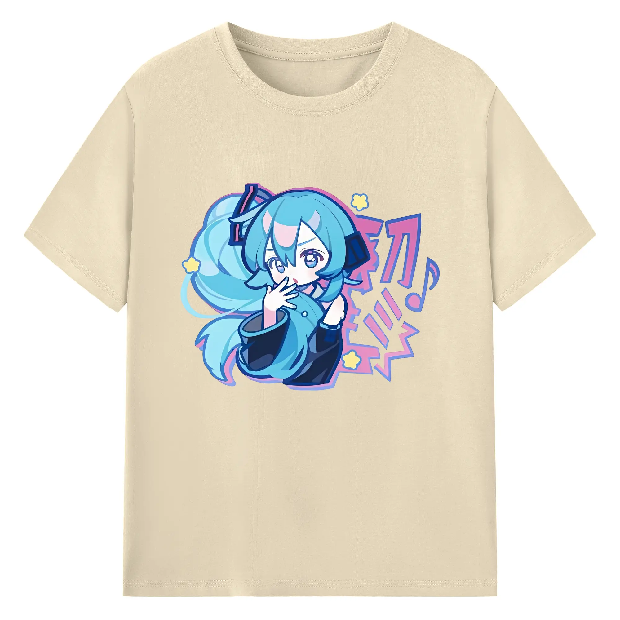 重音テト カートゥーン風 シンプル オリジナルデザイン - 綿100% 半袖Tシャツ ・ フロントプリント ・ 快適 通気性 ・ 日常使い 散歩 スポーツ用