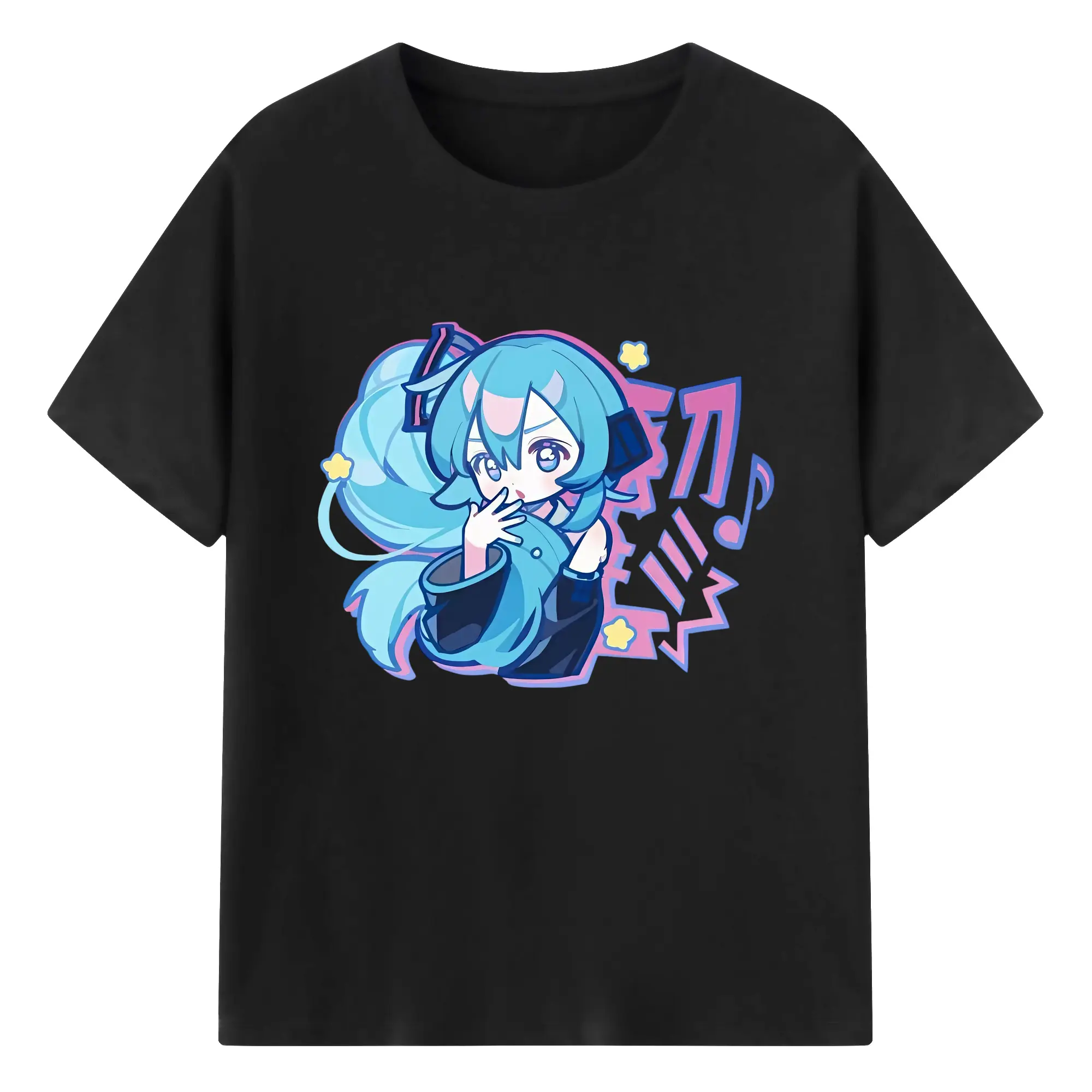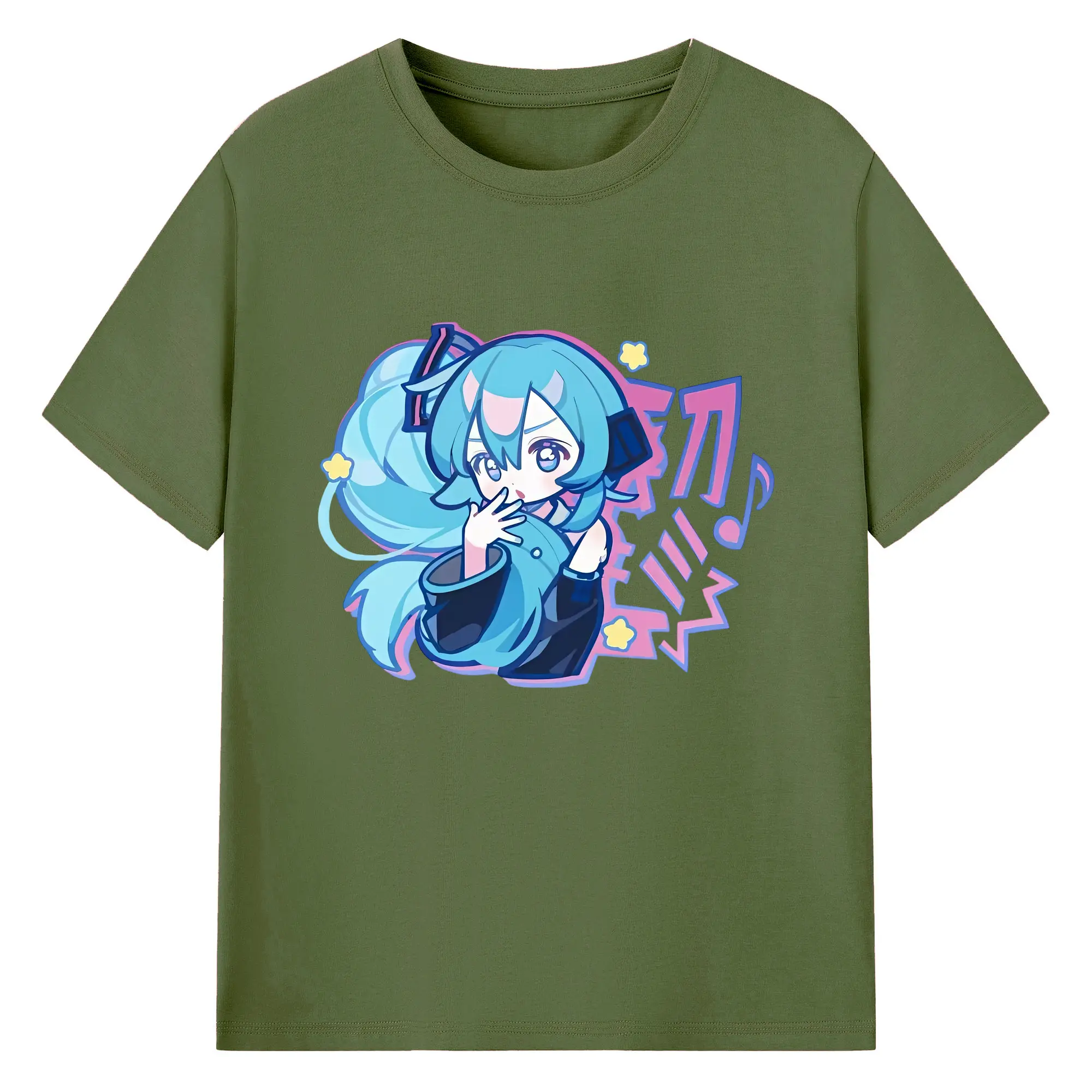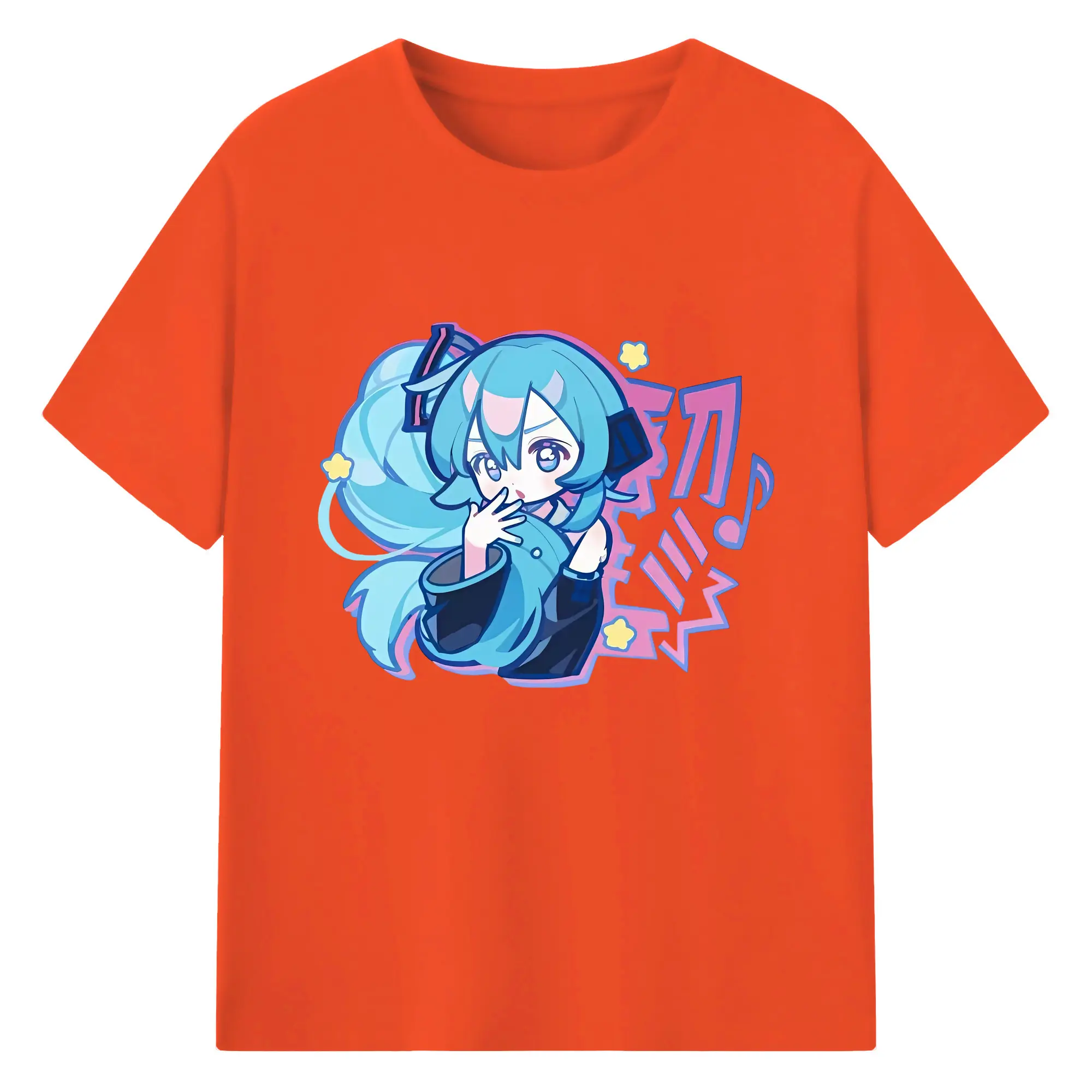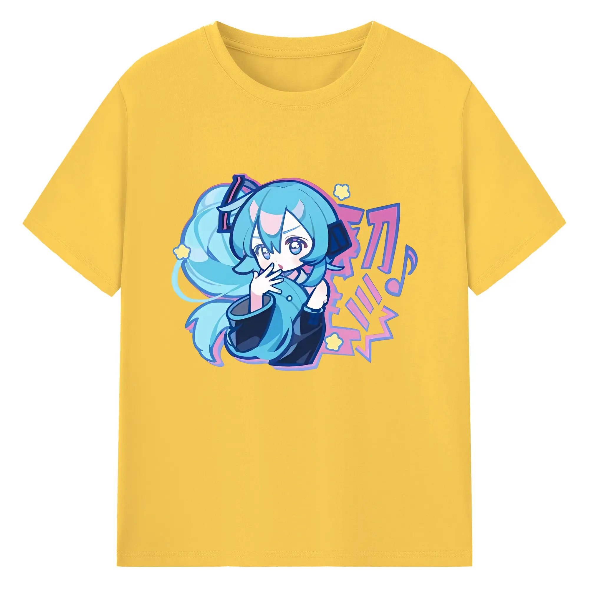 重音テト カートゥーン風 シンプル オリジナルデザイン - 綿100% 半袖Tシャツ ・ フロントプリント ・ 快適 通気性 ・ 日常使い 散歩 スポーツ用