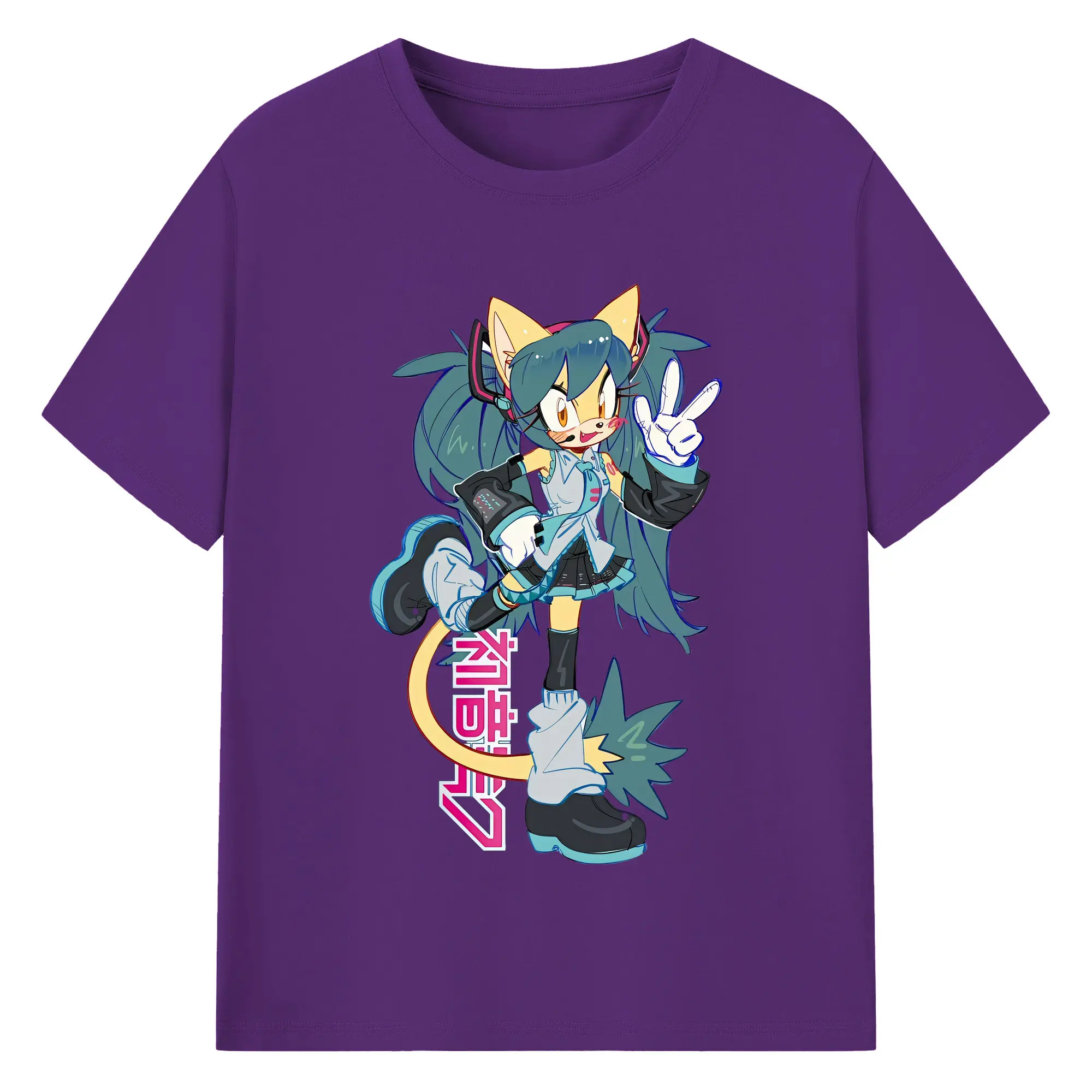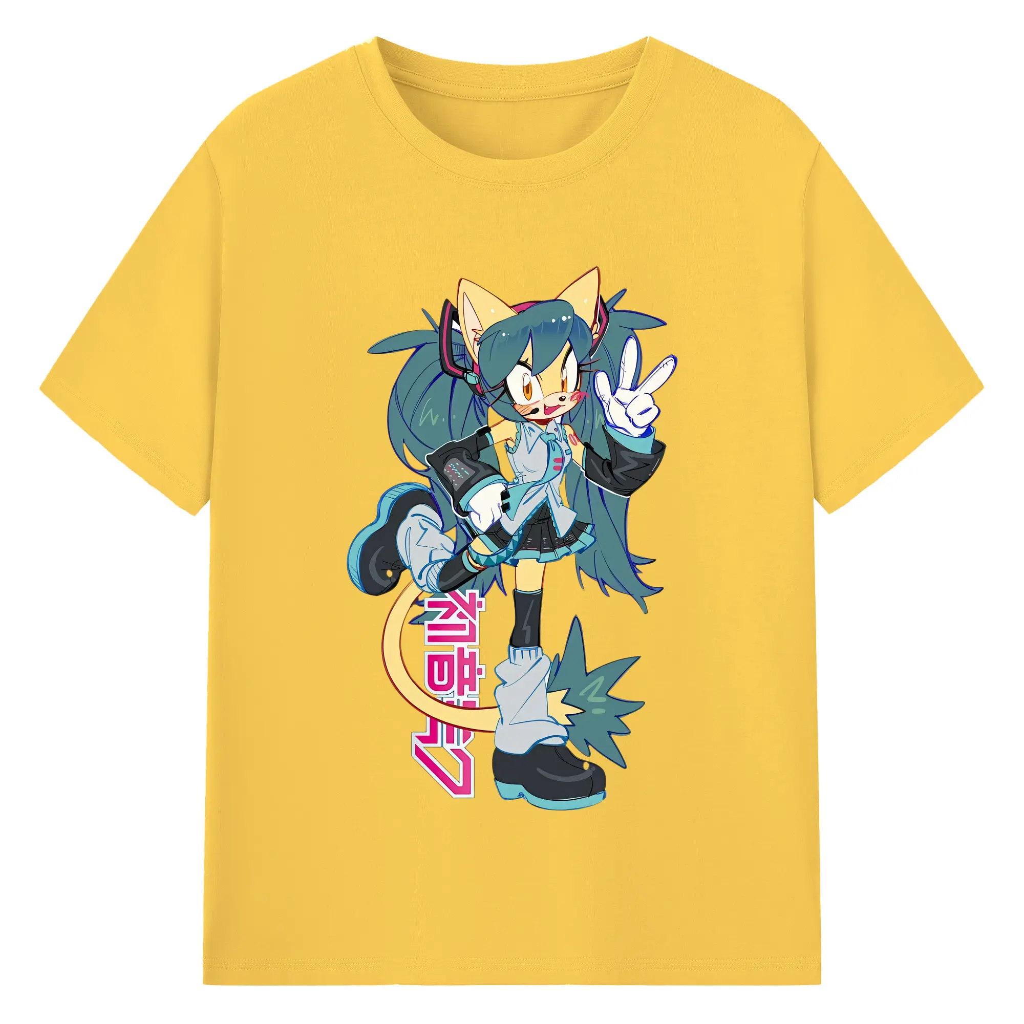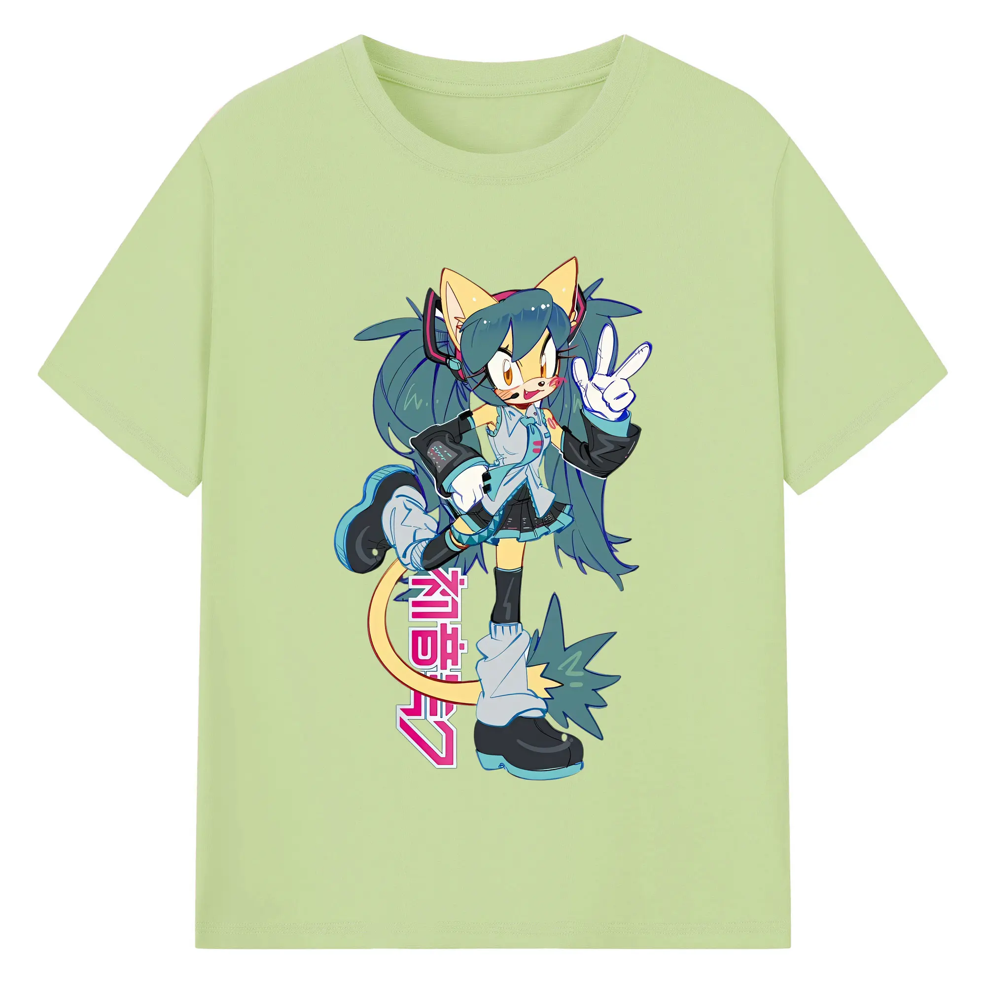 VOCALOID GUMI 猫耳モチーフ オリジナルデザイン - 綿100% 半袖Tシャツ ・ フロントプリント ・ 快適 通気性 ・ 日常使い 散歩 スポーツ用