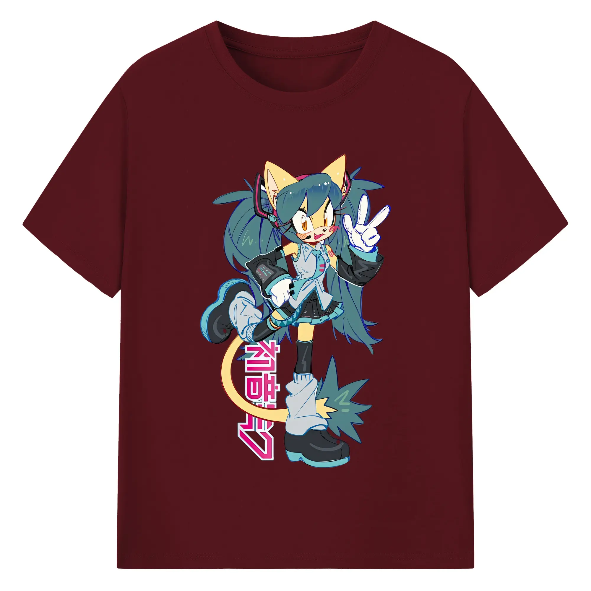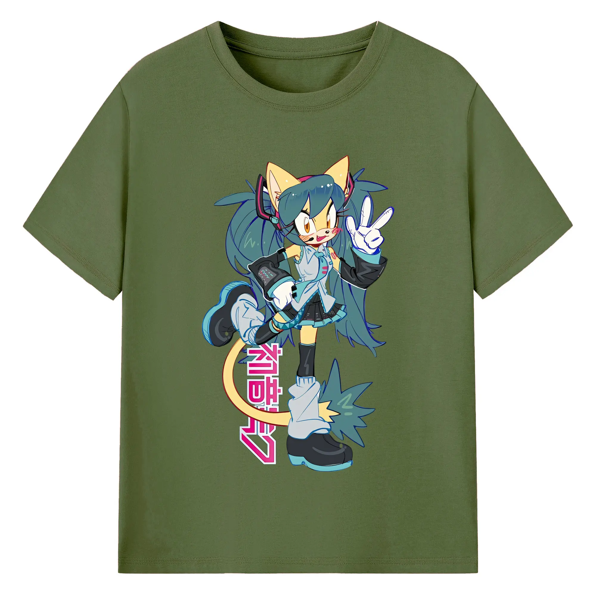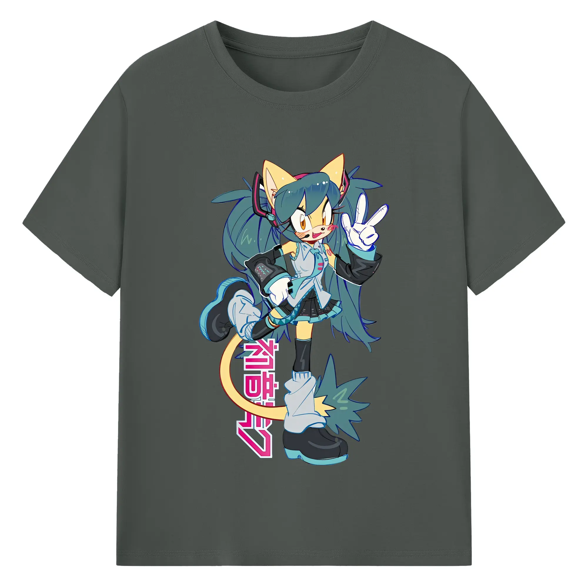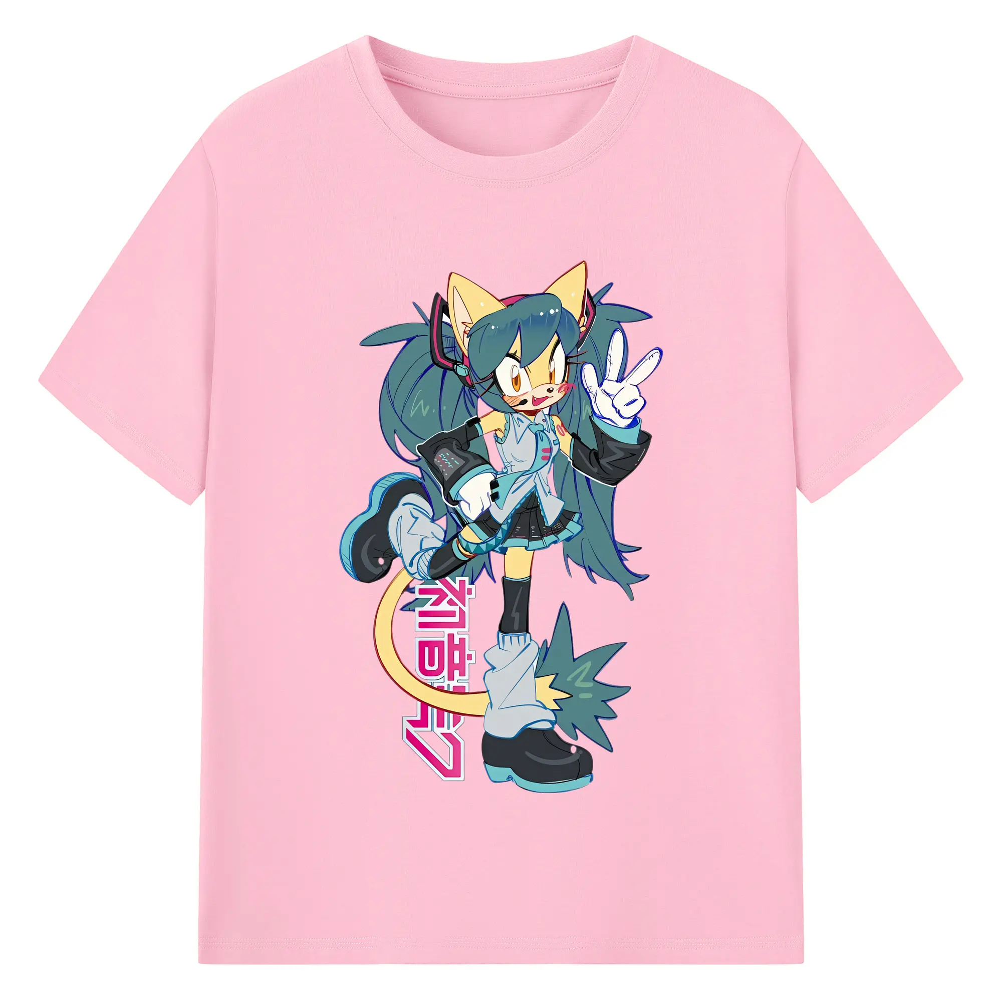VOCALOID GUMI 猫耳モチーフ オリジナルデザイン - 綿100% 半袖Tシャツ ・ フロントプリント ・ 快適 通気性 ・ 日常使い 散歩 スポーツ用