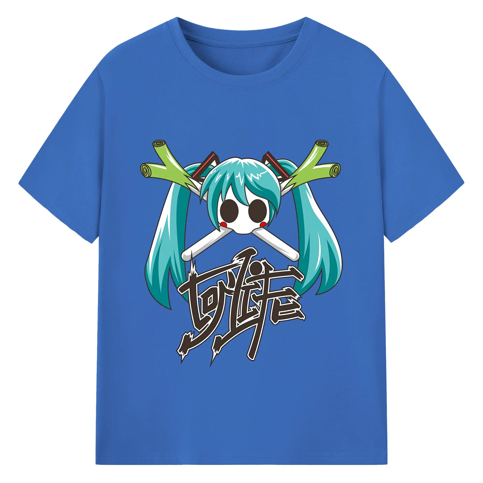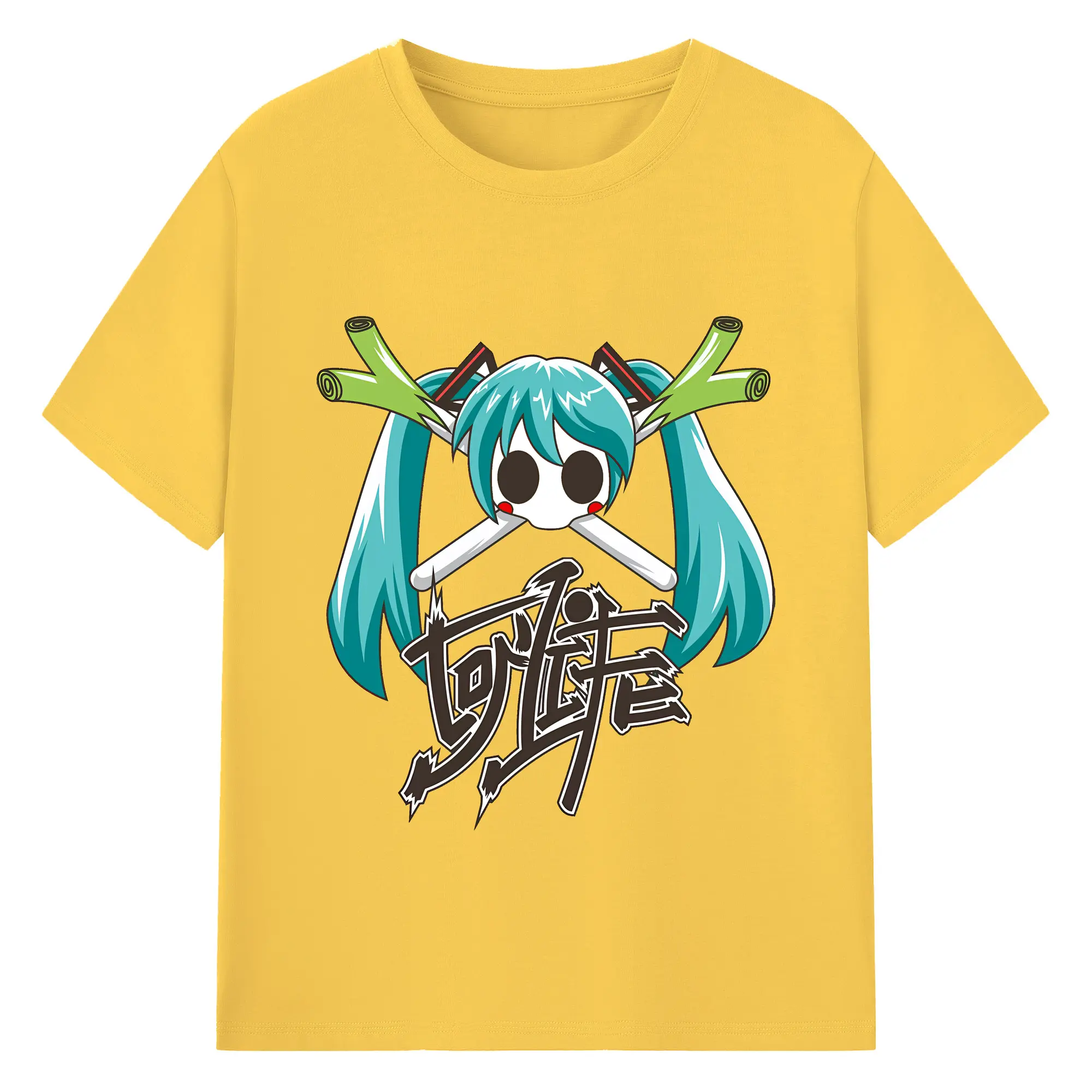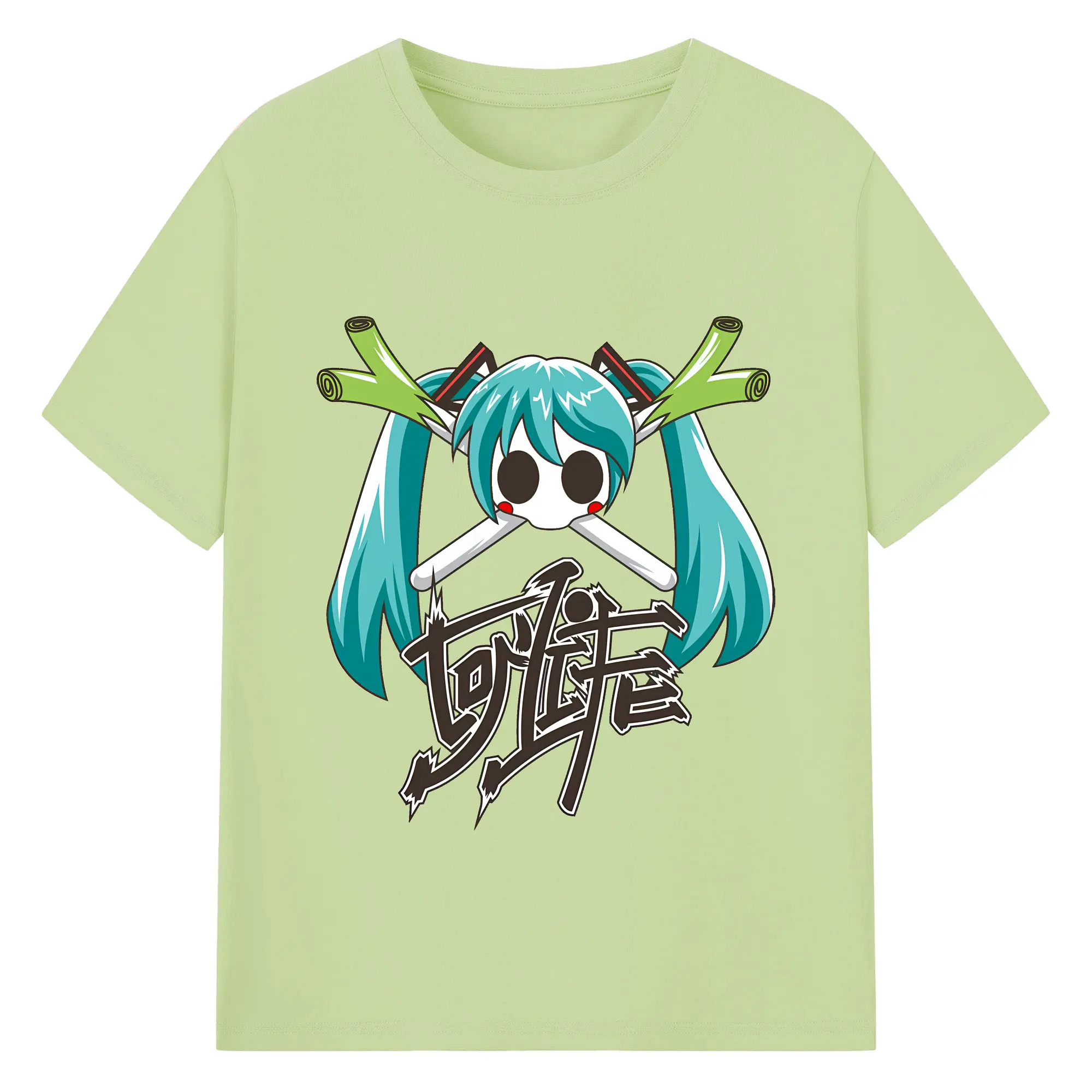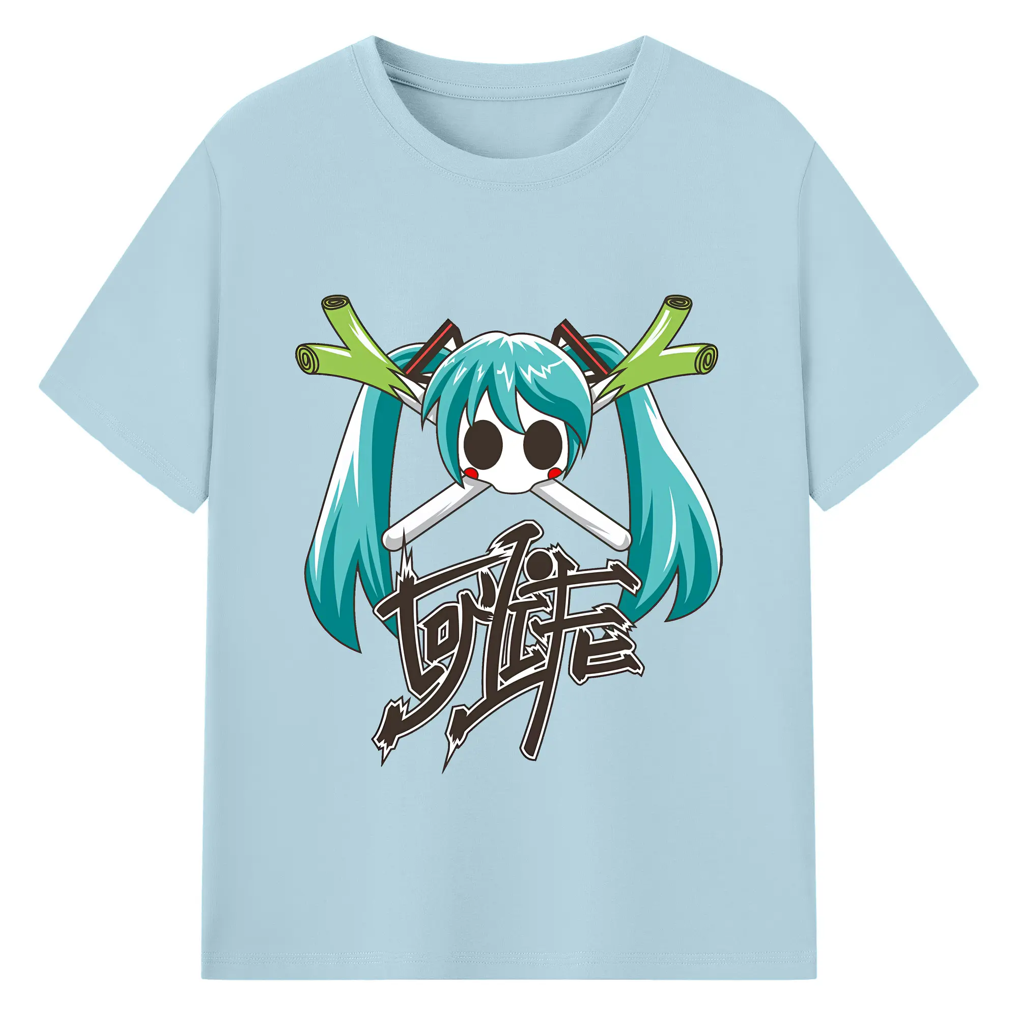 初音ミク カワイイQ版風光の玉 オリジナルデザイン - 綿100% 半袖Tシャツ ・ フロントプリント ・ 快適 通気性 ・ 日常使い 散歩 スポーツ用
