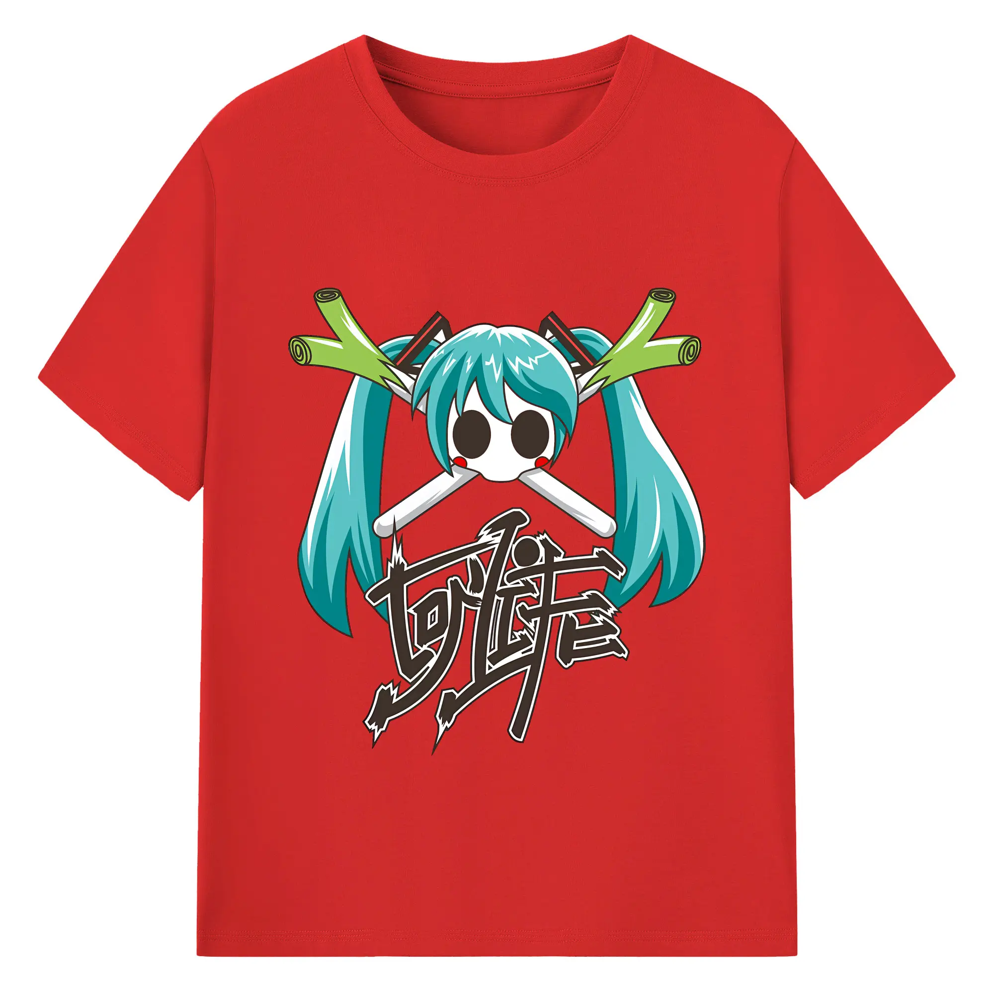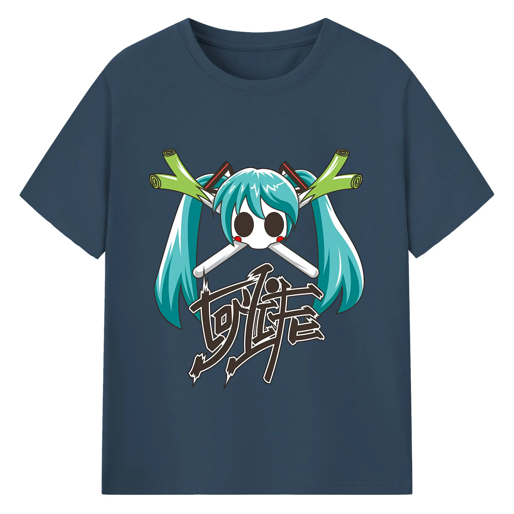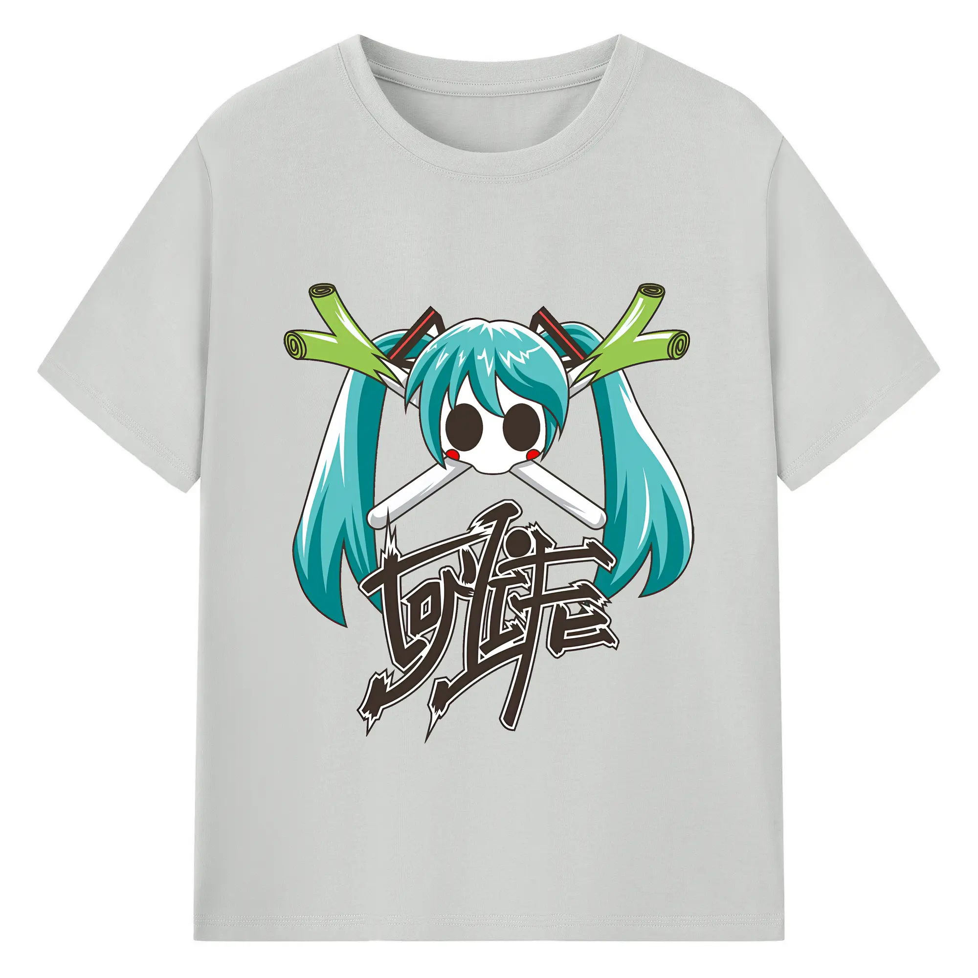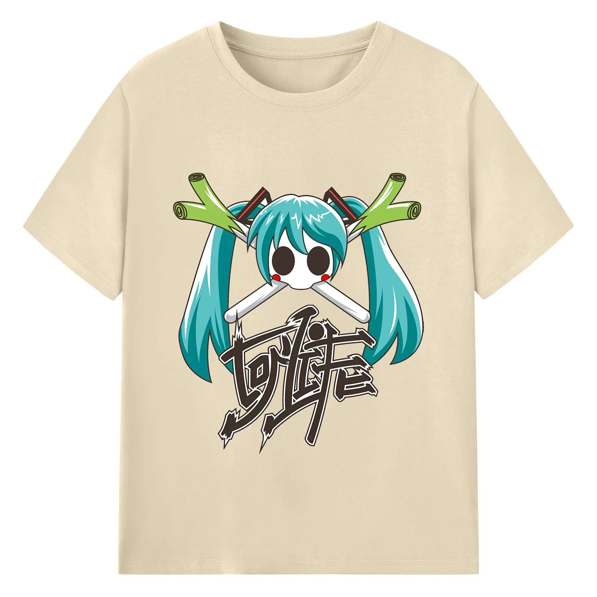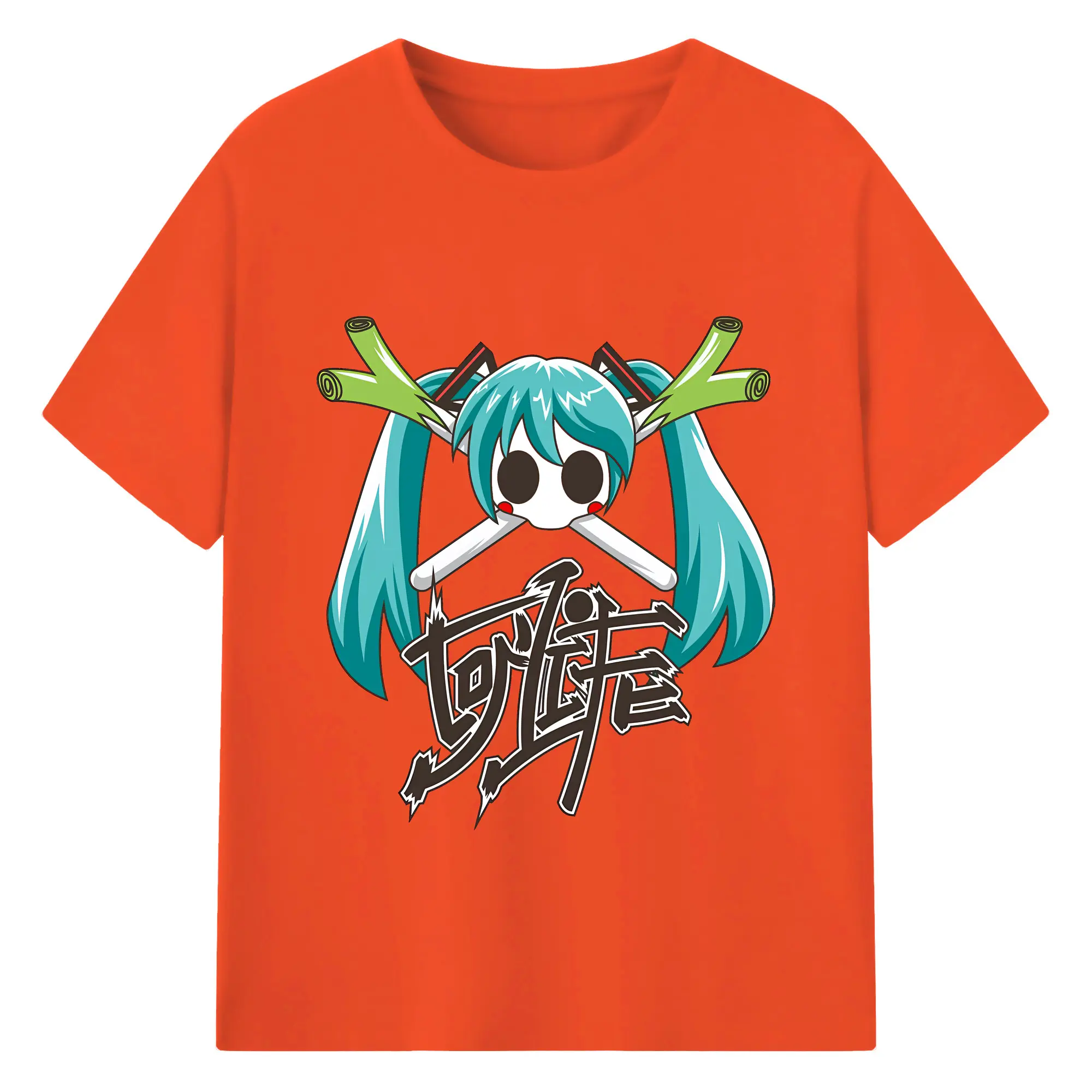 初音ミク カワイイQ版風光の玉 オリジナルデザイン - 綿100% 半袖Tシャツ ・ フロントプリント ・ 快適 通気性 ・ 日常使い 散歩 スポーツ用