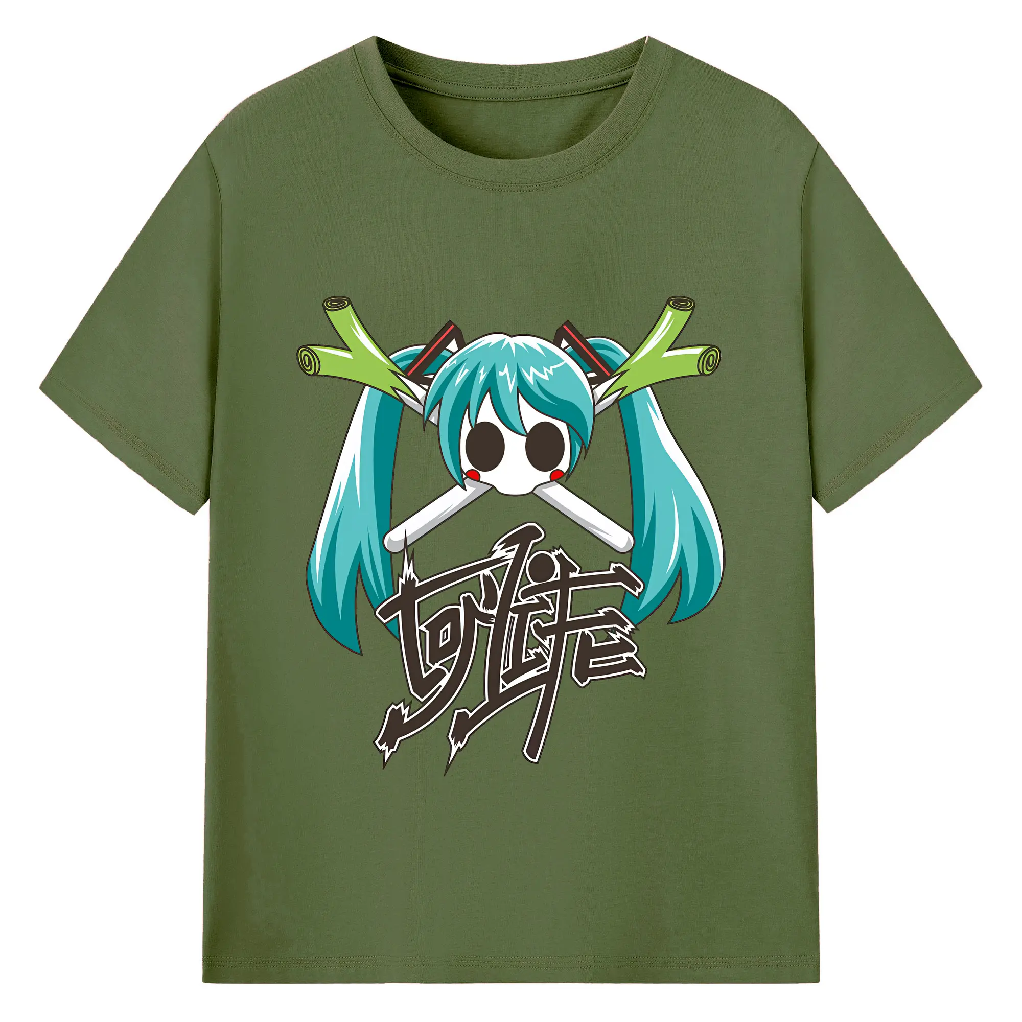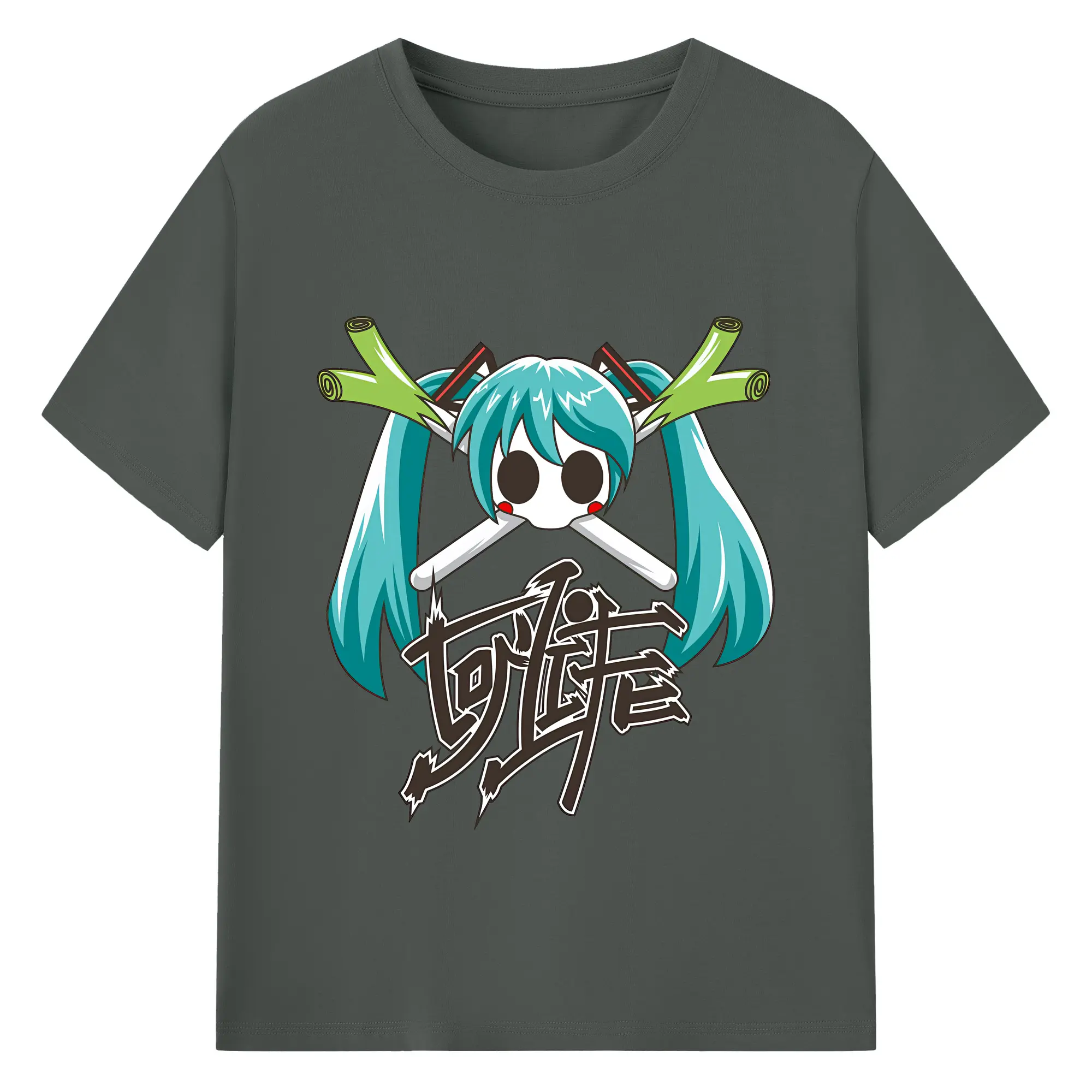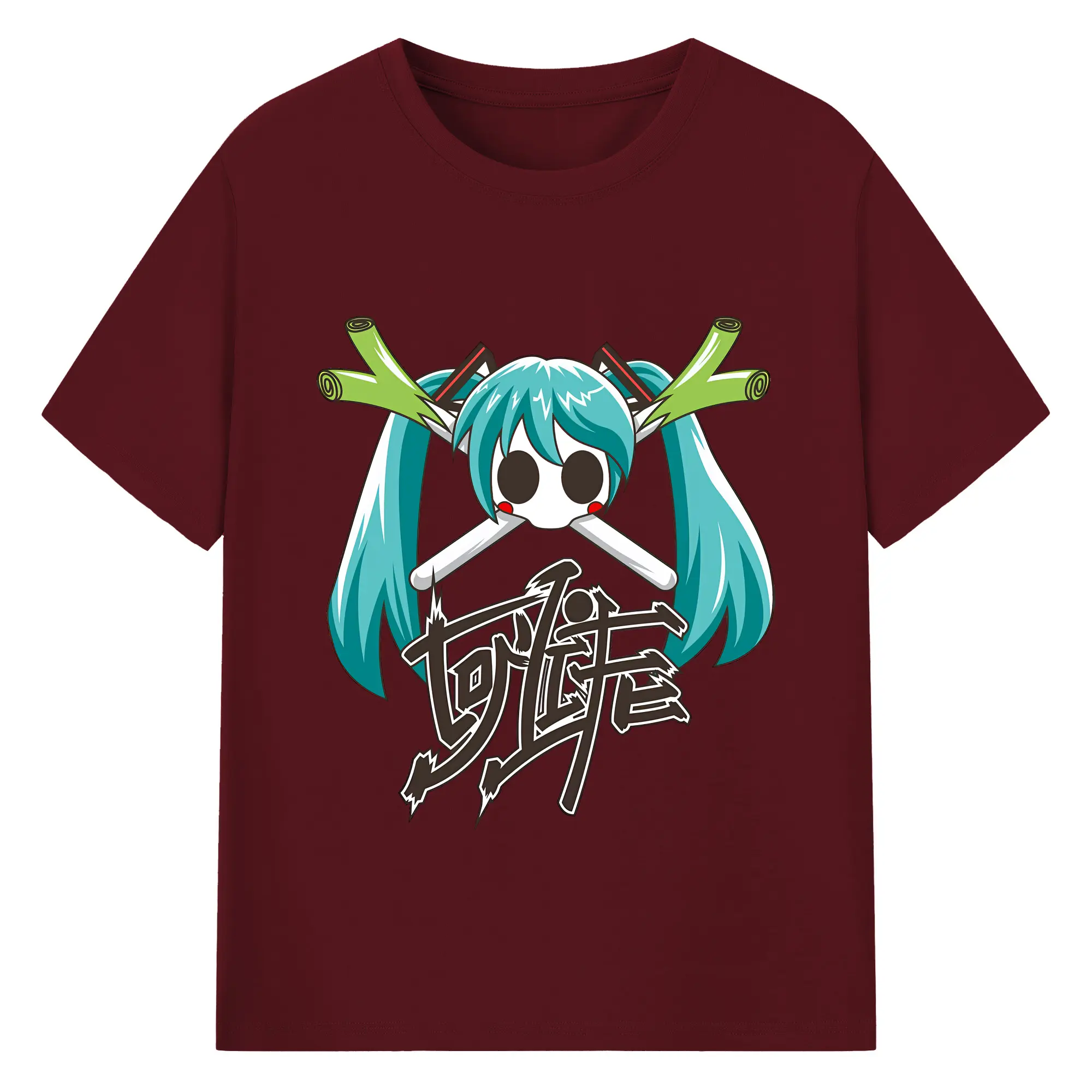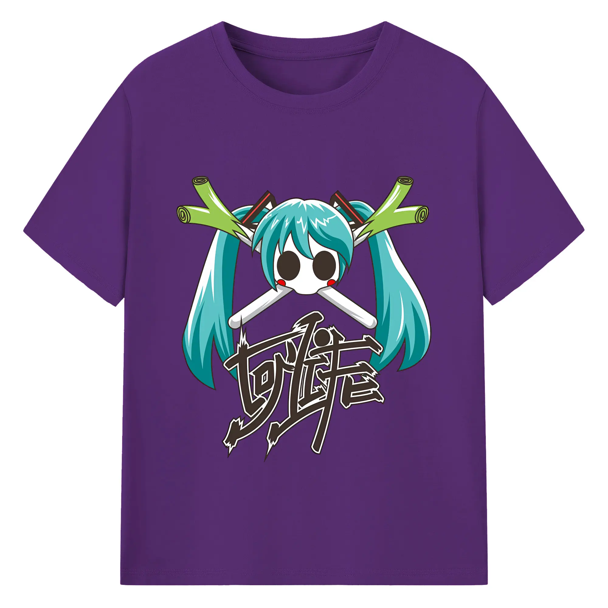 初音ミク カワイイQ版風光の玉 オリジナルデザイン - 綿100% 半袖Tシャツ ・ フロントプリント ・ 快適 通気性 ・ 日常使い 散歩 スポーツ用