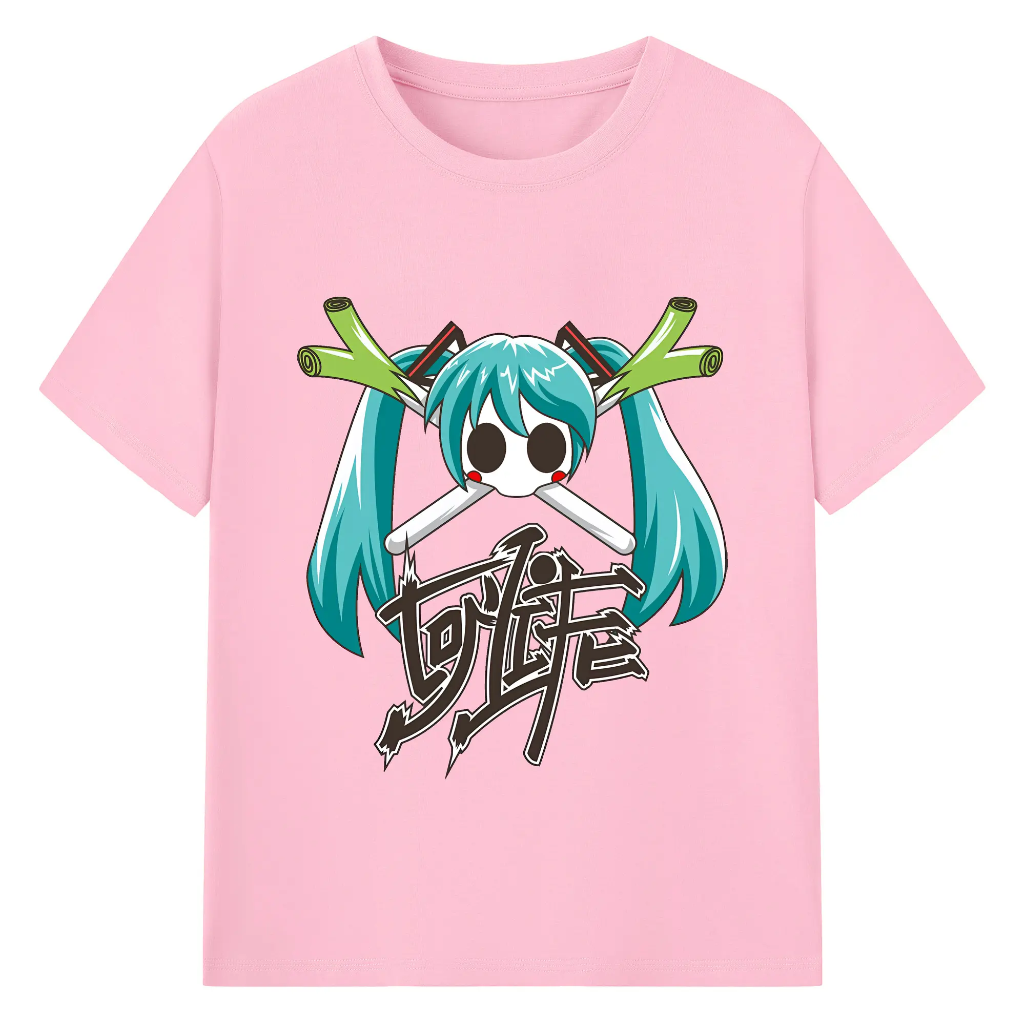 重音テト ハート キャラクター集合 かわいい オリジナルデザイン - 綿100% 半袖Tシャツ ・ フロントプリント ・ 快適 通気性 ・ 日常使い 散歩 スポーツ用