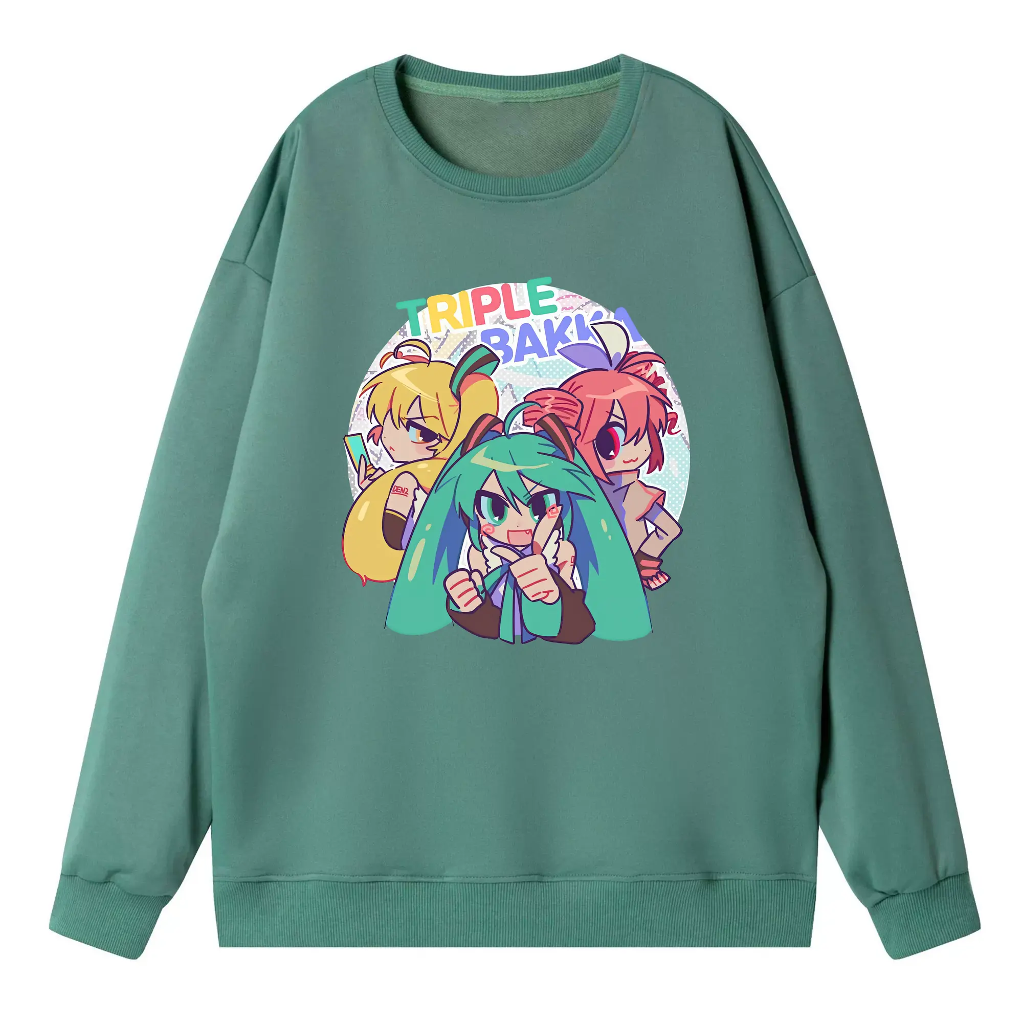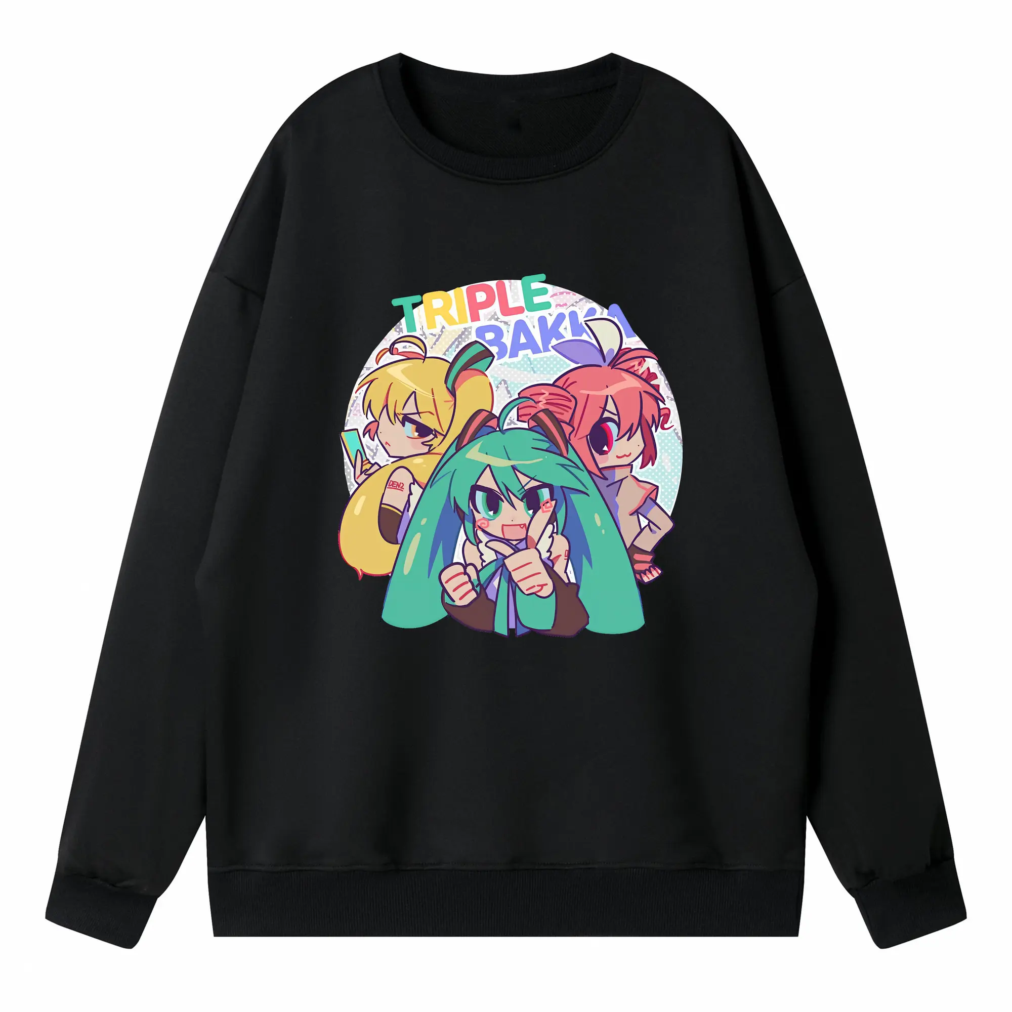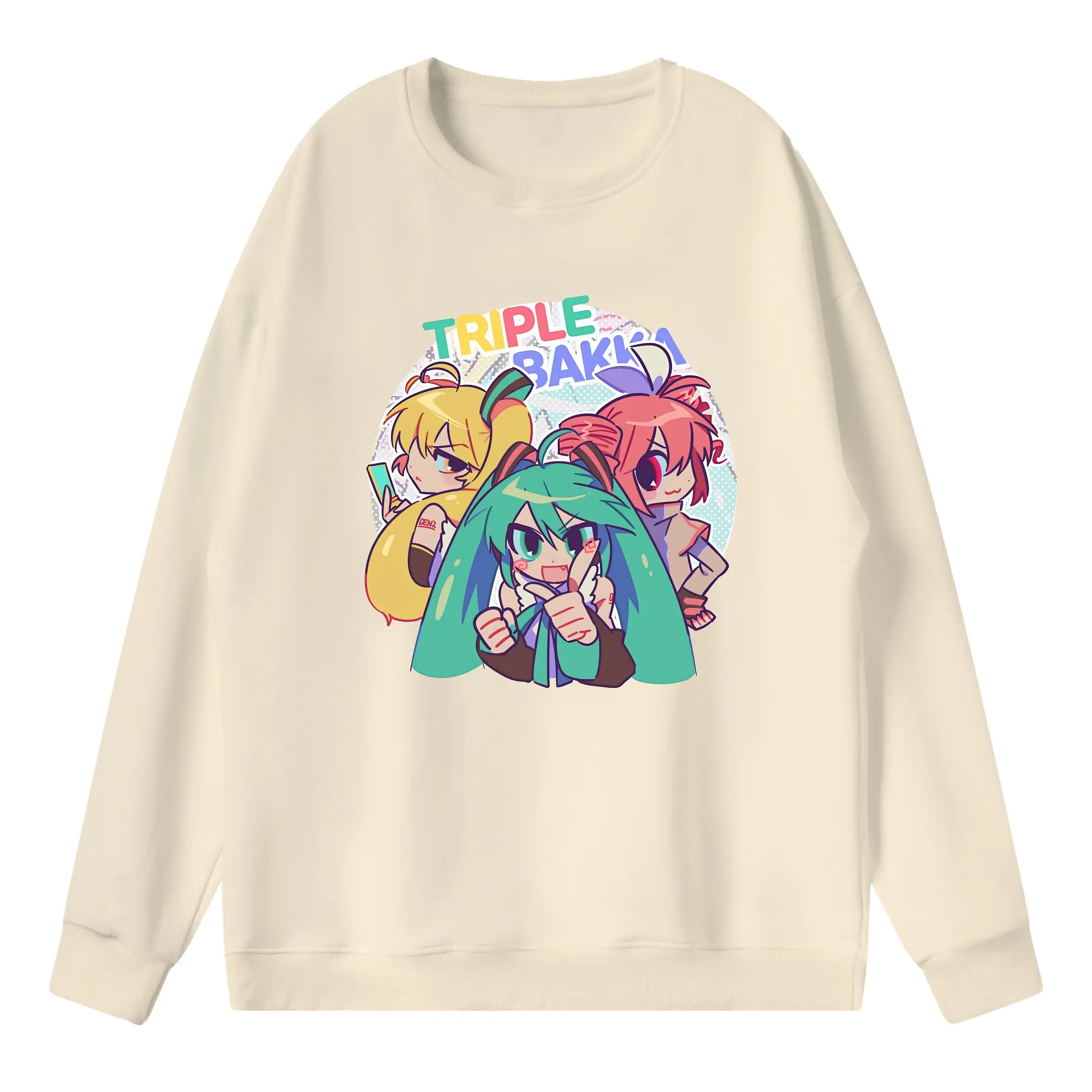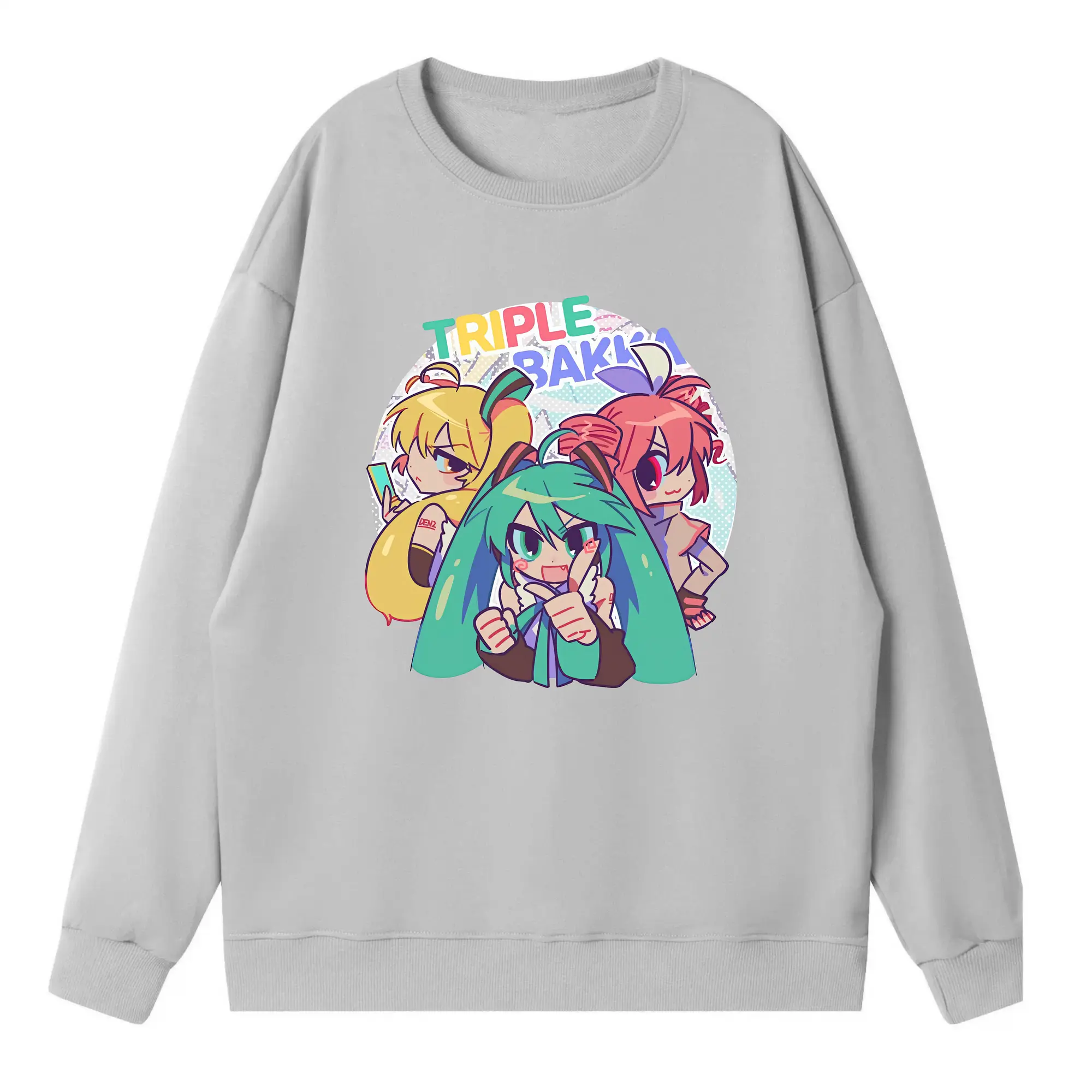 重音テト カートゥーン風 シンプル オリジナルデザイン - 薄手 クルーネック スウェット 裏毛260g · ポリエステル 春秋向け カジュアル 男女兼用 · トレーナー デイリー スポーツ 散歩に最適