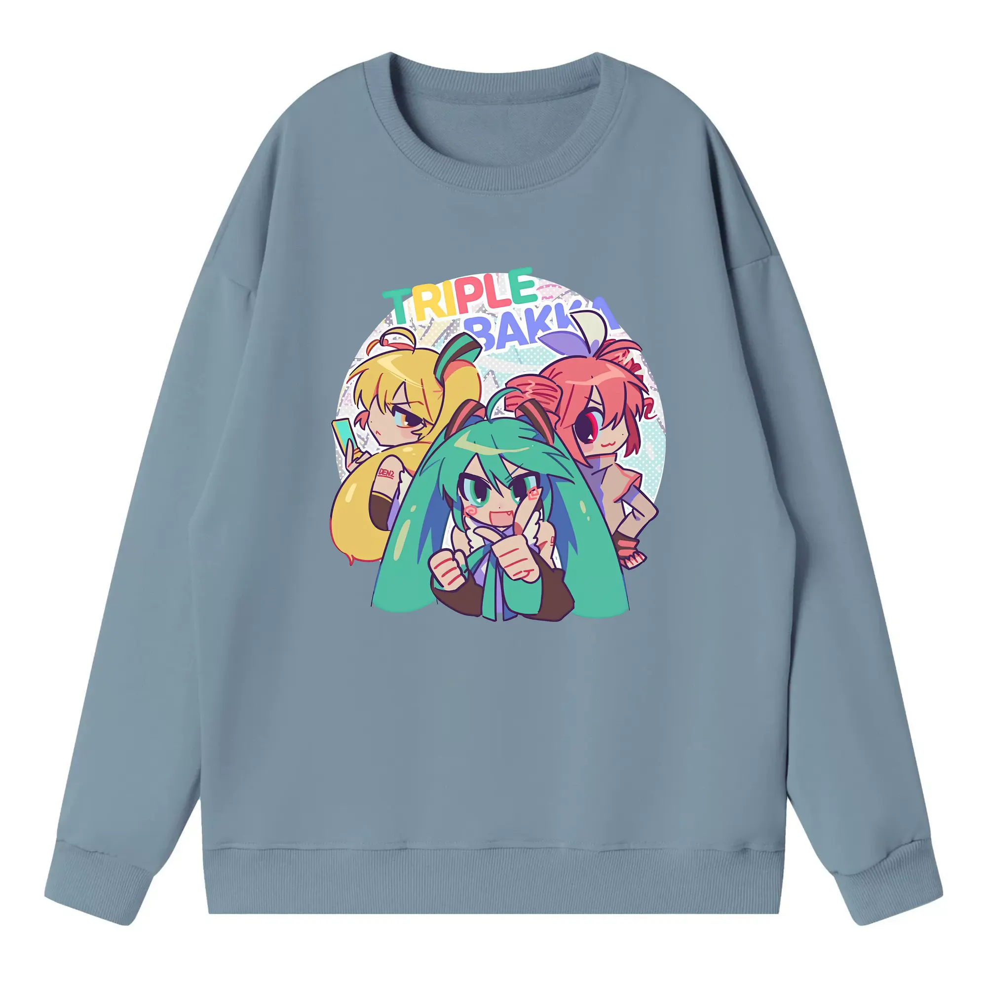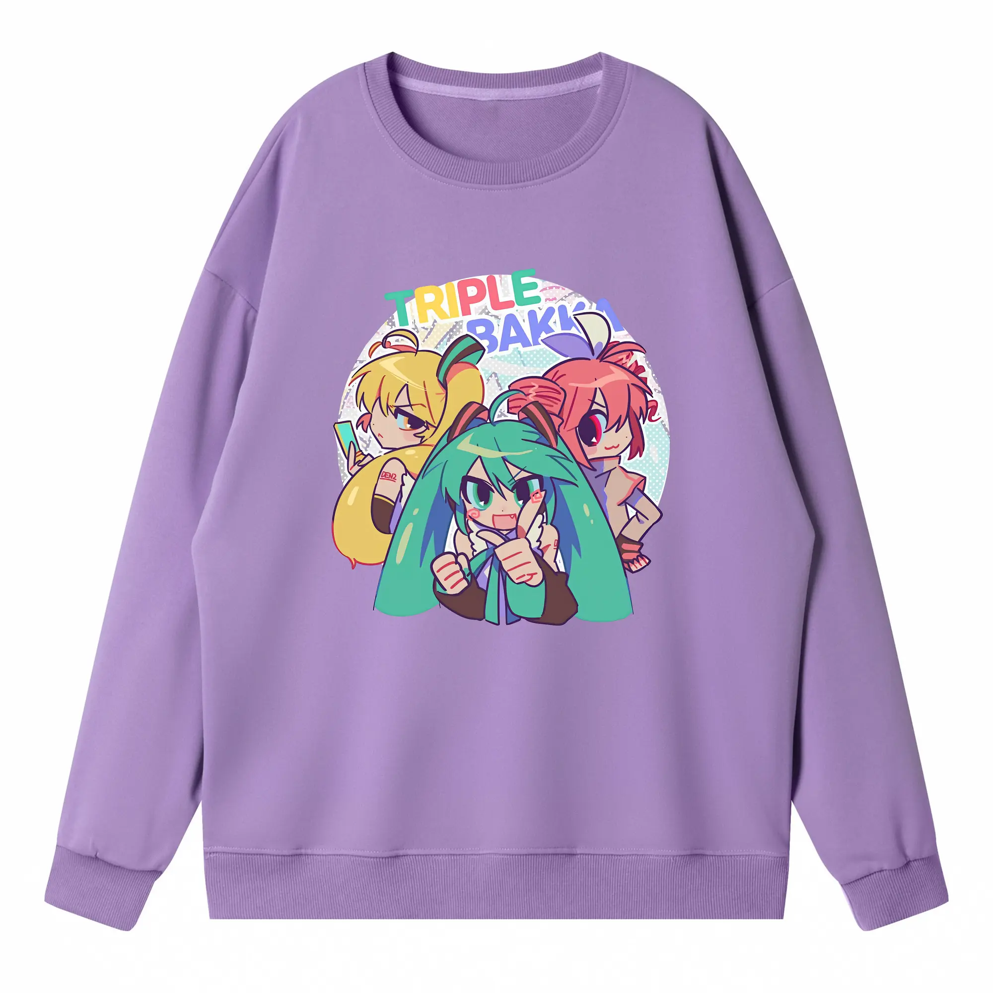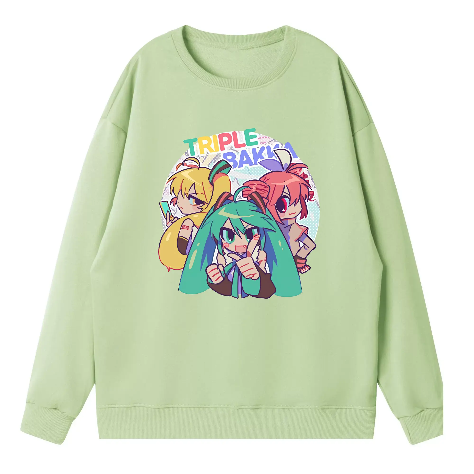 重音テト カートゥーン風 シンプル オリジナルデザイン - 薄手 クルーネック スウェット 裏毛260g · ポリエステル 春秋向け カジュアル 男女兼用 · トレーナー デイリー スポーツ 散歩に最適