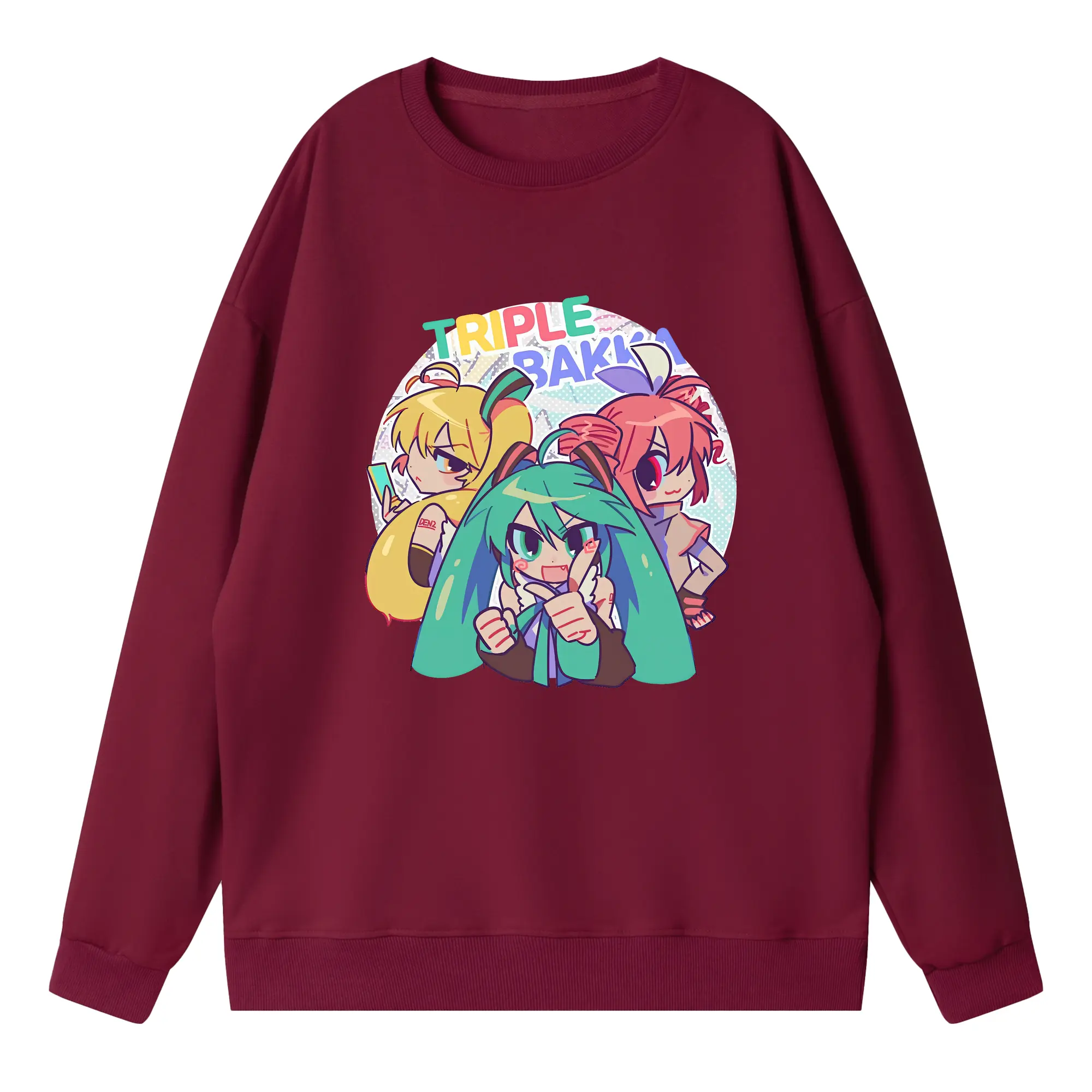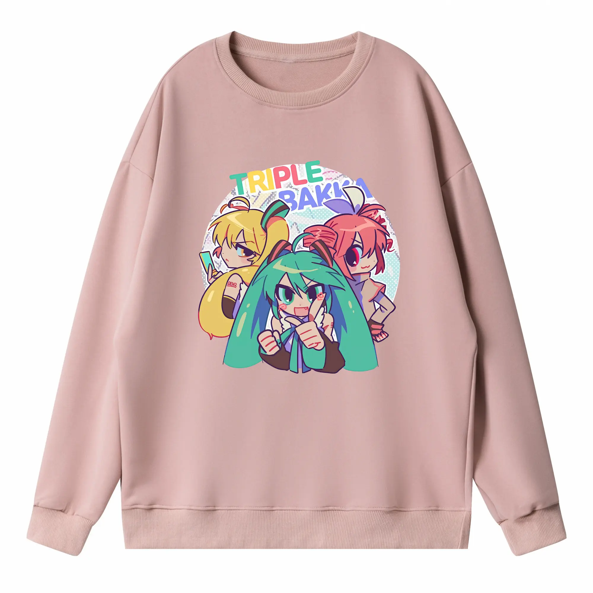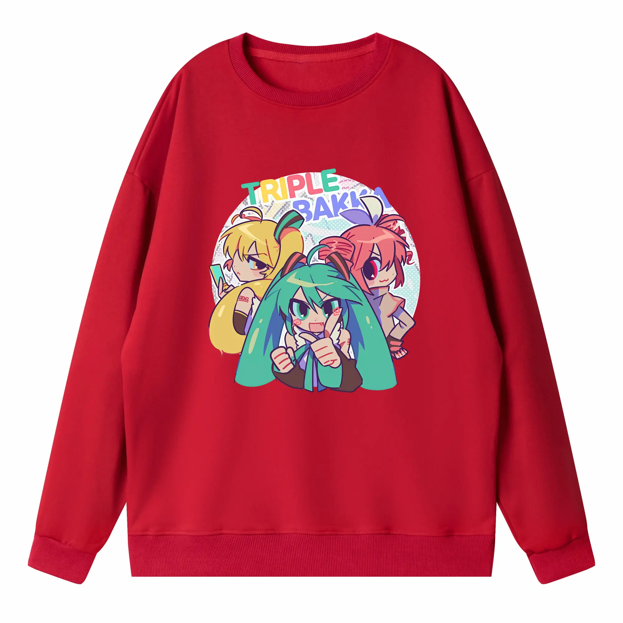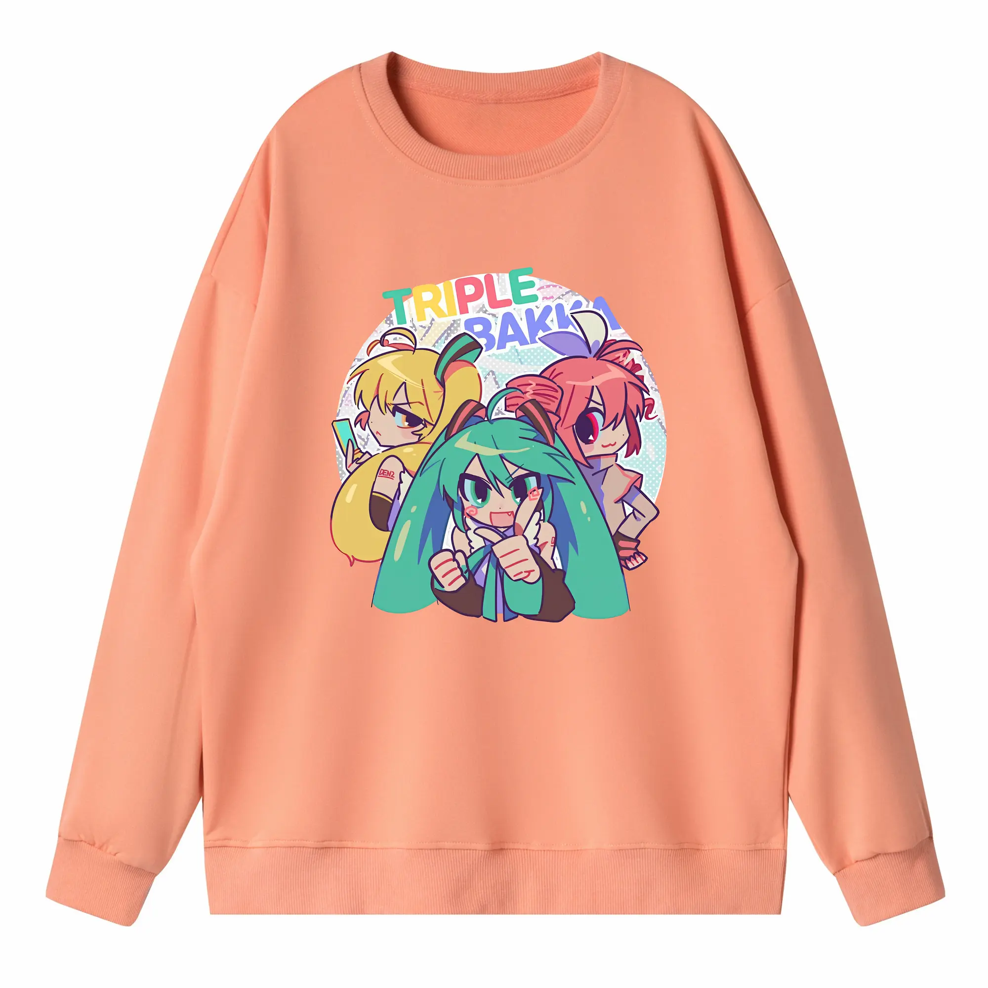 重音テト カートゥーン風 シンプル オリジナルデザイン - 薄手 クルーネック スウェット 裏毛260g · ポリエステル 春秋向け カジュアル 男女兼用 · トレーナー デイリー スポーツ 散歩に最適