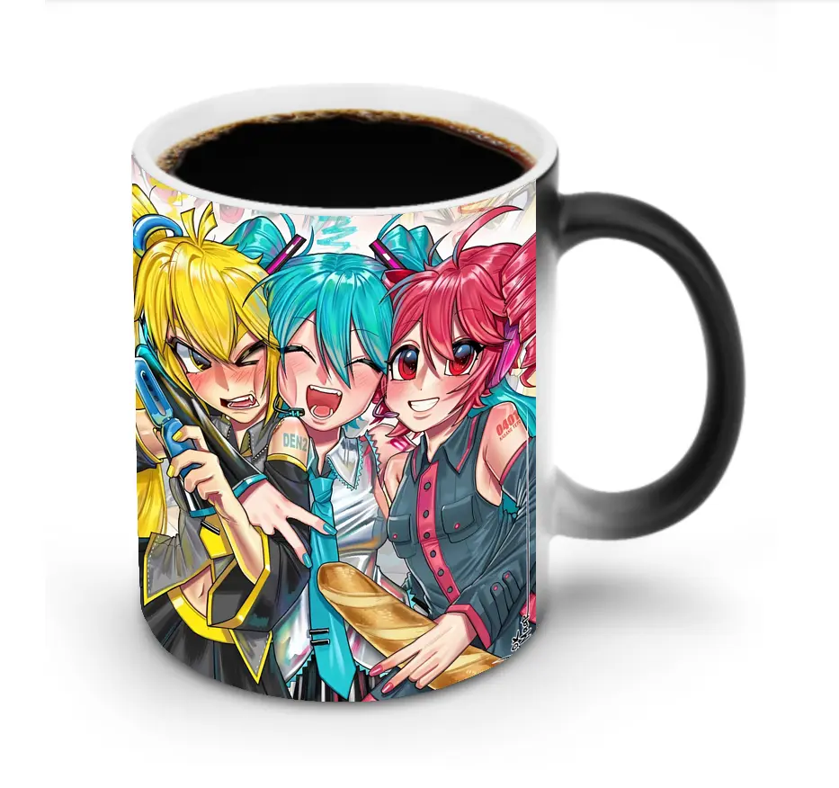 重音テト × 初音ミク × 鏡音リン コラボ パンモチーフ ほっこり オリジナルデザイン - 変色マグカップ ・ セラミック ・ 熱転写プリント ・ 耐久性 高品質 ・ ギフト・自宅用 コーヒー お茶