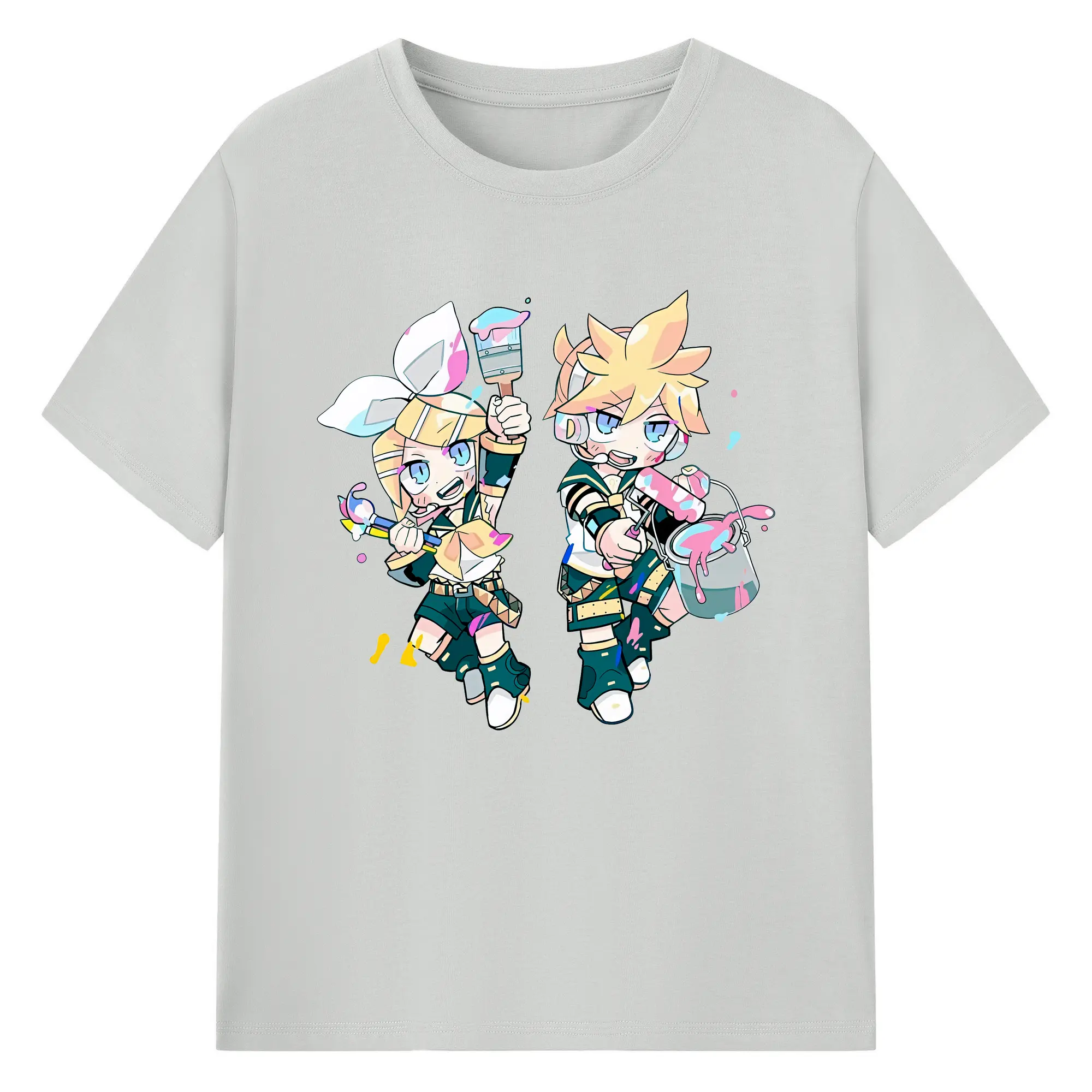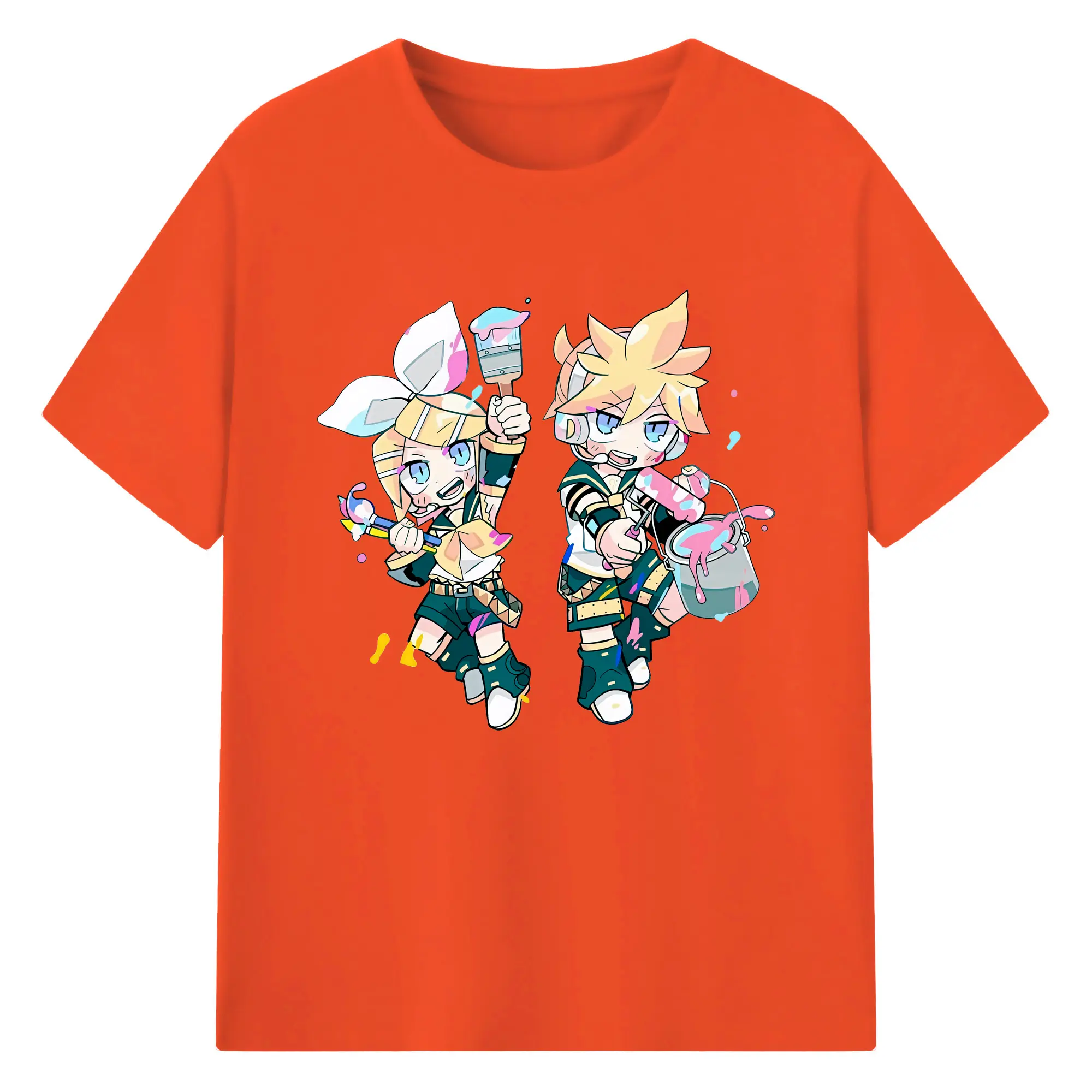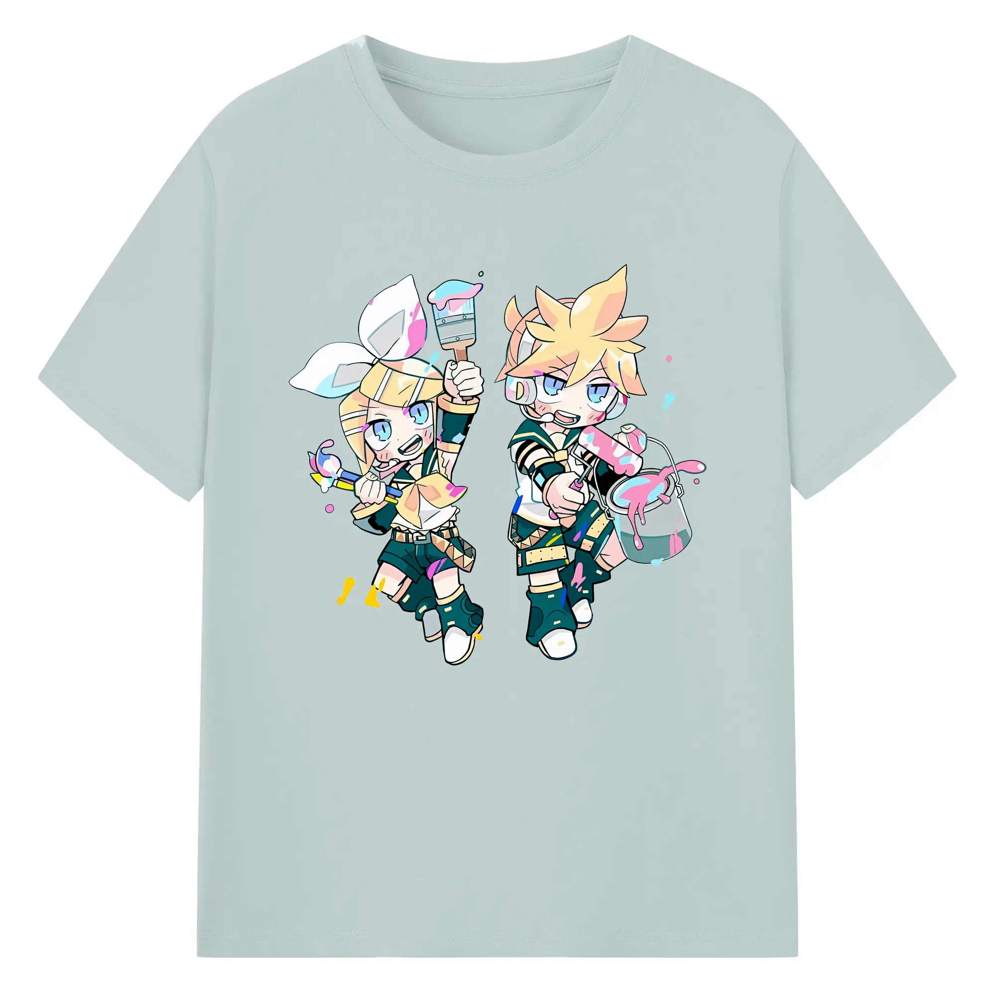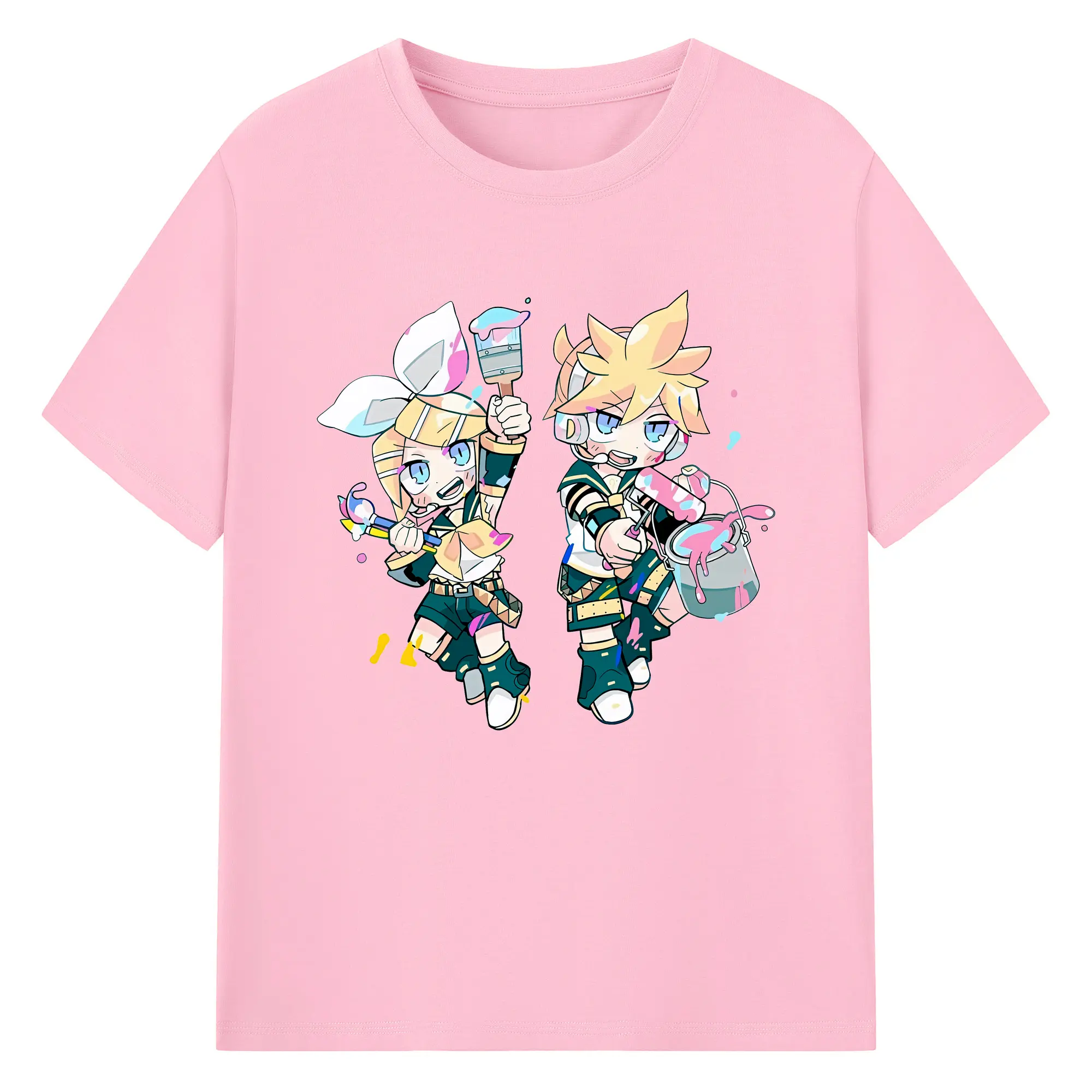 重音テト ハート キャラクター集合 かわいい オリジナルデザイン - 綿100% 半袖Tシャツ ・ フロントプリント ・ 快適 通気性 ・ 日常使い 散歩 スポーツ用