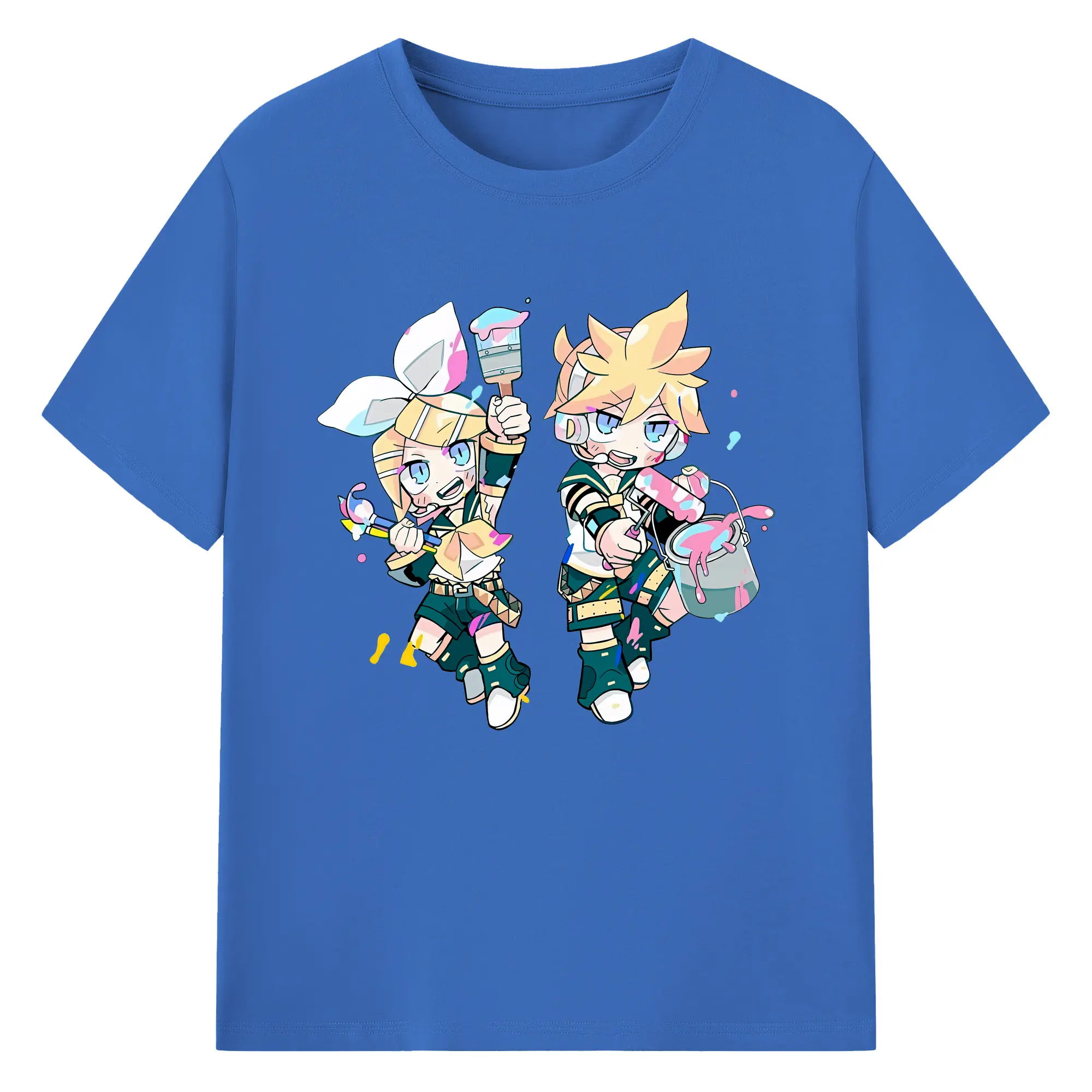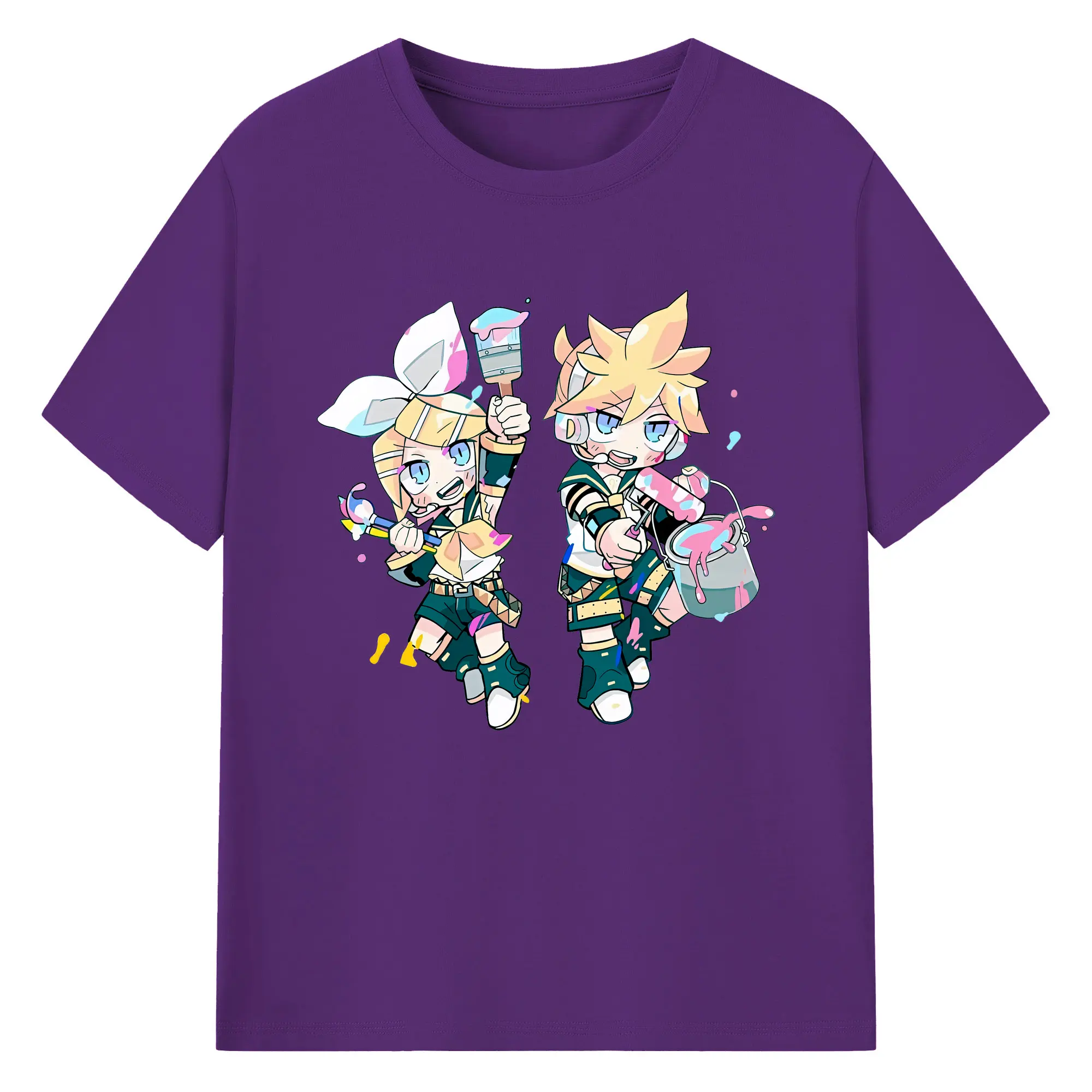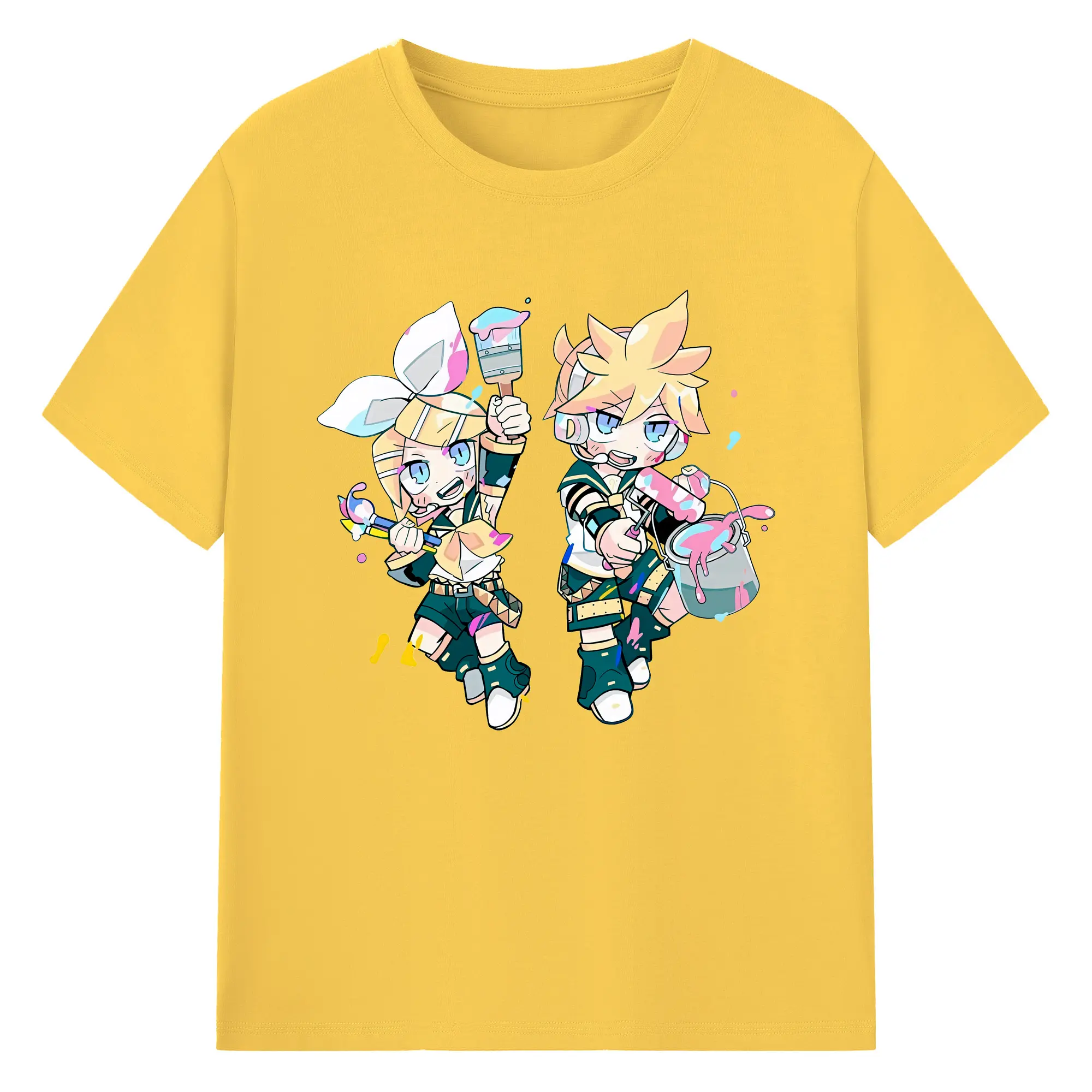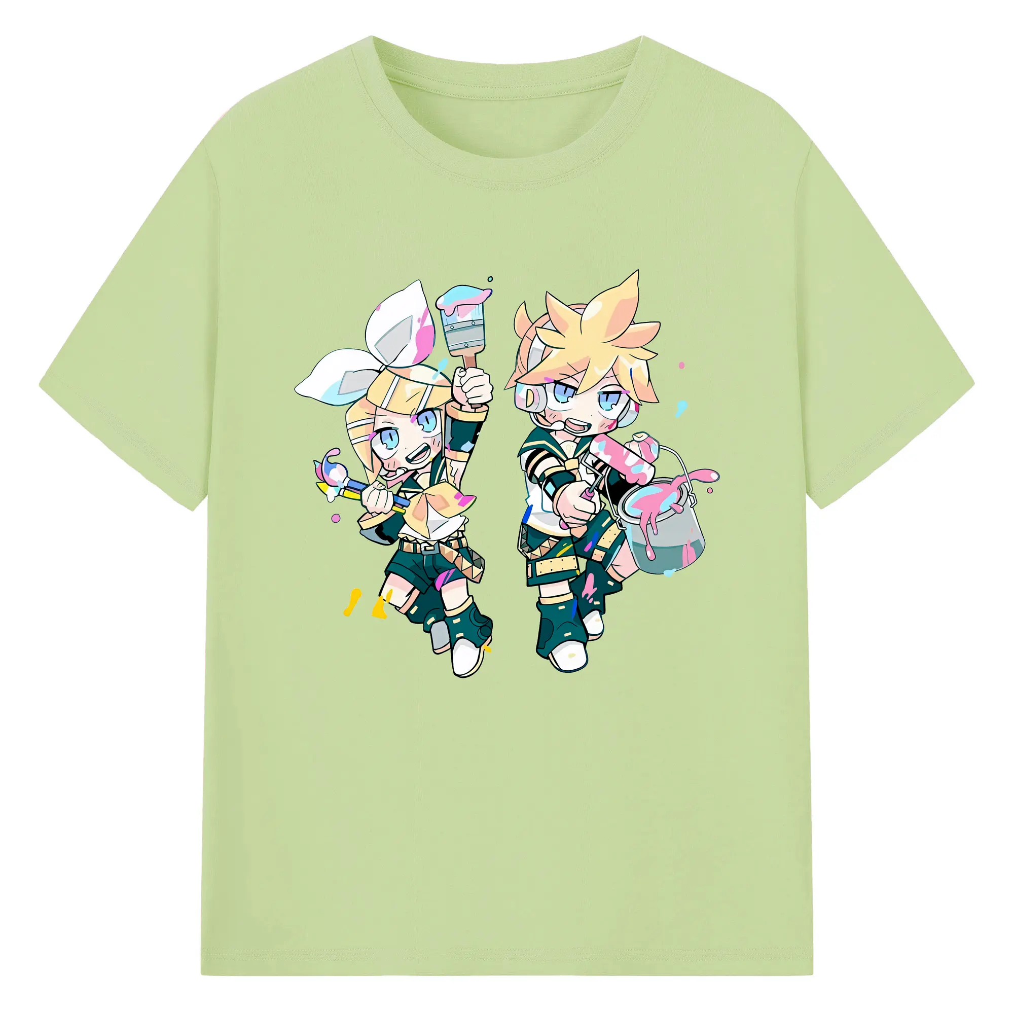 重音テト ハート キャラクター集合 かわいい オリジナルデザイン - 綿100% 半袖Tシャツ ・ フロントプリント ・ 快適 通気性 ・ 日常使い 散歩 スポーツ用