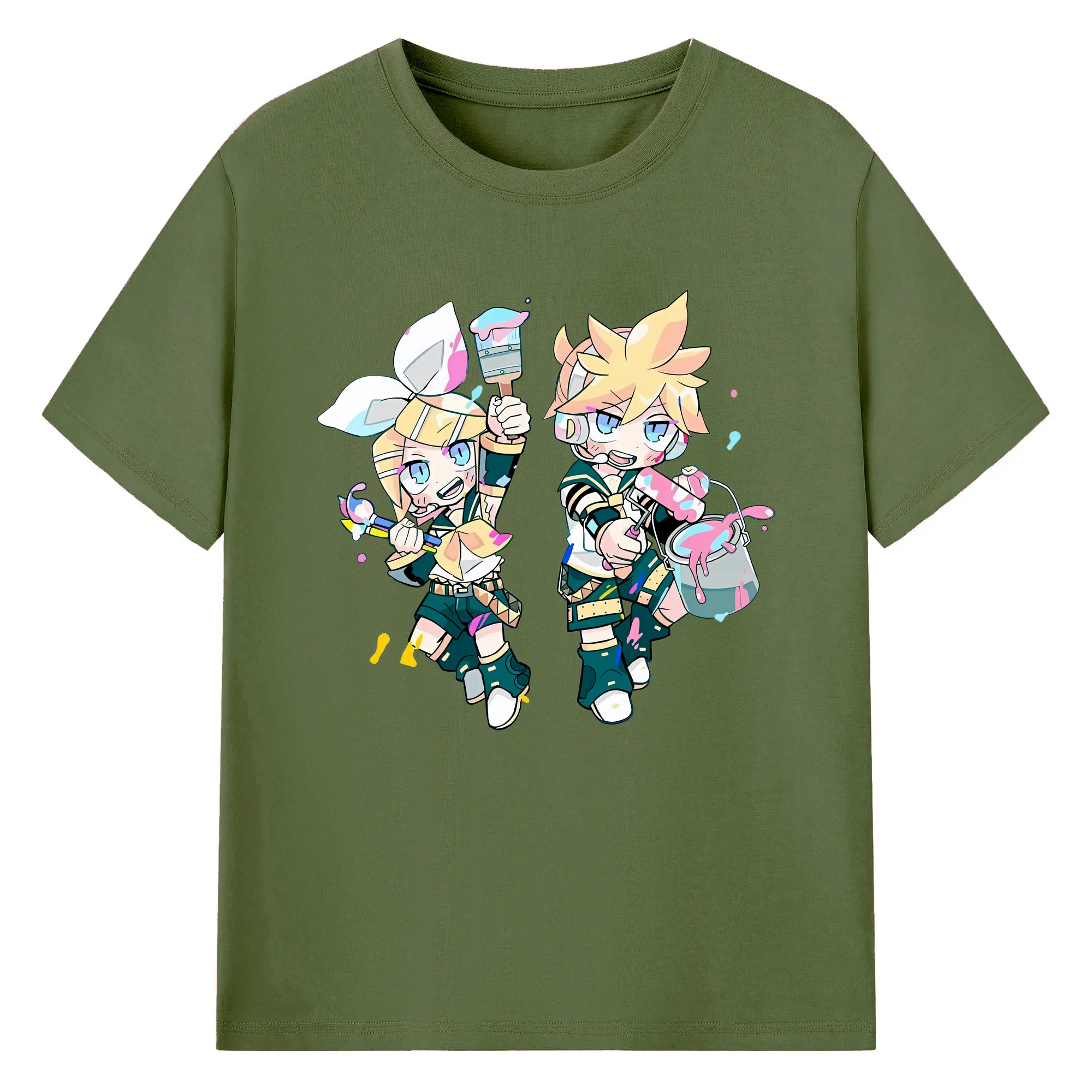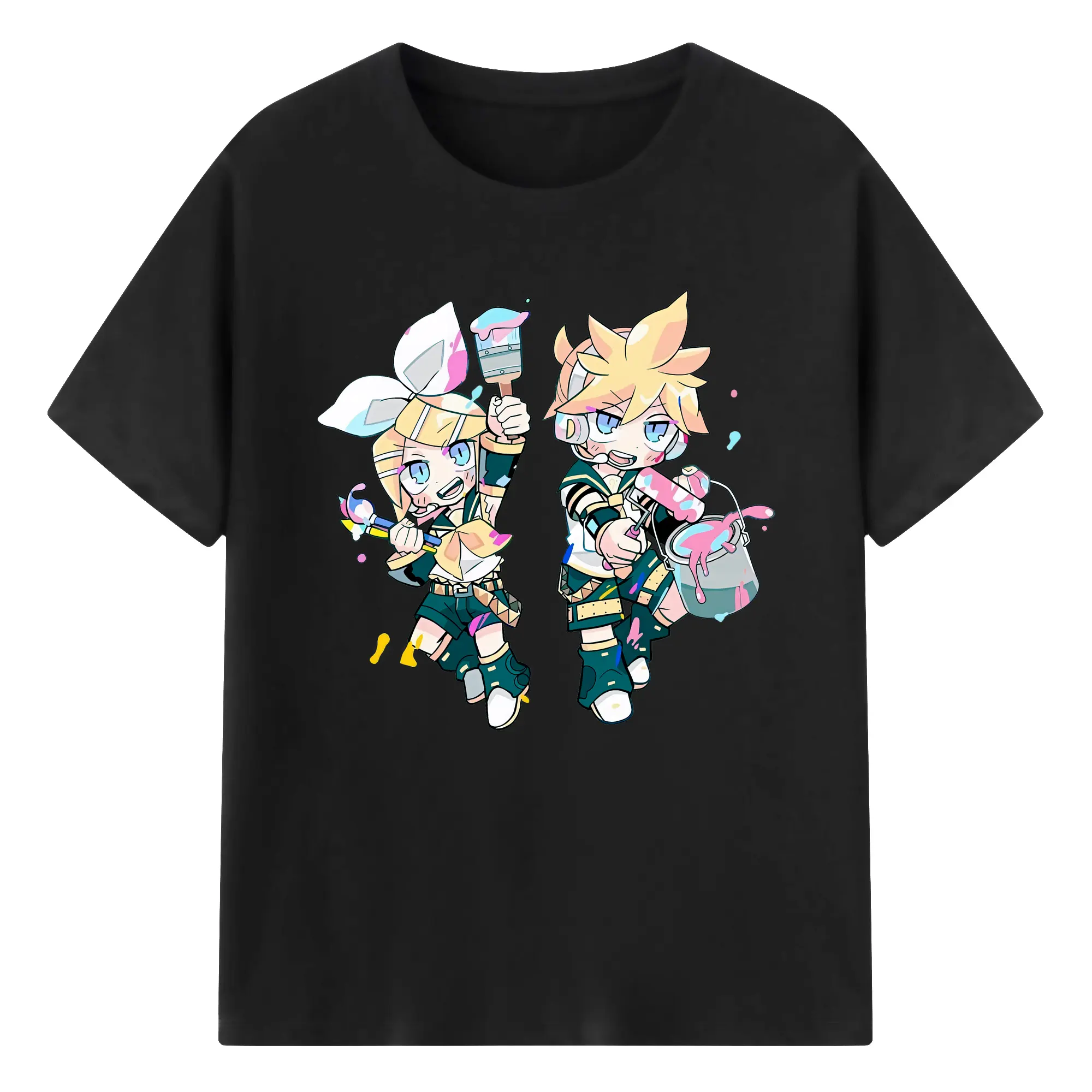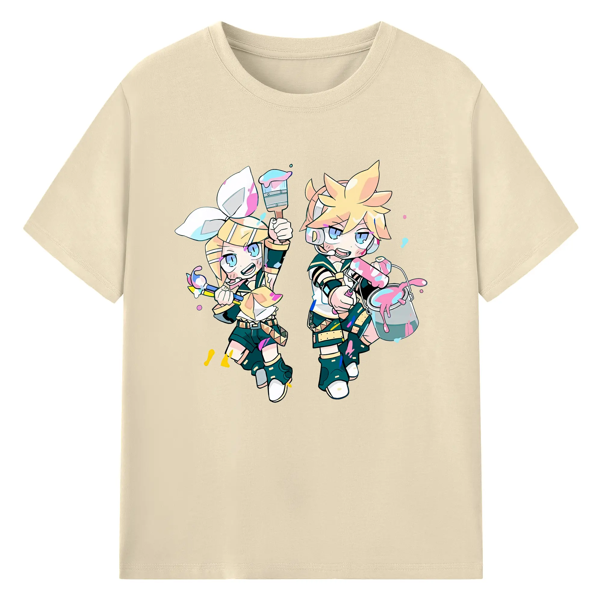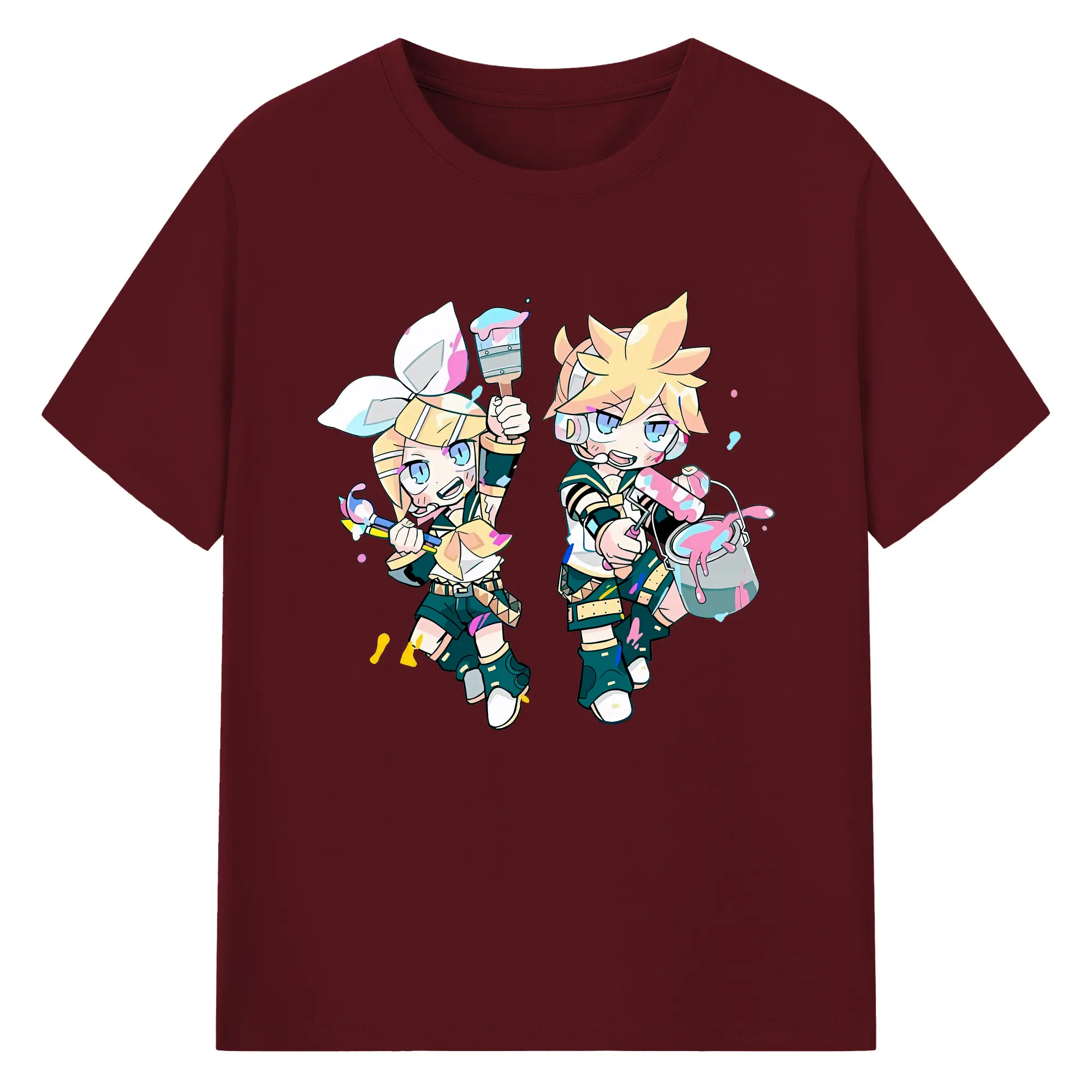 重音テト ハート キャラクター集合 かわいい オリジナルデザイン - 綿100% 半袖Tシャツ ・ フロントプリント ・ 快適 通気性 ・ 日常使い 散歩 スポーツ用