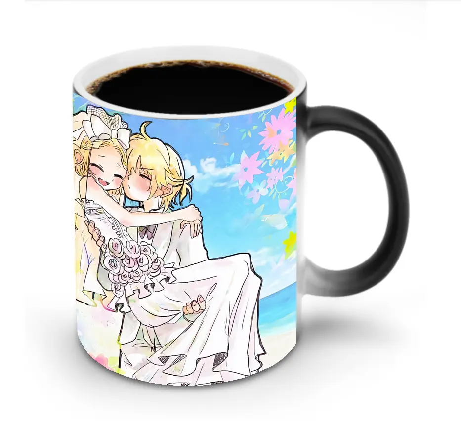 鏡音リン・レン 白い衣装 ほっこり オリジナルデザイン - 変色マグカップ ・ セラミック ・ 熱転写プリント ・ 耐久性 高品質 ・ ギフト・自宅用 コーヒー お茶