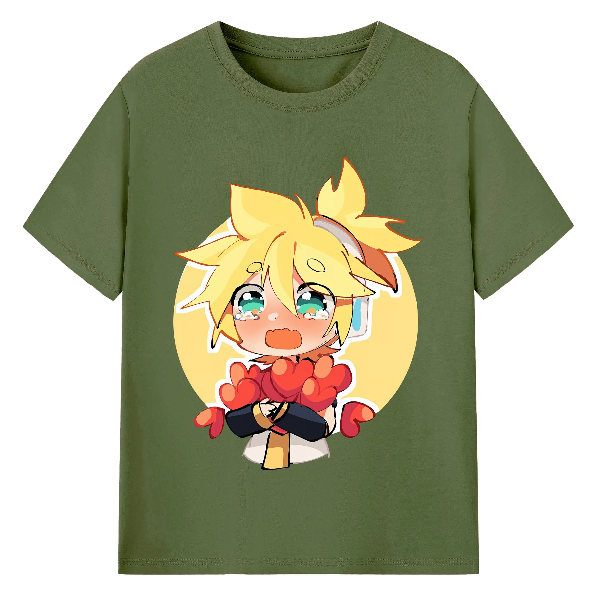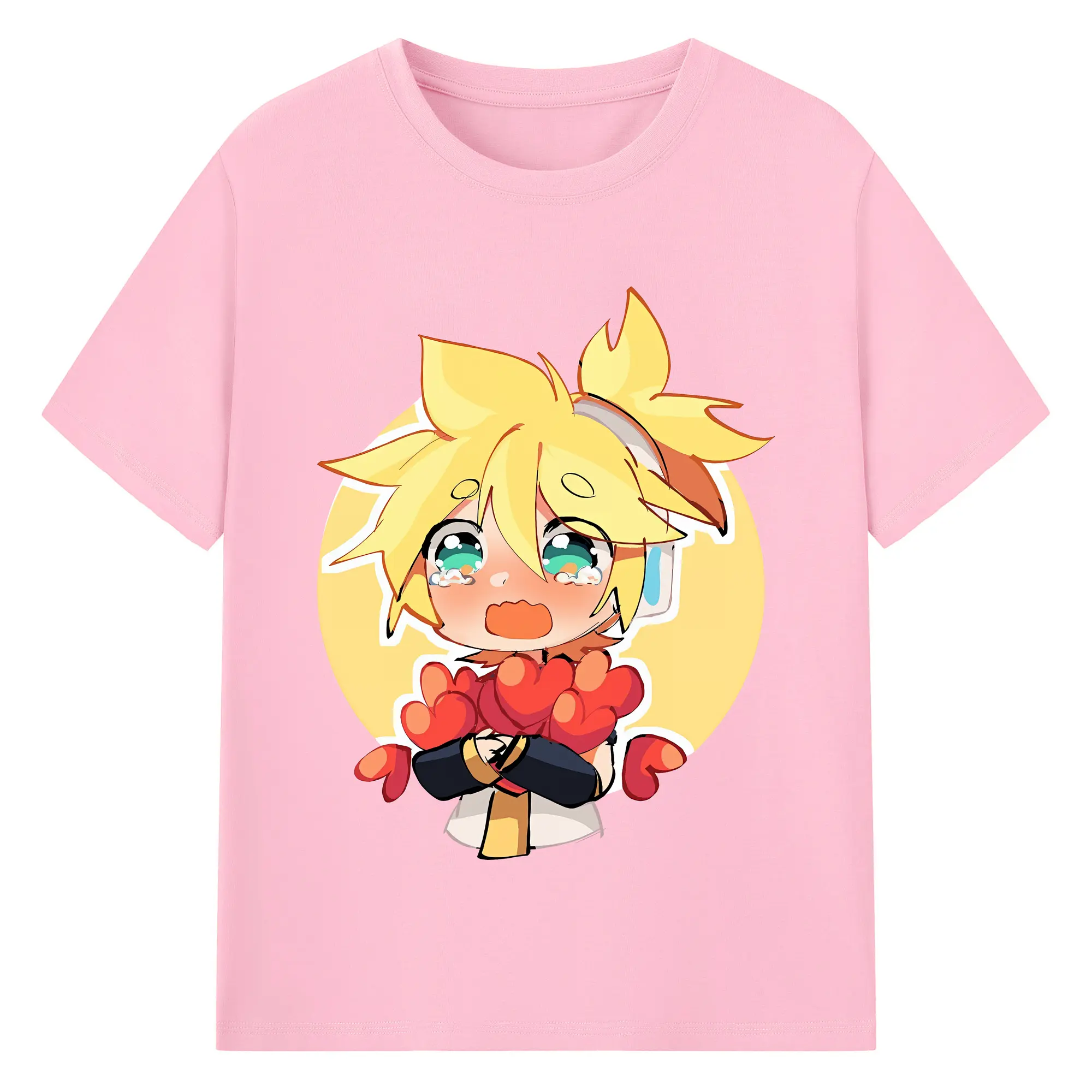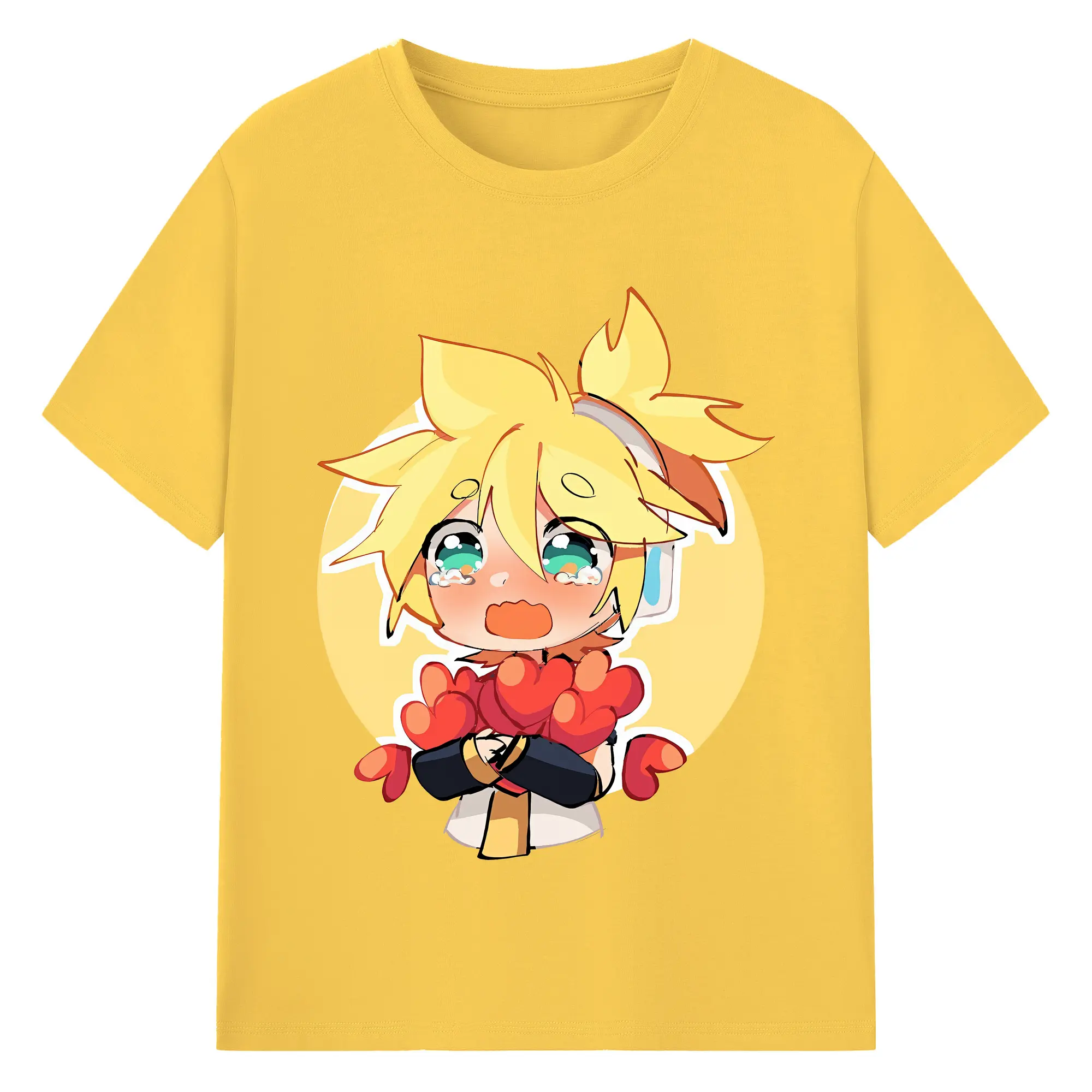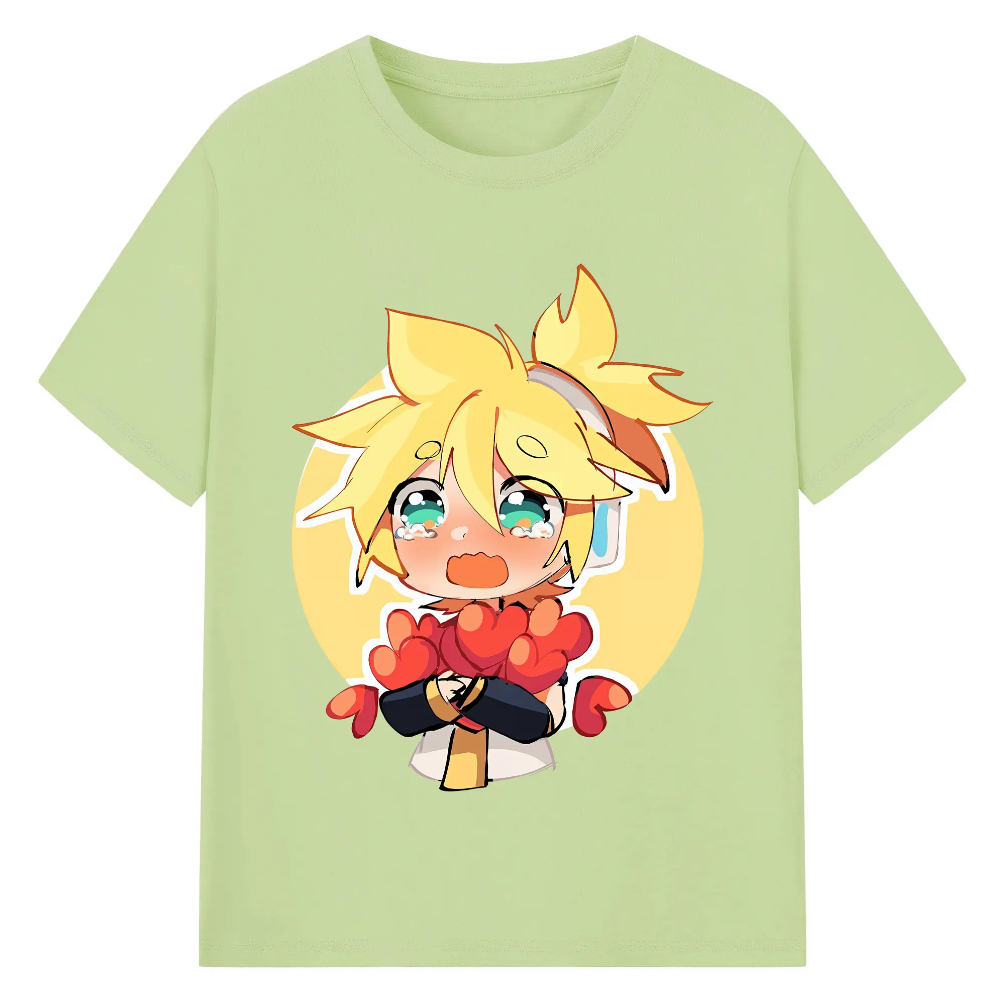 VOCALOID GUMI かわいいデフォルメ オリジナルデザイン - 綿100% 半袖Tシャツ ・ フロントプリント ・ 快適 通気性 ・ 日常使い 散歩 スポーツ用