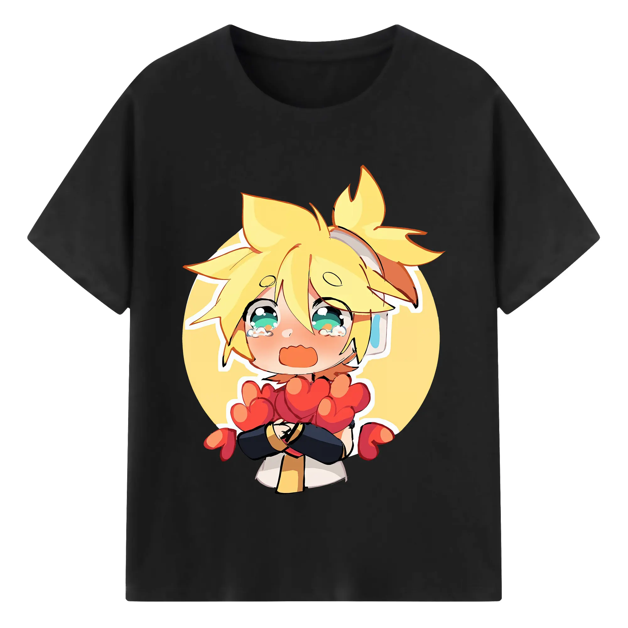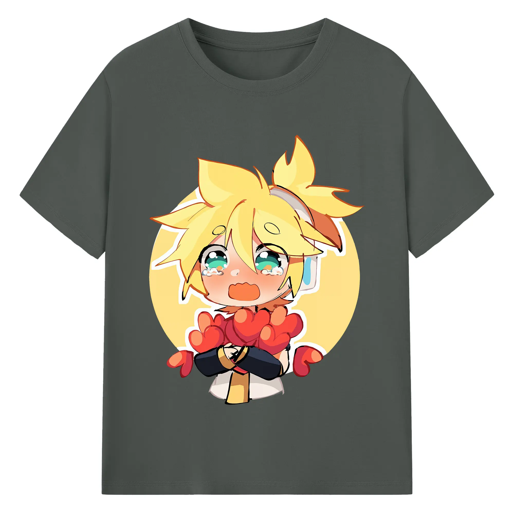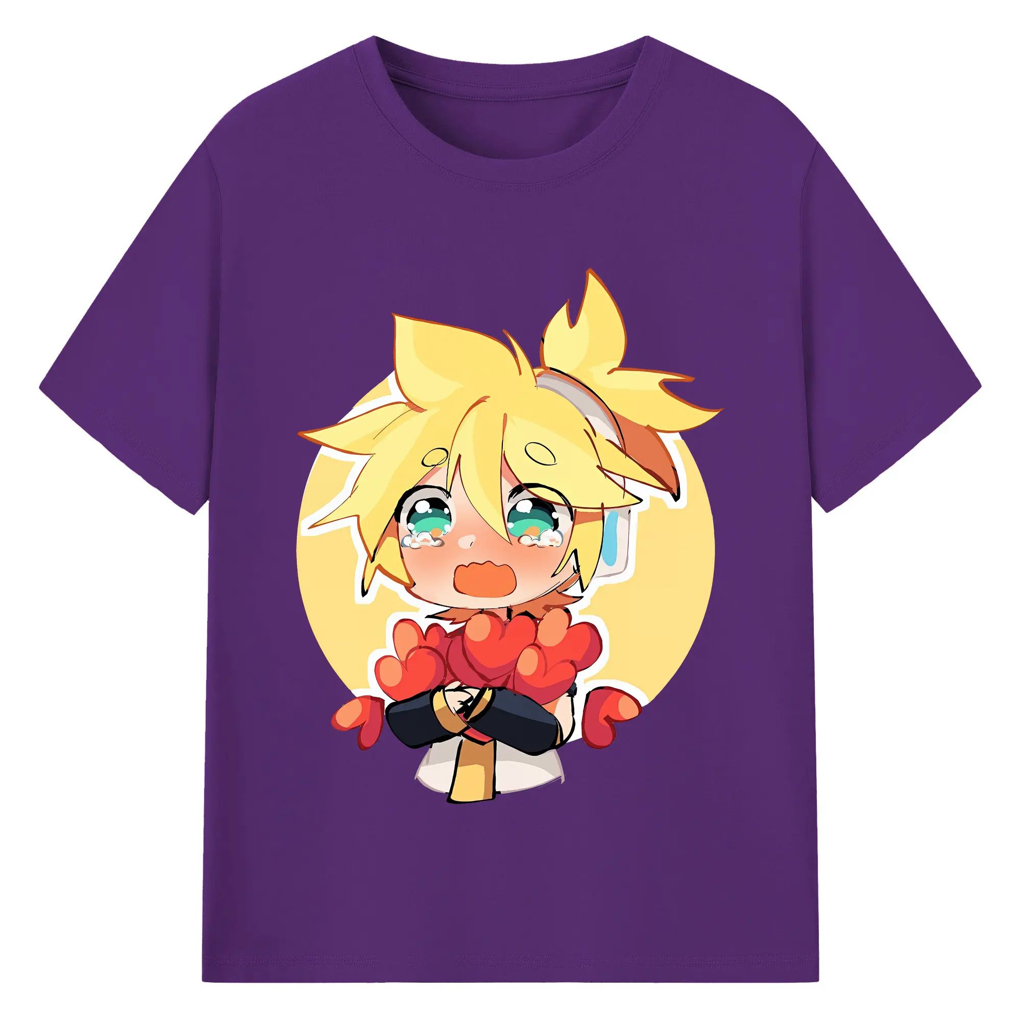 VOCALOID GUMI かわいいデフォルメ オリジナルデザイン - 綿100% 半袖Tシャツ ・ フロントプリント ・ 快適 通気性 ・ 日常使い 散歩 スポーツ用
