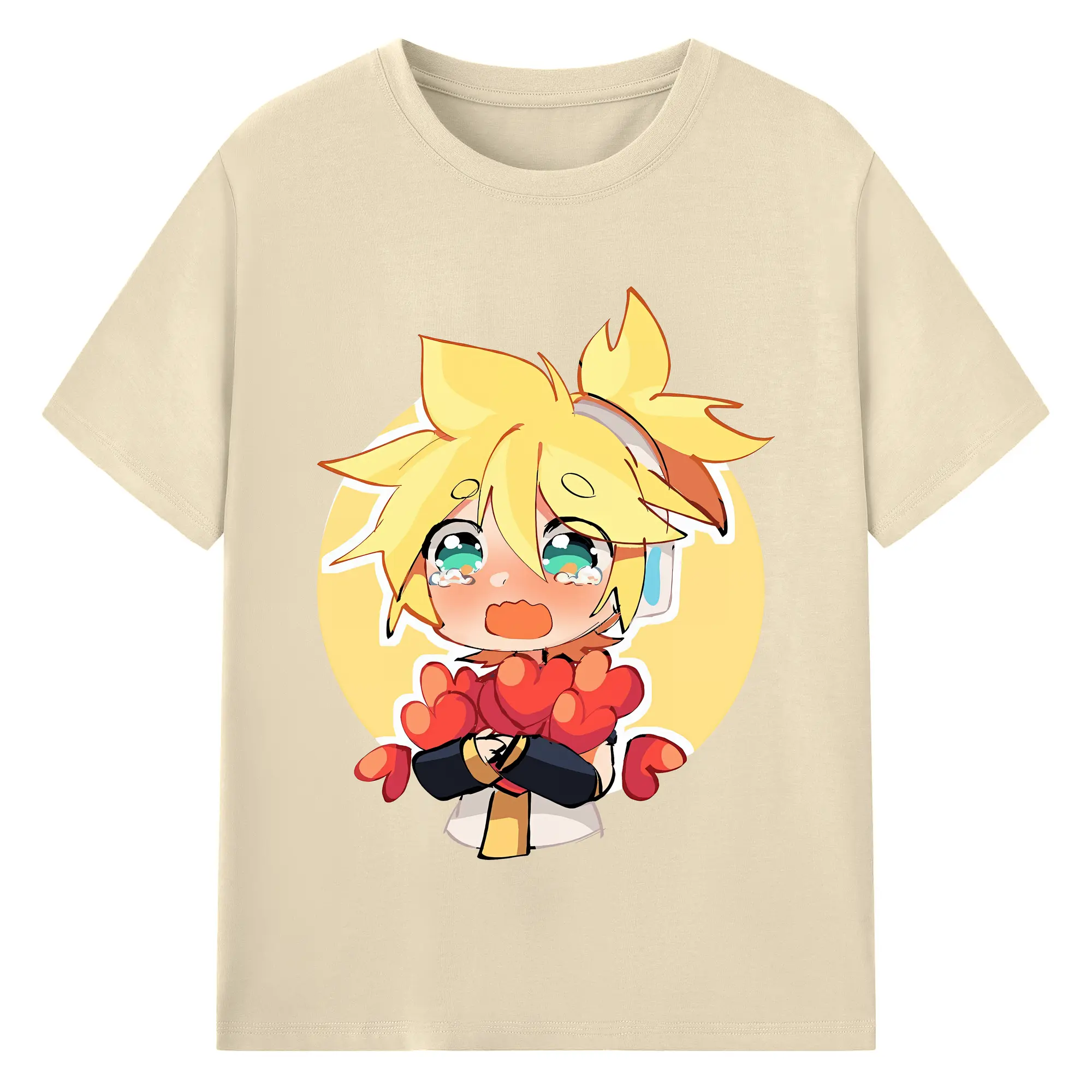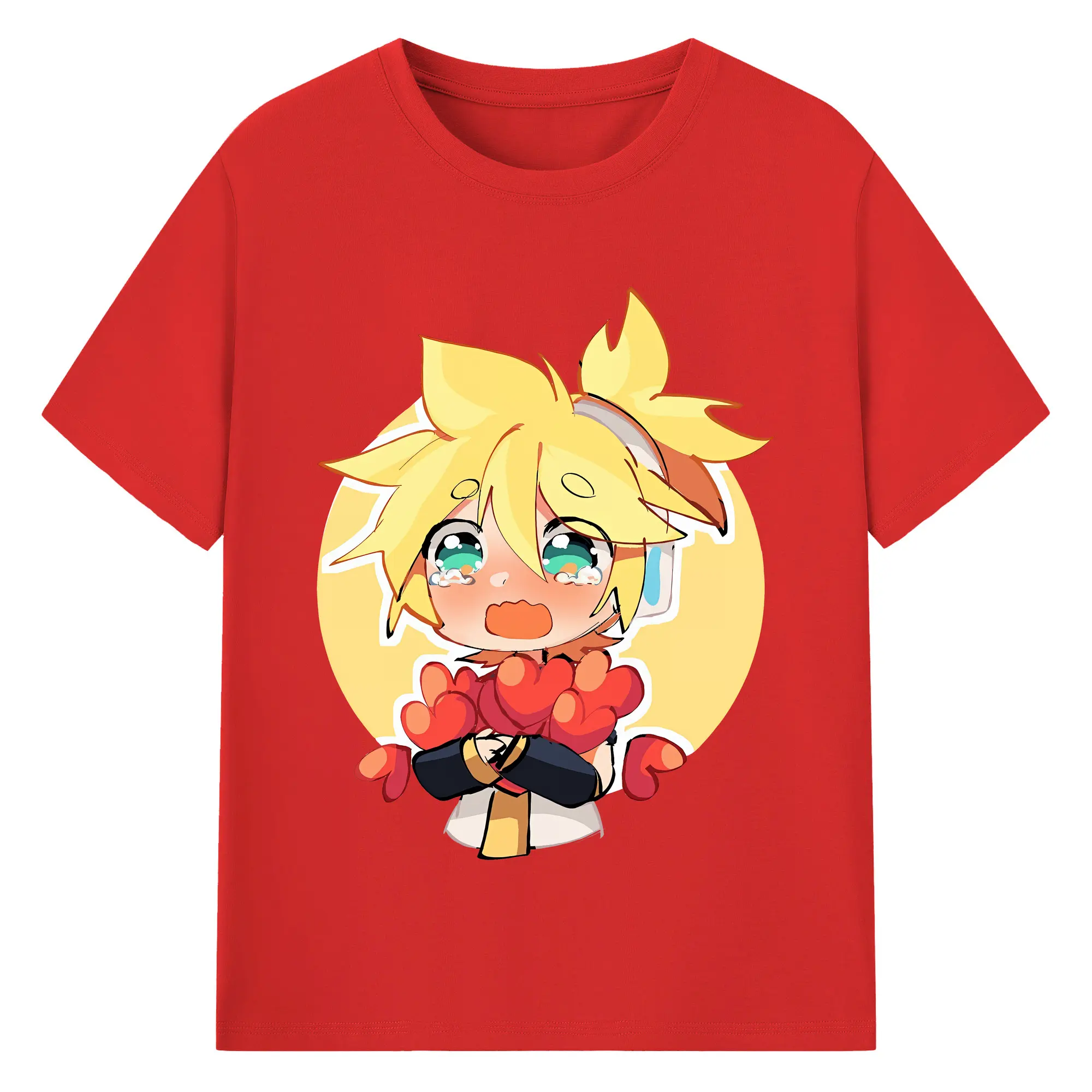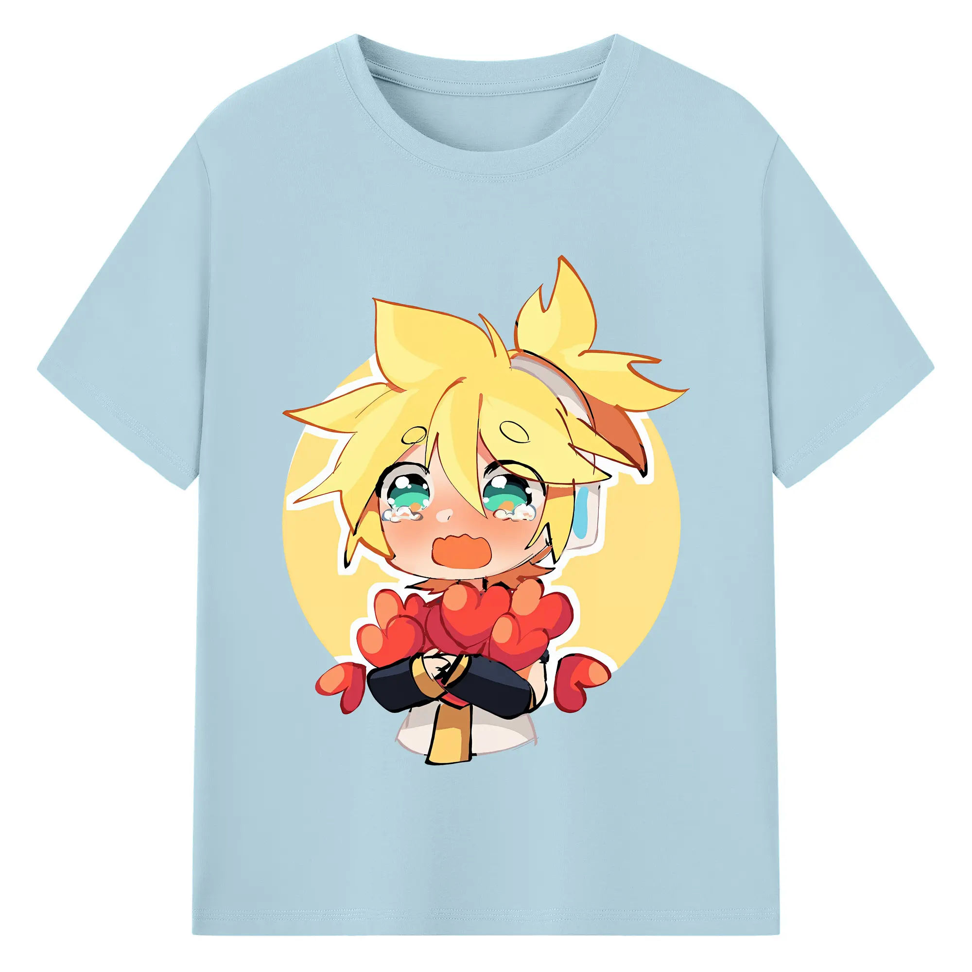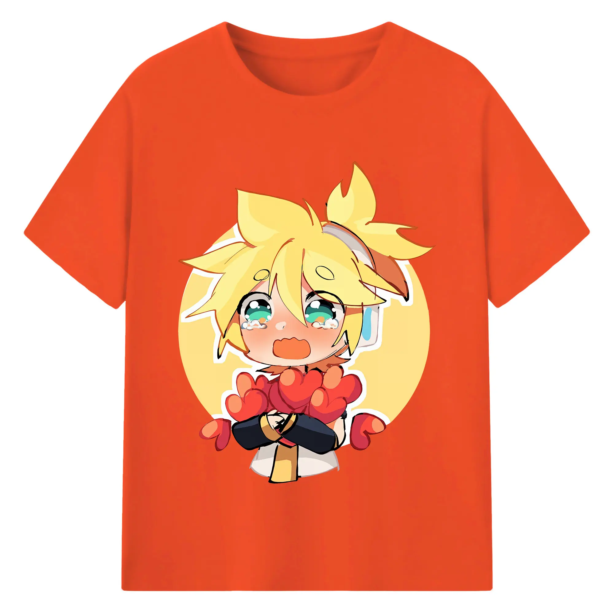 VOCALOID GUMI かわいいデフォルメ オリジナルデザイン - 綿100% 半袖Tシャツ ・ フロントプリント ・ 快適 通気性 ・ 日常使い 散歩 スポーツ用