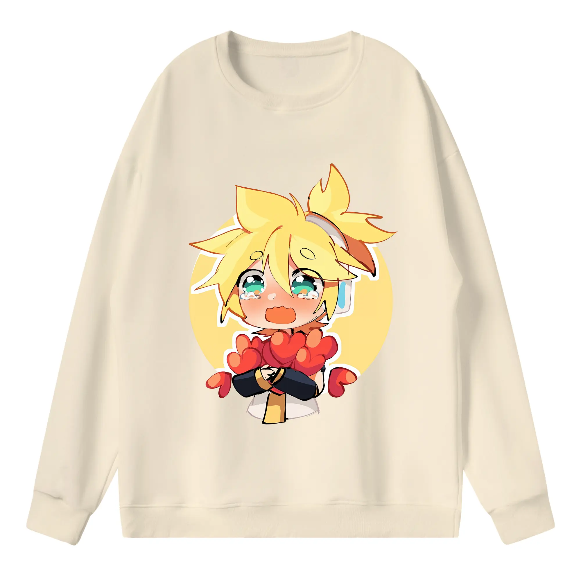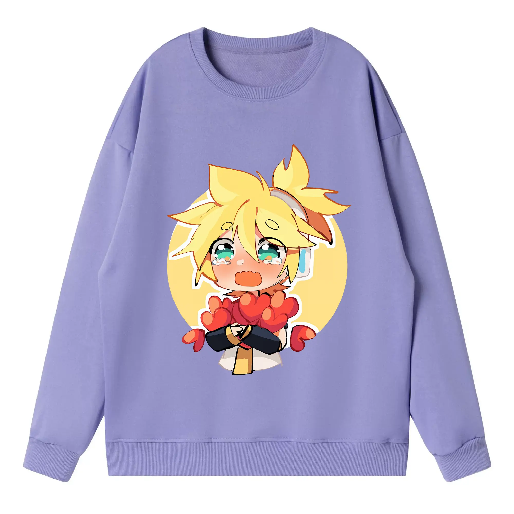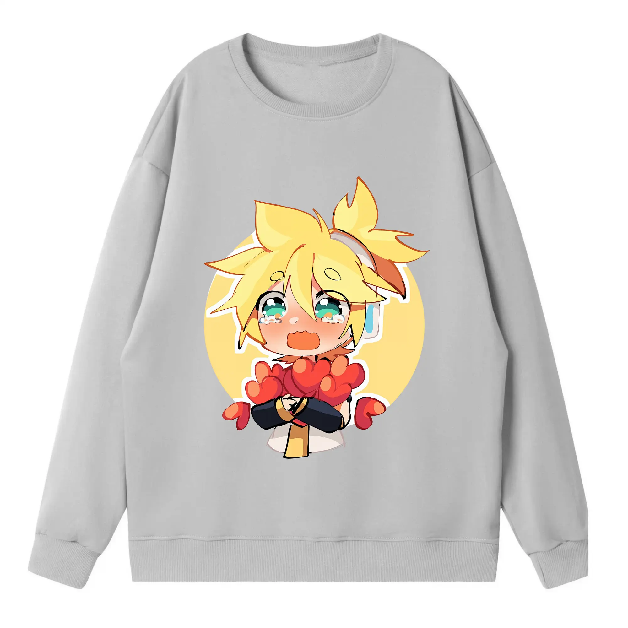 重音テト ハート キャラクター集合 かわいい オリジナルデザイン - 薄手 クルーネック スウェット 裏毛260g · ポリエステル 春秋向け カジュアル 男女兼用 · トレーナー デイリー スポーツ 散歩に最適