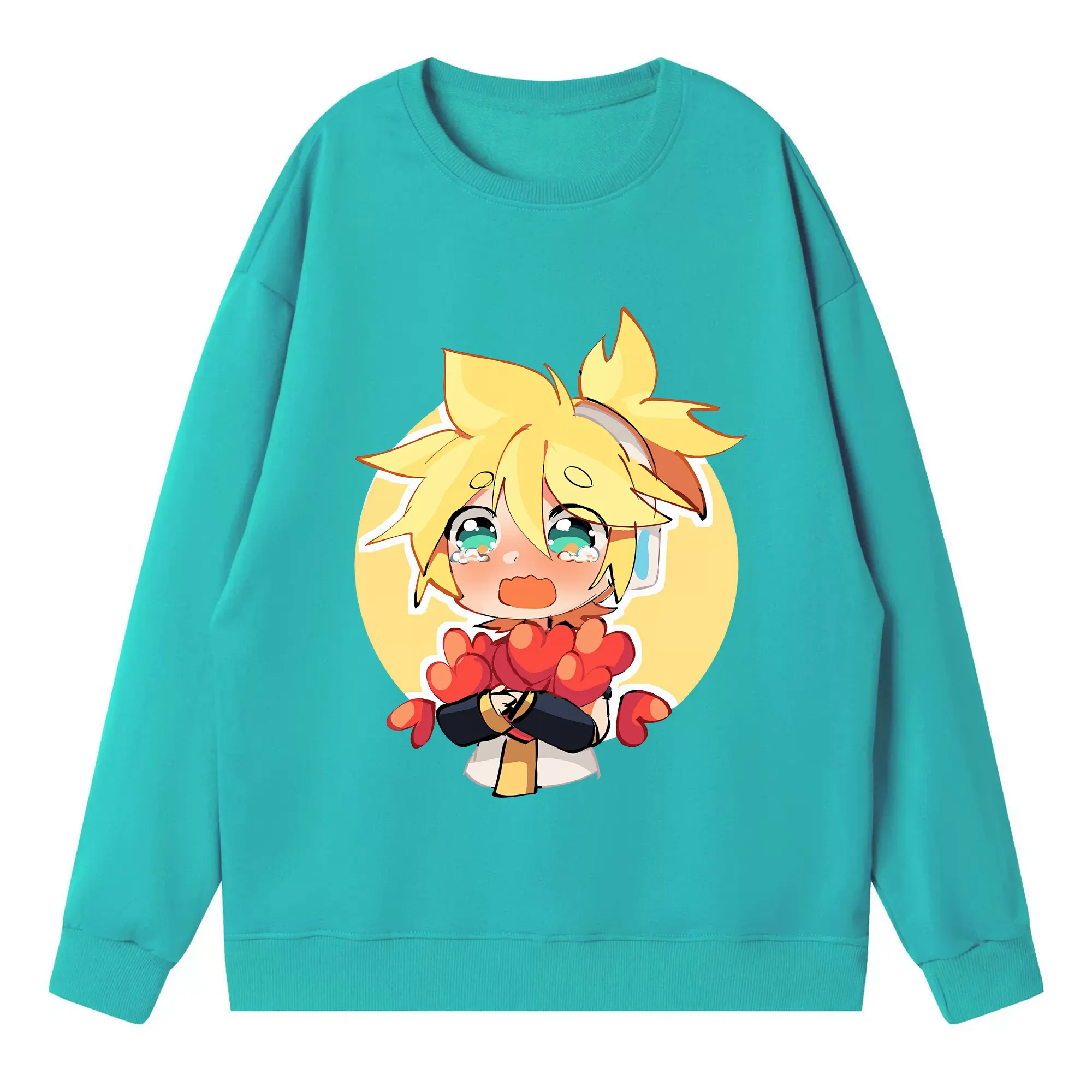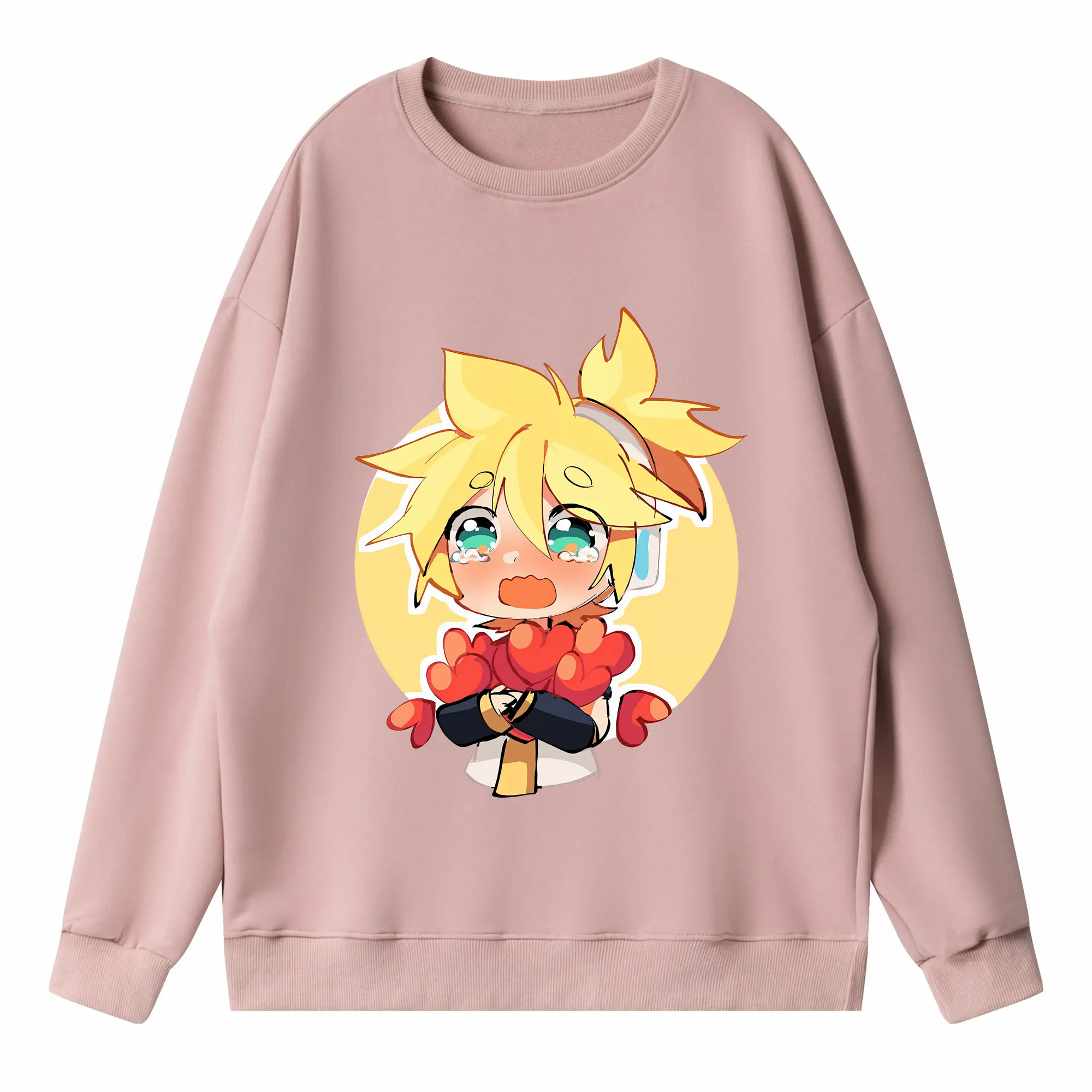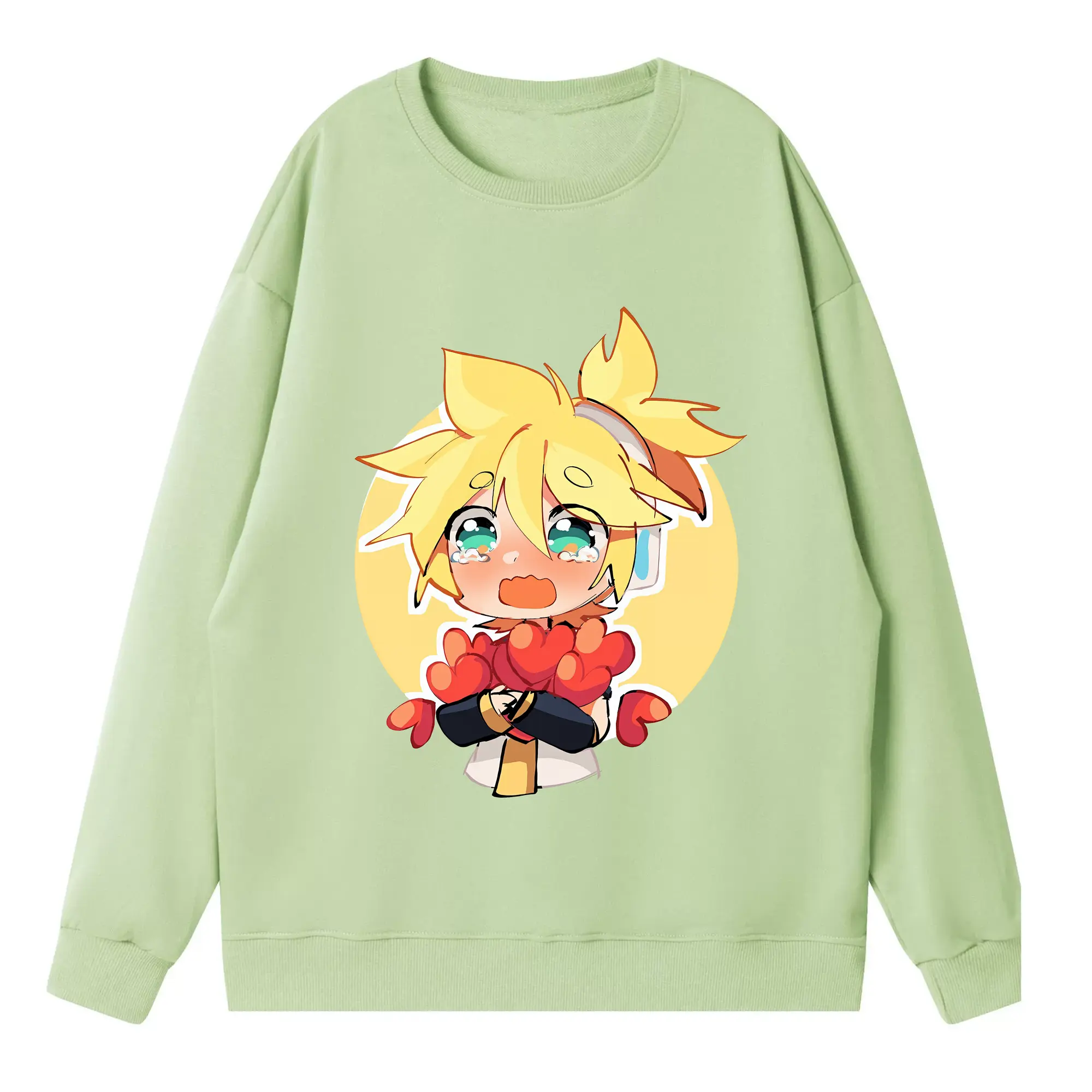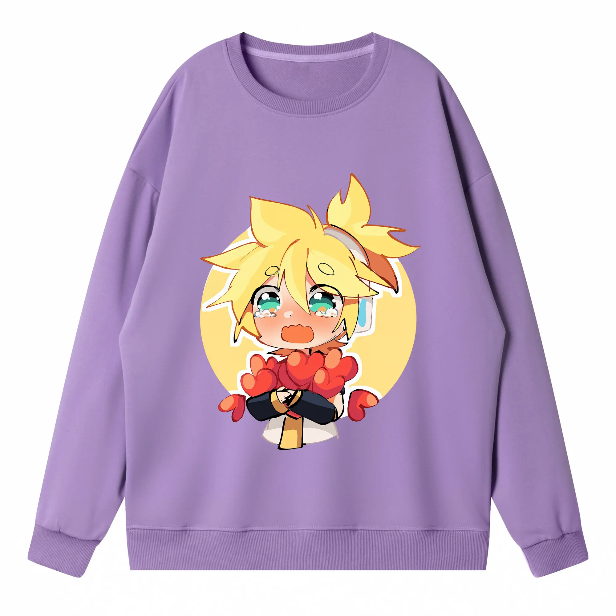 重音テト ハート キャラクター集合 かわいい オリジナルデザイン - 薄手 クルーネック スウェット 裏毛260g · ポリエステル 春秋向け カジュアル 男女兼用 · トレーナー デイリー スポーツ 散歩に最適