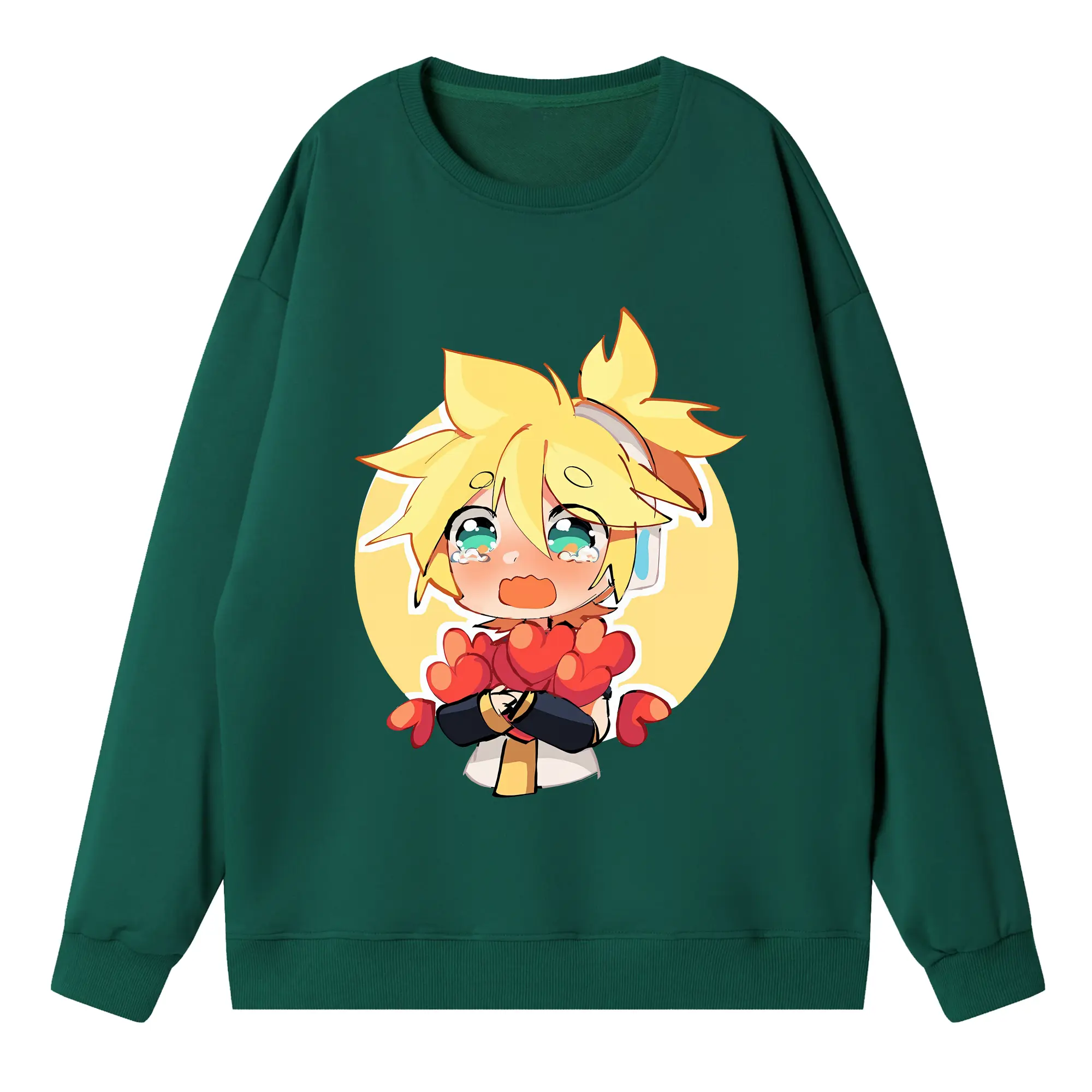 VOCALOID GUMI 猫耳モチーフ オリジナルデザイン - 薄手 クルーネック スウェット 裏毛260g · ポリエステル 春秋向け カジュアル 男女兼用 · トレーナー デイリー スポーツ 散歩に最適