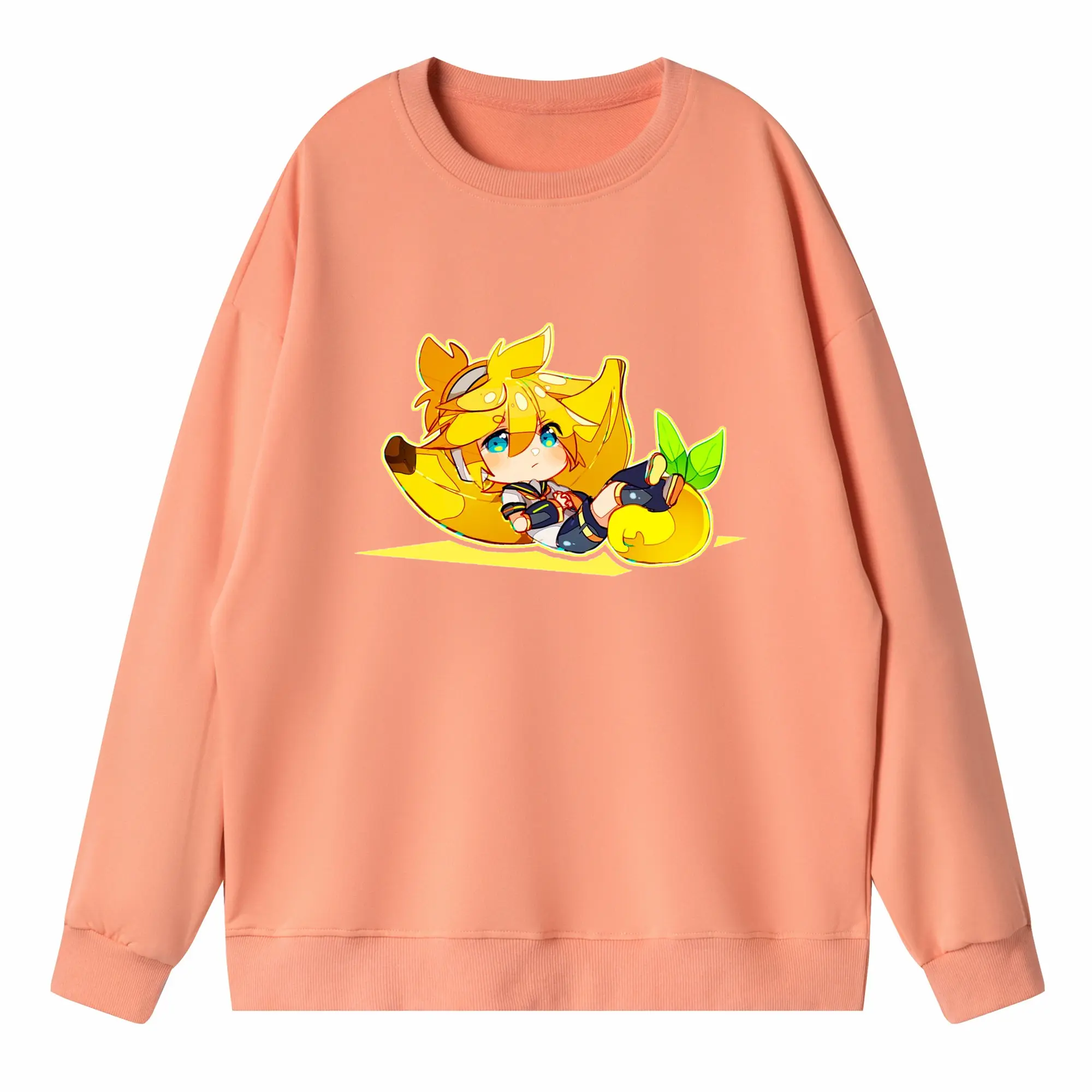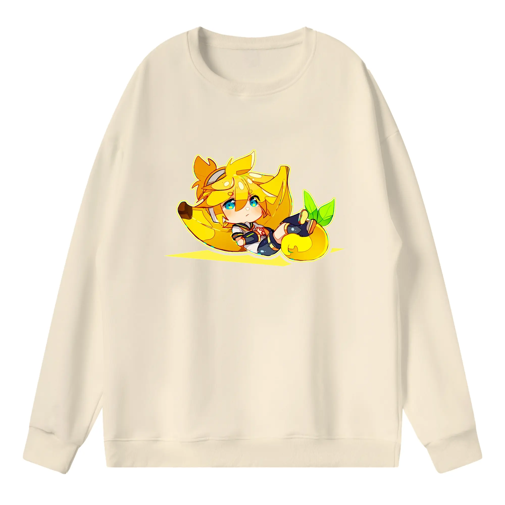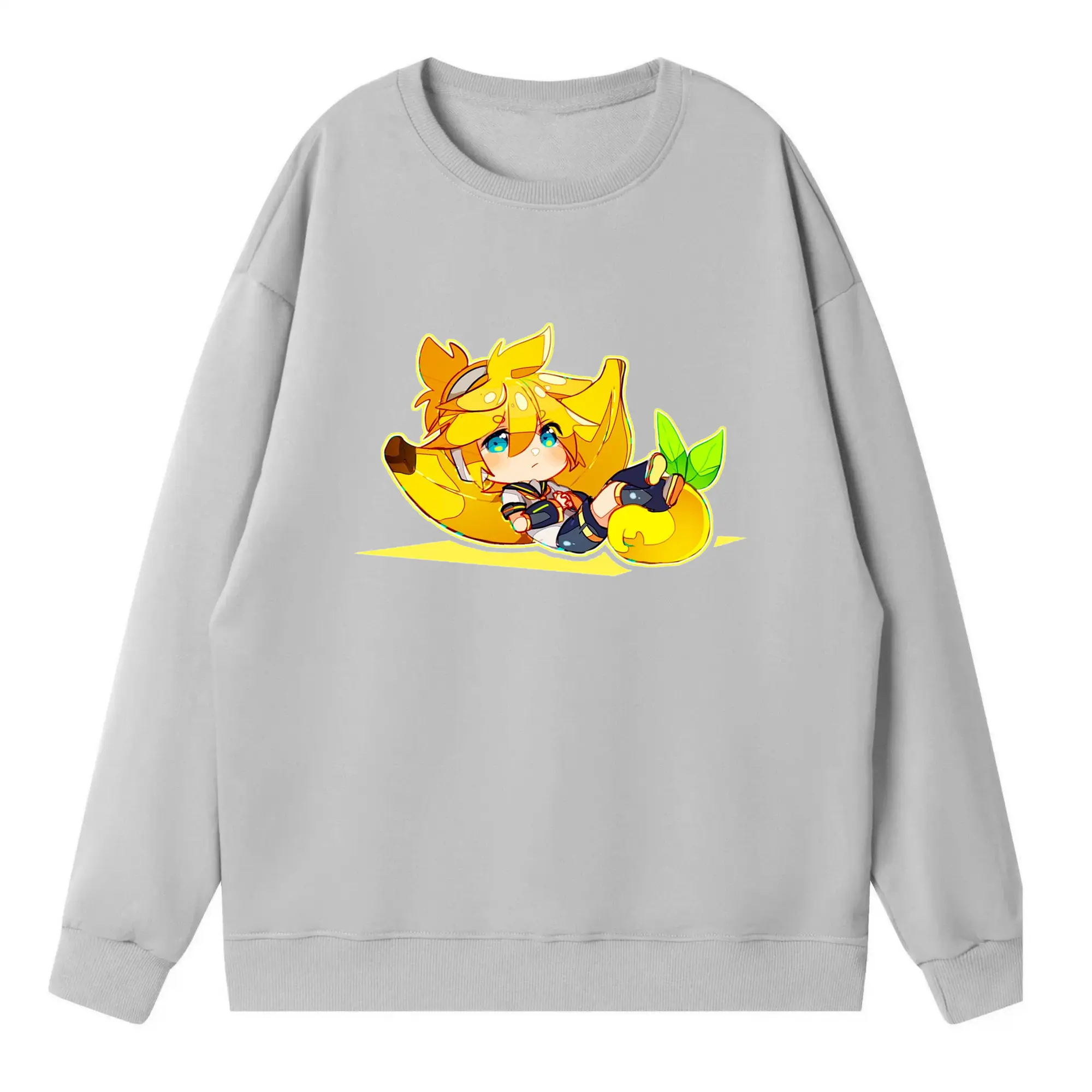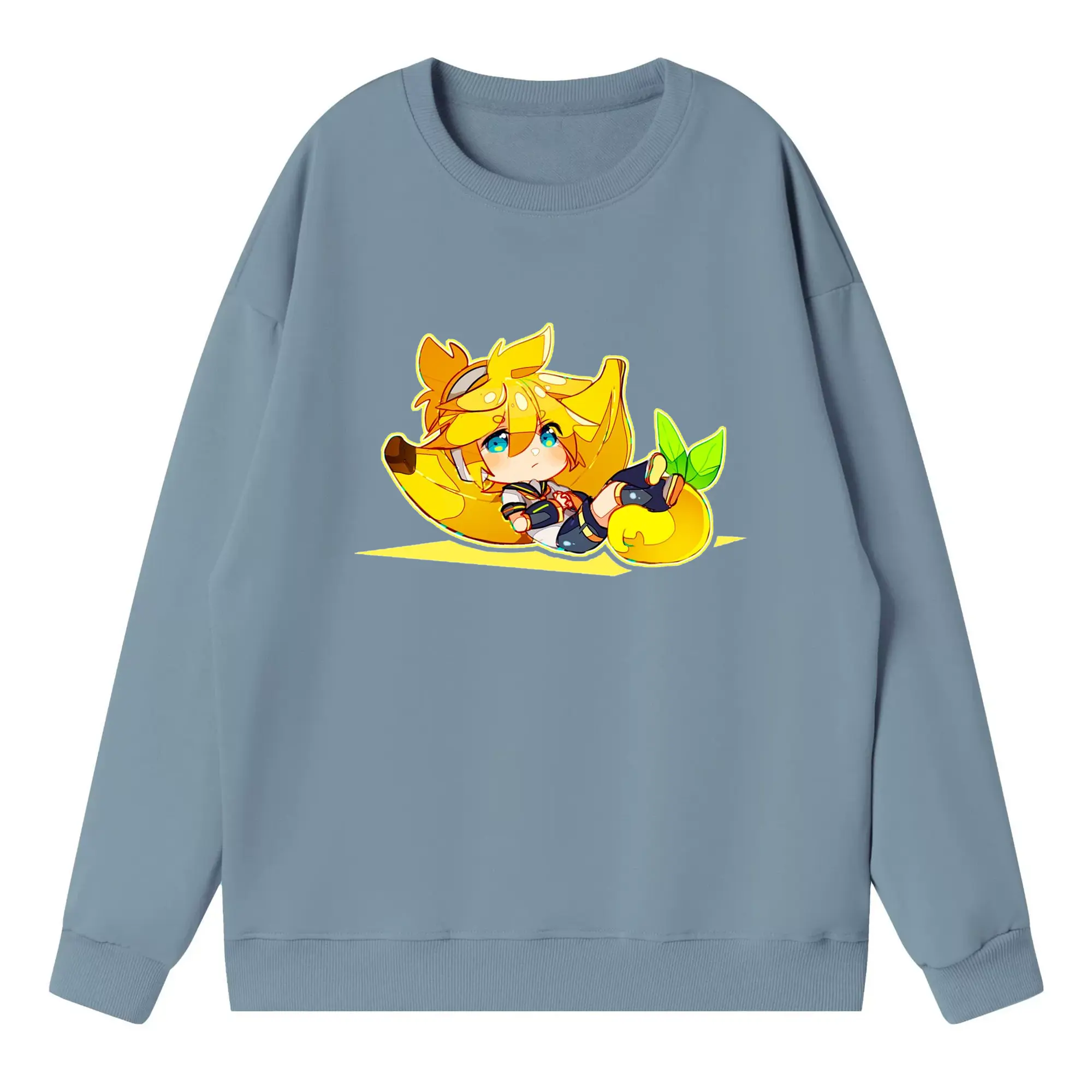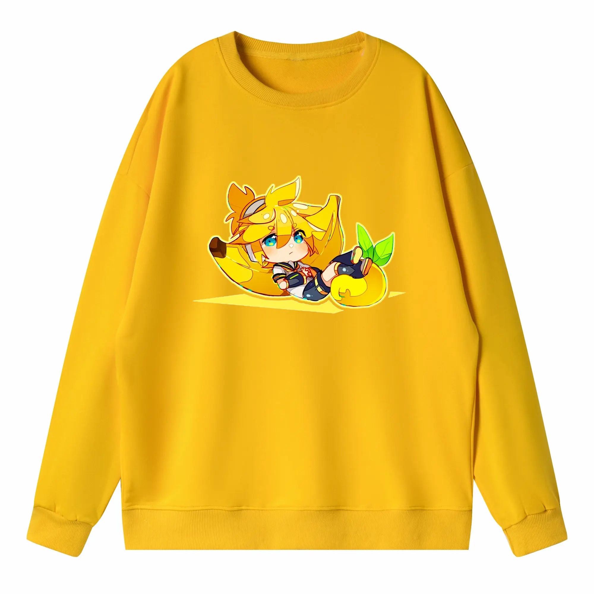 鏡音リン・レン と 初音ミク 可愛い萌え系コラボ オリジナルデザイン - 薄手 クルーネック スウェット 裏毛260g · ポリエステル 春秋向け カジュアル 男女兼用 · トレーナー デイリー スポーツ 散歩に最適
