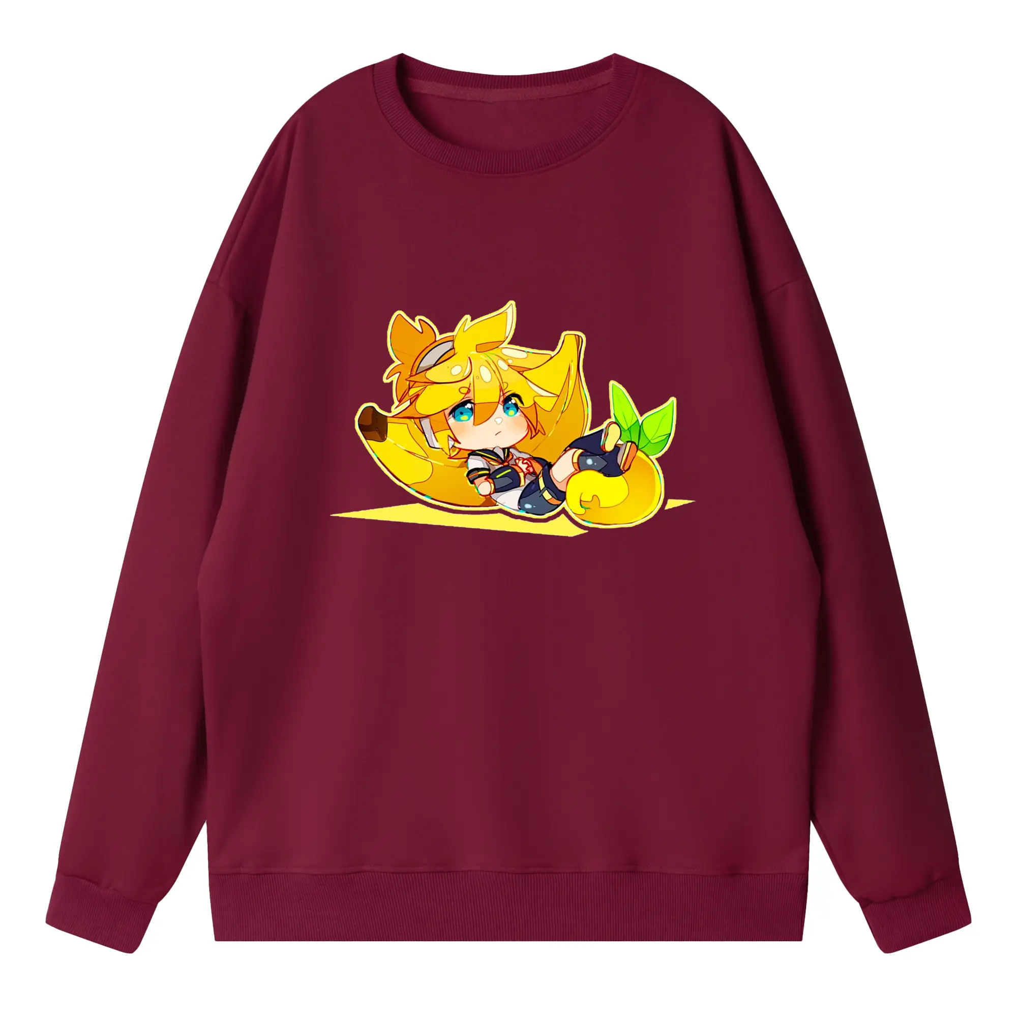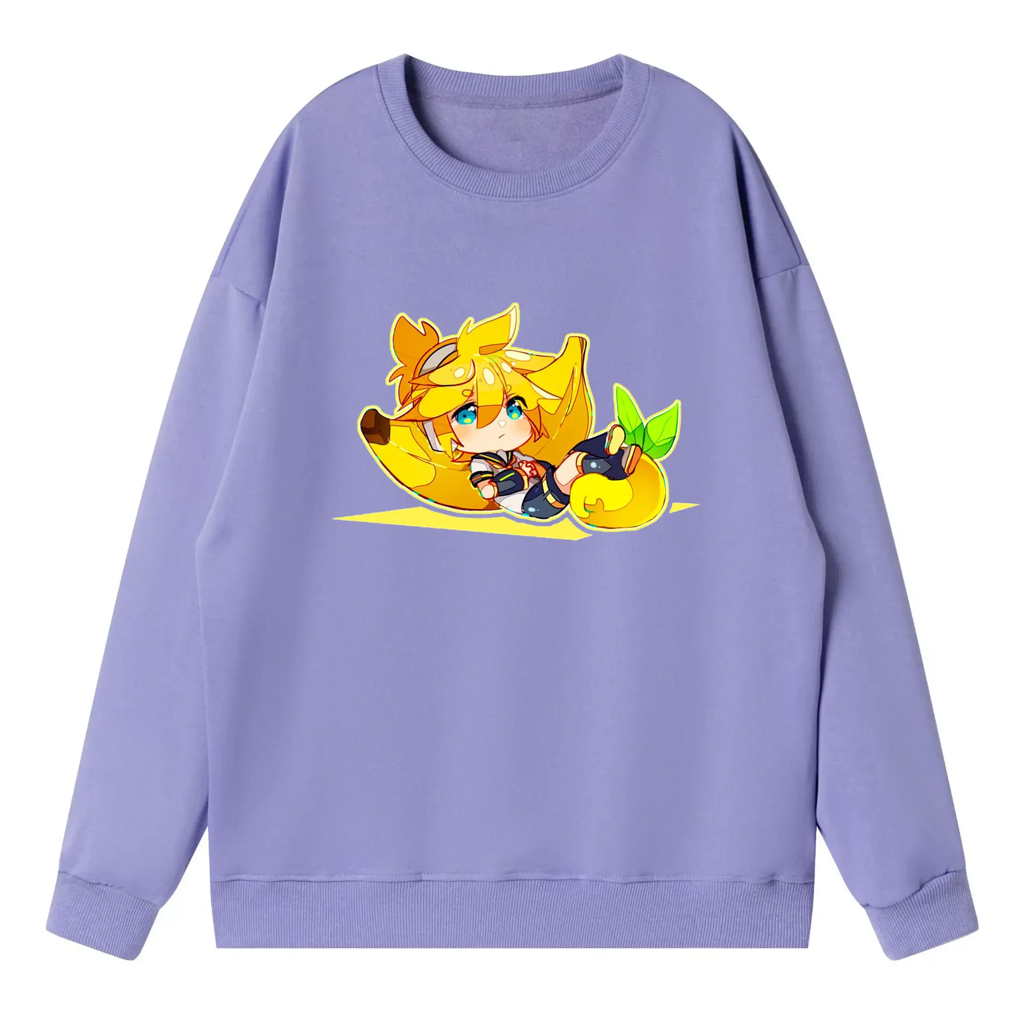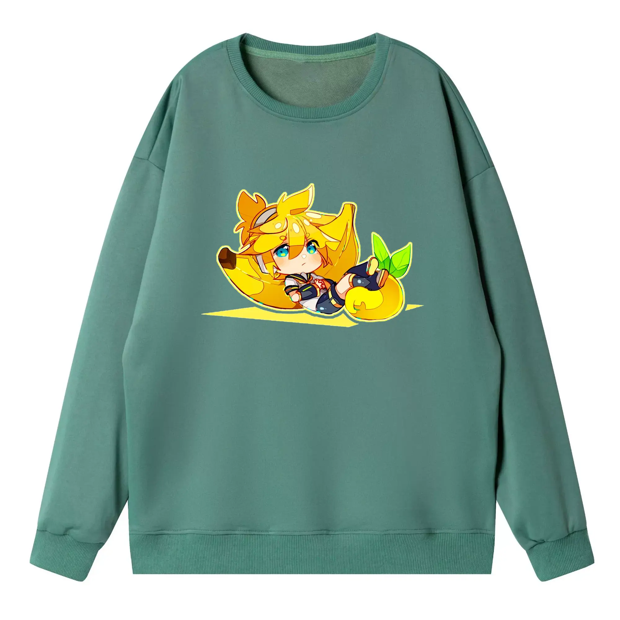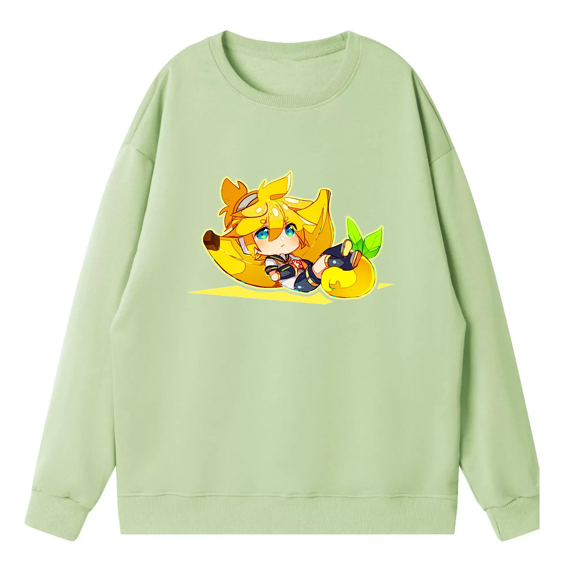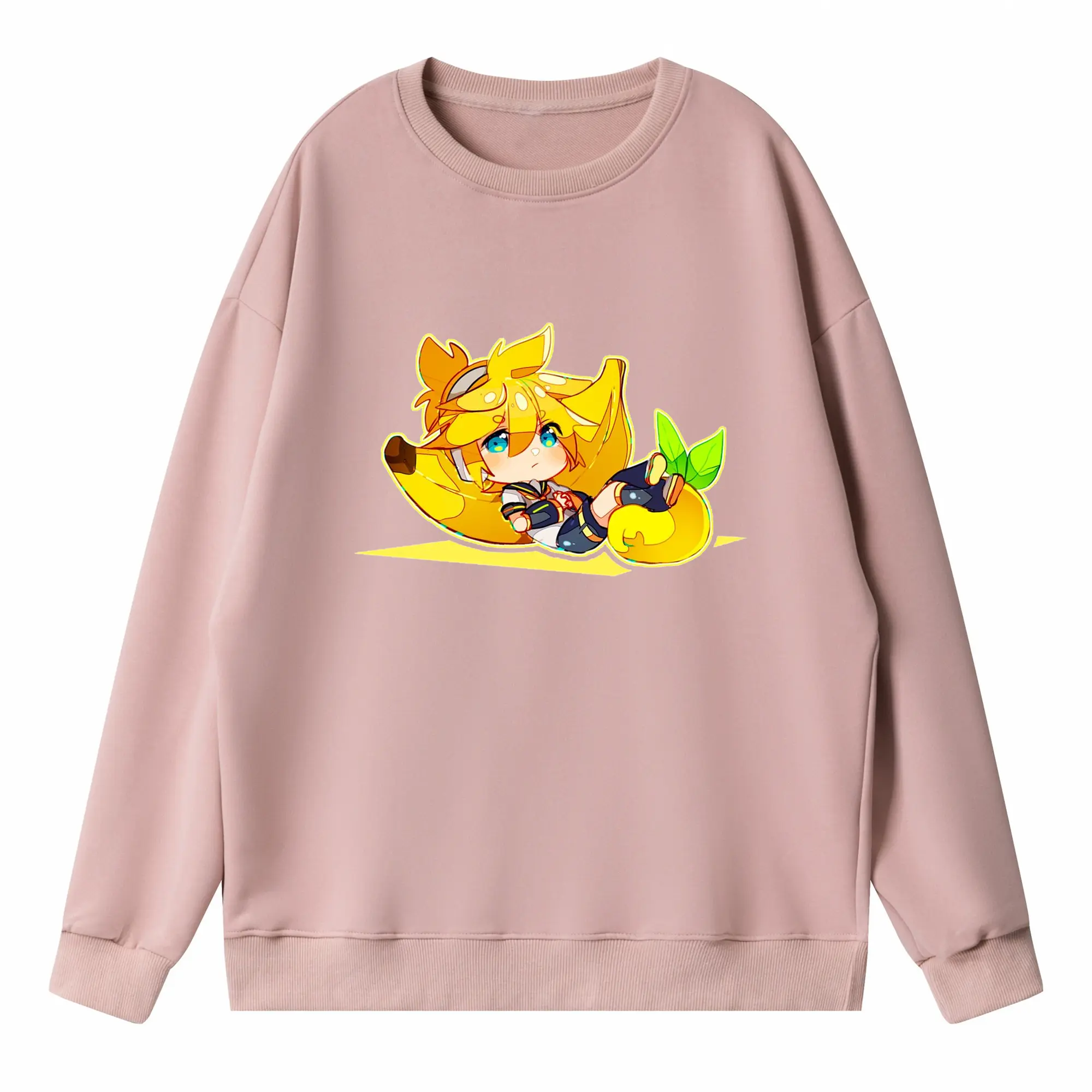 鏡音リン・レン と 初音ミク 可愛い萌え系コラボ オリジナルデザイン - 薄手 クルーネック スウェット 裏毛260g · ポリエステル 春秋向け カジュアル 男女兼用 · トレーナー デイリー スポーツ 散歩に最適
