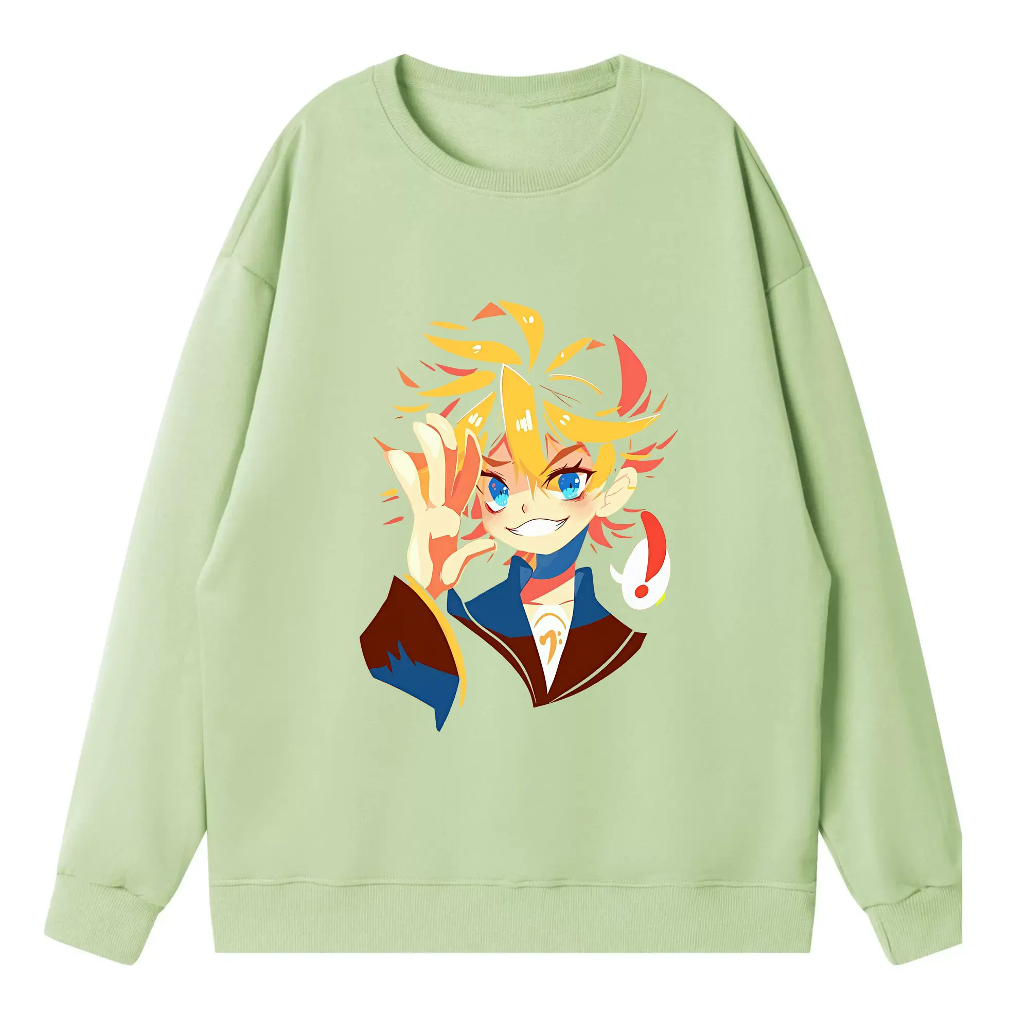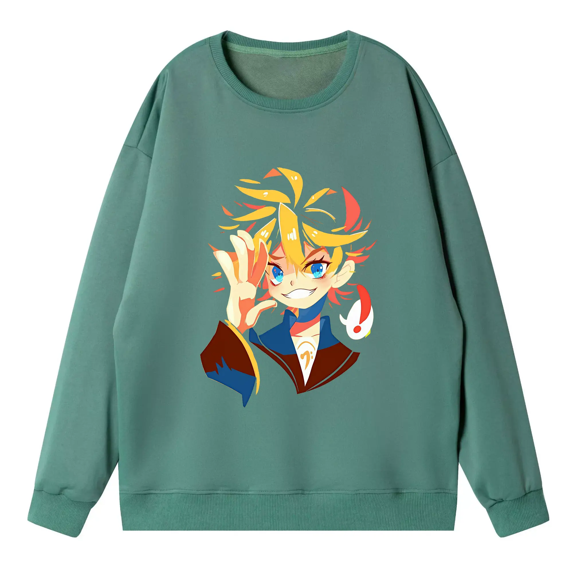VOCALOID GUMI かわいいデフォルメ オリジナルデザイン - 薄手 クルーネック スウェット 裏毛260g · ポリエステル 春秋向け カジュアル 男女兼用 · トレーナー デイリー スポーツ 散歩に最適