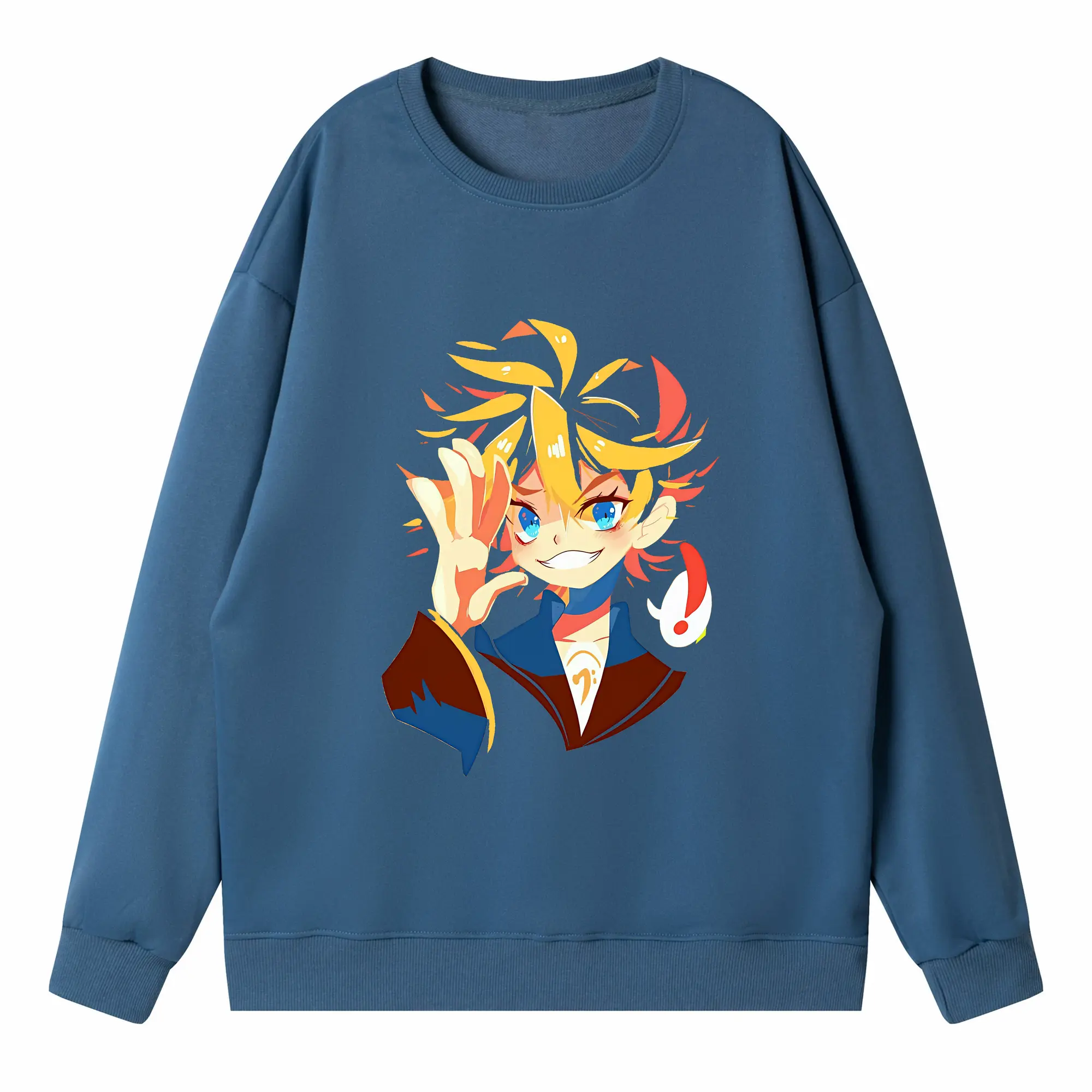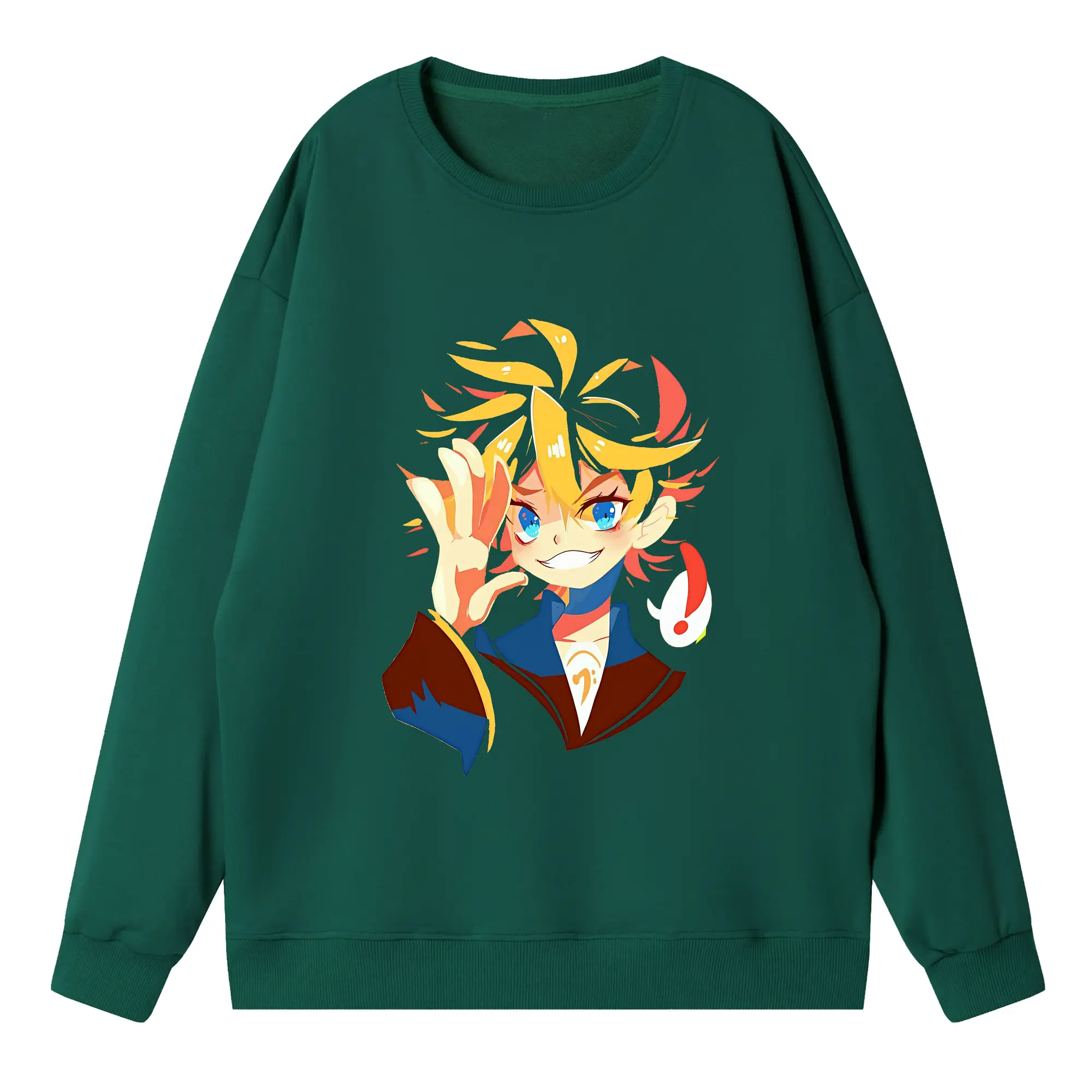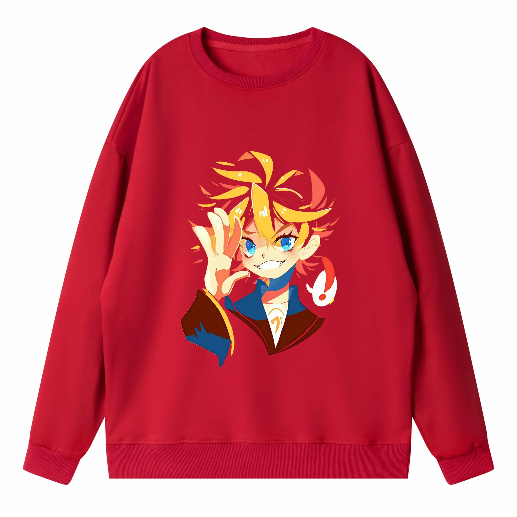 鏡音レン ハートモチーフ 元気 オリジナルデザイン - 薄手 クルーネック スウェット 裏毛260g · ポリエステル 春秋向け カジュアル 男女兼用 · トレーナー デイリー スポーツ 散歩に最適
