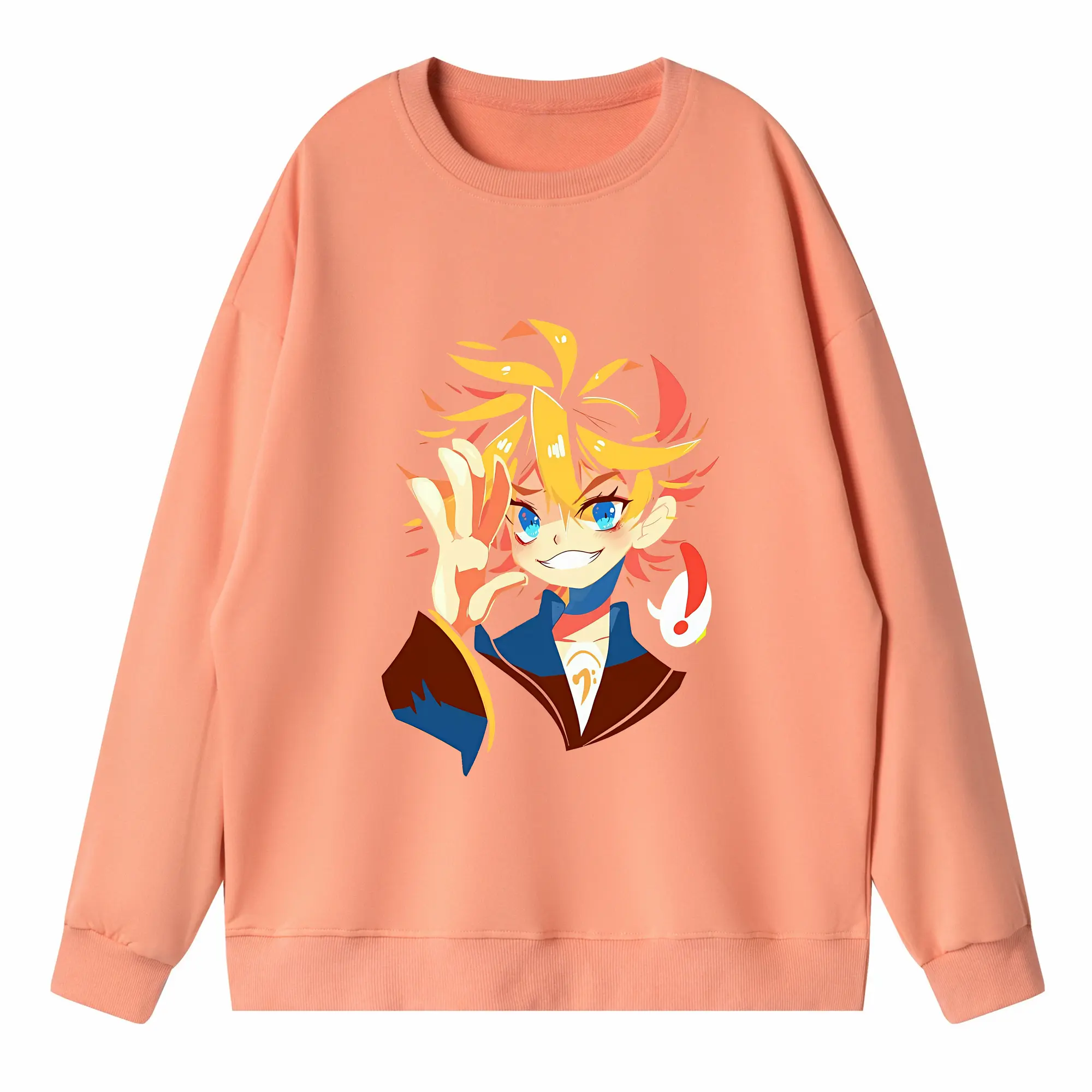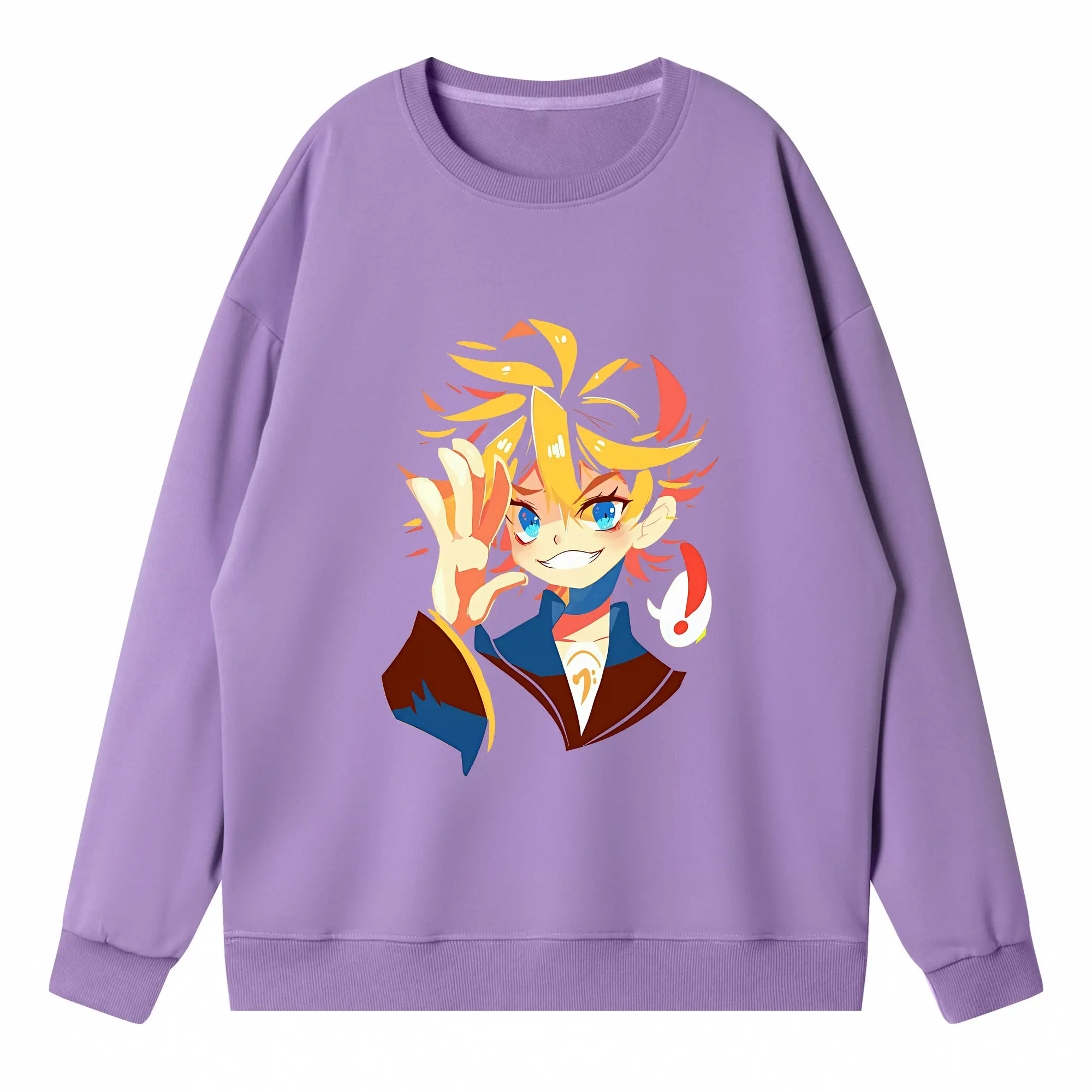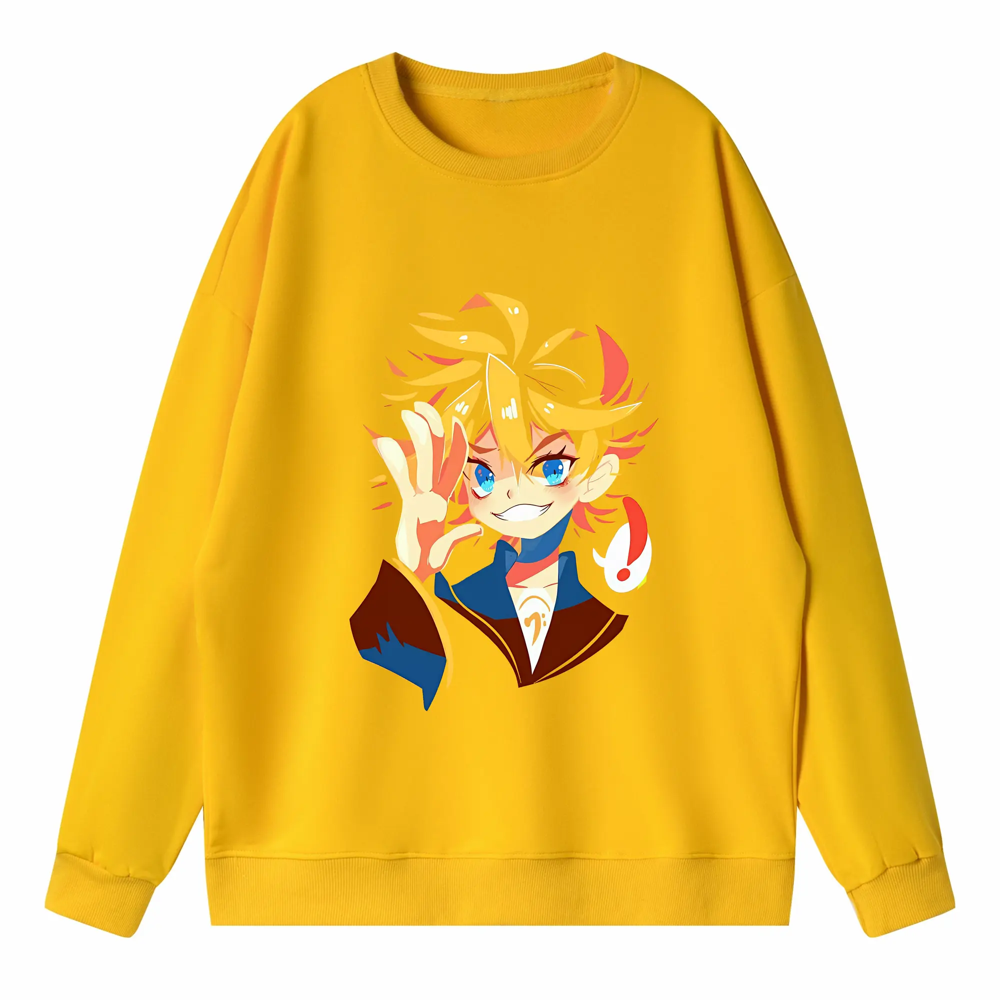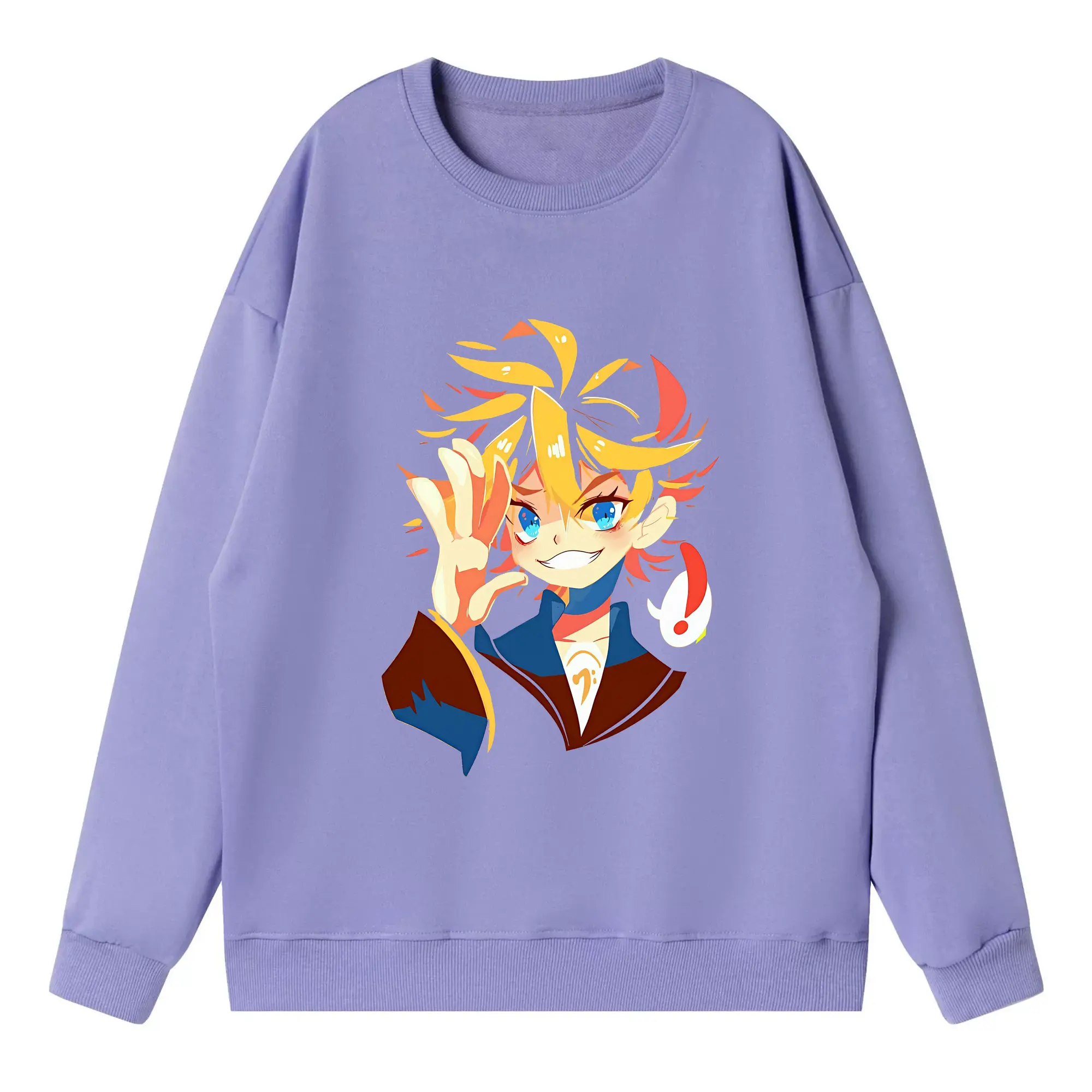 鏡音リン・レン カートゥーンシンプル オリジナルデザイン - 薄手 クルーネック スウェット 裏毛260g · ポリエステル 春秋向け カジュアル 男女兼用 · トレーナー デイリー スポーツ 散歩に最適
