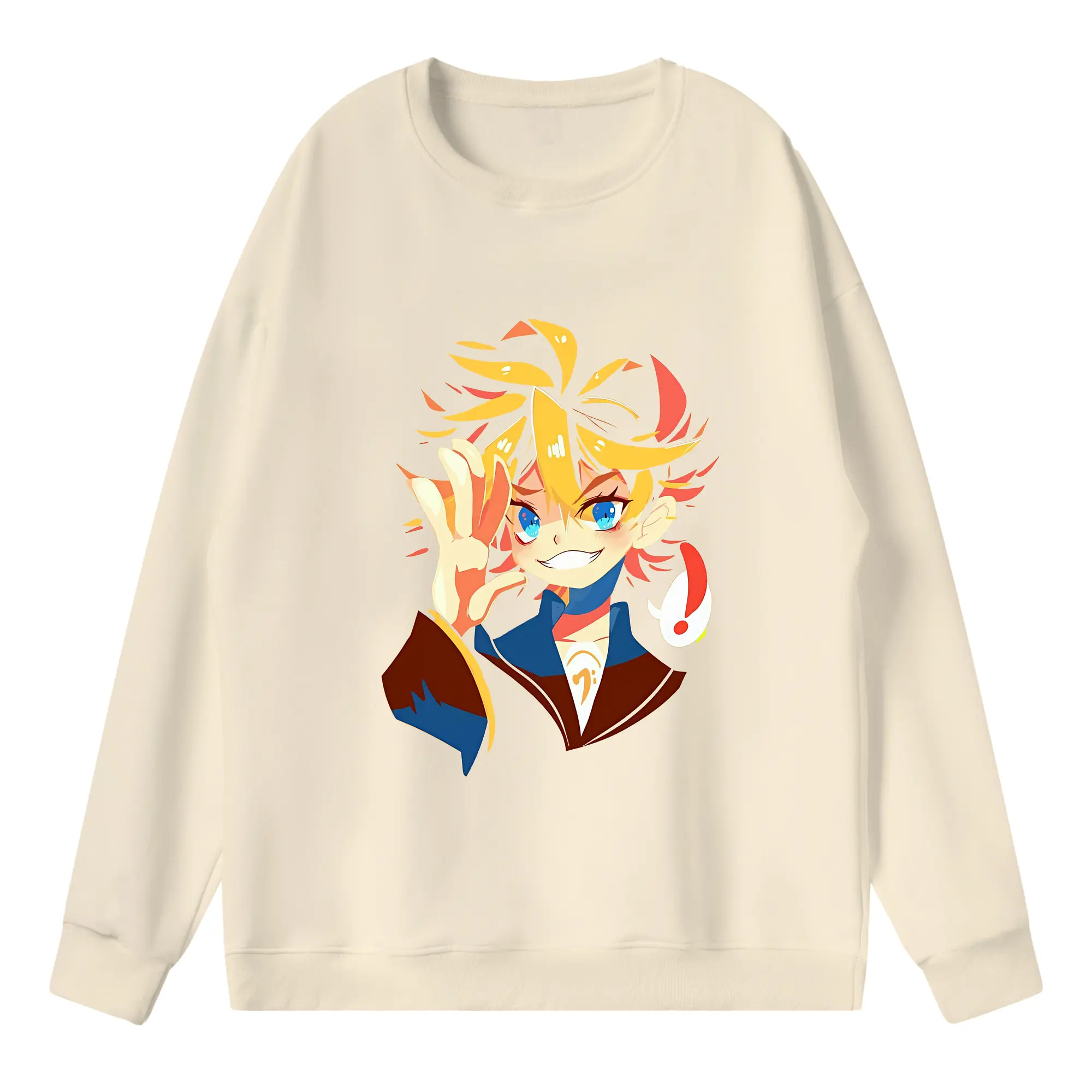重音テト カートゥーン風 シンプル オリジナルデザイン - 薄手 クルーネック スウェット 裏毛260g · ポリエステル 春秋向け カジュアル 男女兼用 · トレーナー デイリー スポーツ 散歩に最適