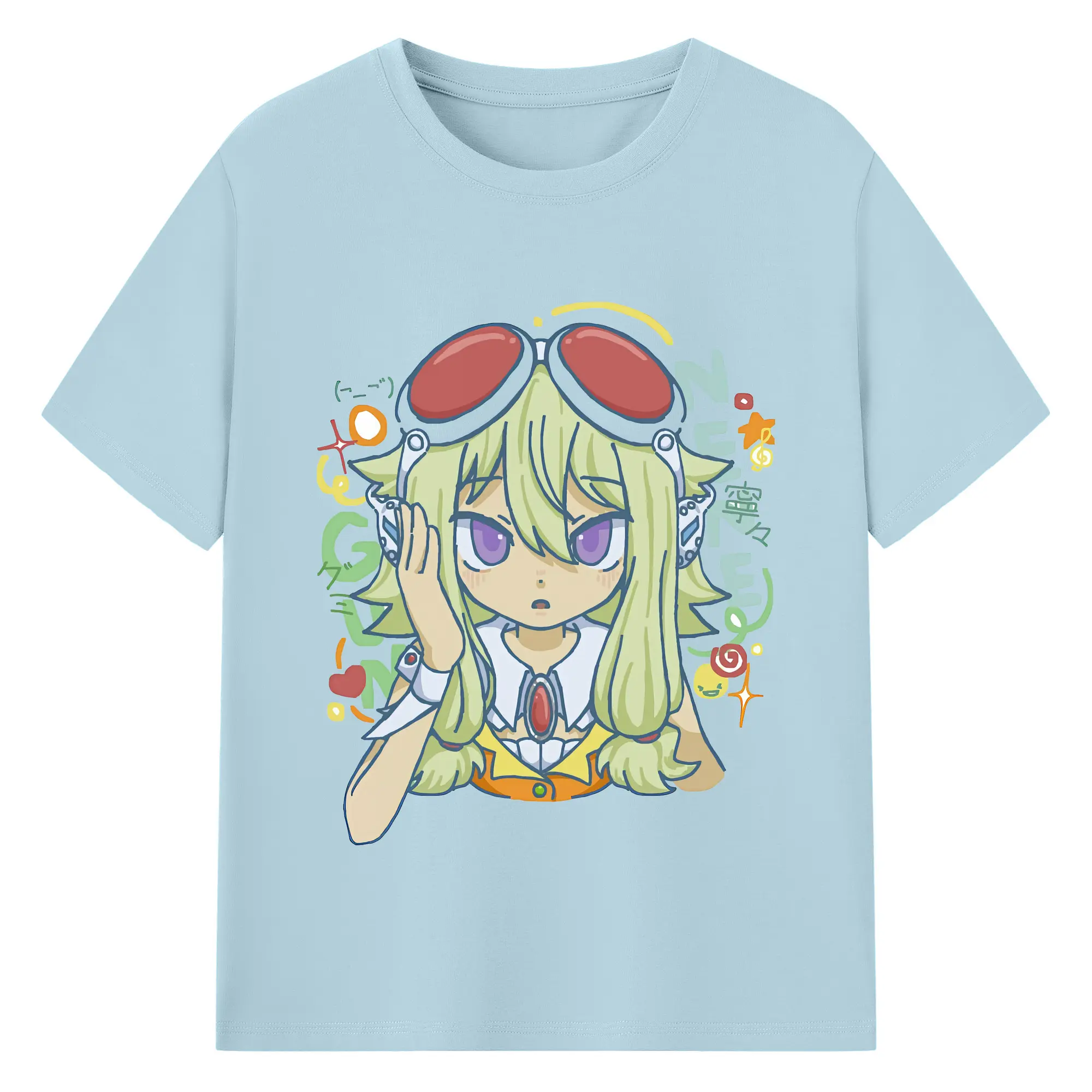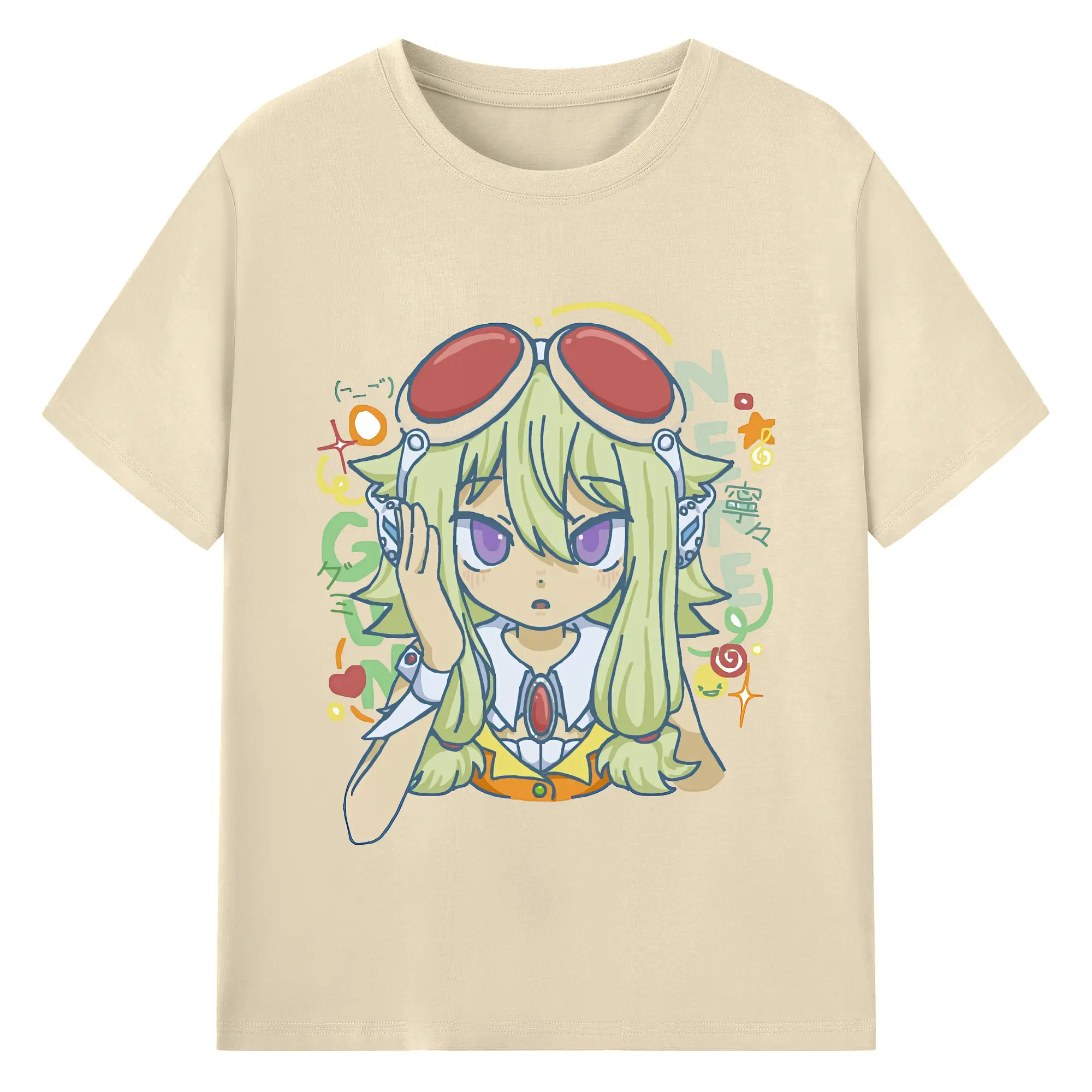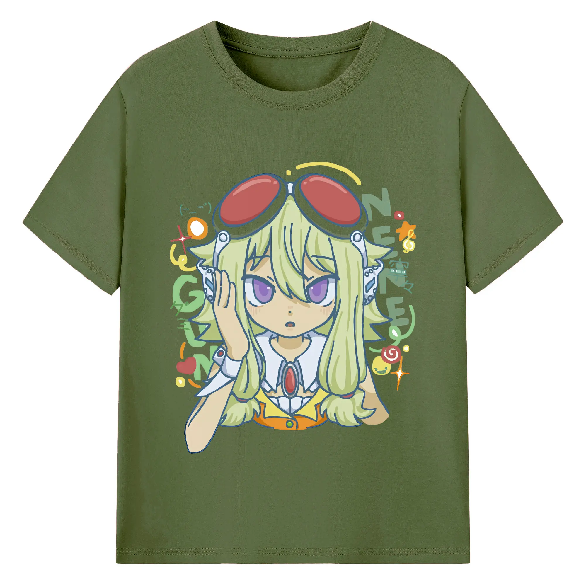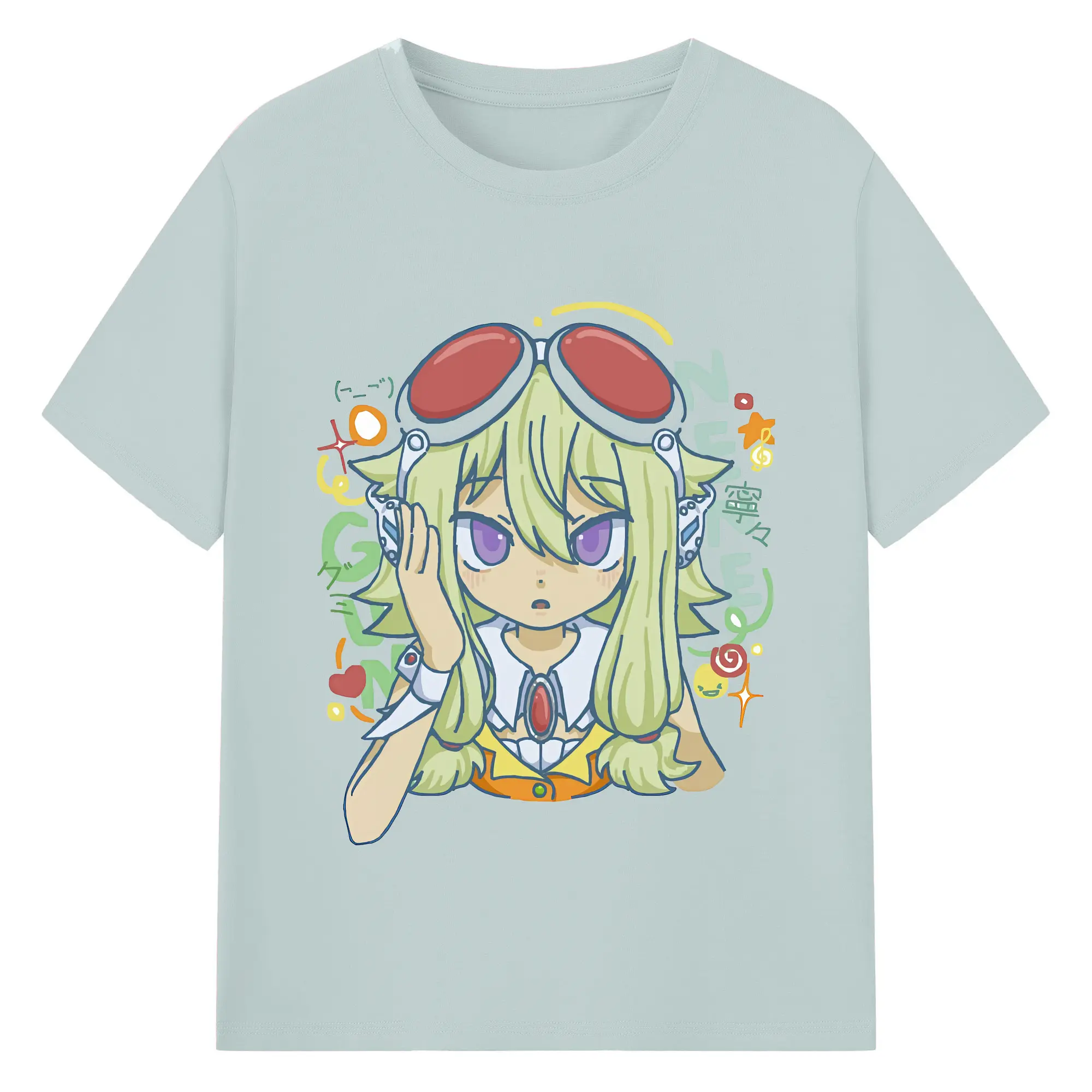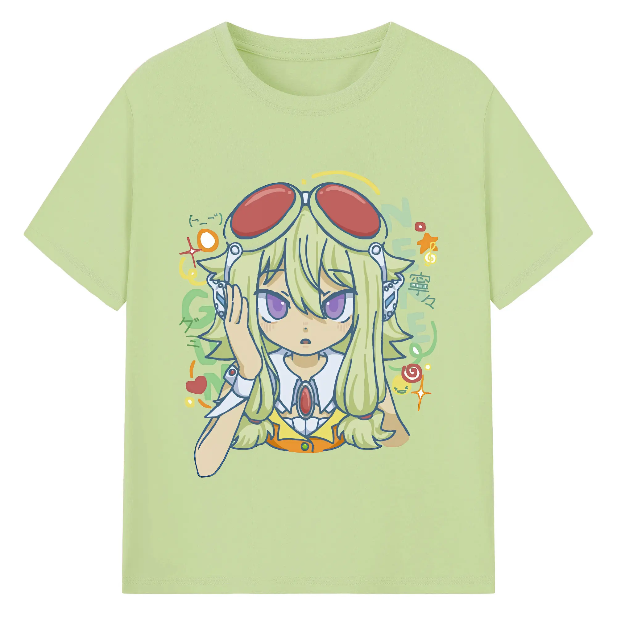 VOCALOID GUMI かわいいデフォルメ オリジナルデザイン - 綿100% 半袖Tシャツ ・ フロントプリント ・ 快適 通気性 ・ 日常使い 散歩 スポーツ用