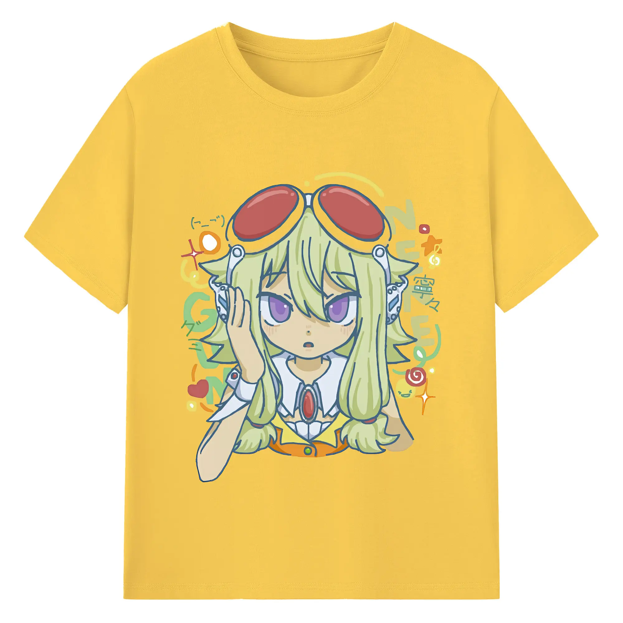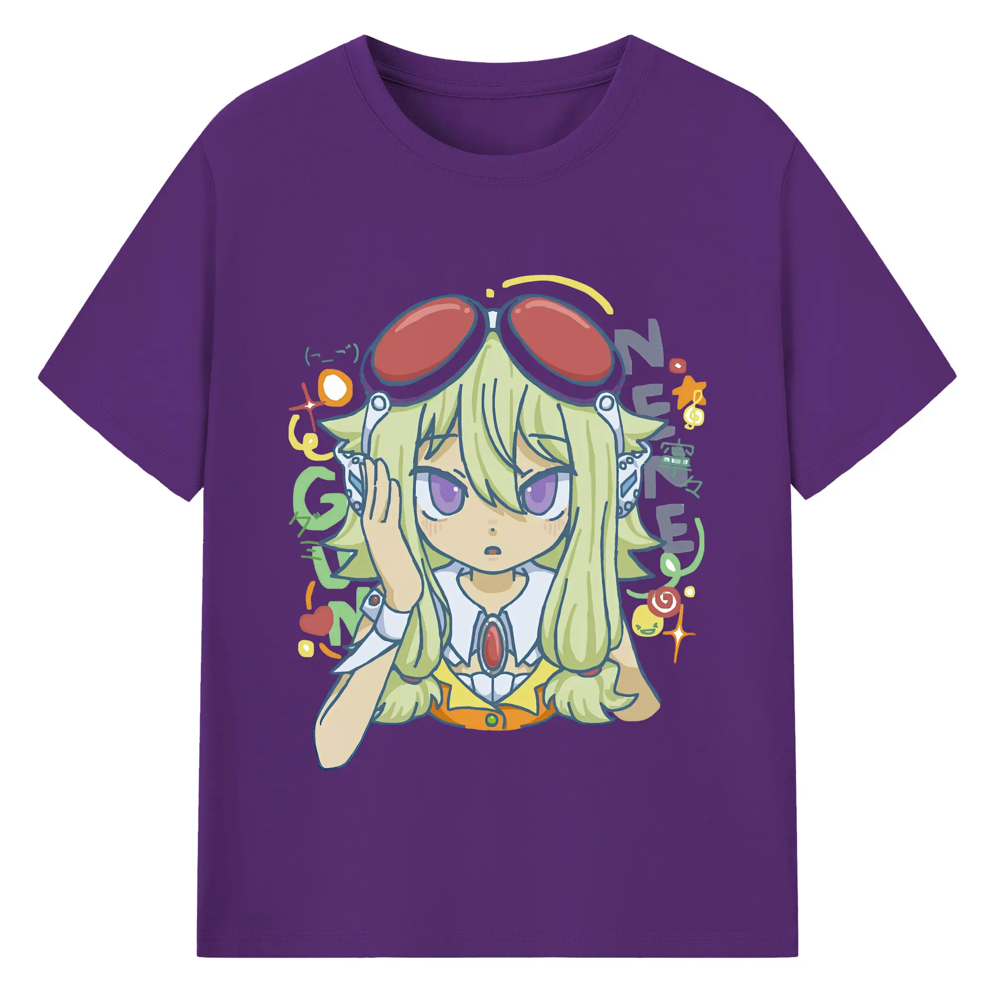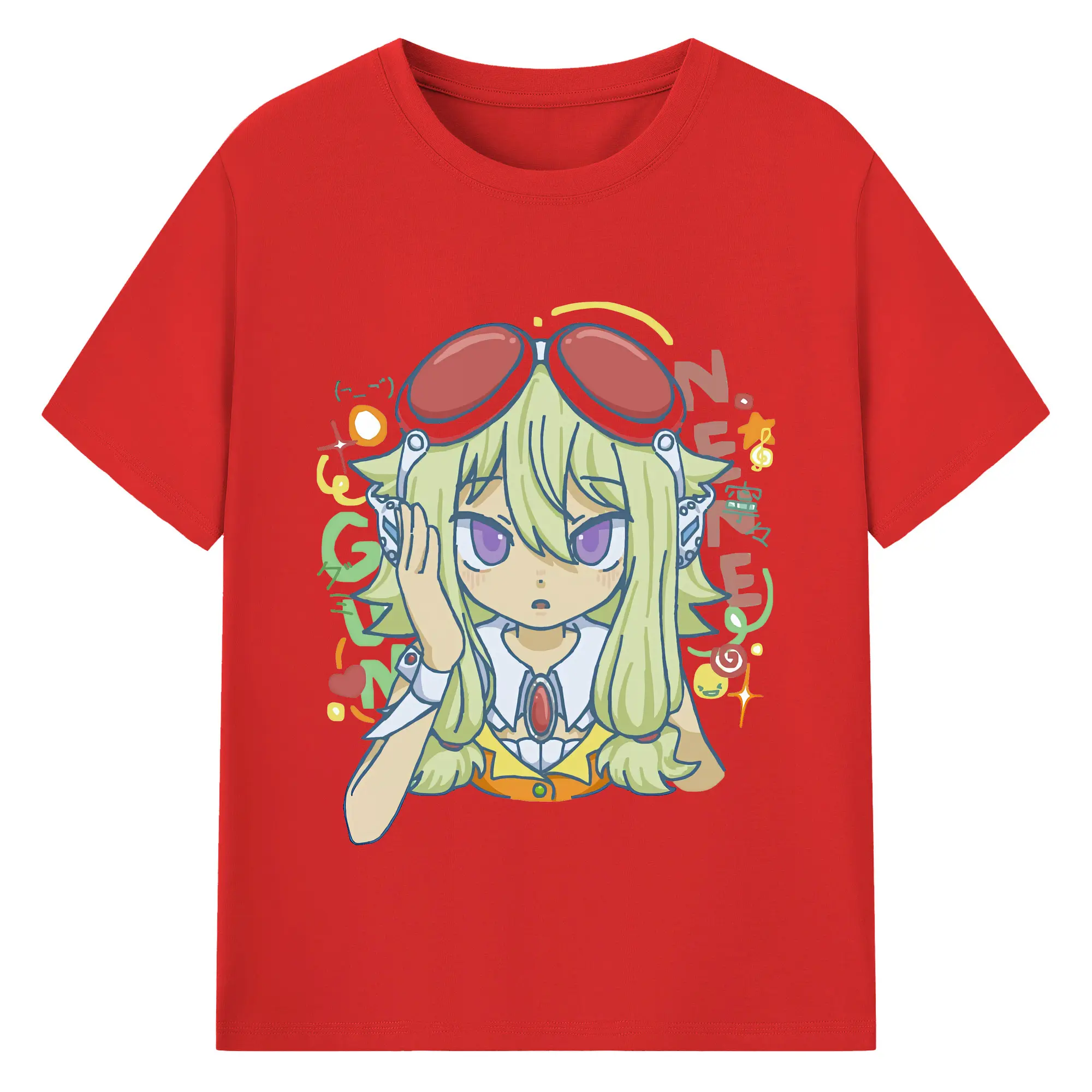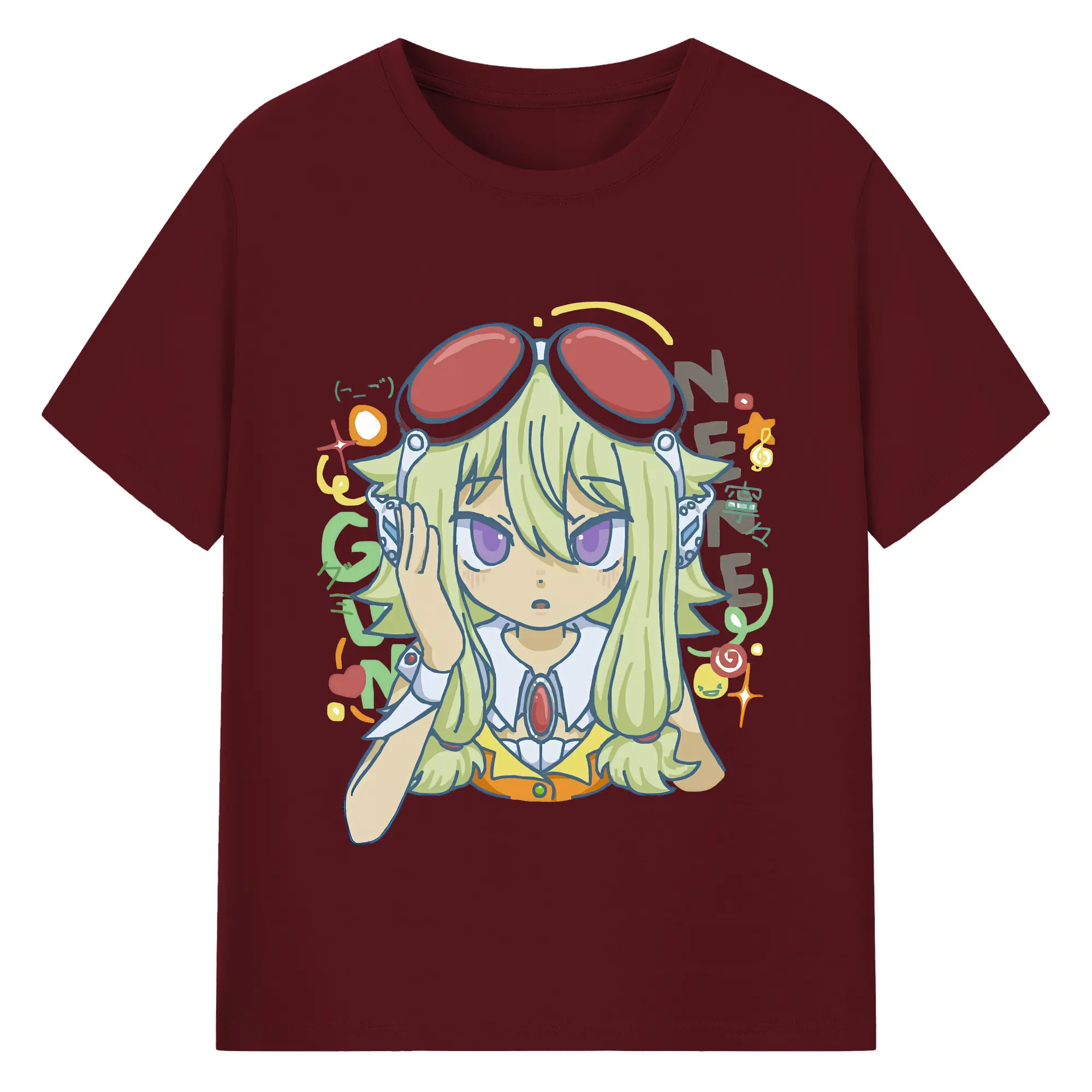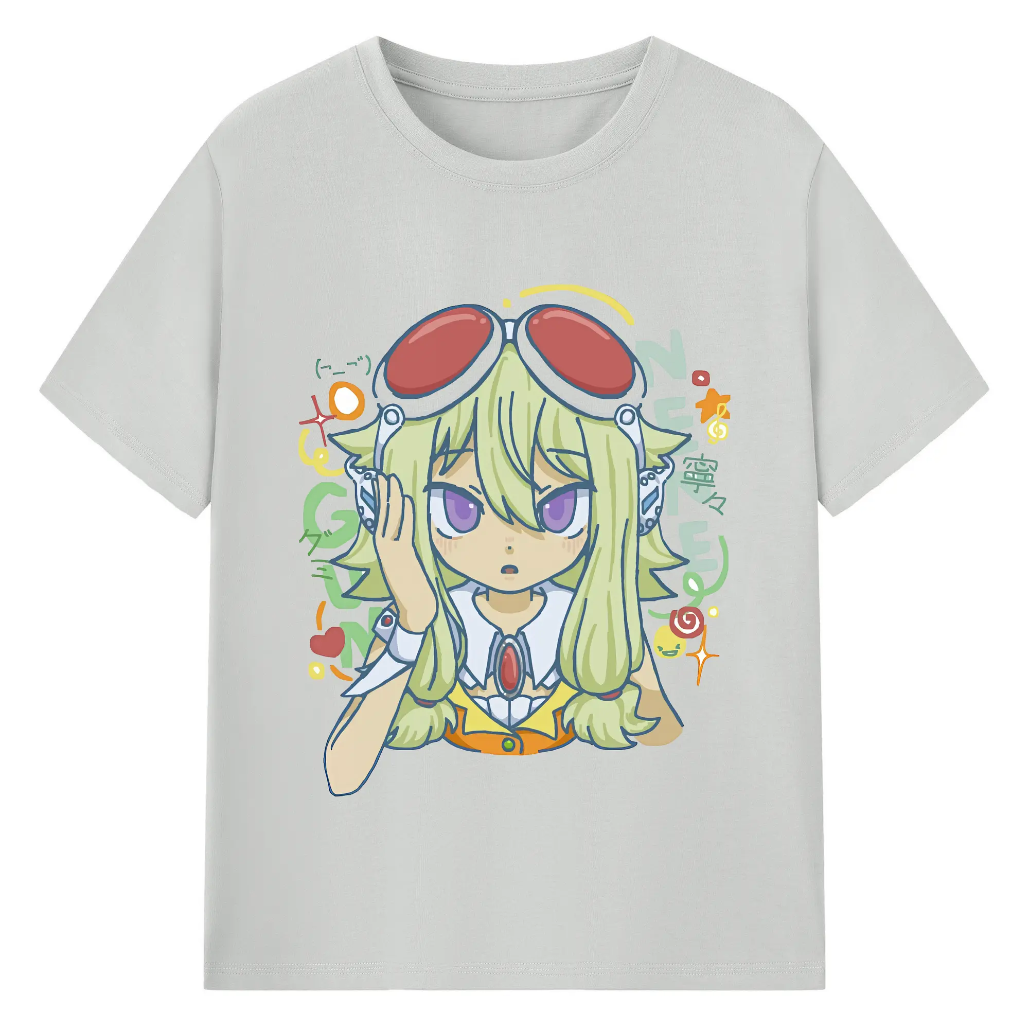 VOCALOID GUMI かわいいデフォルメ オリジナルデザイン - 綿100% 半袖Tシャツ ・ フロントプリント ・ 快適 通気性 ・ 日常使い 散歩 スポーツ用