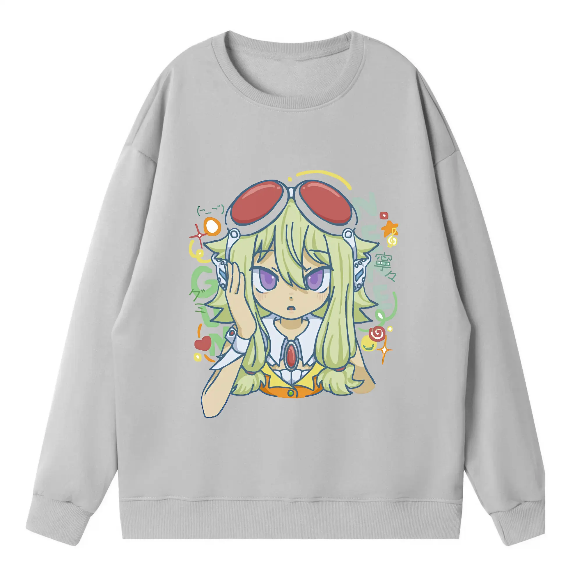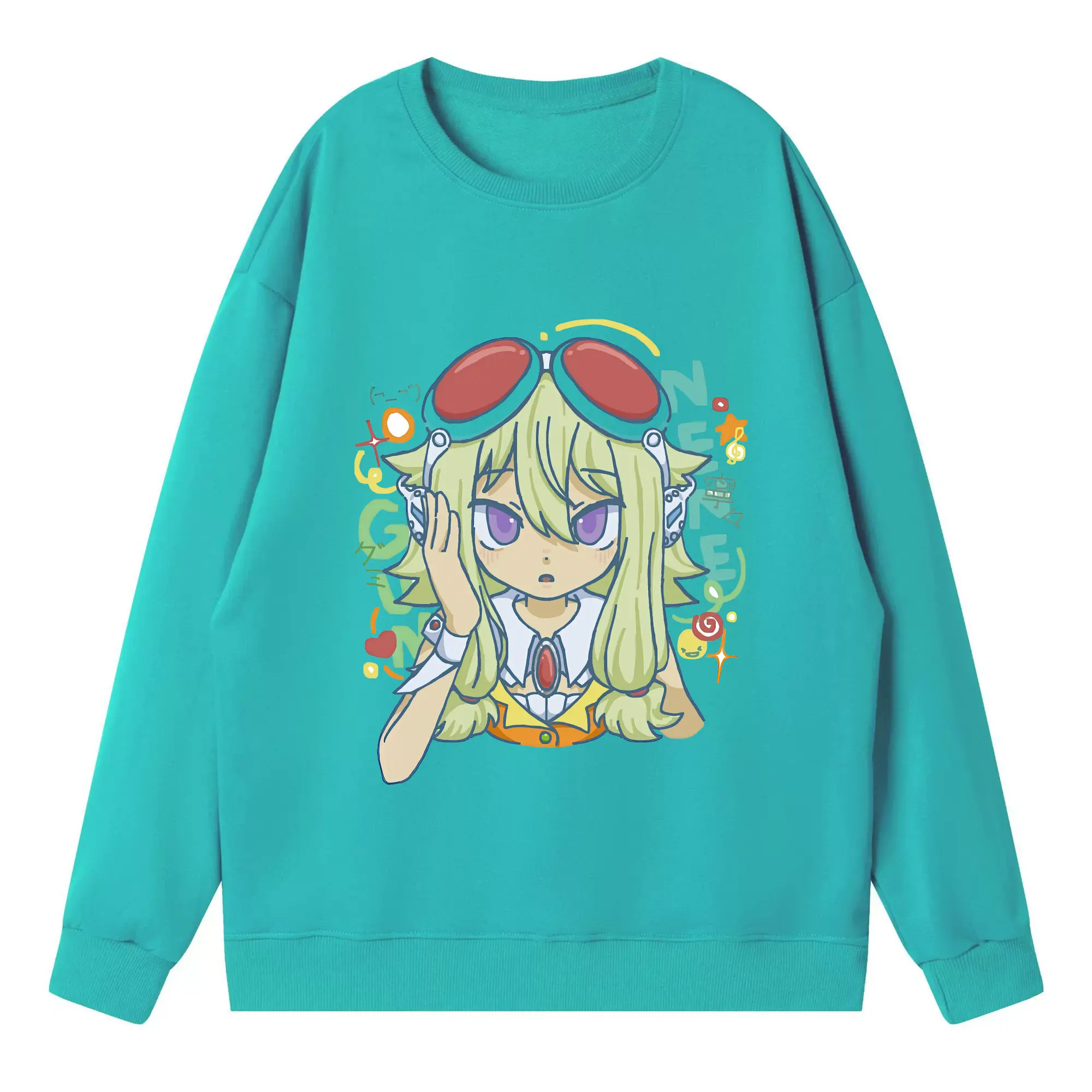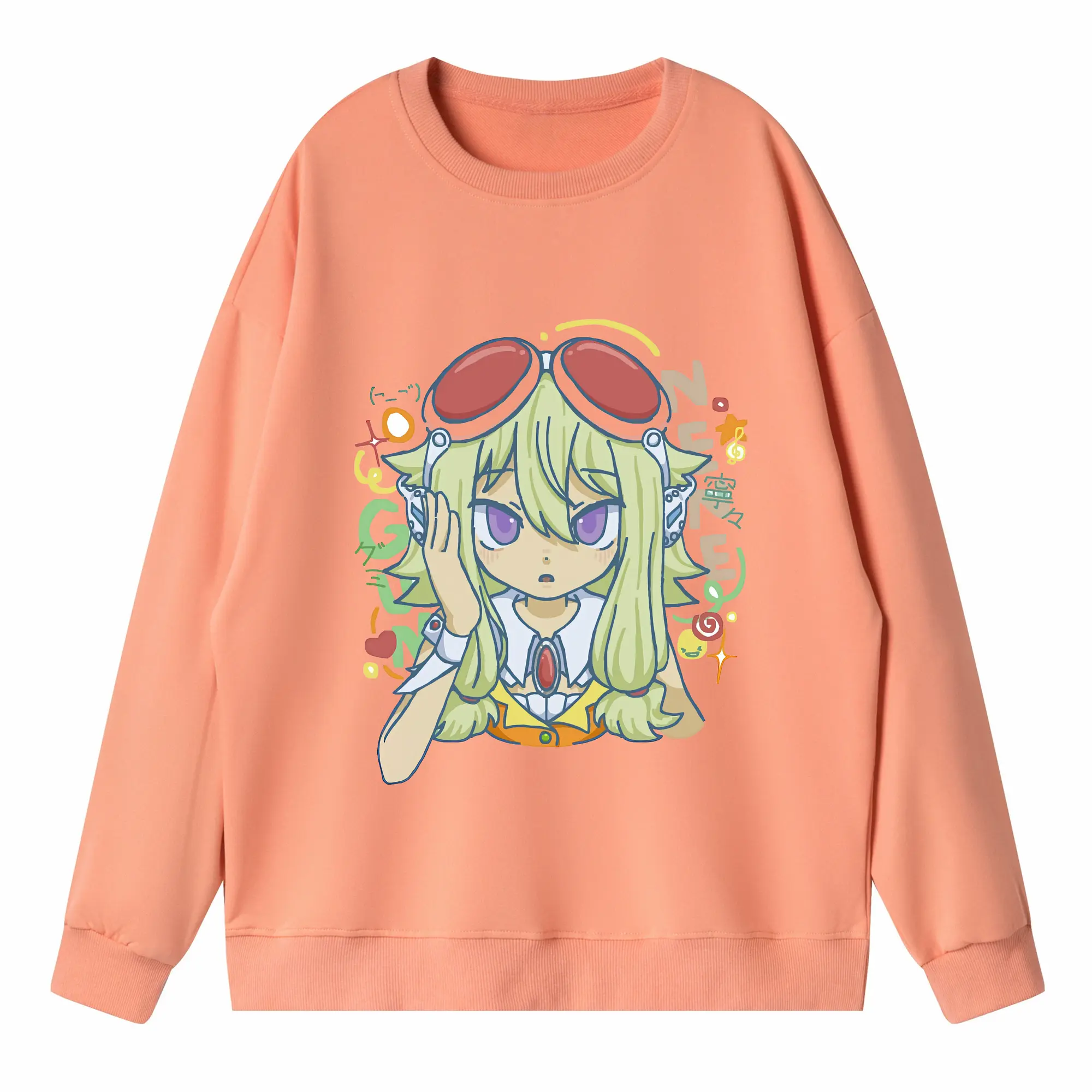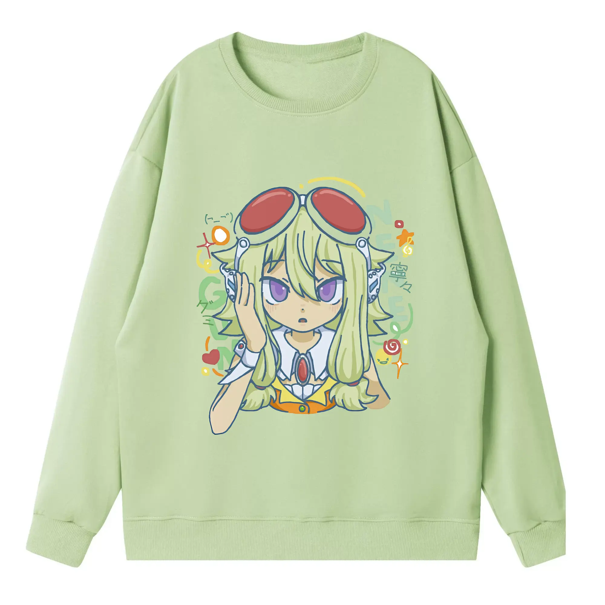 VOCALOID GUMI かわいいデフォルメ オリジナルデザイン - 薄手 クルーネック スウェット 裏毛260g · ポリエステル 春秋向け カジュアル 男女兼用 · トレーナー デイリー スポーツ 散歩に最適