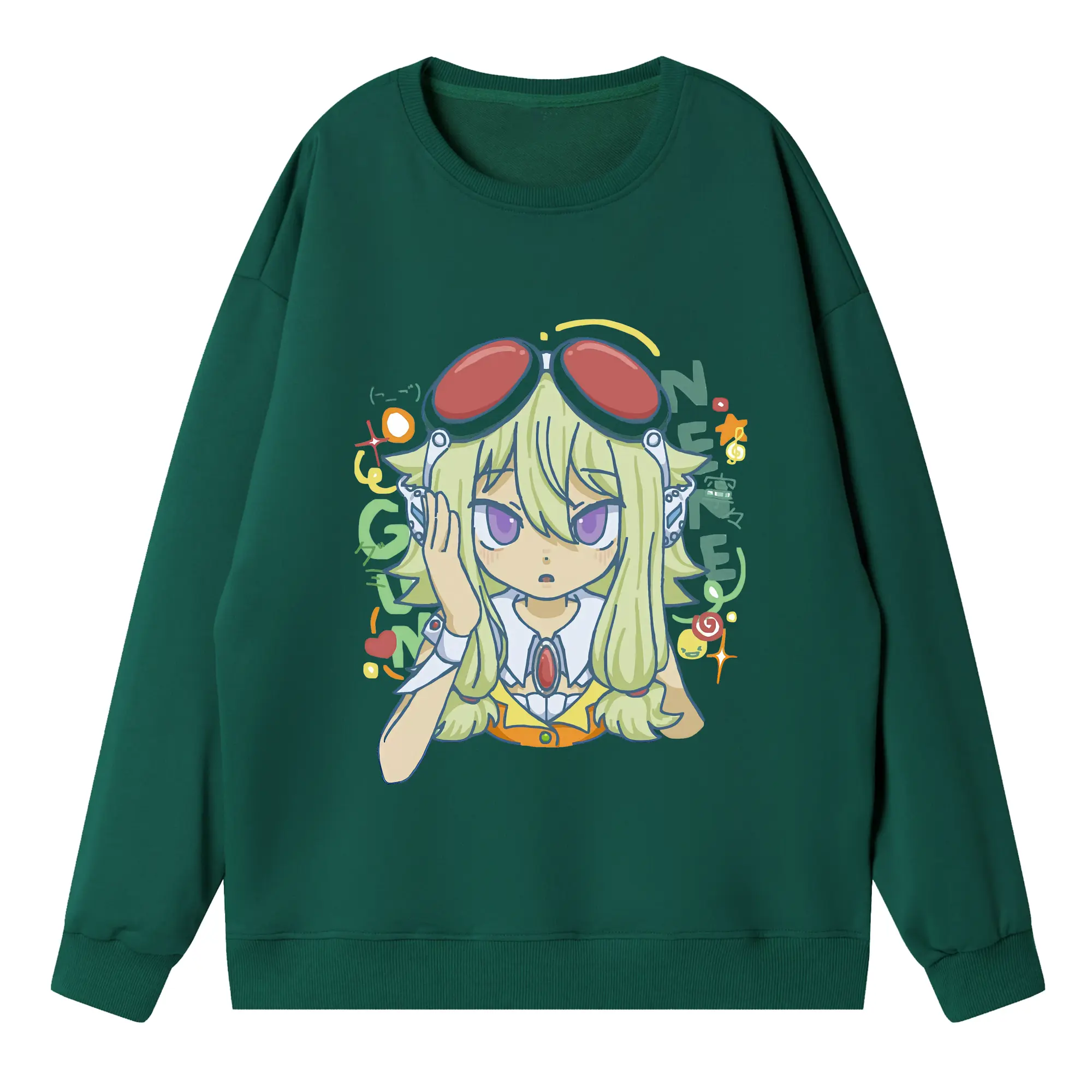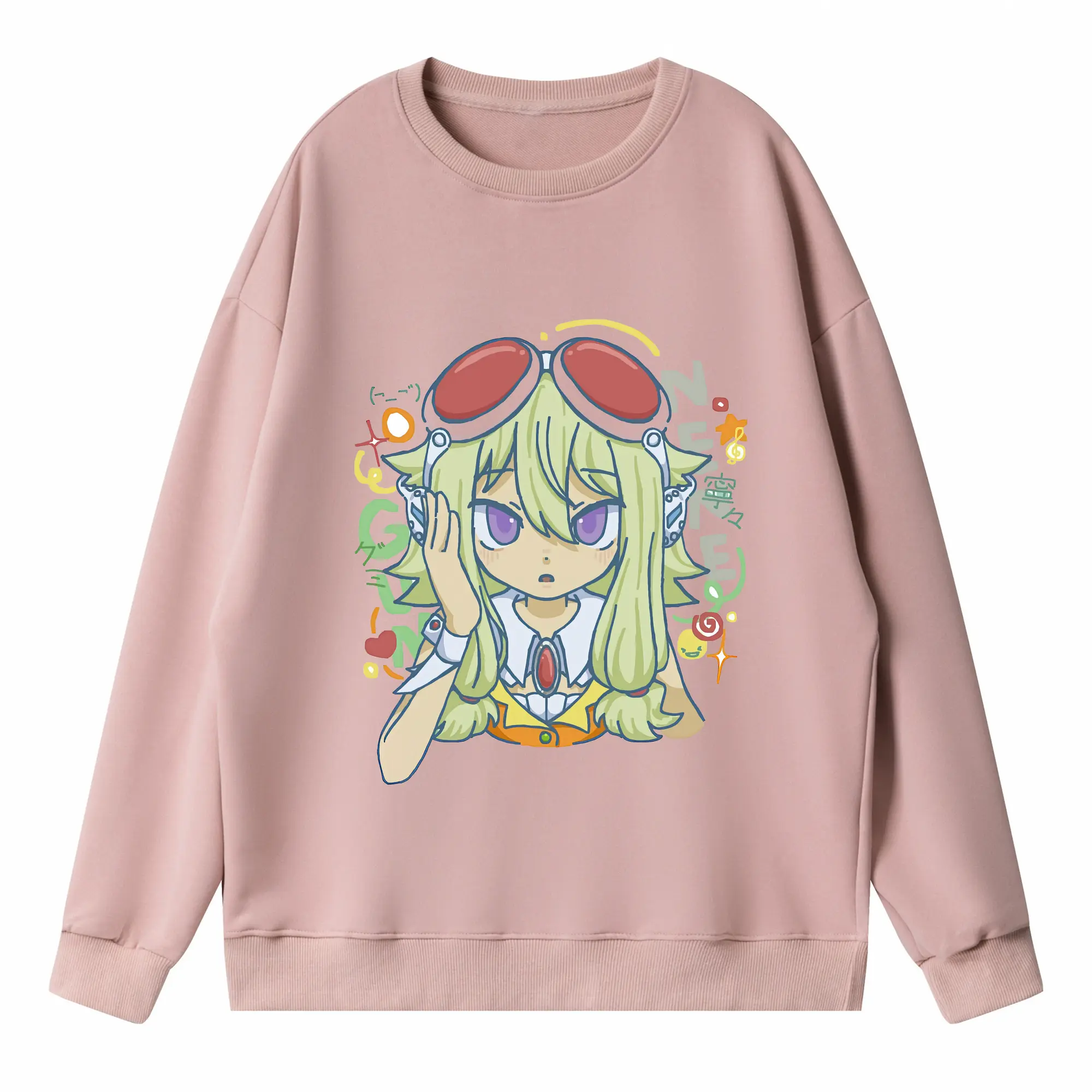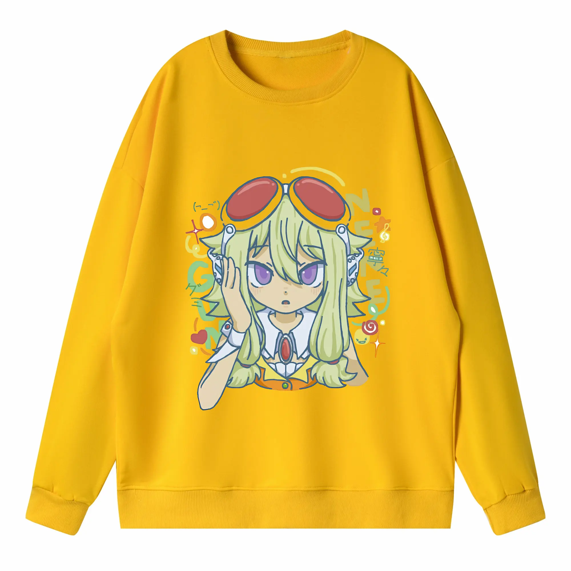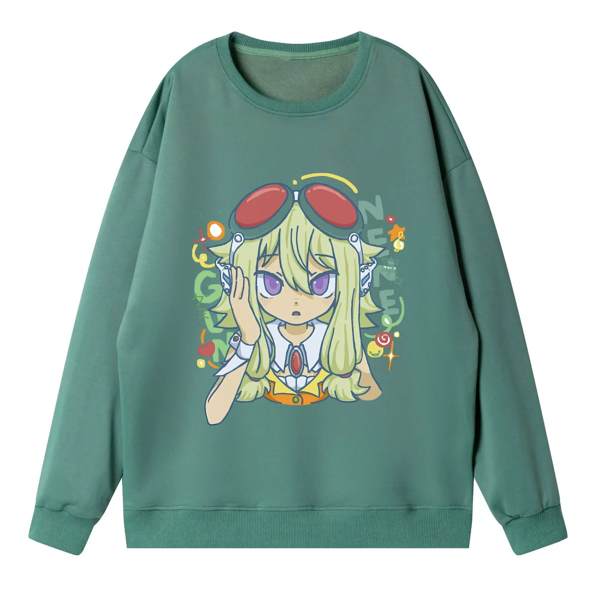 VOCALOID GUMI かわいいデフォルメ オリジナルデザイン - 薄手 クルーネック スウェット 裏毛260g · ポリエステル 春秋向け カジュアル 男女兼用 · トレーナー デイリー スポーツ 散歩に最適